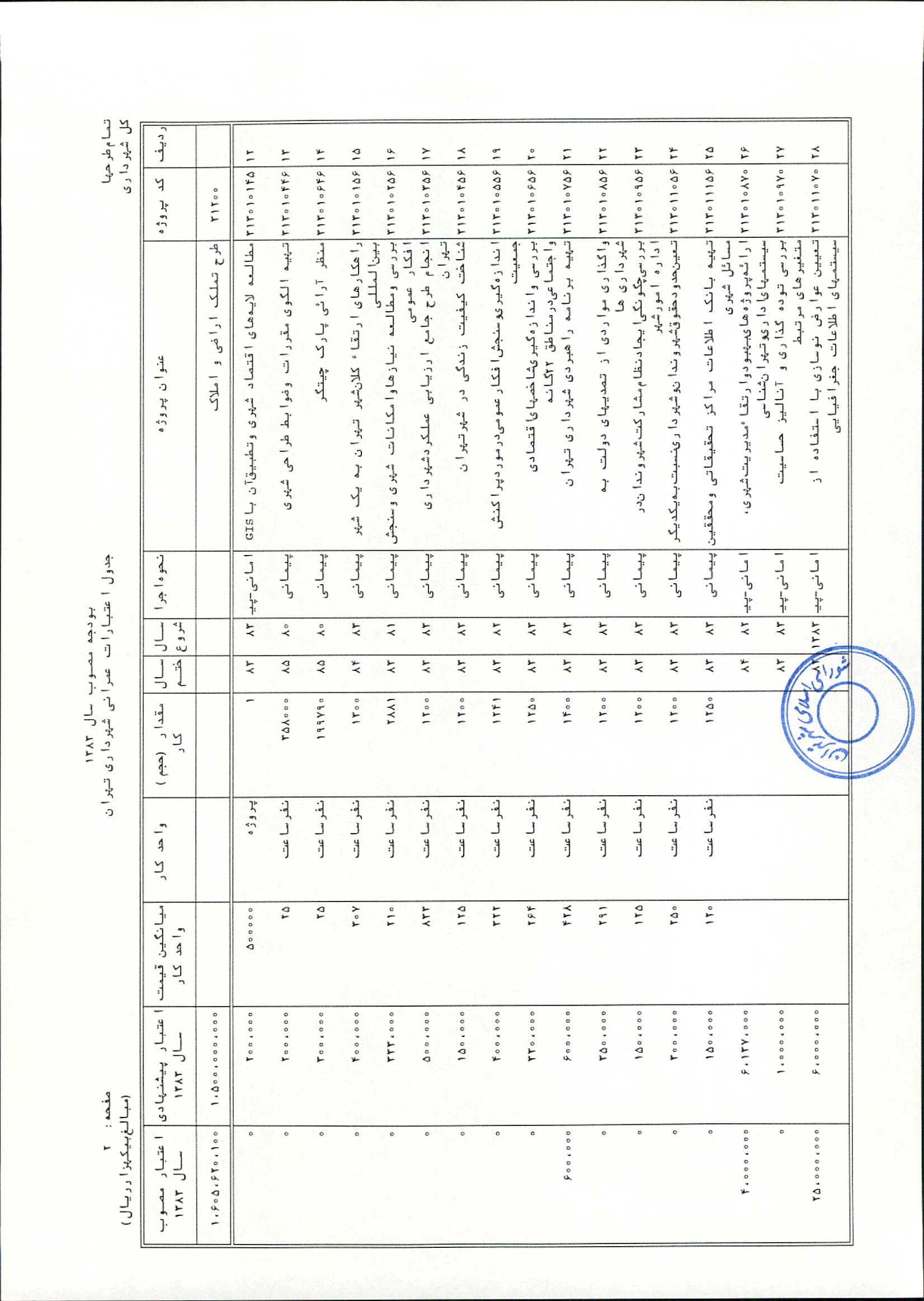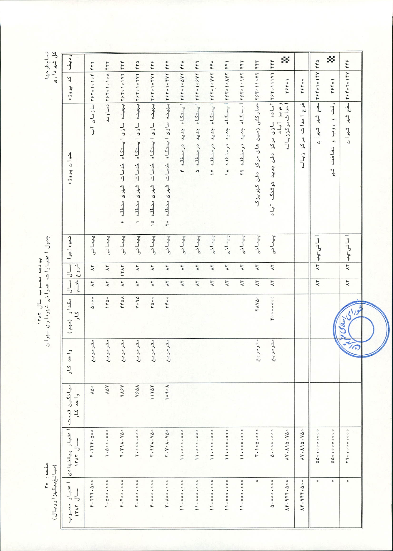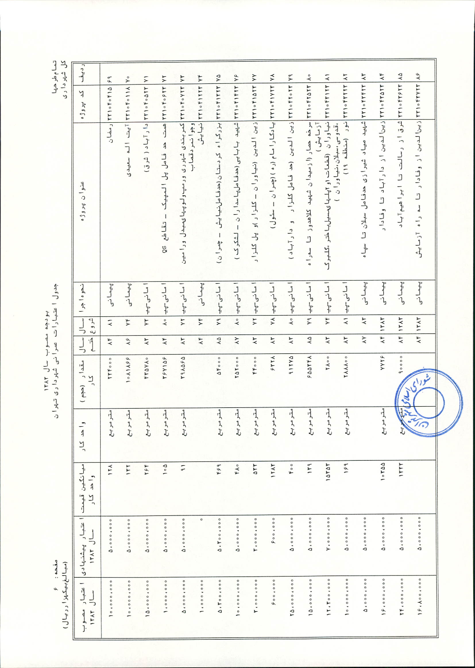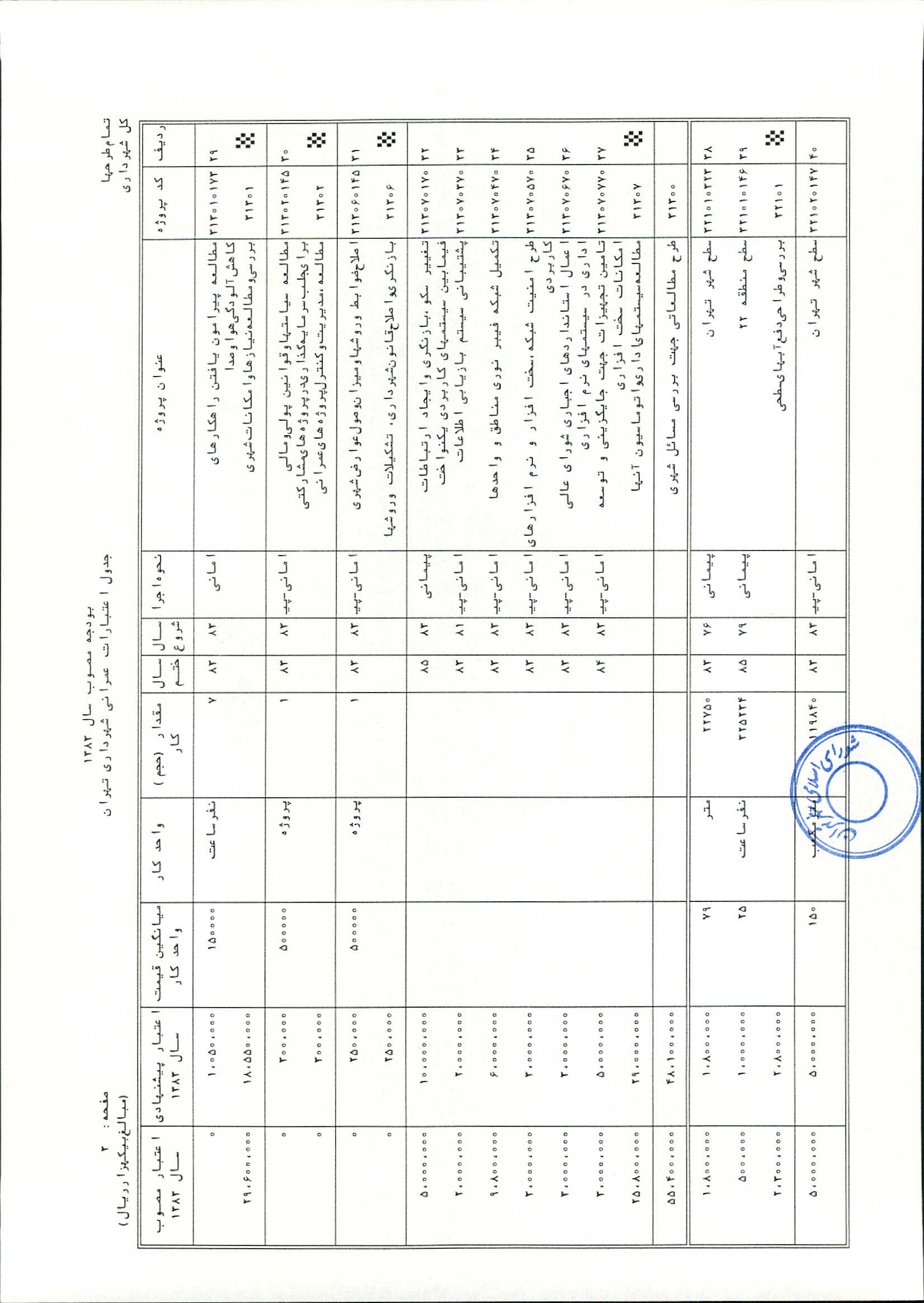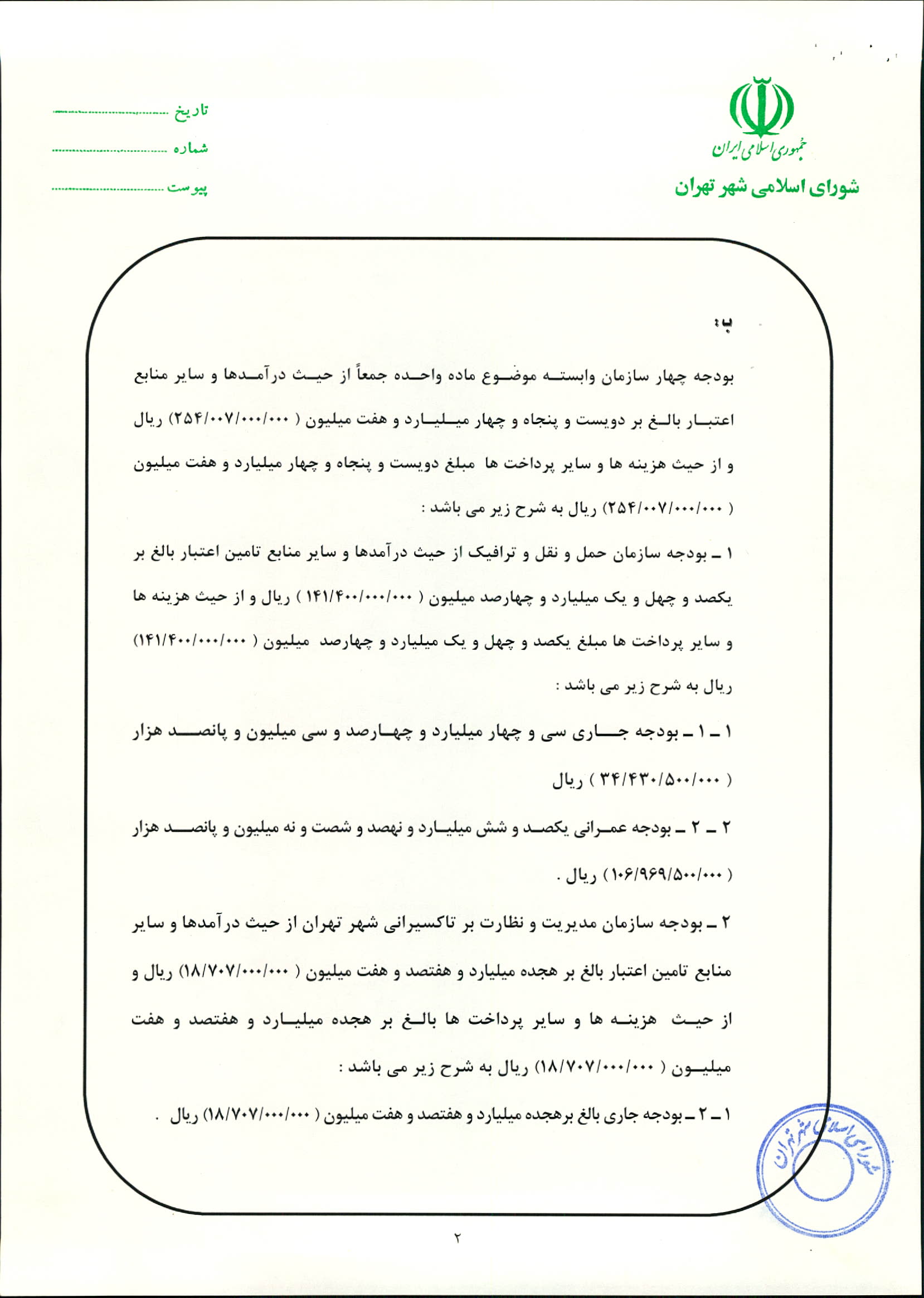 بودجه سال 1383 شهرداري تهران و چهار سازمان غيرمستقل (سازمان حمل و نقل و ترافيك تهران ـ سازمان مديريت و نظارت بر تاكسيراني شهر تهران ـ سازمان ترمينال‌هاي مسافربري شهر تهران ـ سازمان سردخانه و كشتارگاه)