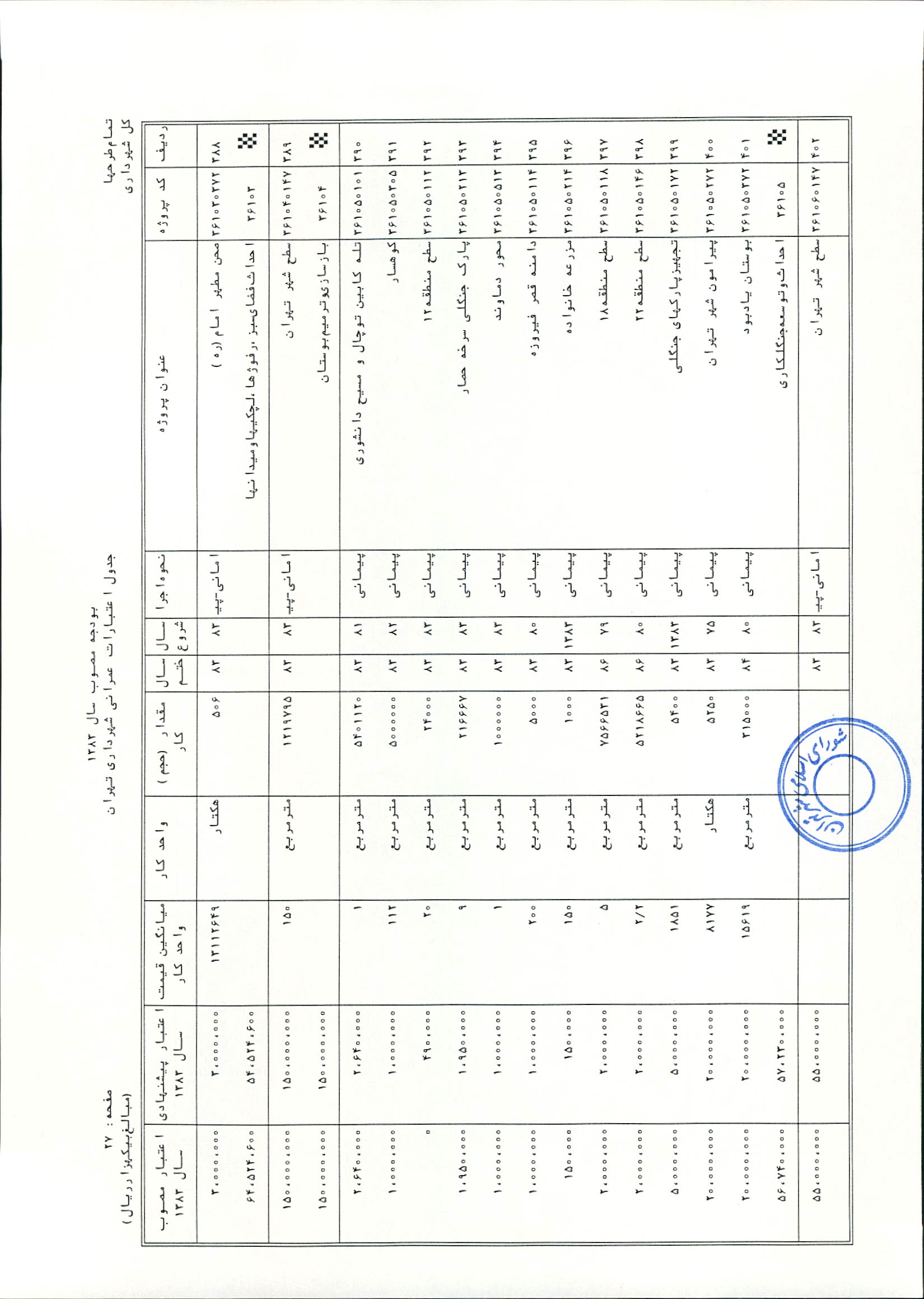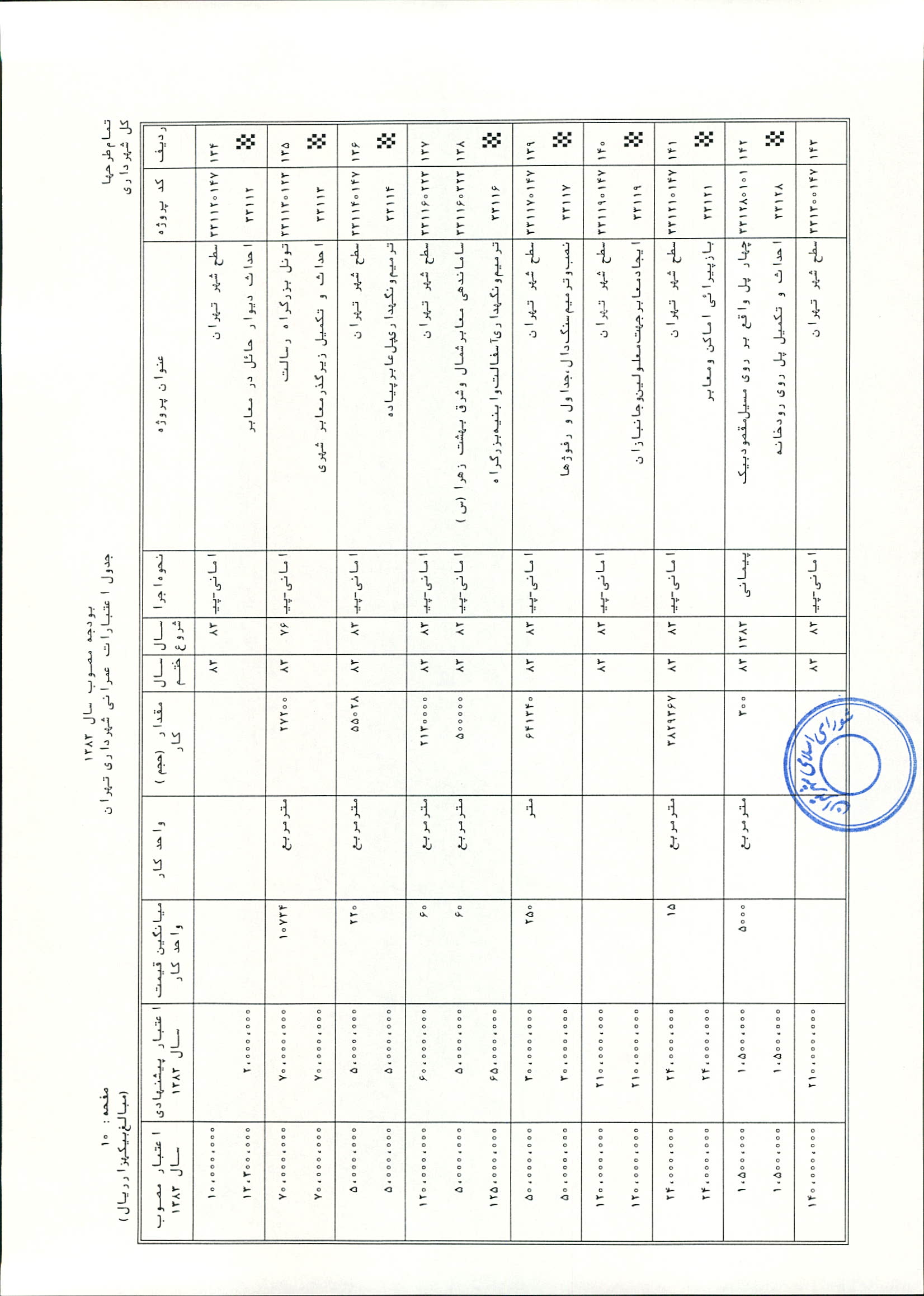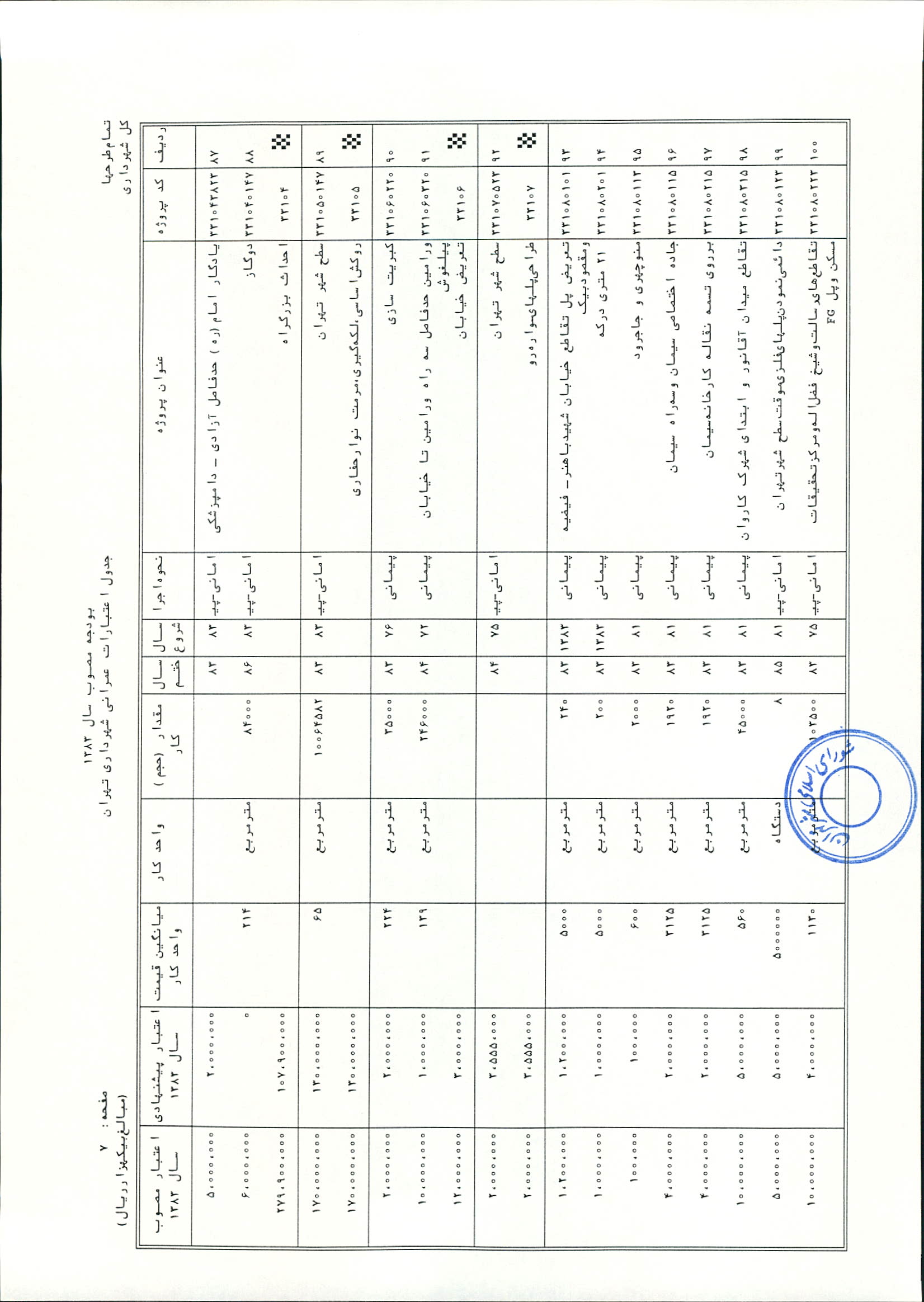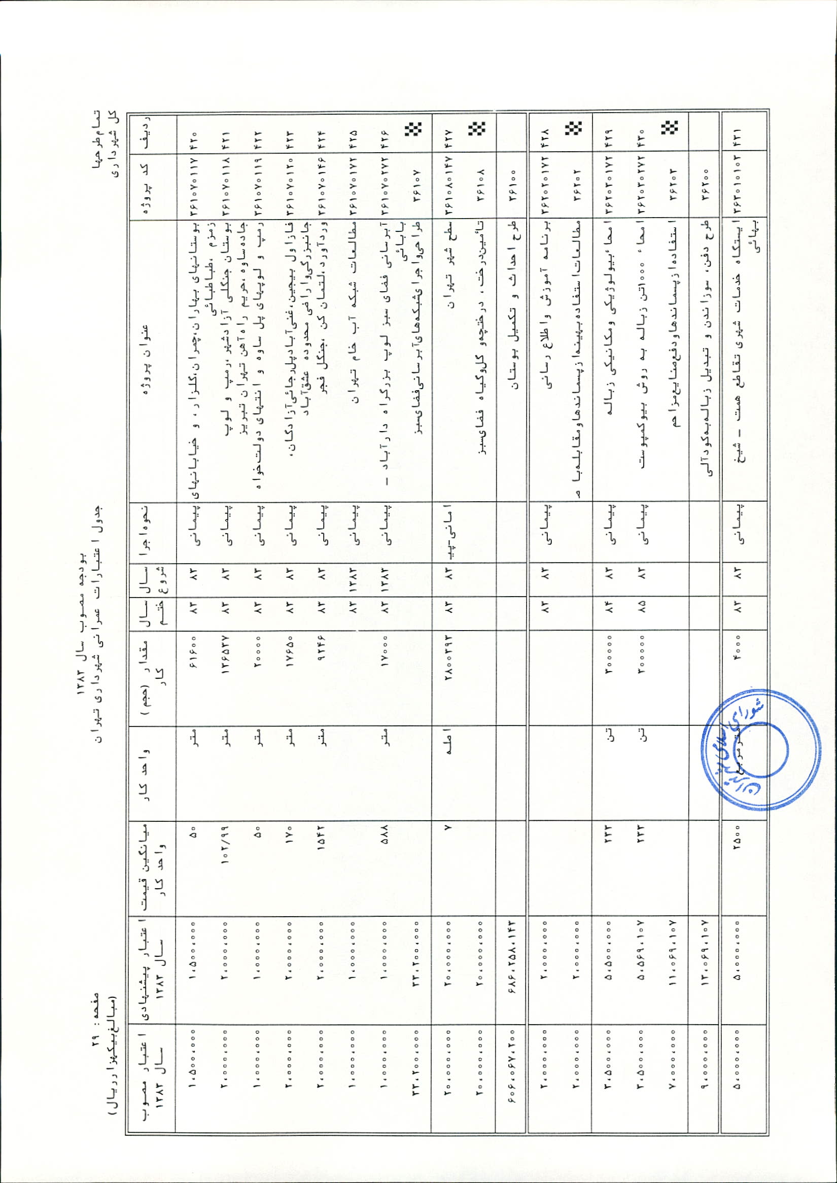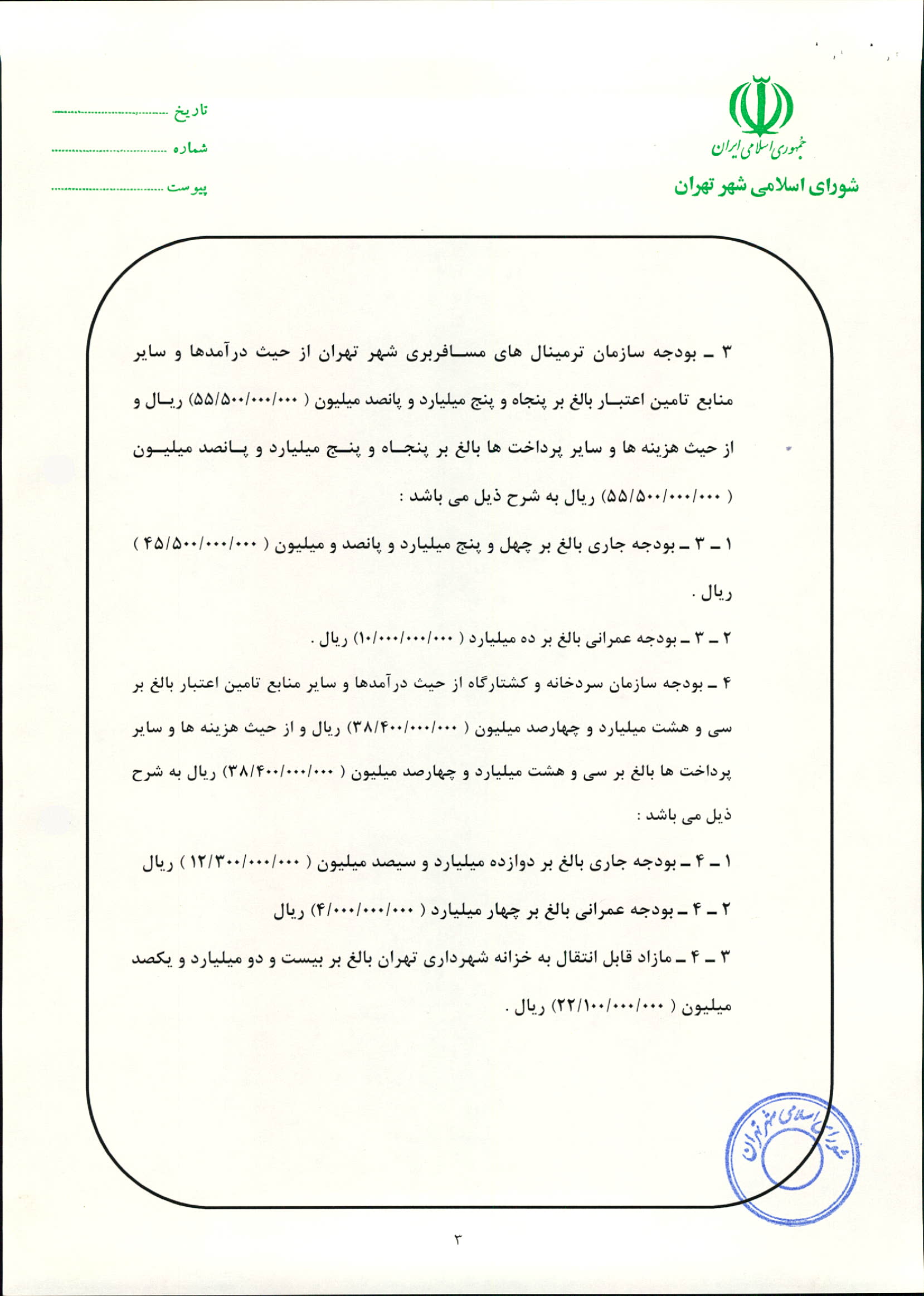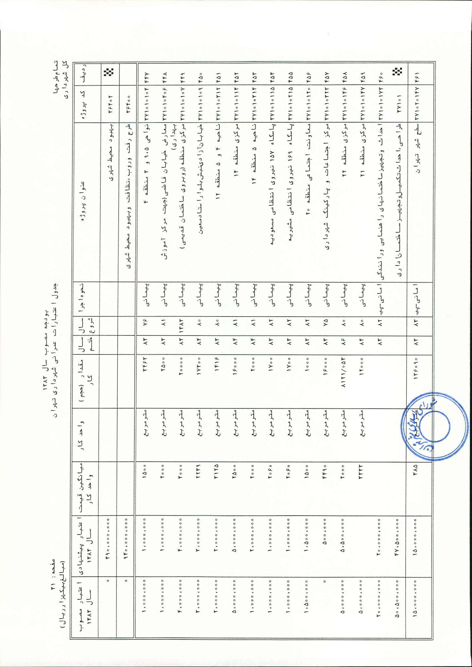 بودجه سال 1383 شهرداري تهران و چهار سازمان غيرمستقل (سازمان حمل و نقل و ترافيك تهران ـ سازمان مديريت و نظارت بر تاكسيراني شهر تهران ـ سازمان ترمينال‌هاي مسافربري شهر تهران ـ سازمان سردخانه و كشتارگاه)