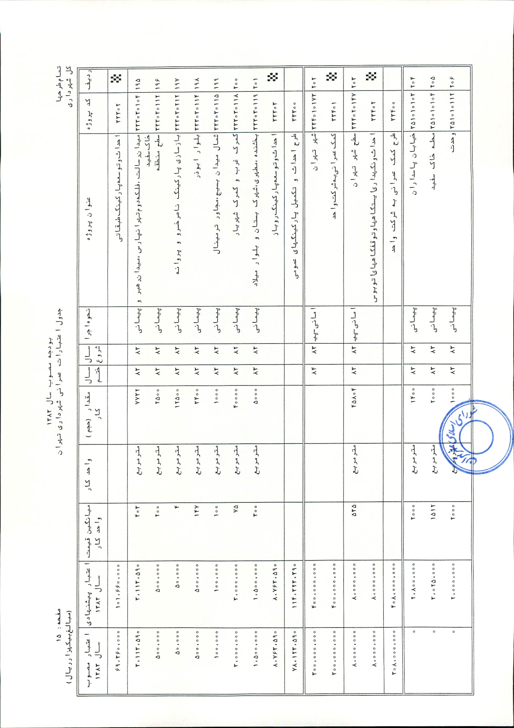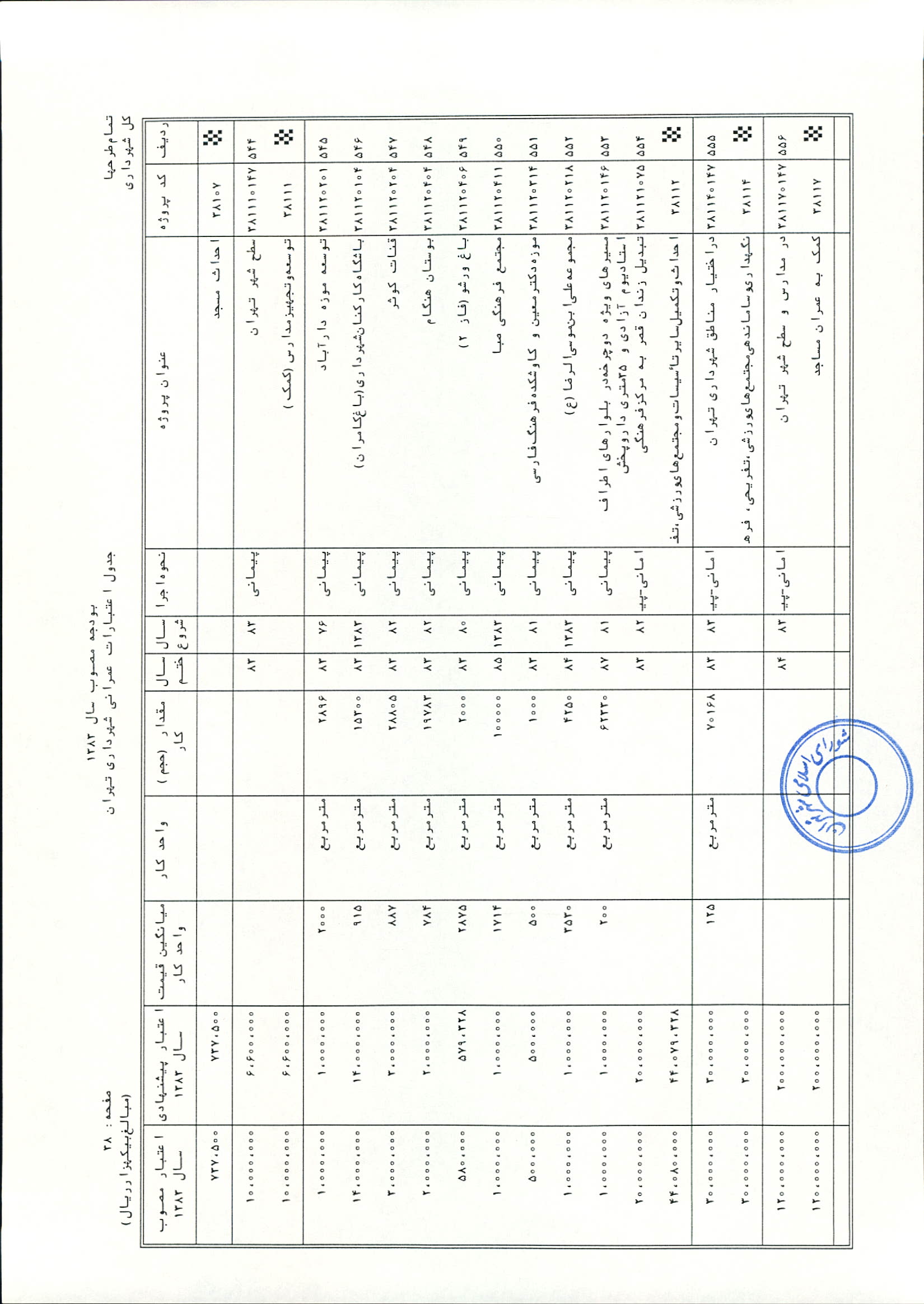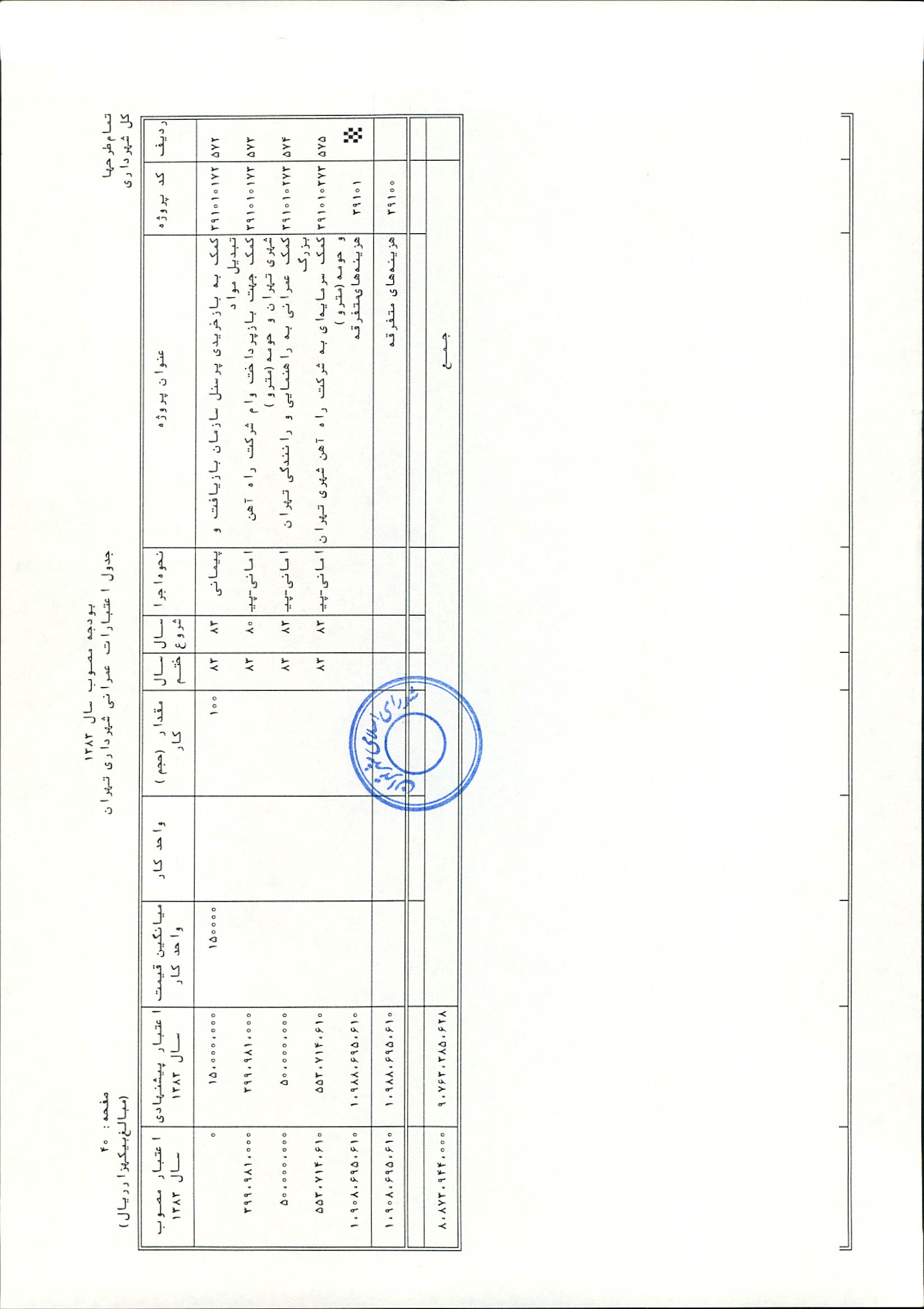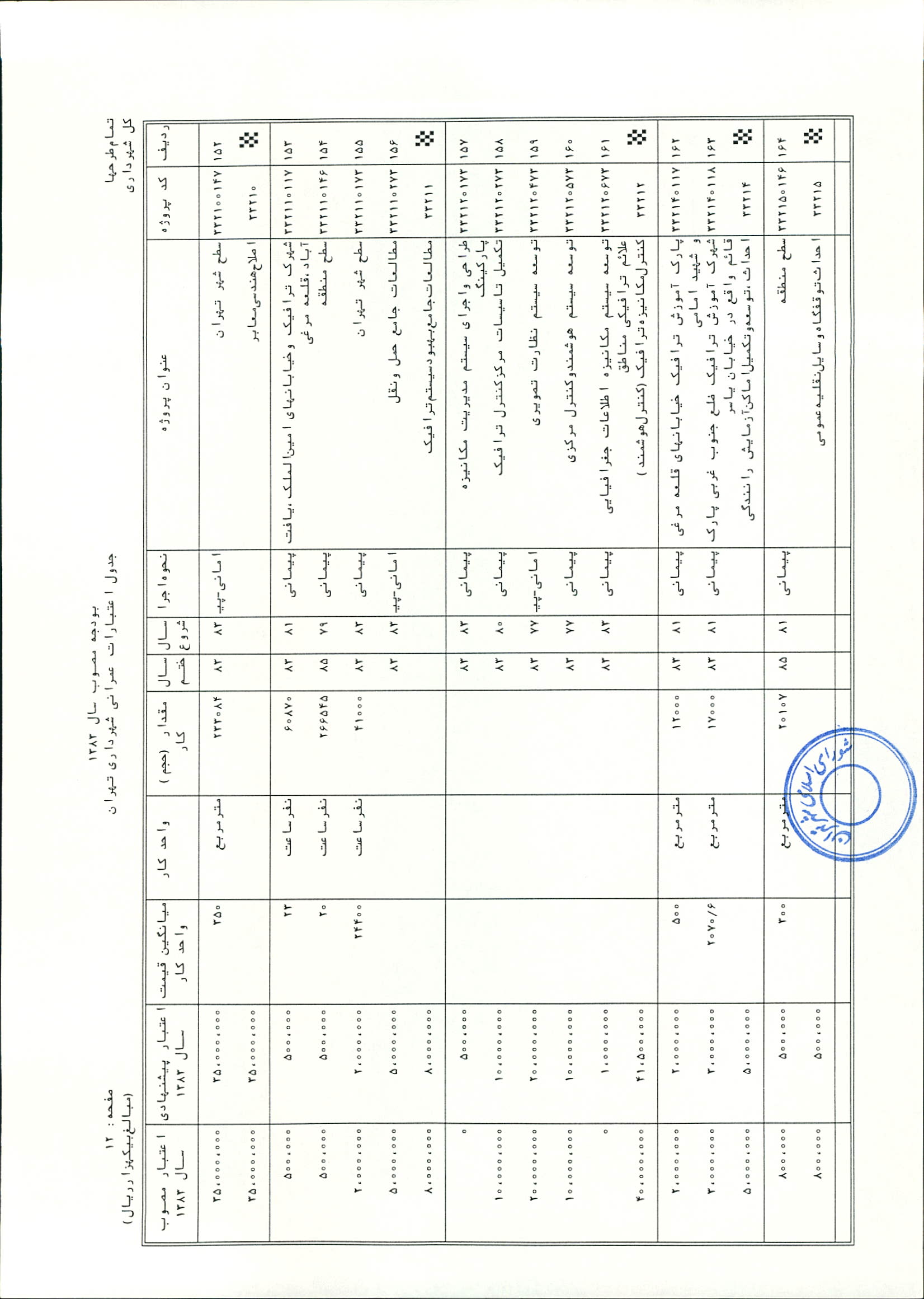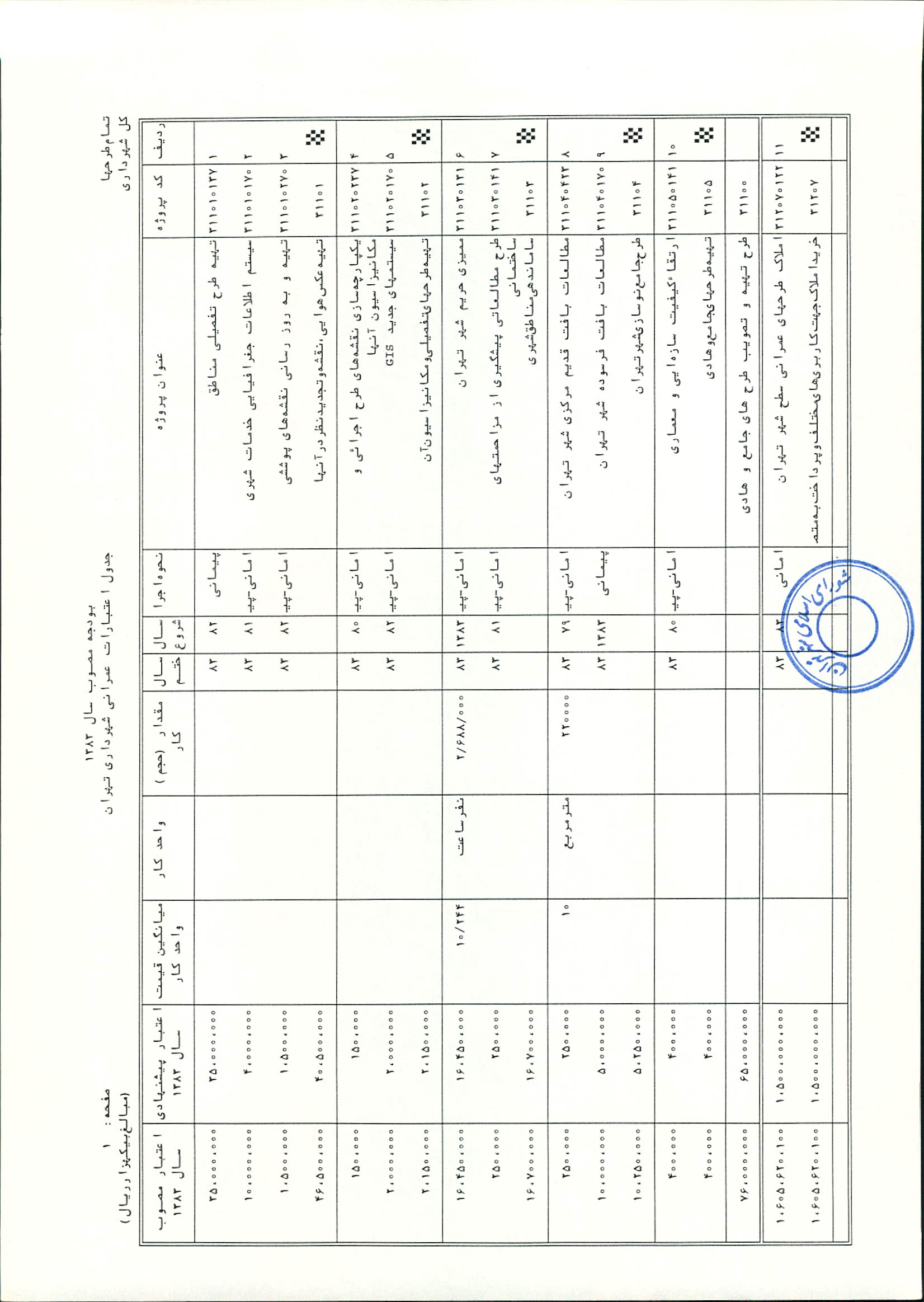 بودجه سال 1383 شهرداري تهران و چهار سازمان غيرمستقل (سازمان حمل و نقل و ترافيك تهران ـ سازمان مديريت و نظارت بر تاكسيراني شهر تهران ـ سازمان ترمينال‌هاي مسافربري شهر تهران ـ سازمان سردخانه و كشتارگاه)