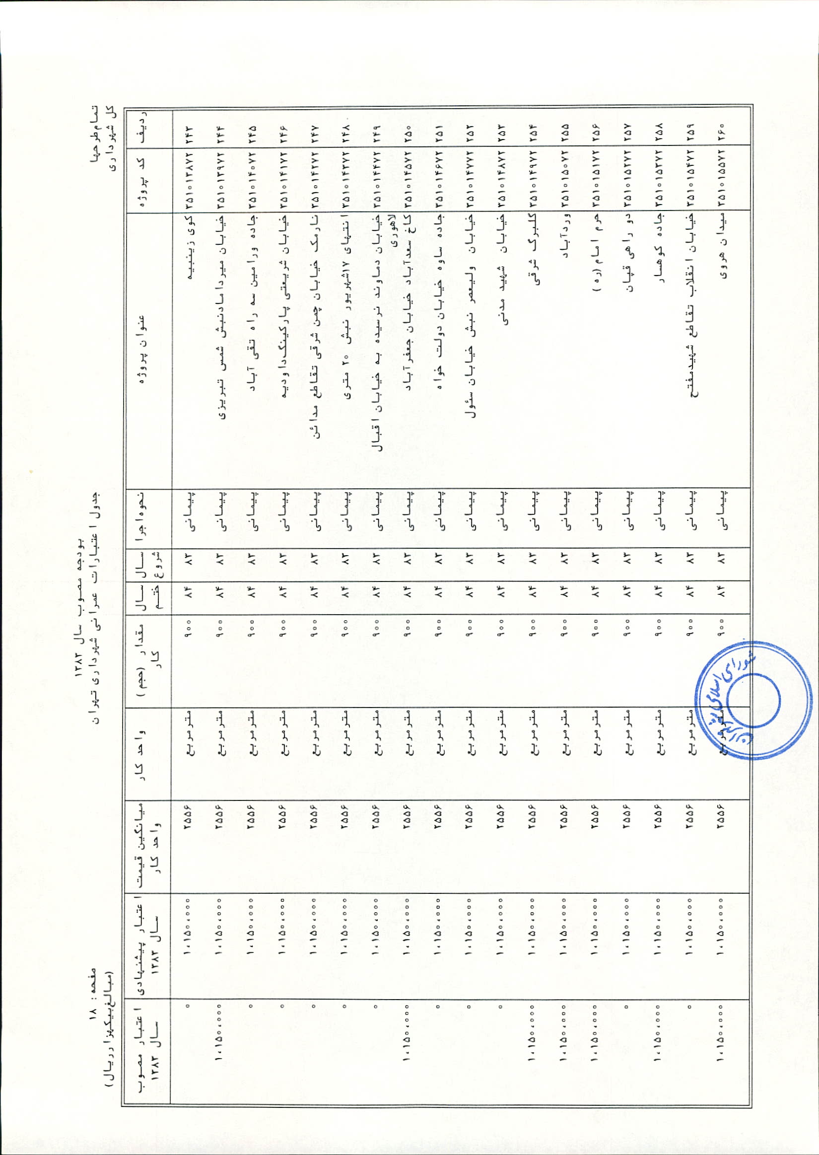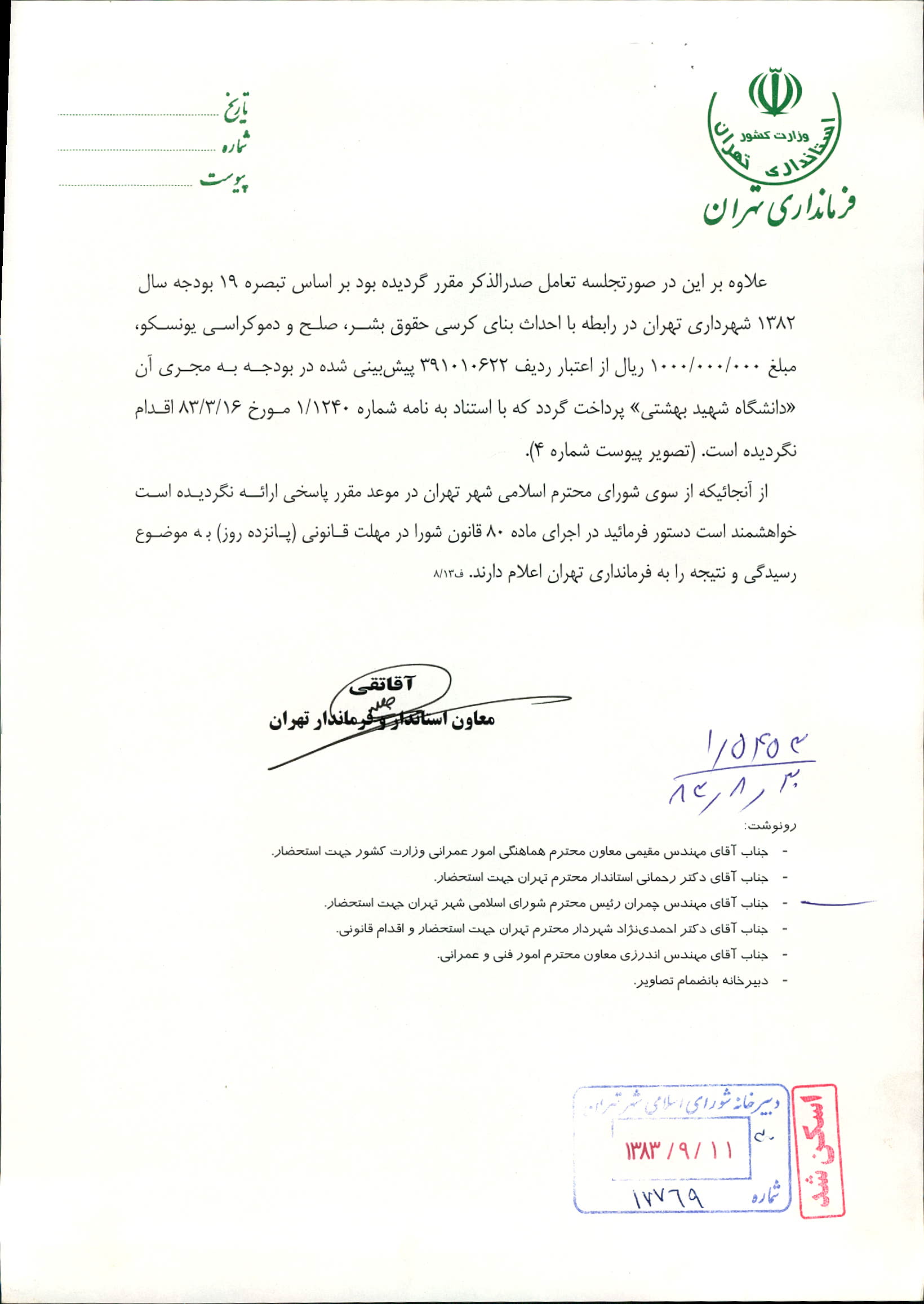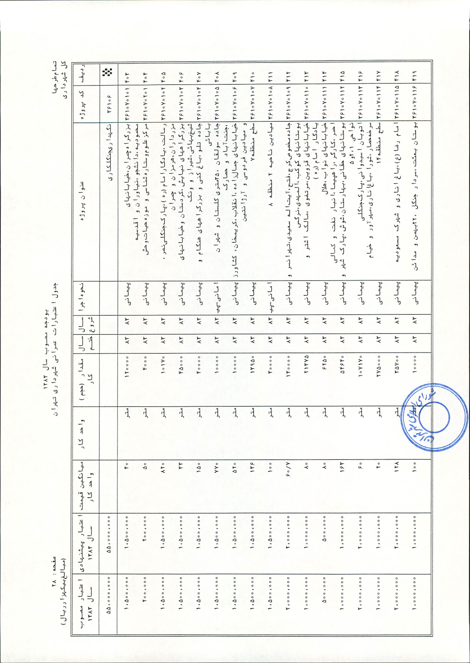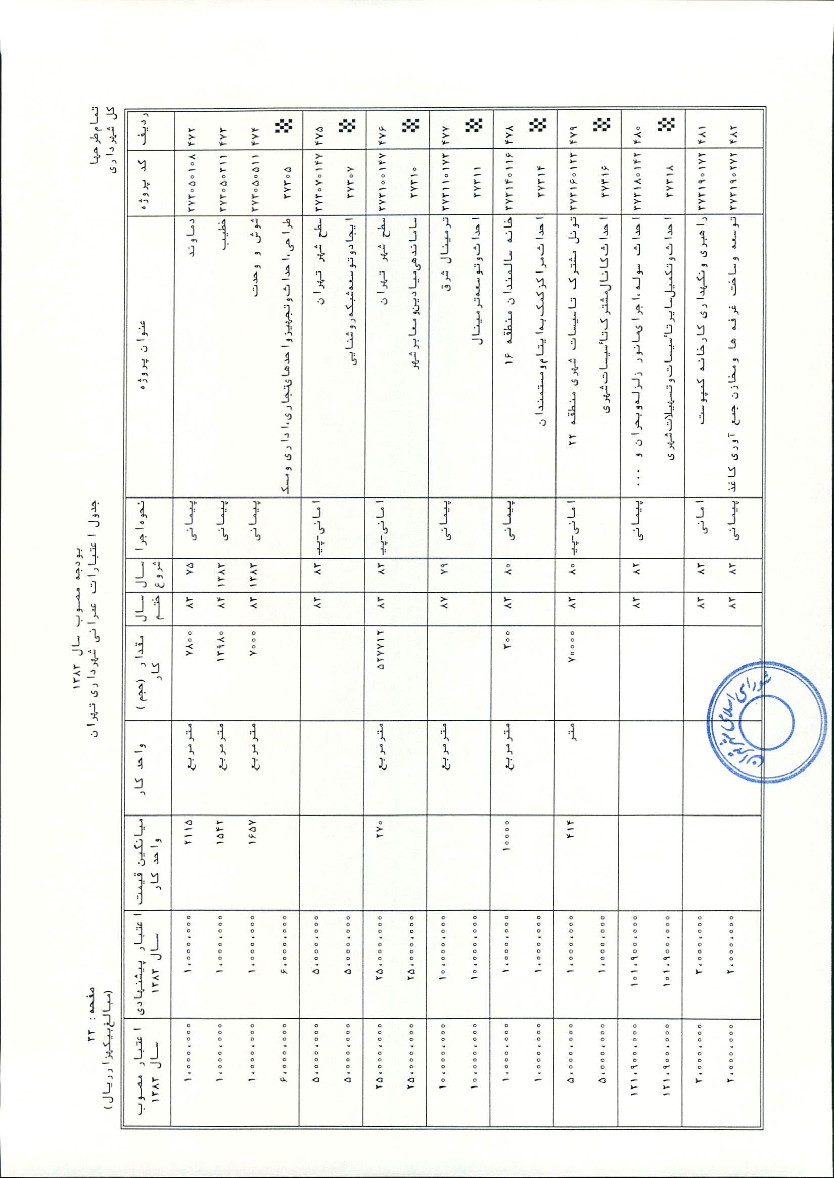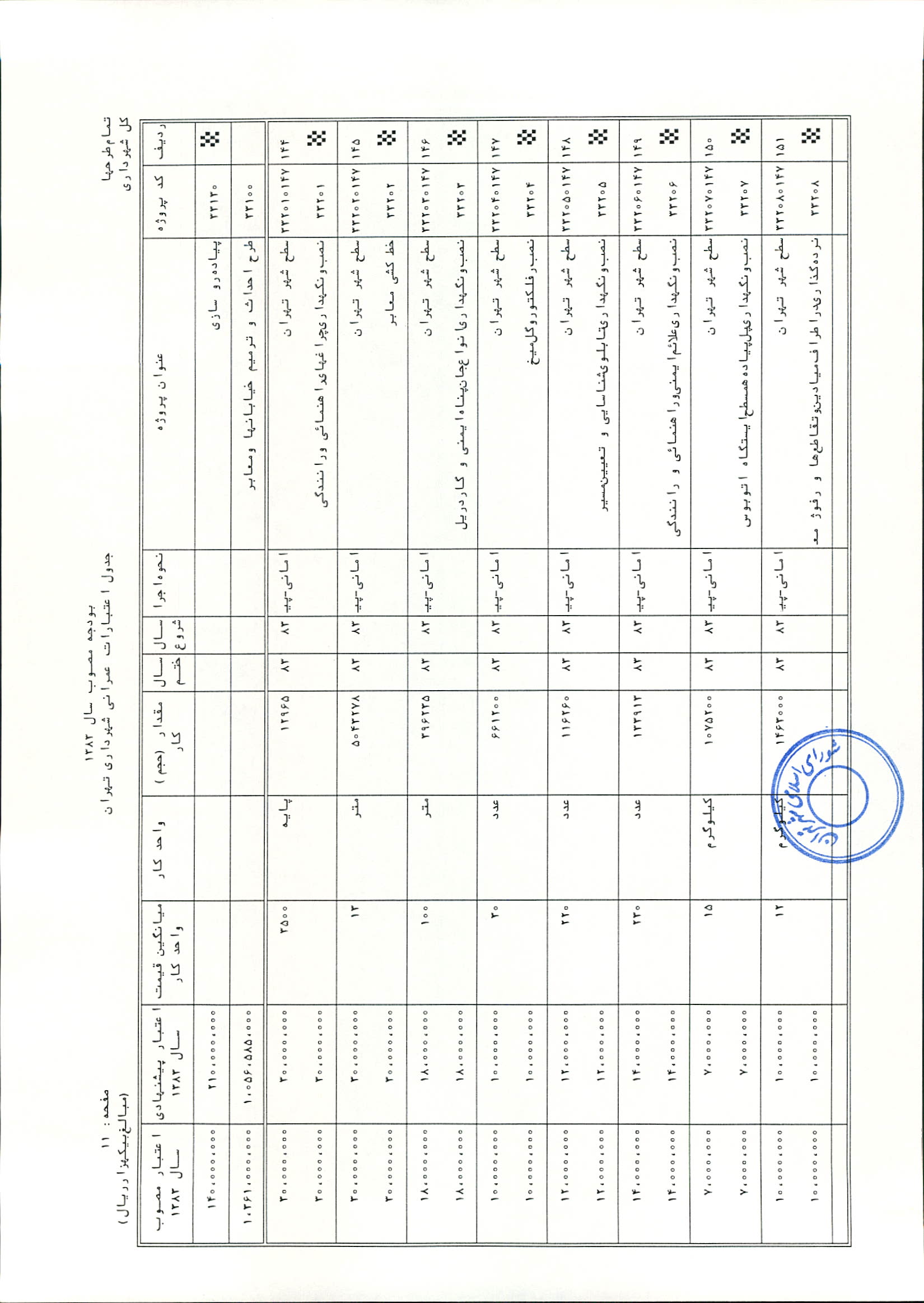 بودجه سال 1383 شهرداري تهران و چهار سازمان غيرمستقل (سازمان حمل و نقل و ترافيك تهران ـ سازمان مديريت و نظارت بر تاكسيراني شهر تهران ـ سازمان ترمينال‌هاي مسافربري شهر تهران ـ سازمان سردخانه و كشتارگاه)