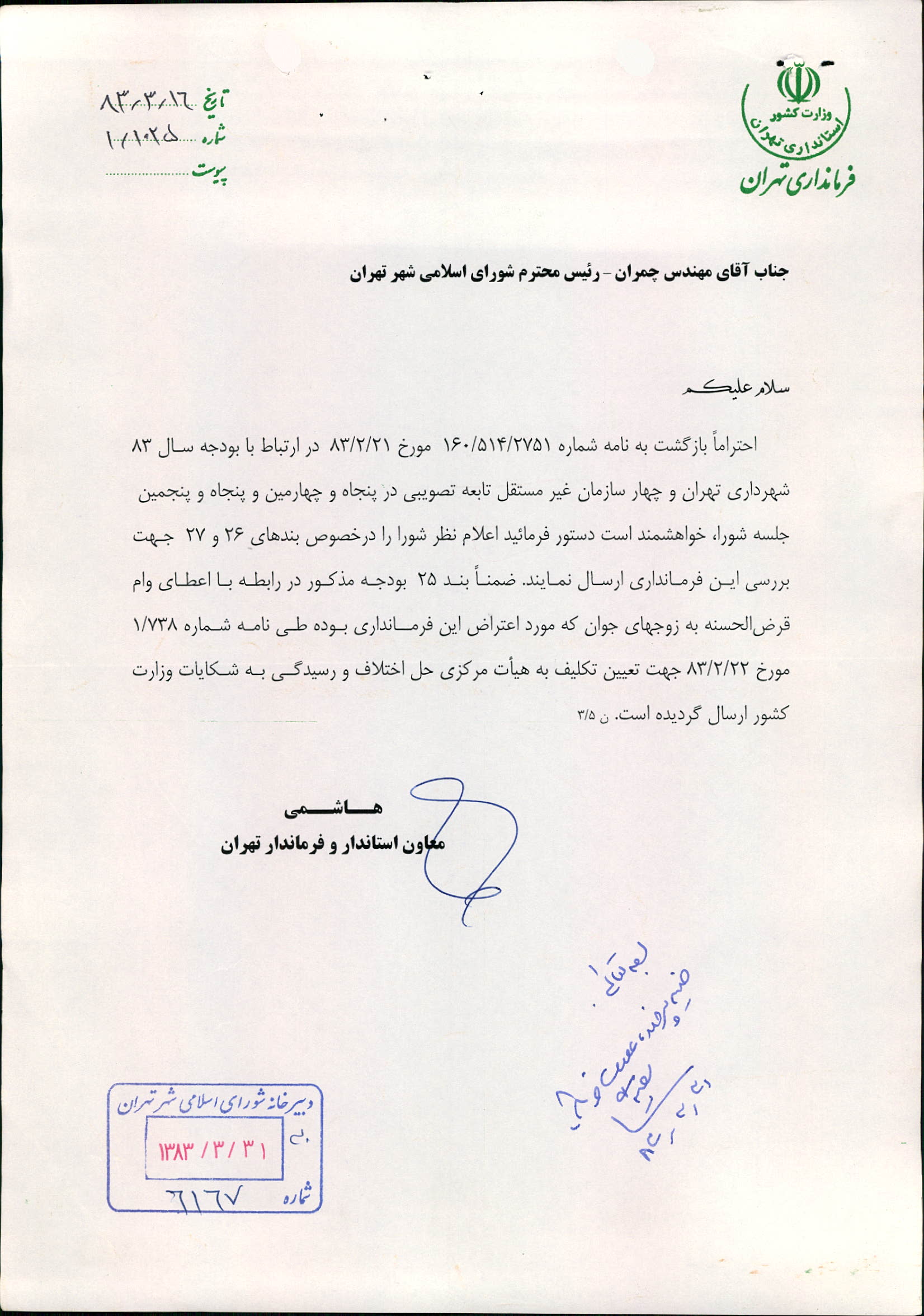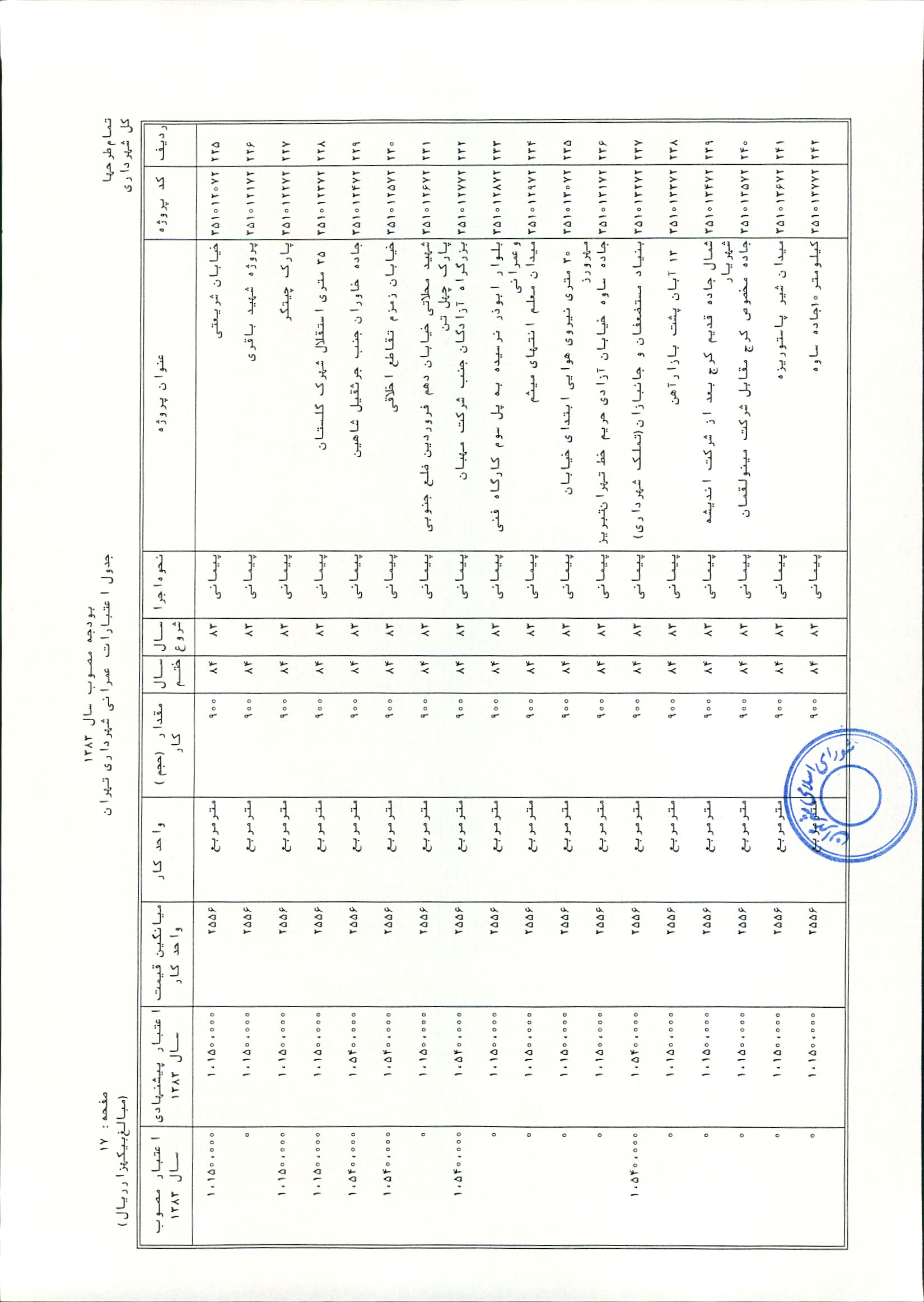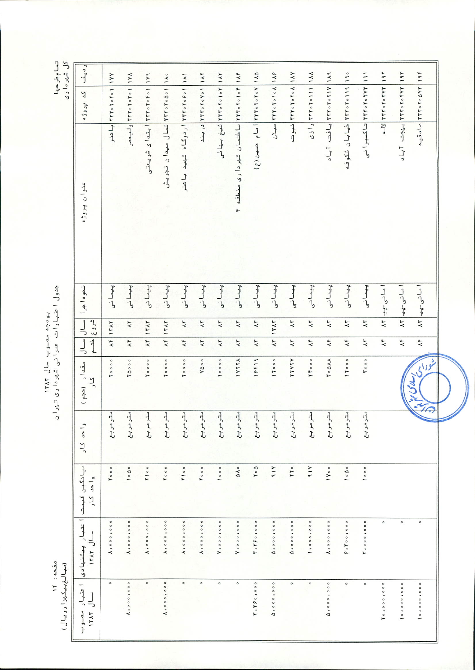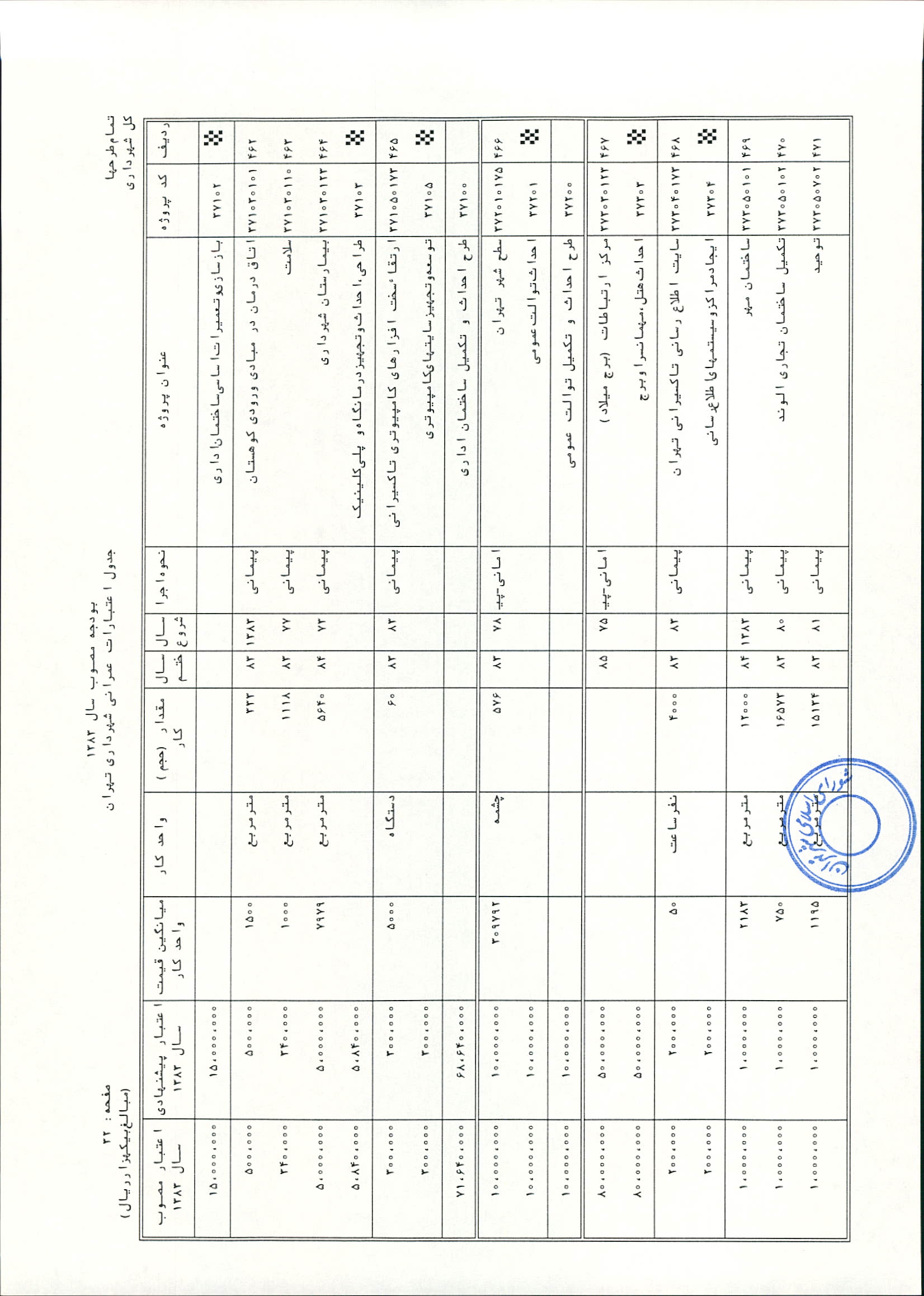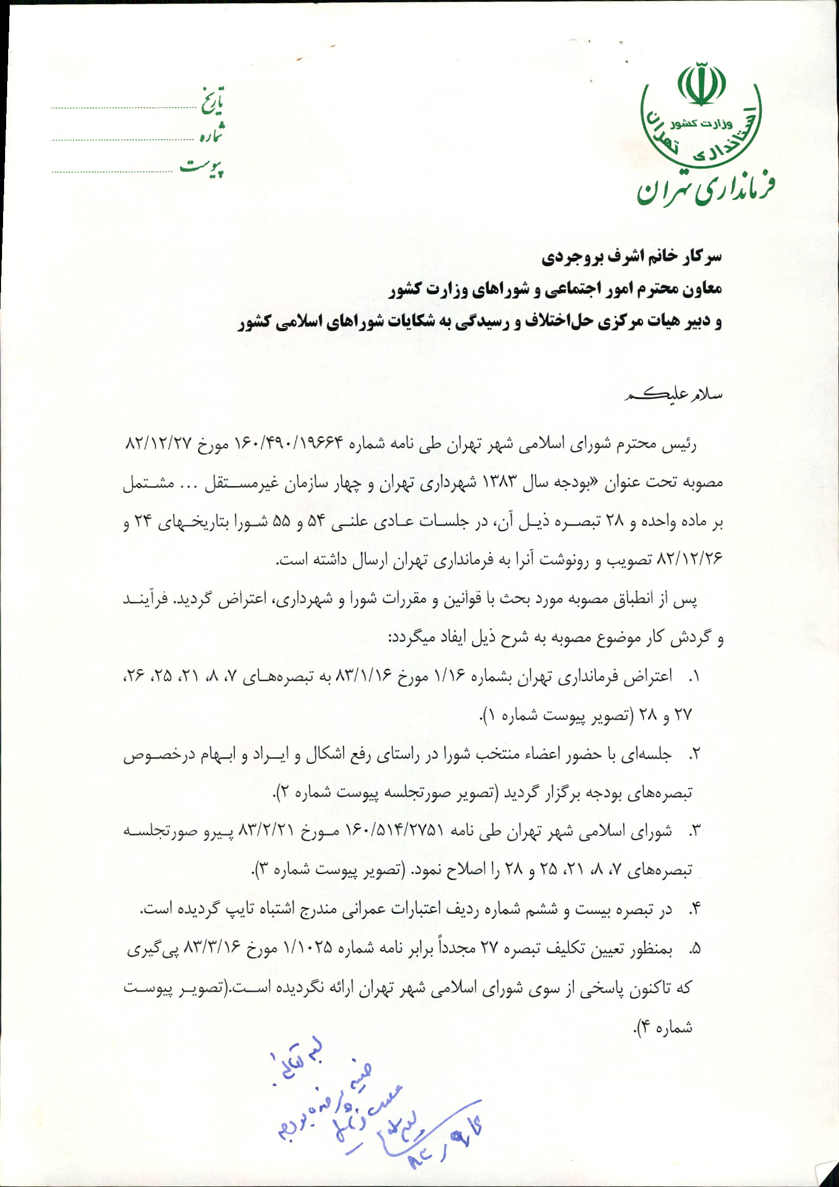 بودجه سال 1383 شهرداري تهران و چهار سازمان غيرمستقل (سازمان حمل و نقل و ترافيك تهران ـ سازمان مديريت و نظارت بر تاكسيراني شهر تهران ـ سازمان ترمينال‌هاي مسافربري شهر تهران ـ سازمان سردخانه و كشتارگاه)