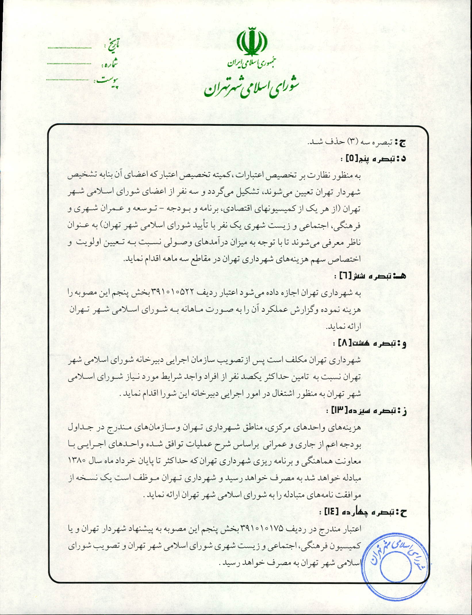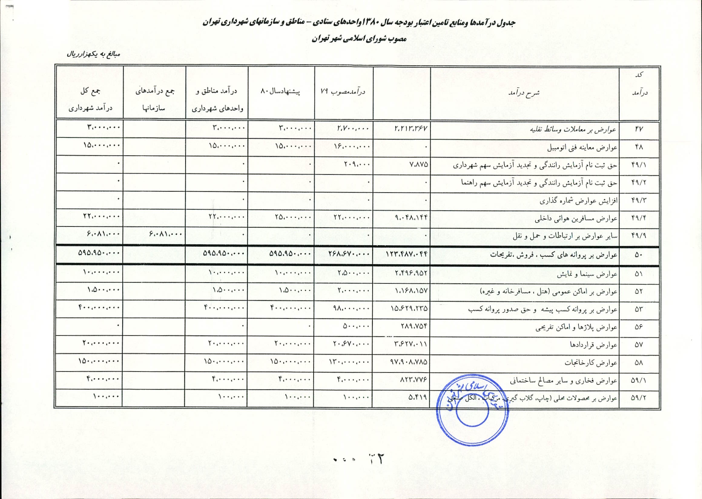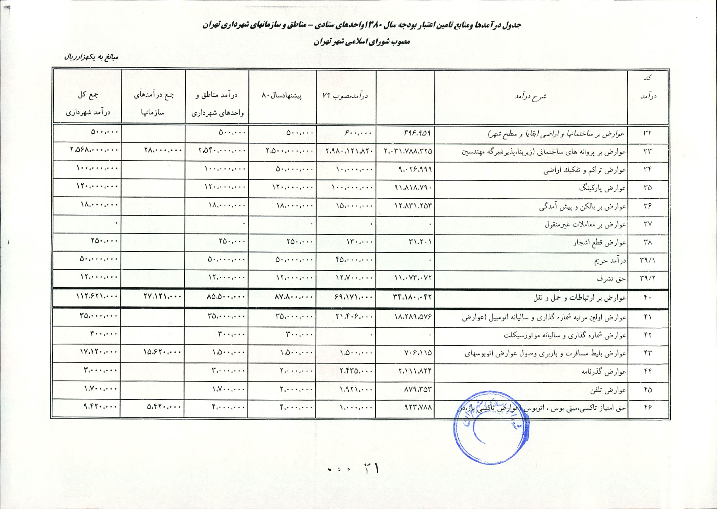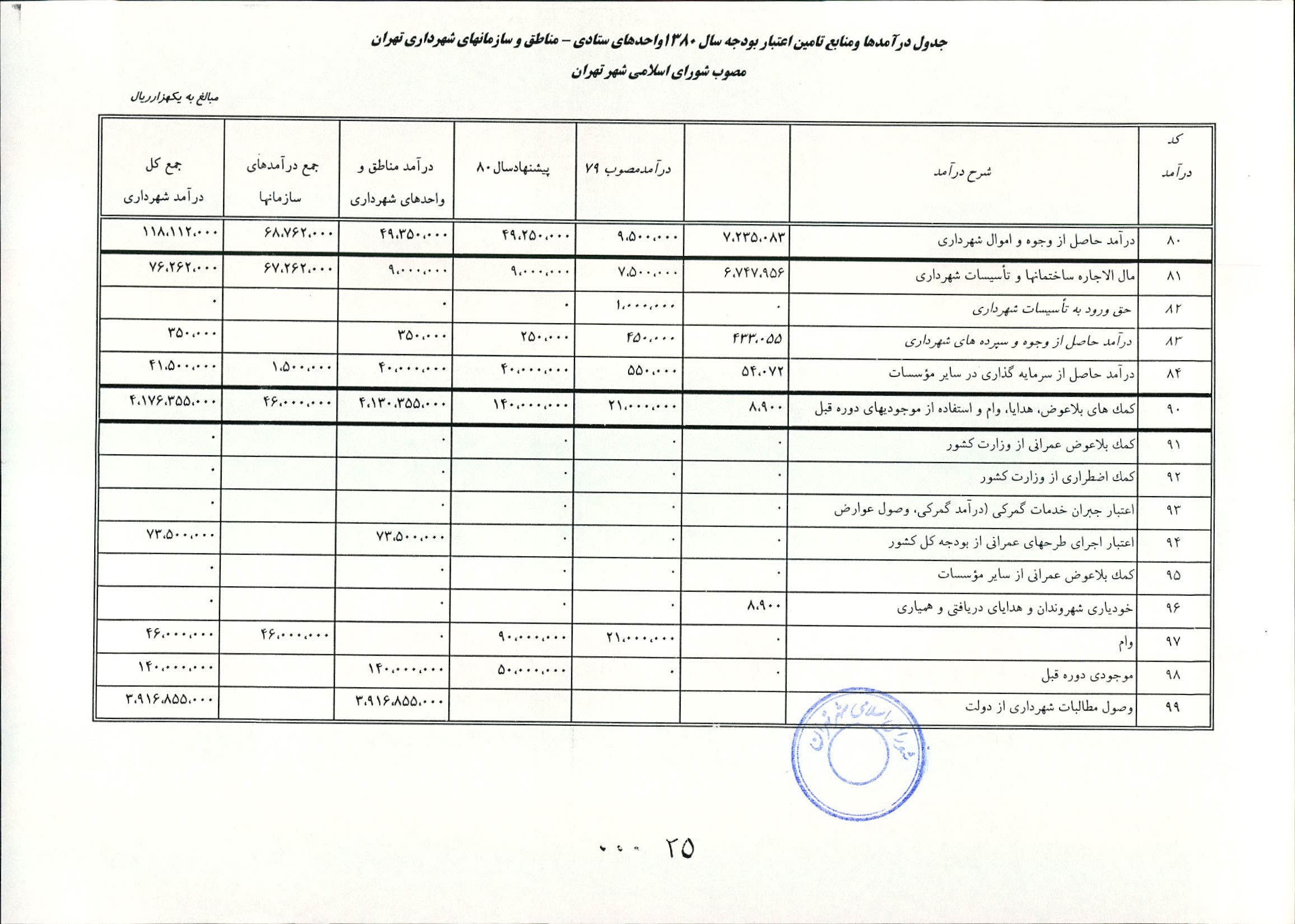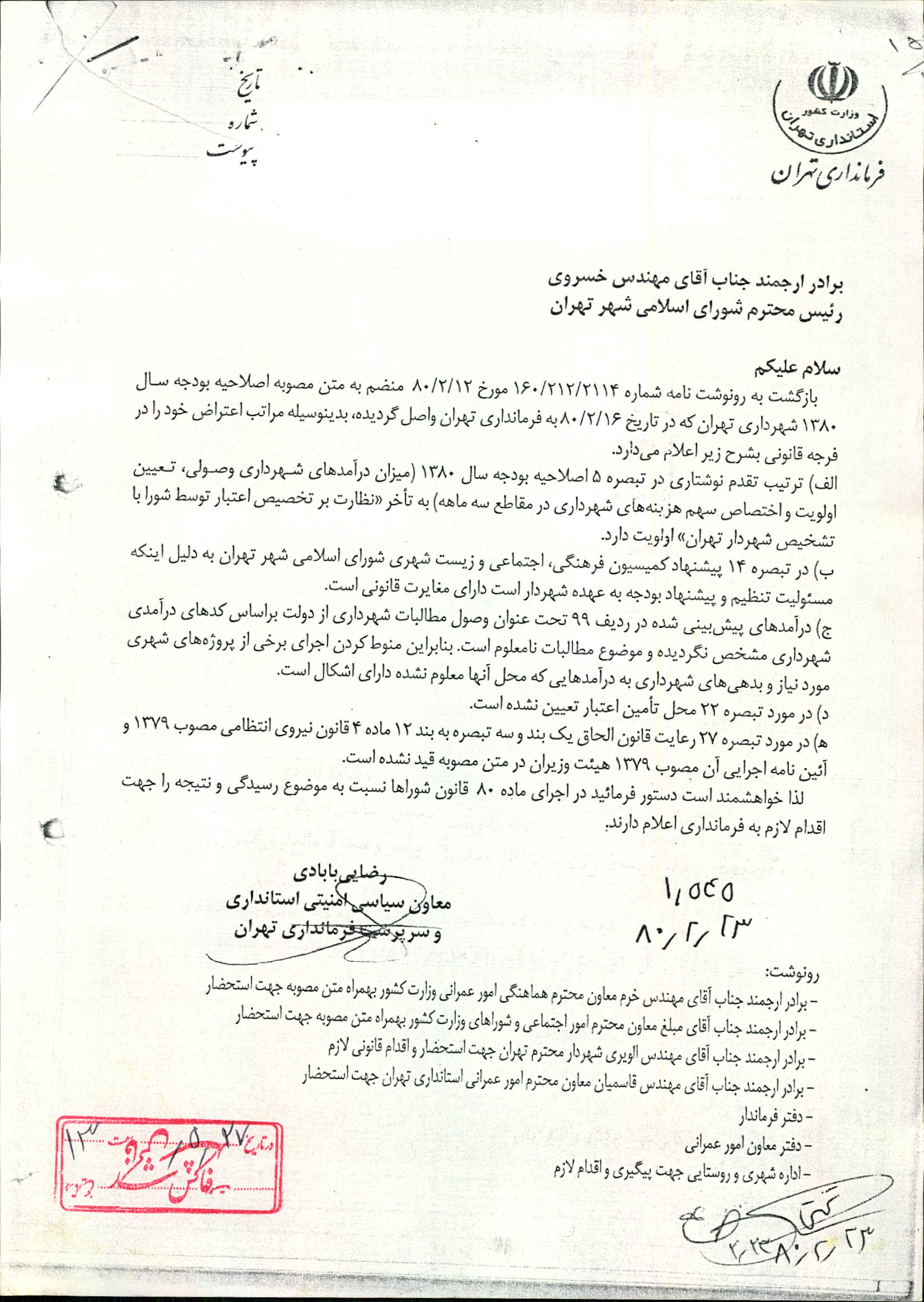 اصلاحيه بودجه سال 1380 شهرداري تهران