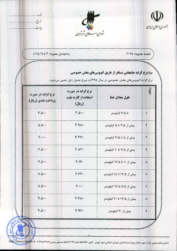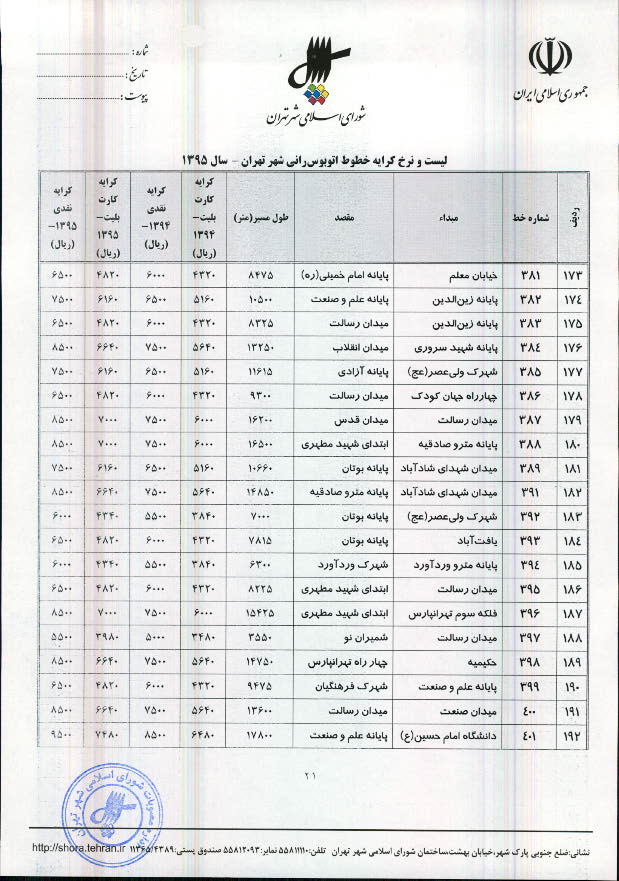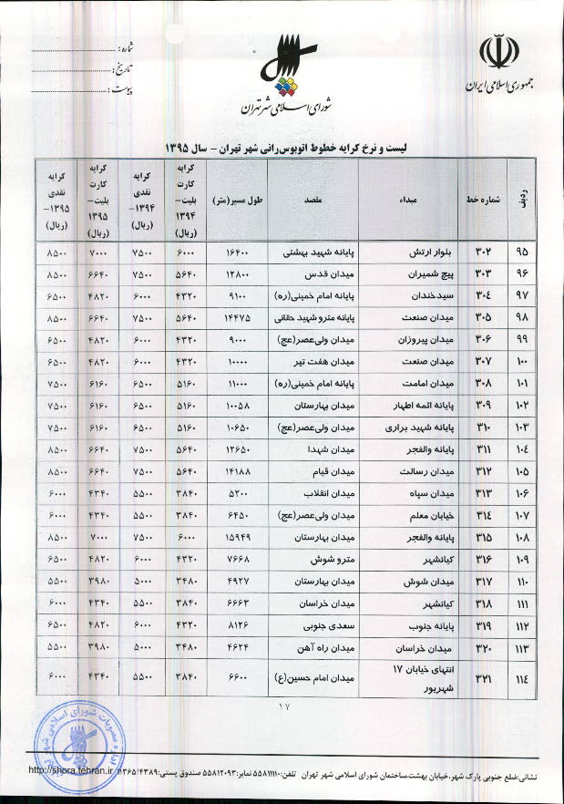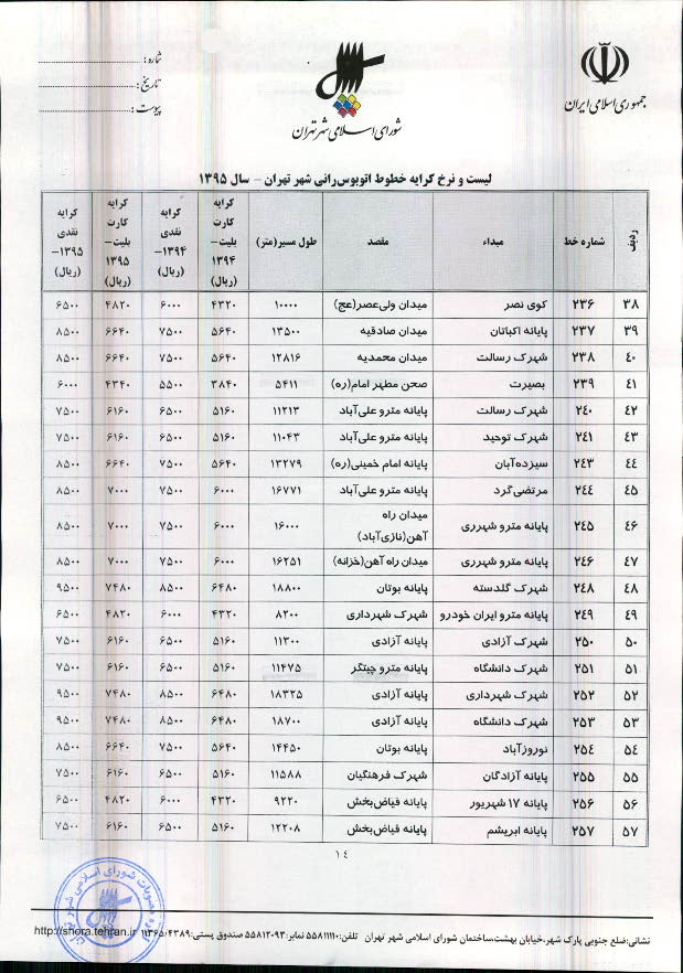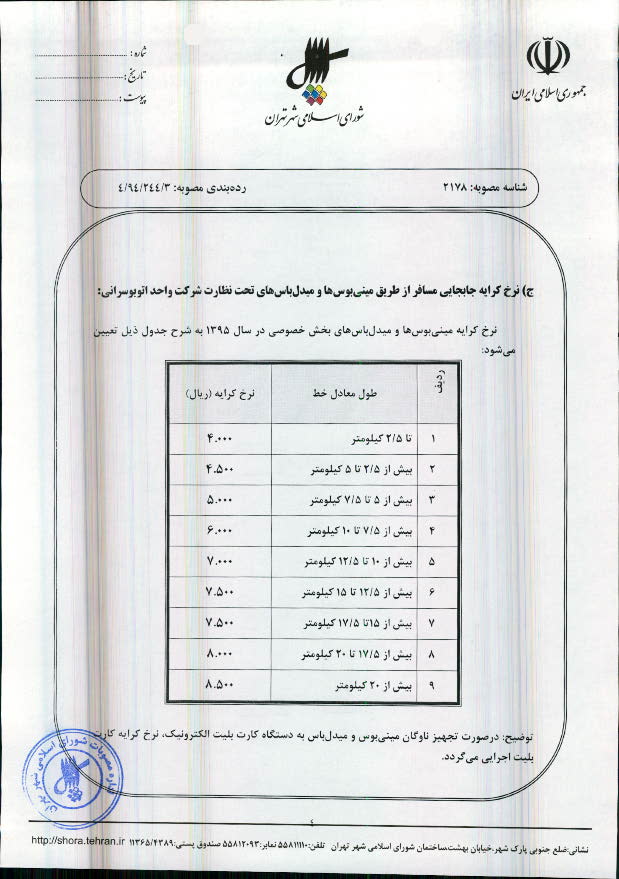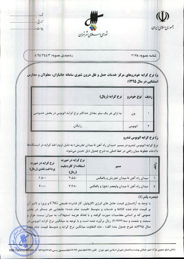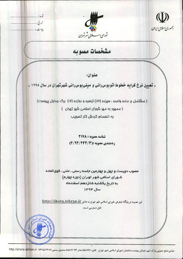 تعیین نرخ کرایه خطوط اتوبوسرانی و مینیبوسرانی شهر تهران در سال 1395