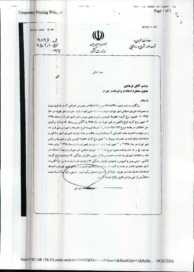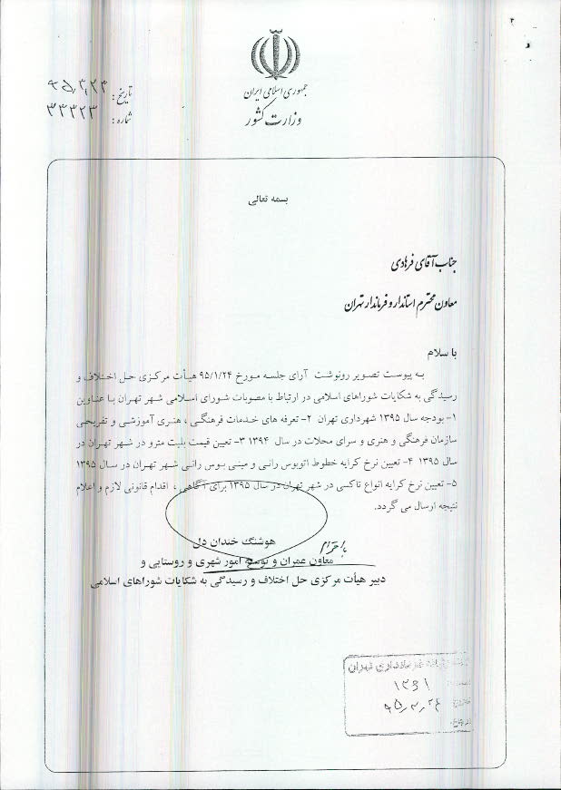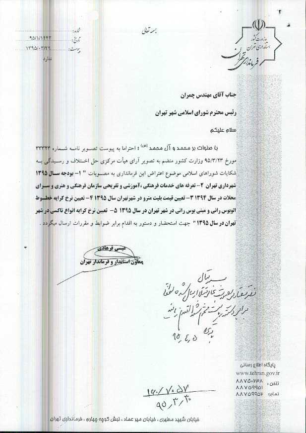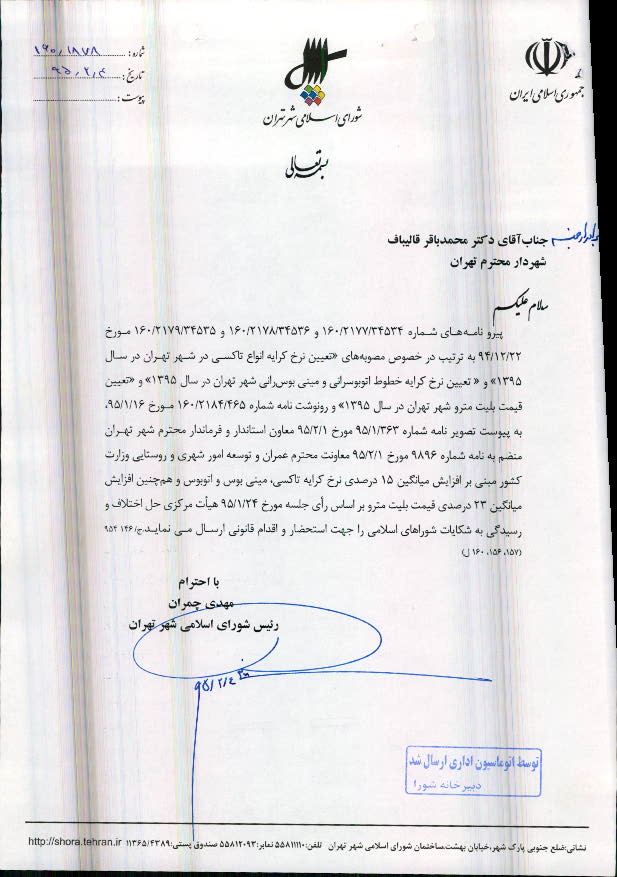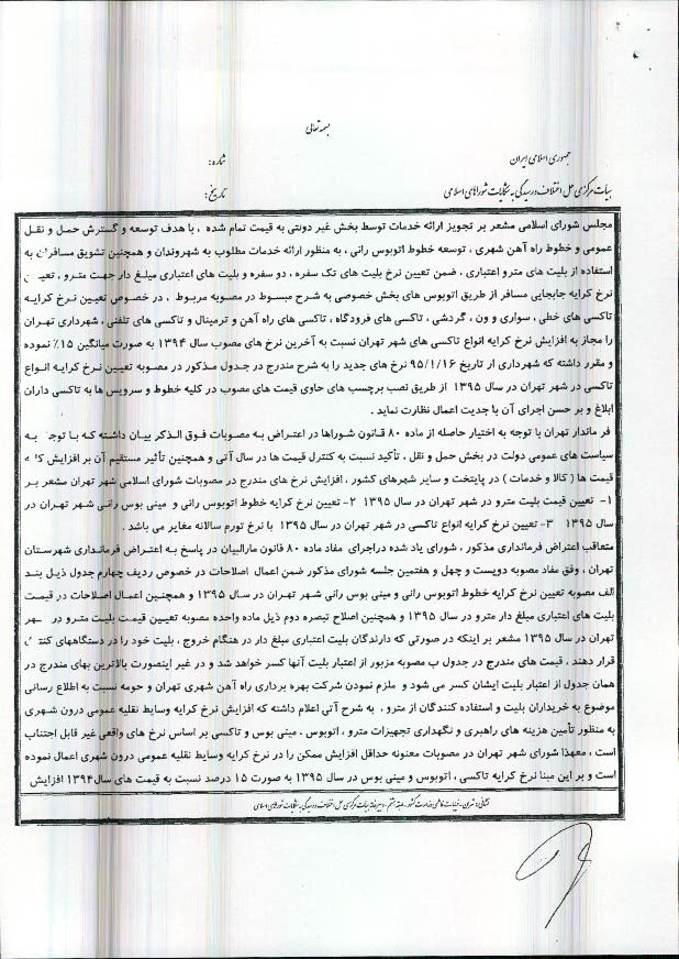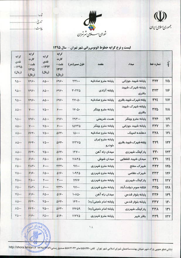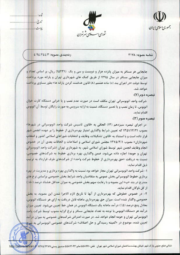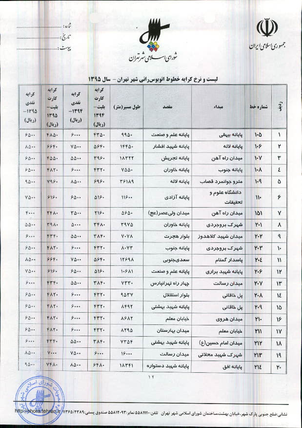 تعیین نرخ کرایه خطوط اتوبوسرانی و مینیبوسرانی شهر تهران در سال 1395