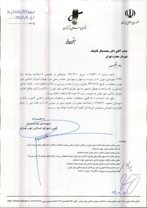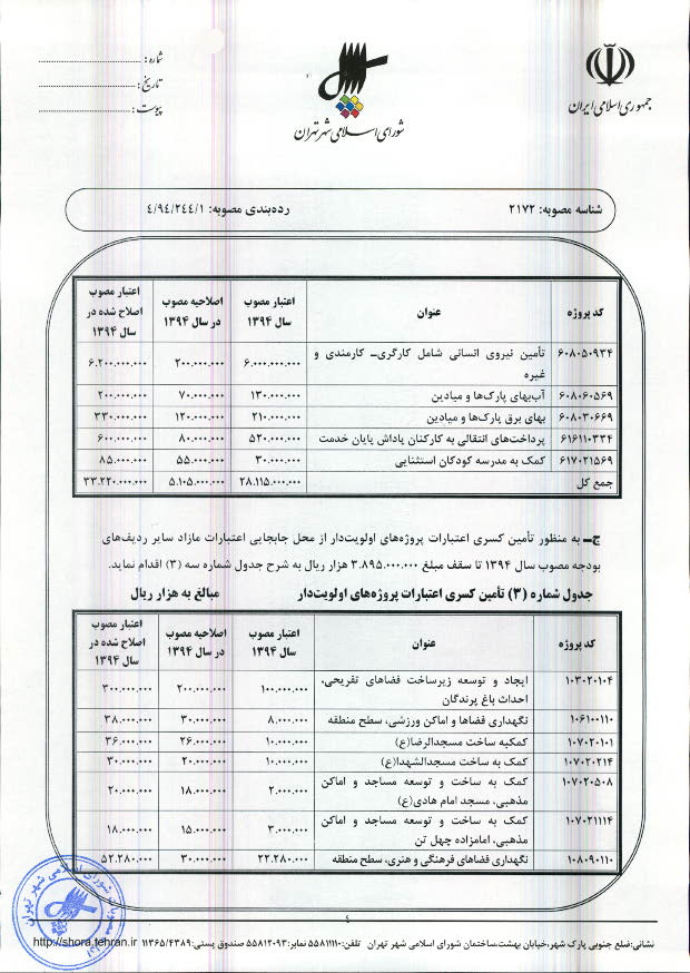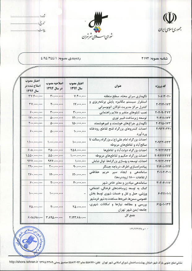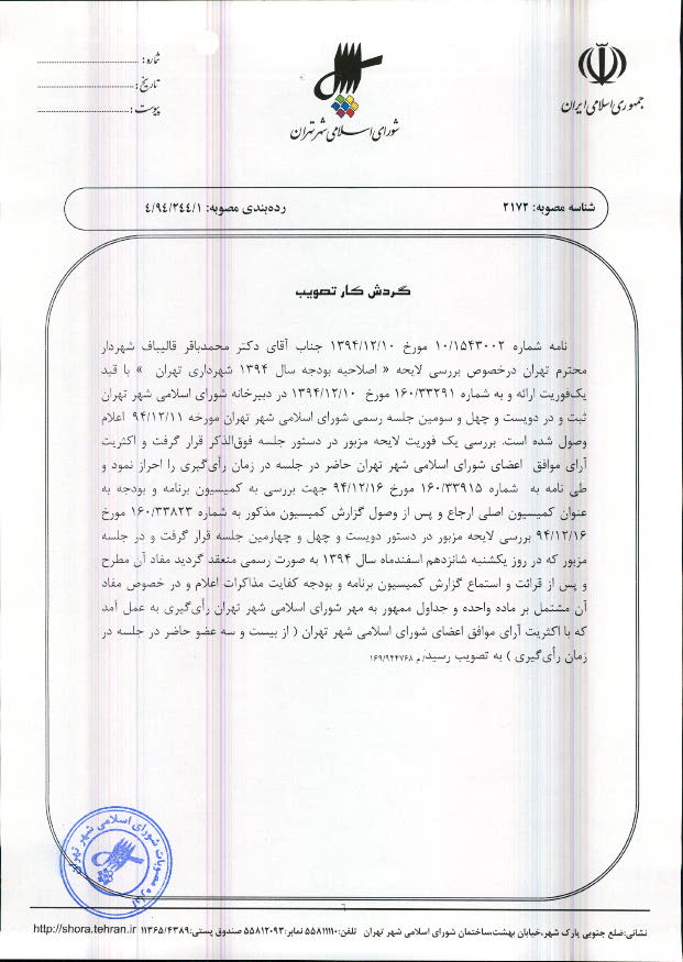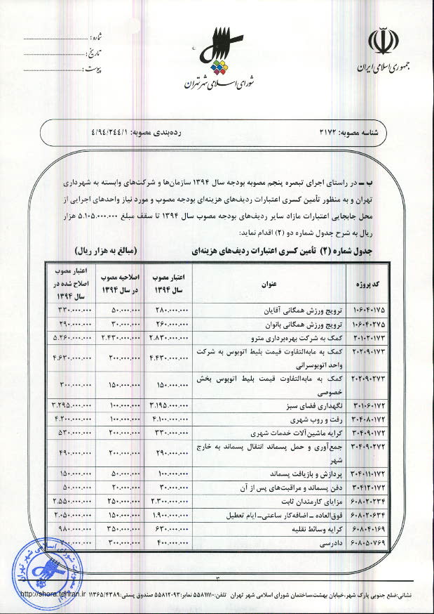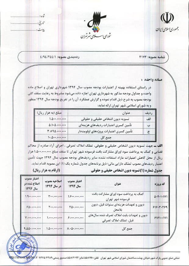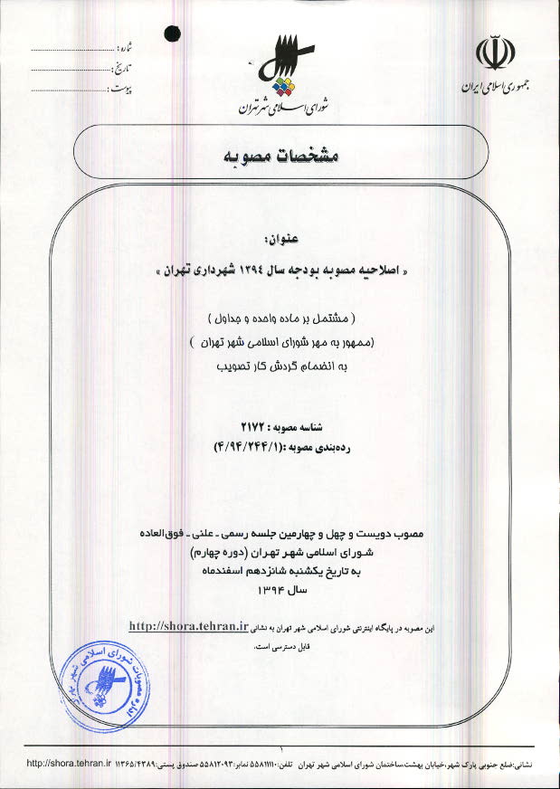 اصلاحیه مصوبه بودجه سال 1394 شهرداری تهران