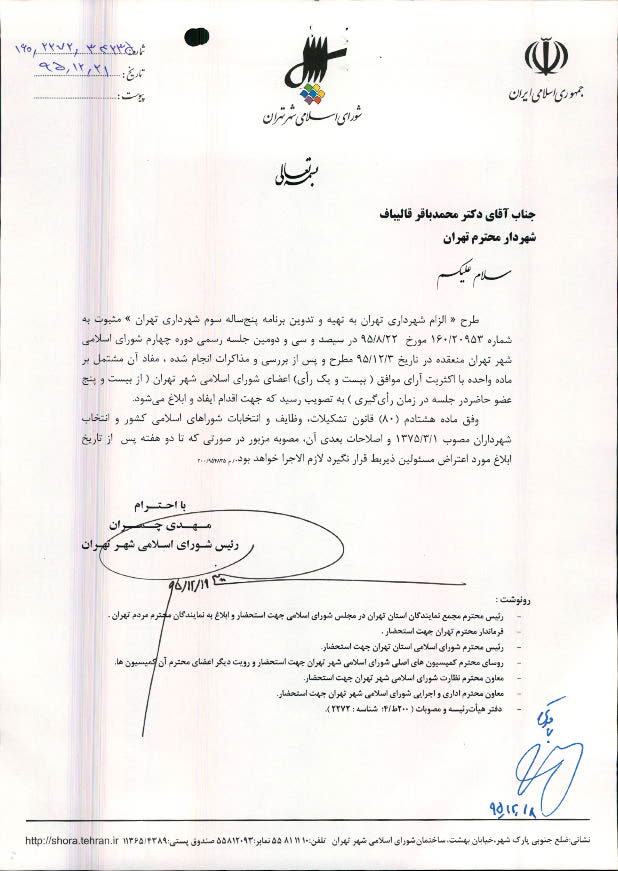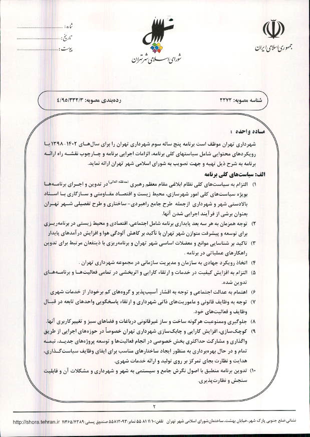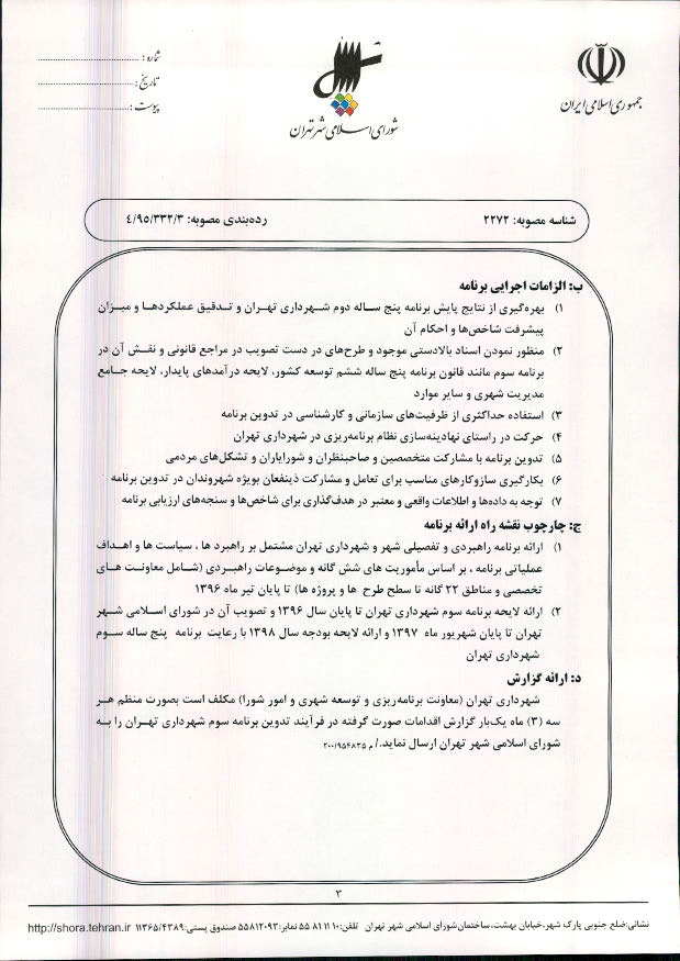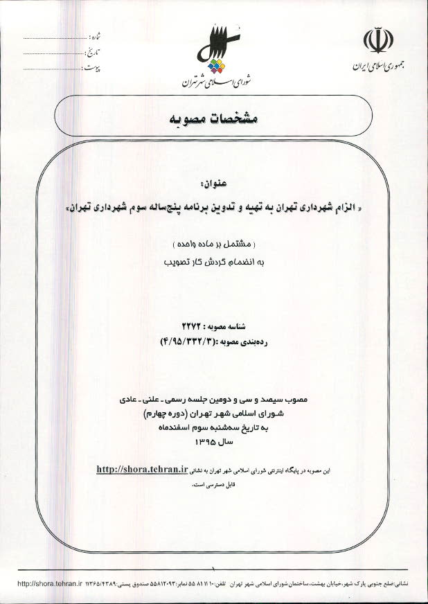 الزام شهرداری تهران به تهیه و تدوین برنامه پنج ساله سوم شهرداری تهران