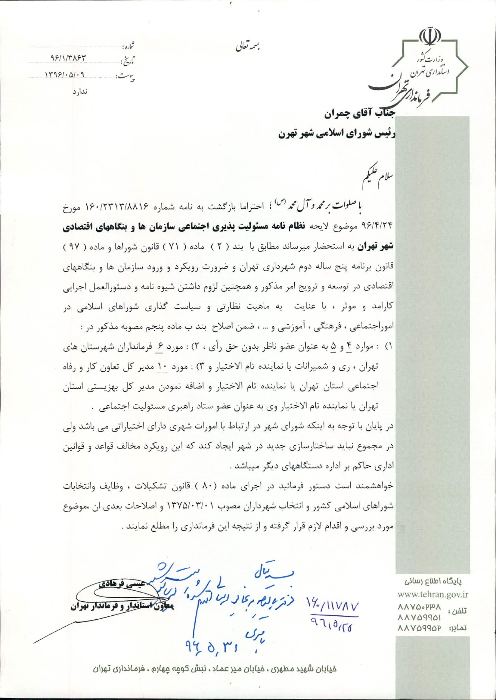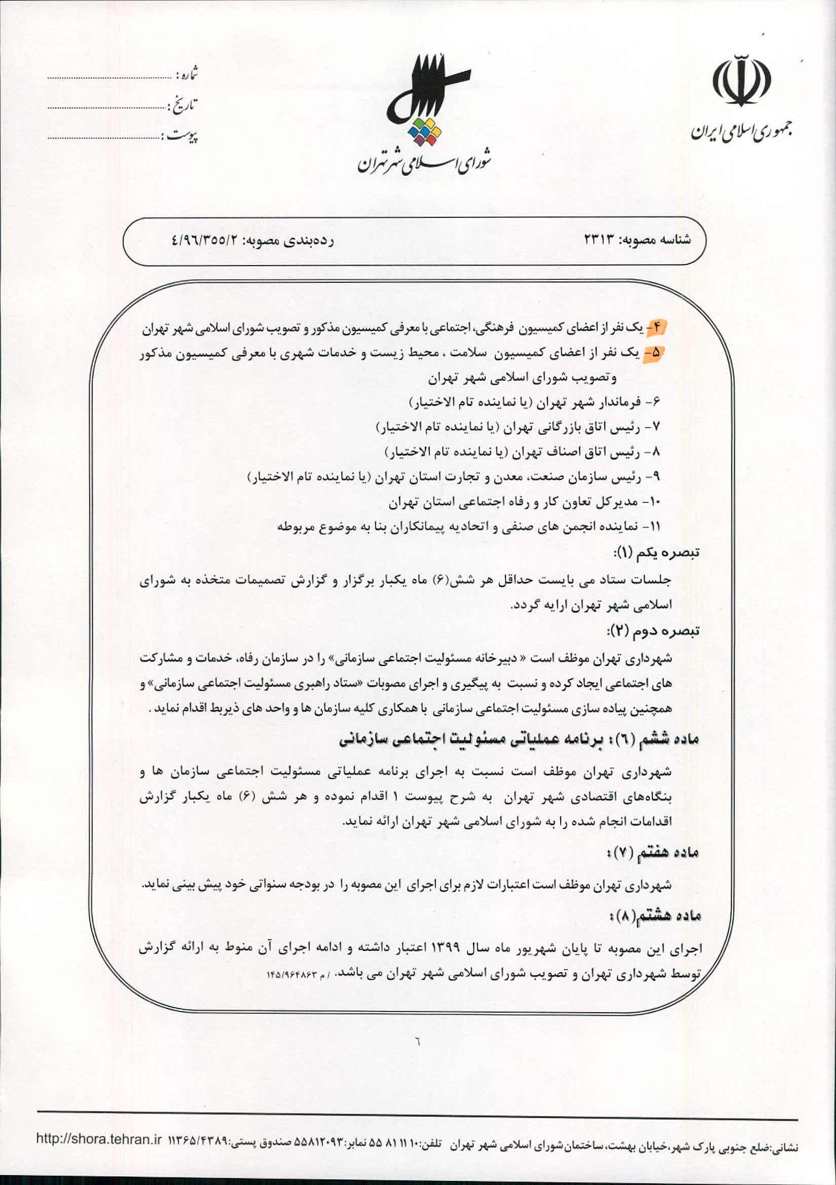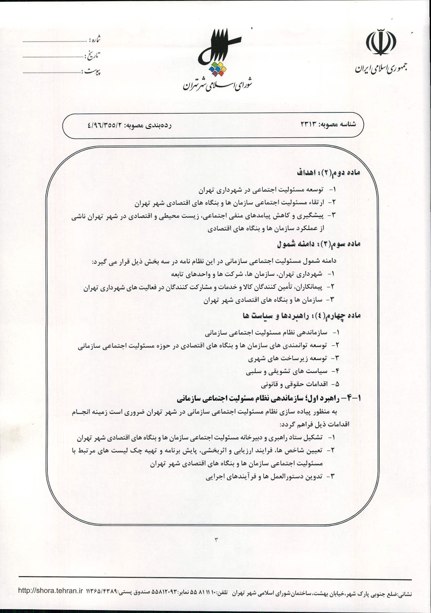 نظامنامه مسئولیتپذیری اجتماعی سازمانها و بنگاههای اقتصادی شهر تهران