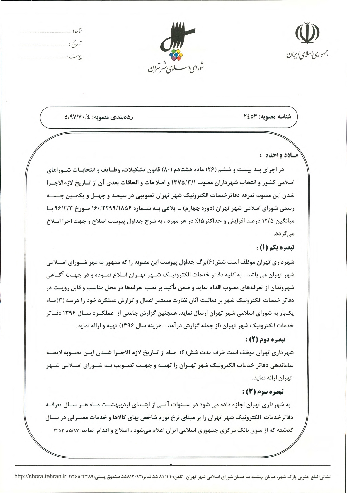 معرفی سامانه جامع مصوبات شورای اسلامی شهر تهران
