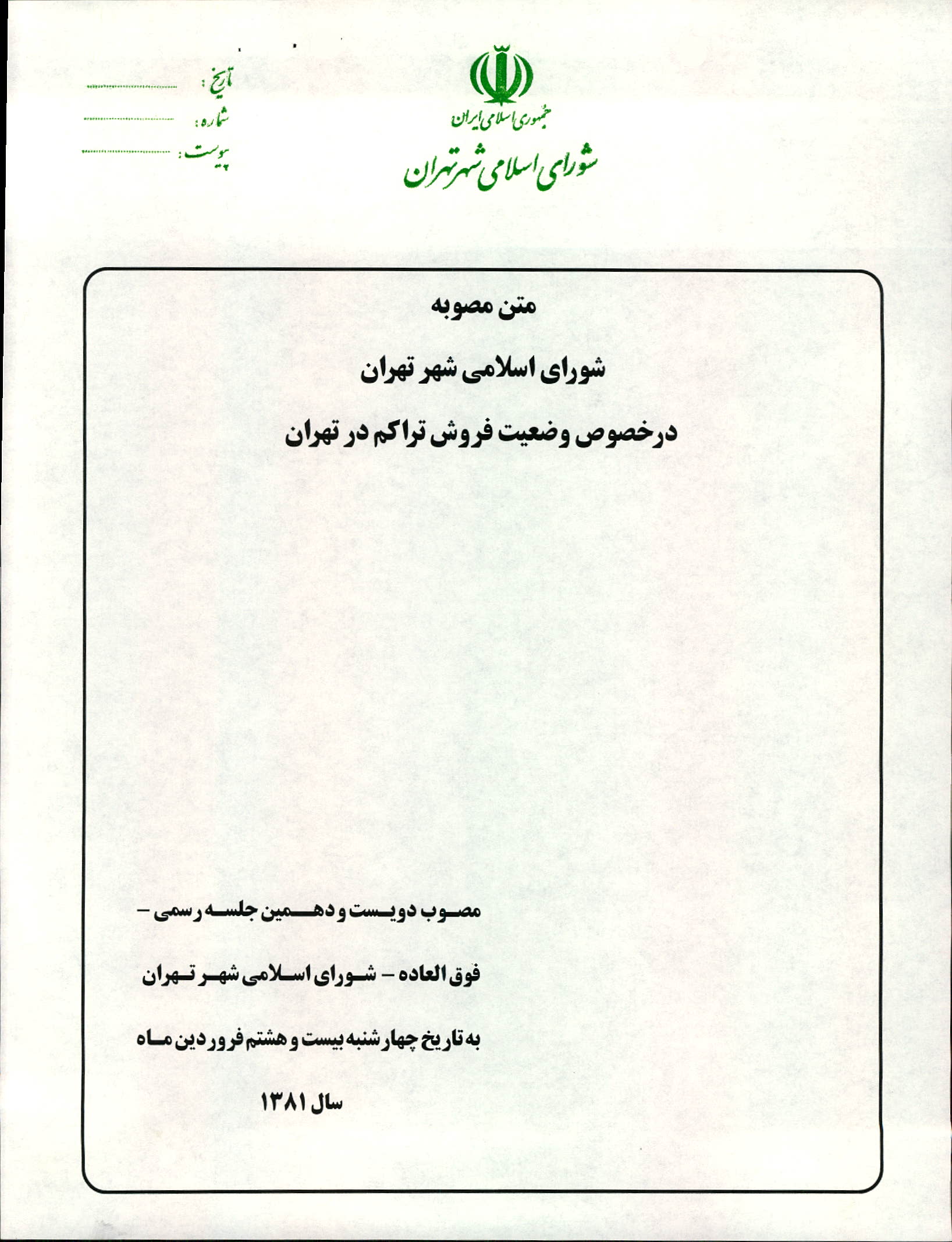 مصوبه شوراي اسلامي شهر تهران در خصوص وضعيت فروش تراكم در تهران