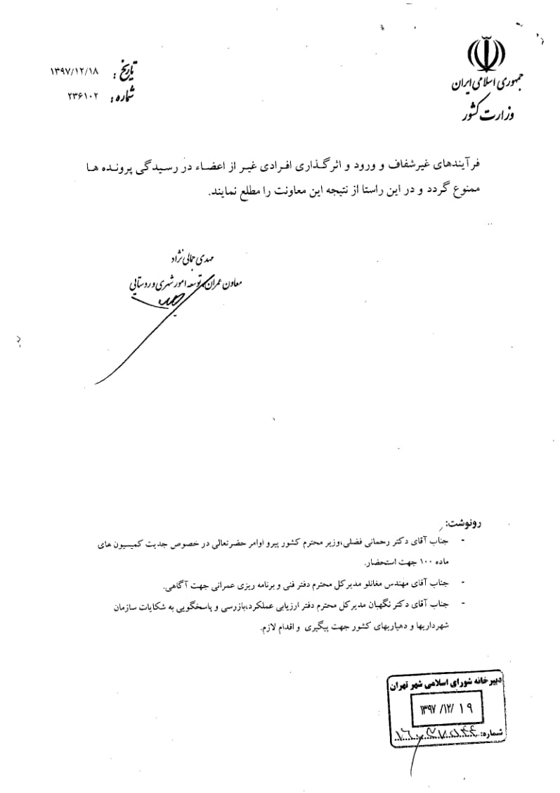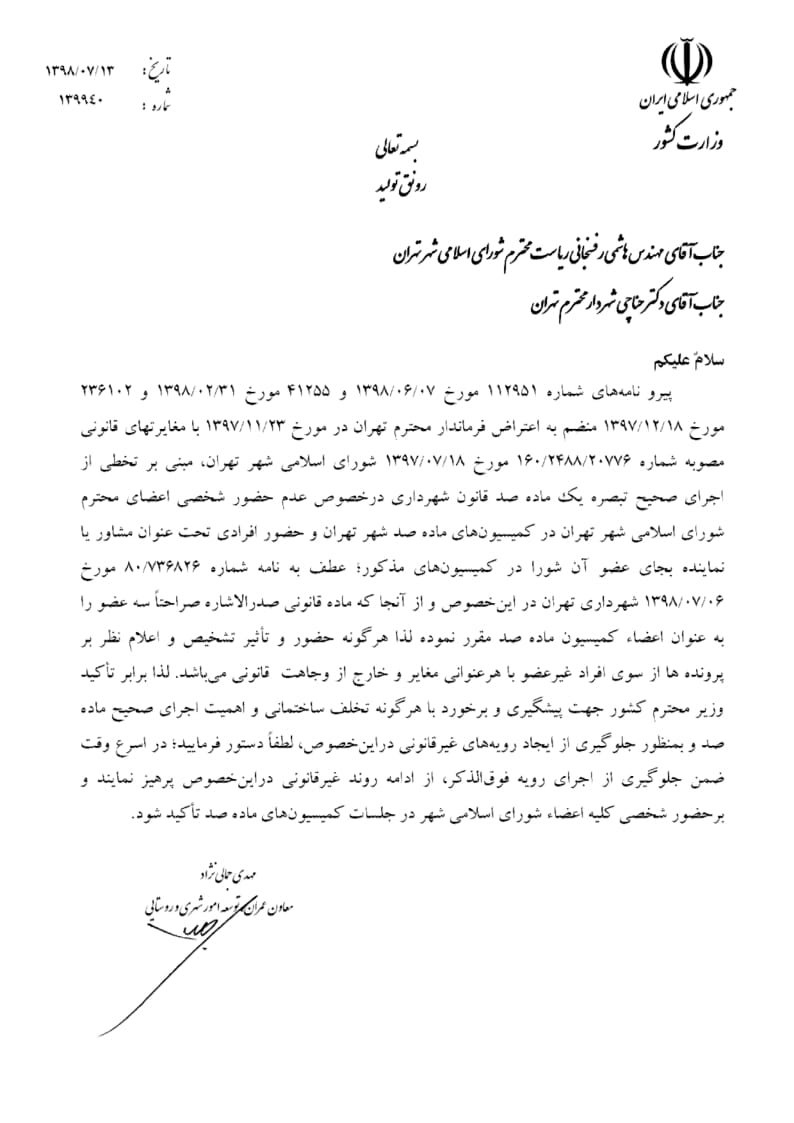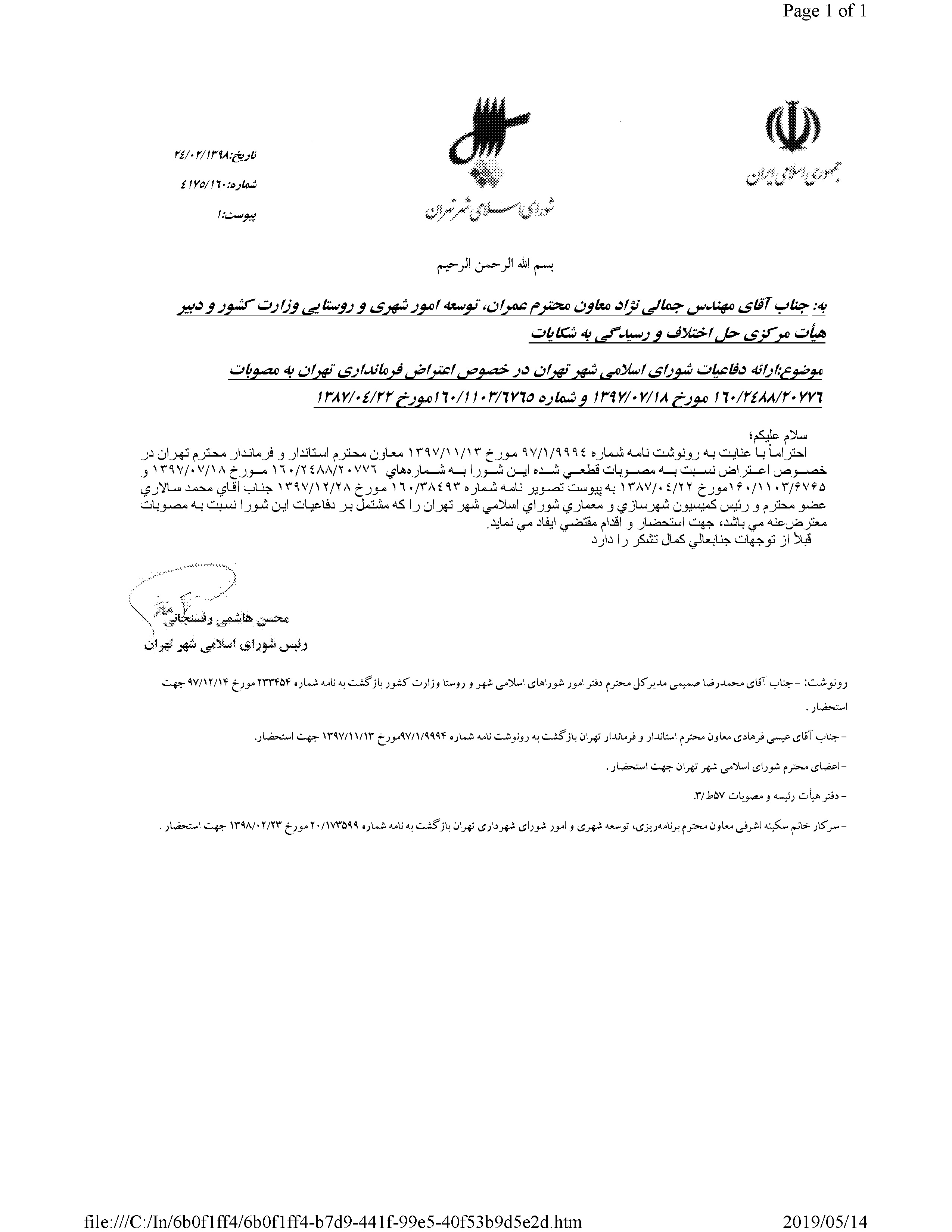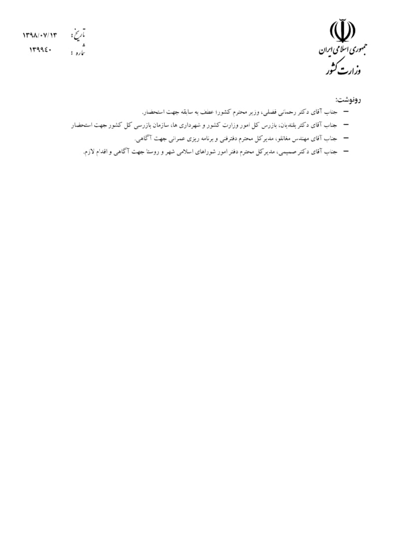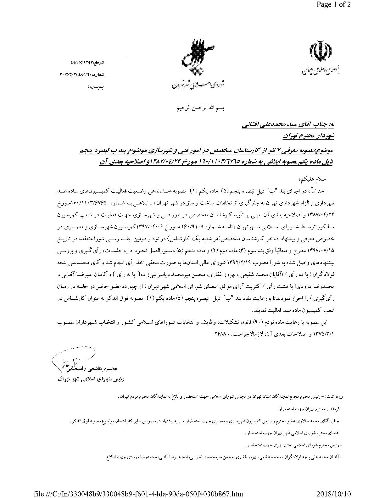 معرفي 7 نفر از كارشناسان متخصص در امور فني و شهرسازي موضوع بند ب تبصره پنجم ذيل ماده يكم مصوبه ابلاغي به شماره 160/1103/6765 مورخ 1387/04/22و اصلاحيه بعدي آن