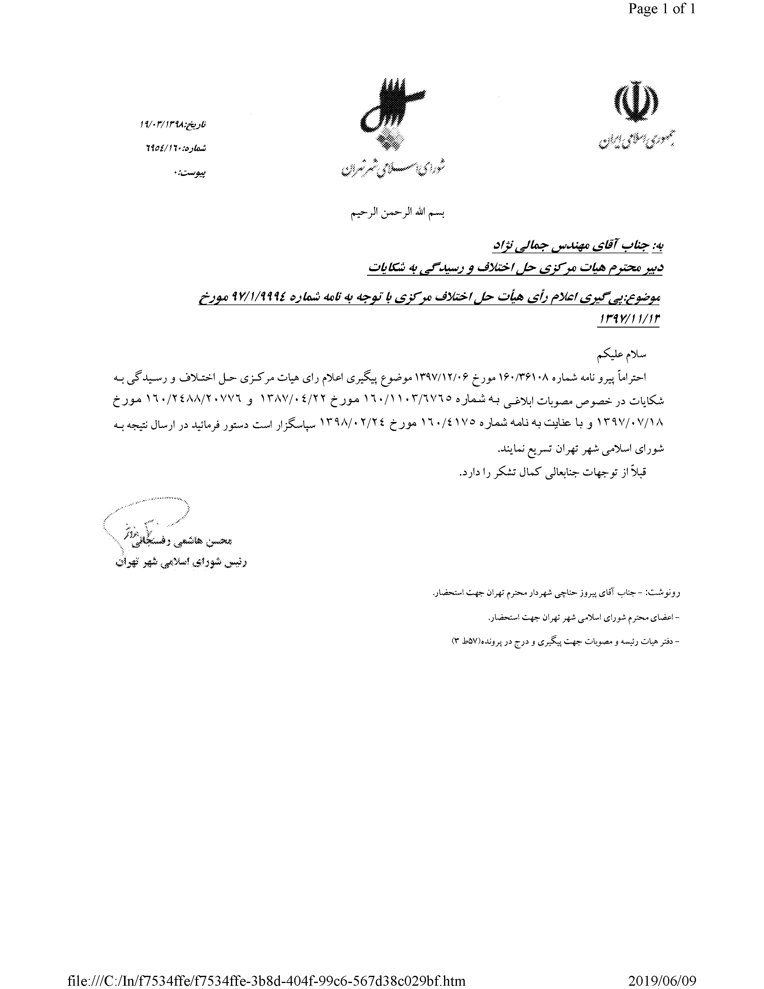 تاریخ صدور(ابلاغ) : 1397/07/18