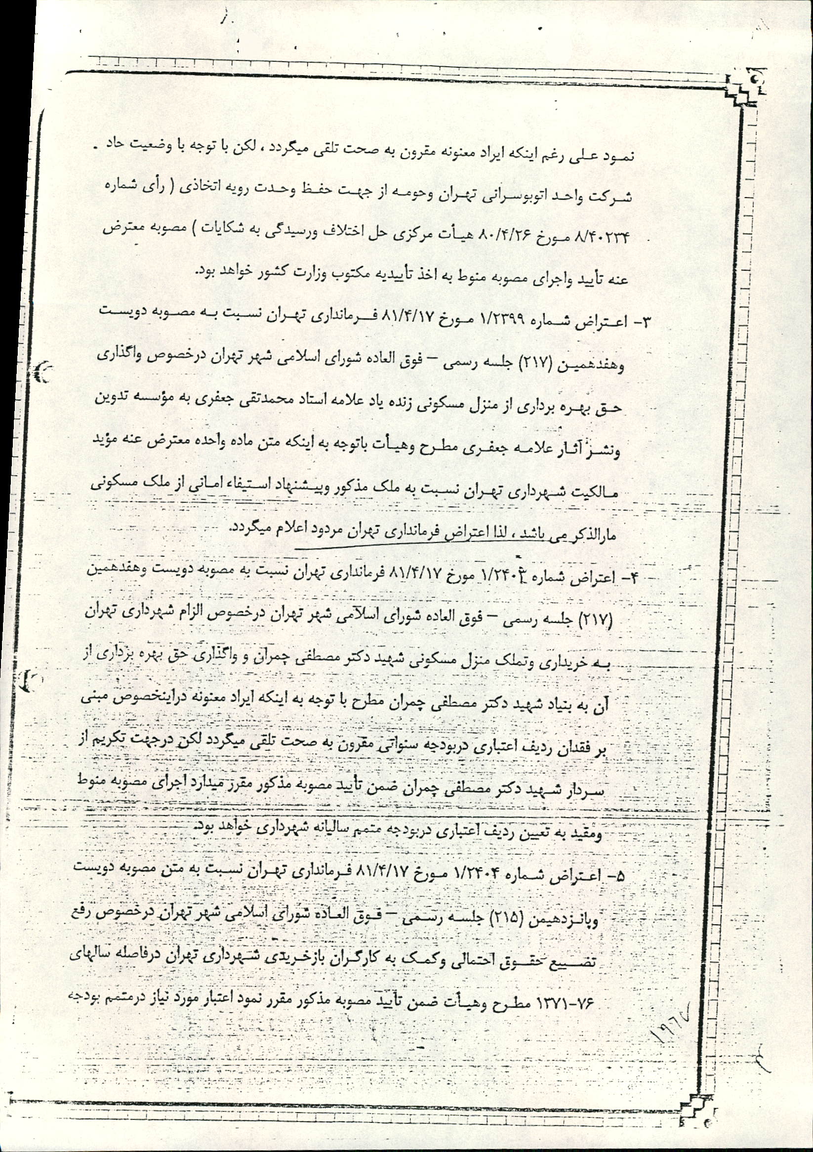 واگذاري حق بهره برداري از منزل مسكوني زنده ياد علامه استاد محمد تقي جعفري به موسسه تدوين و نشر آثار علامه جعفري