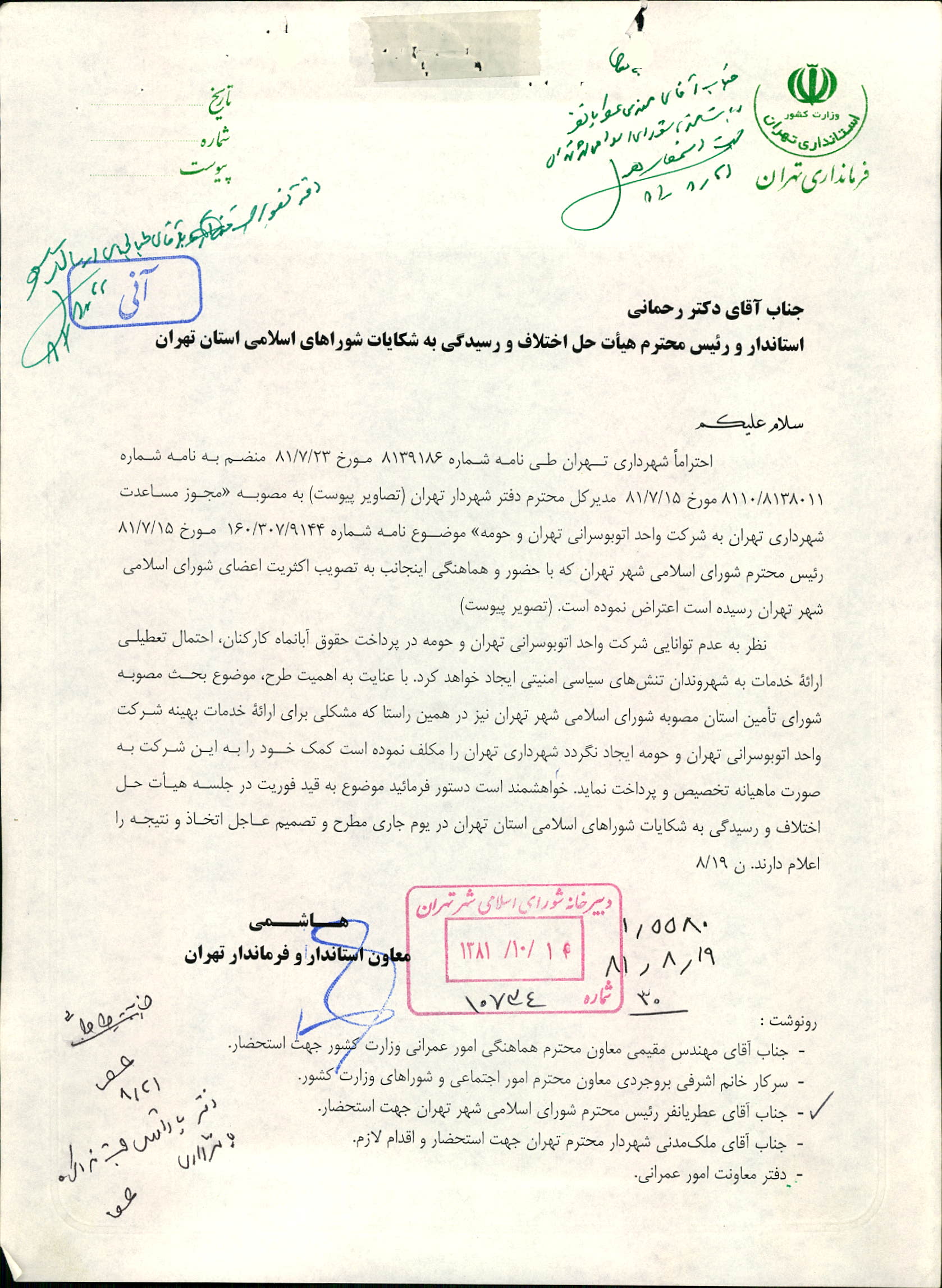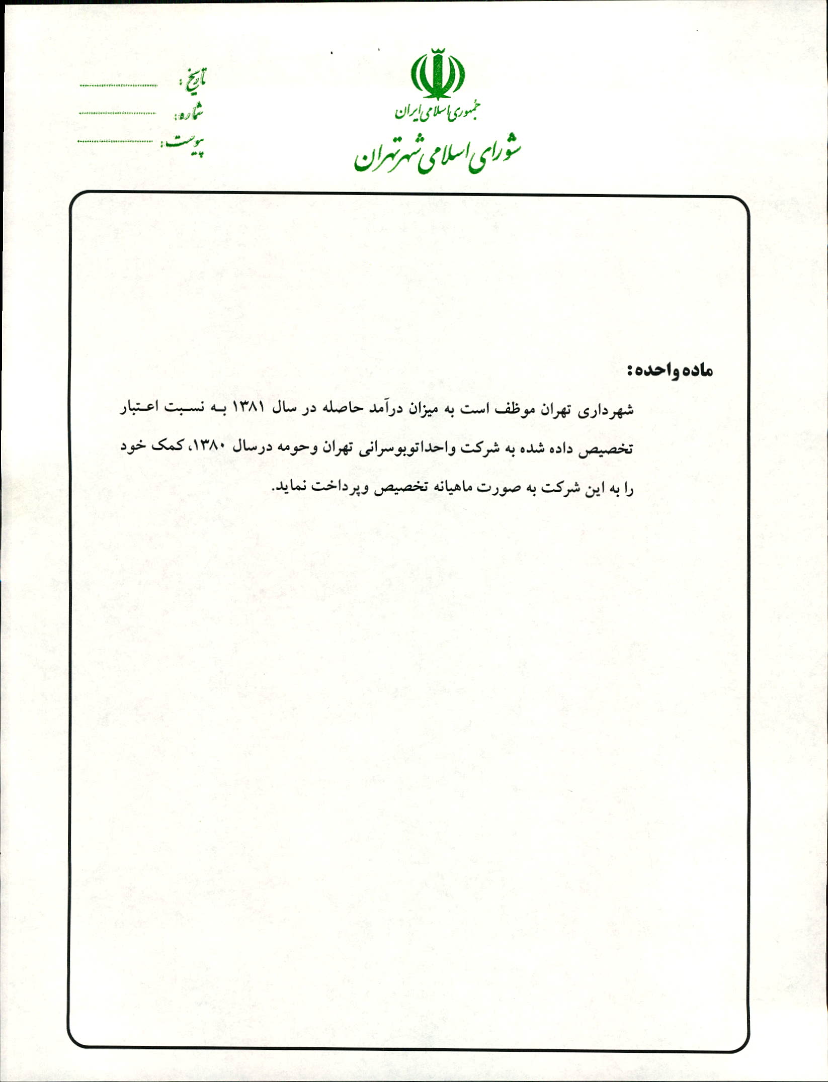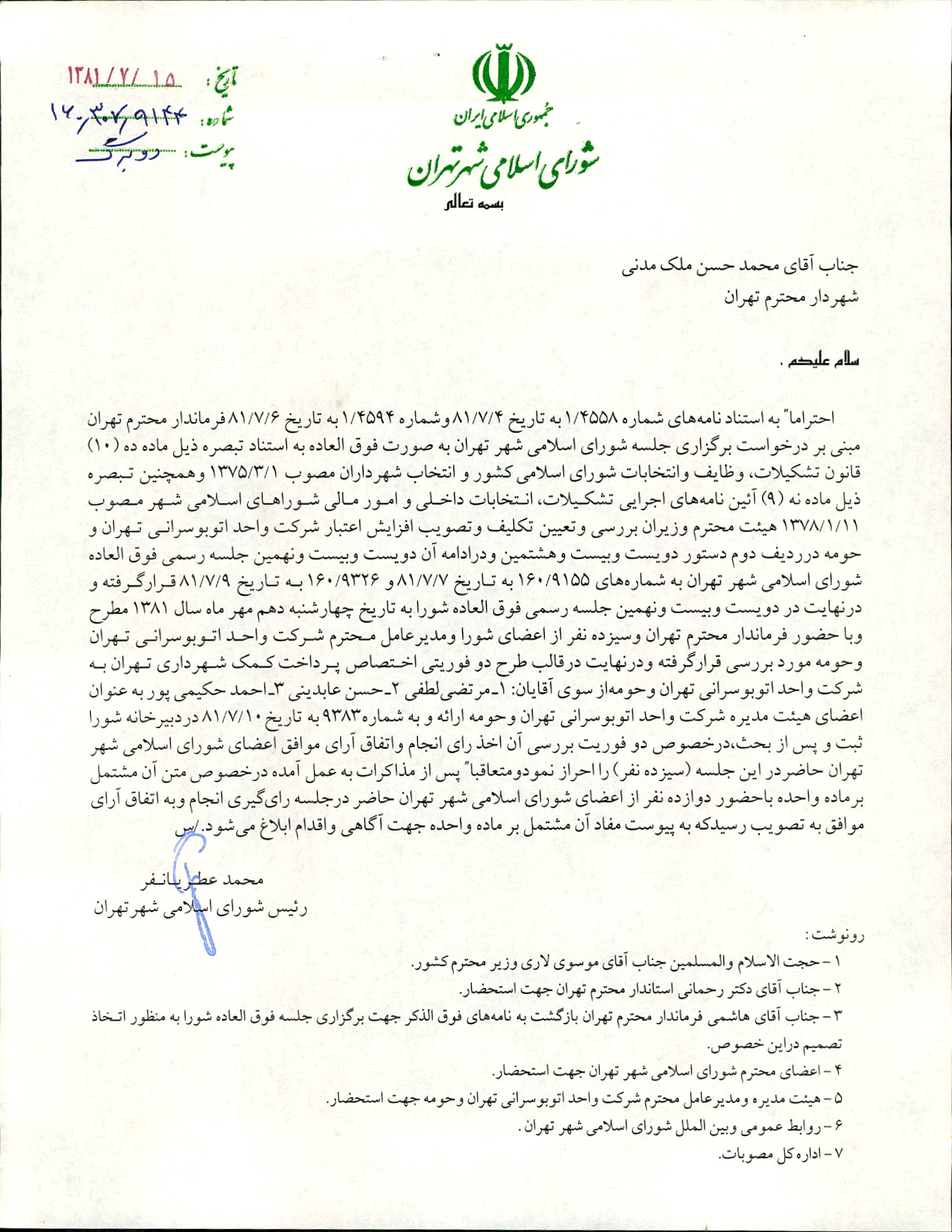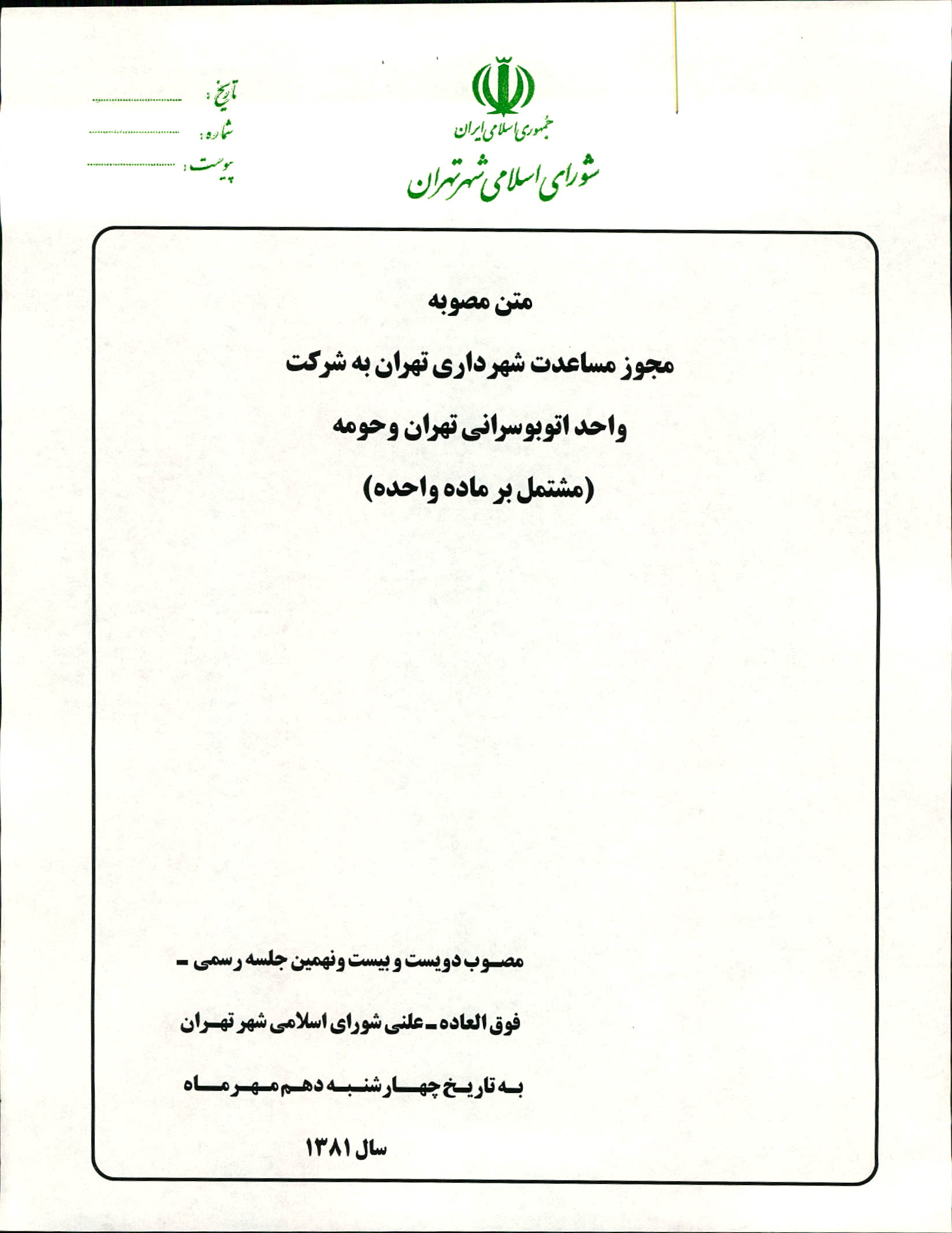 مجوز مساعدت شهرداری تهران به شرکت واحد اتوبوسرانی تهران و حومه