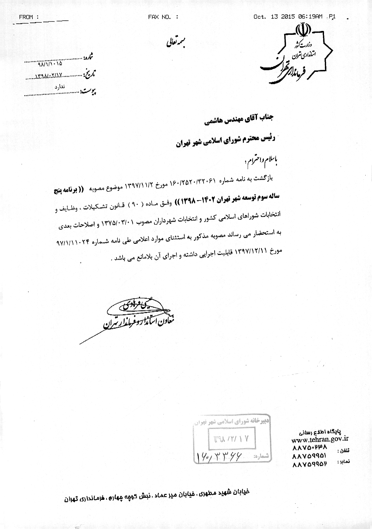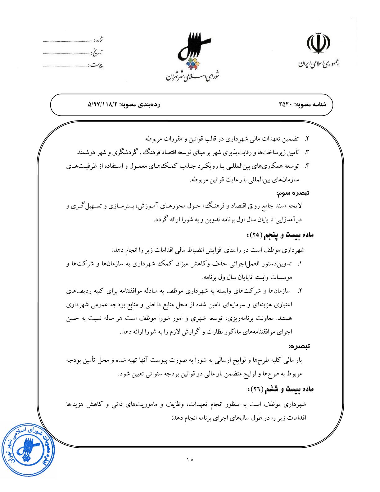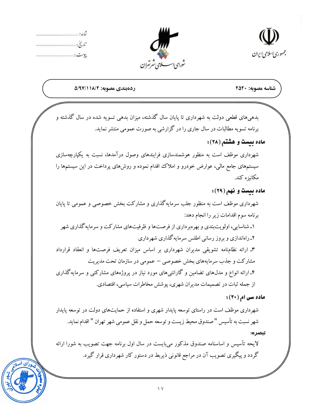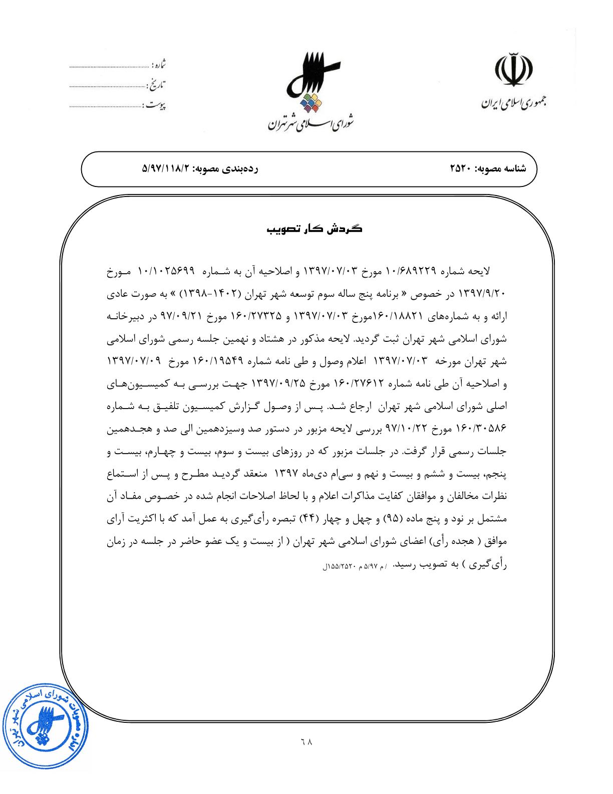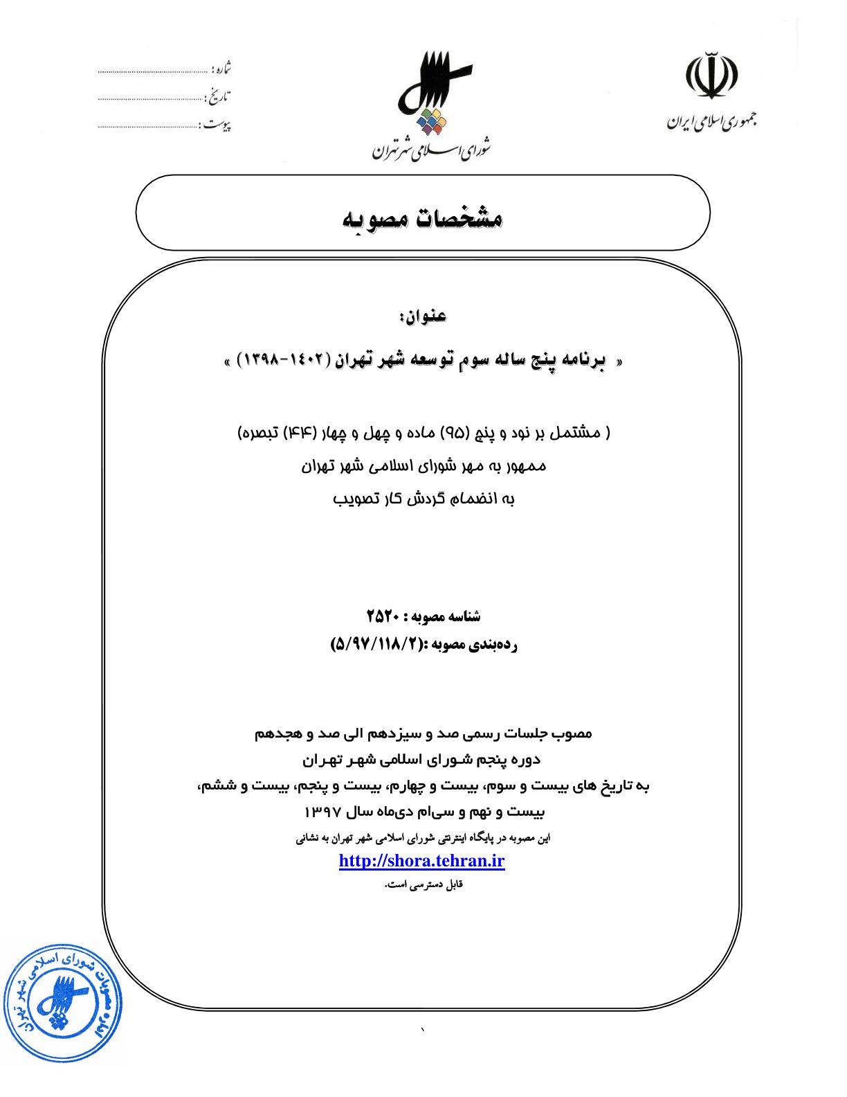 برنامه پنج ساله سوم توسعه شهر تهران (1402-1398)