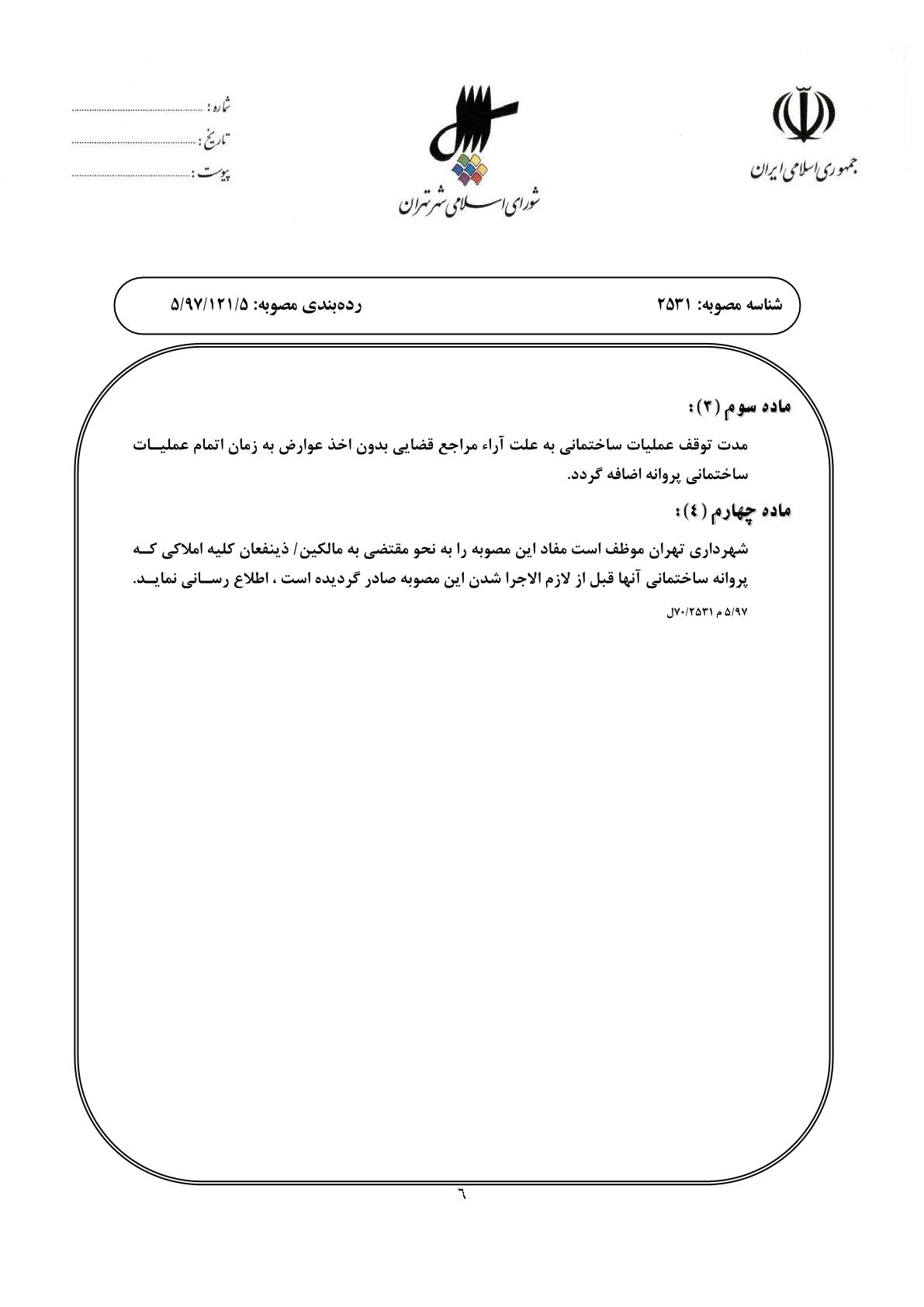 عوارض مجوز افزايش مهلت شروع و اتمام عمليات ساختماني