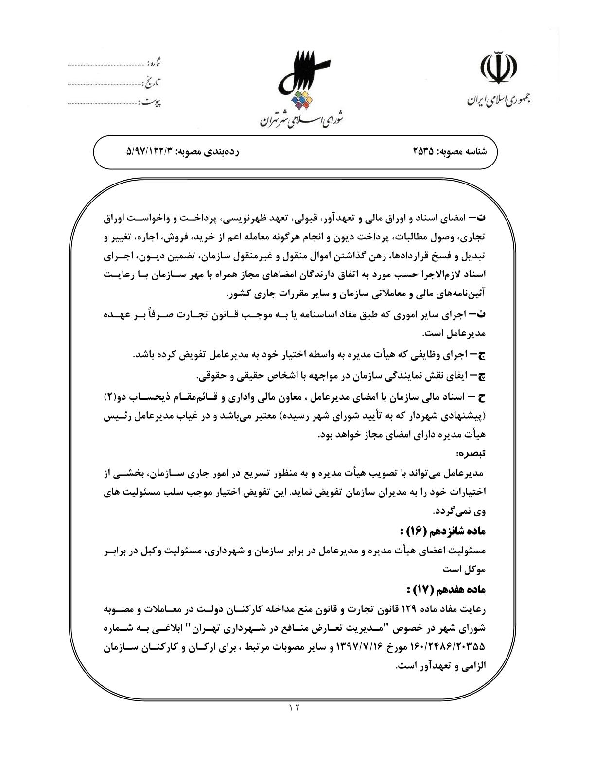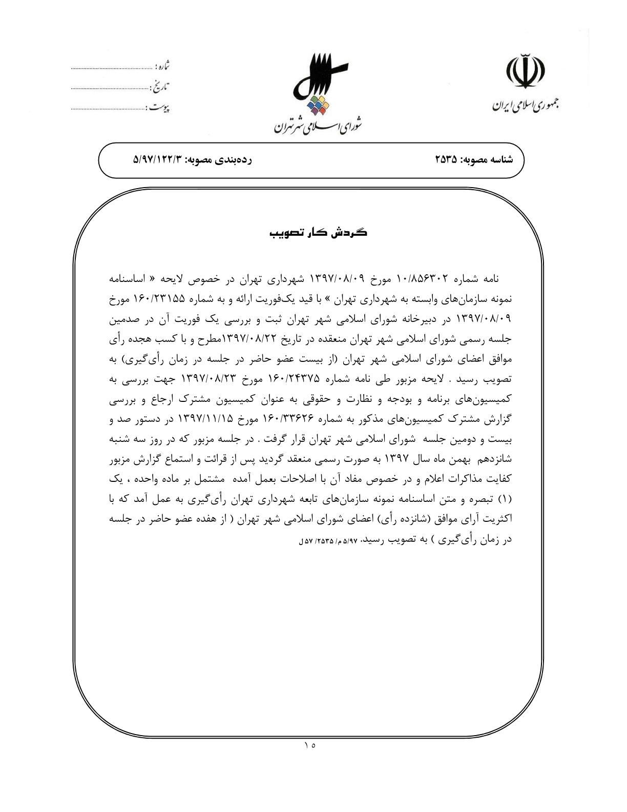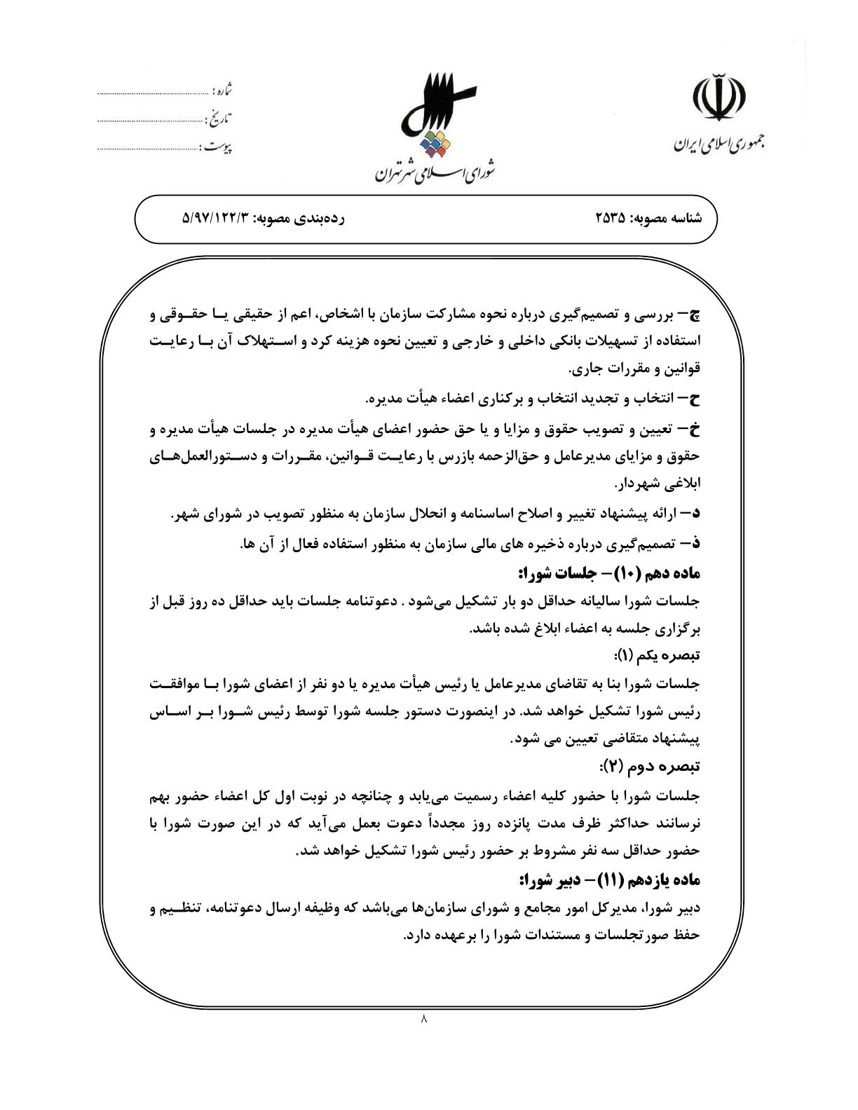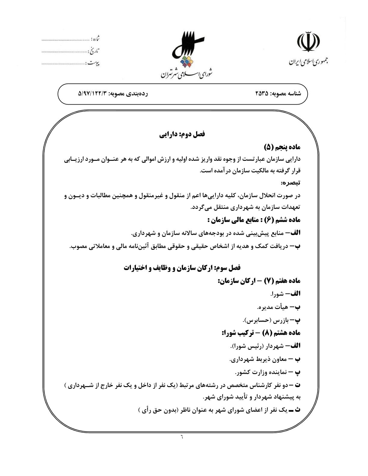 اساسنامه نمونه سازمانهاي وابسته به شهرداري تهران