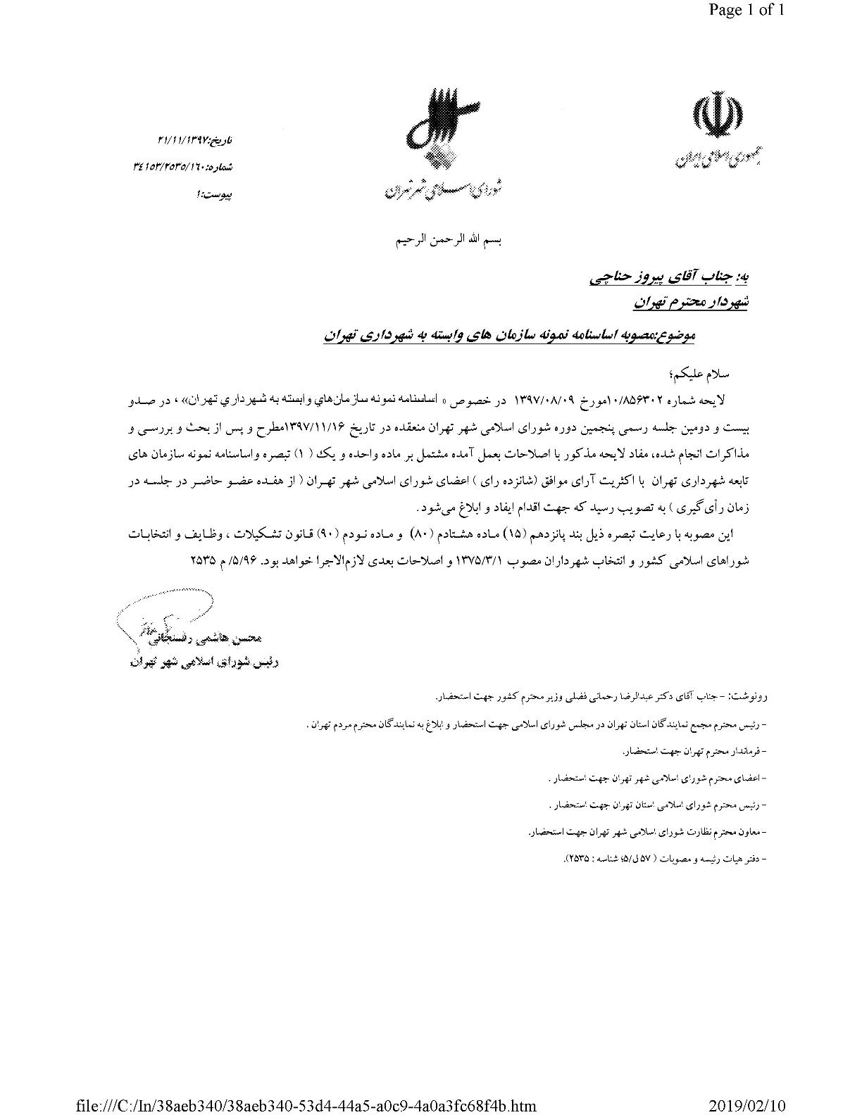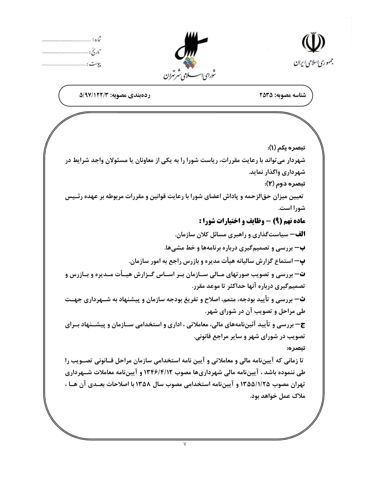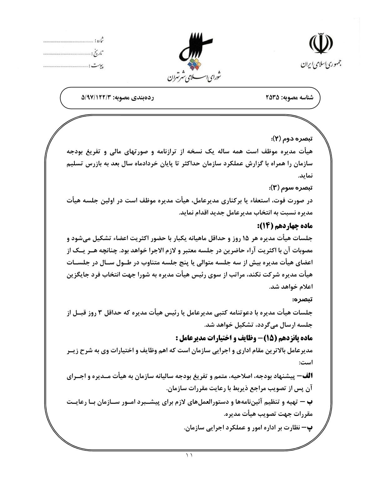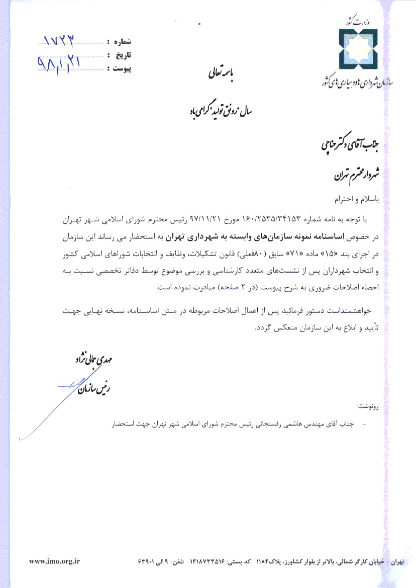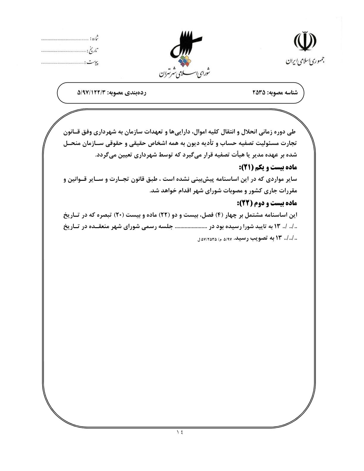 اساسنامه نمونه سازمانهاي وابسته به شهرداري تهران