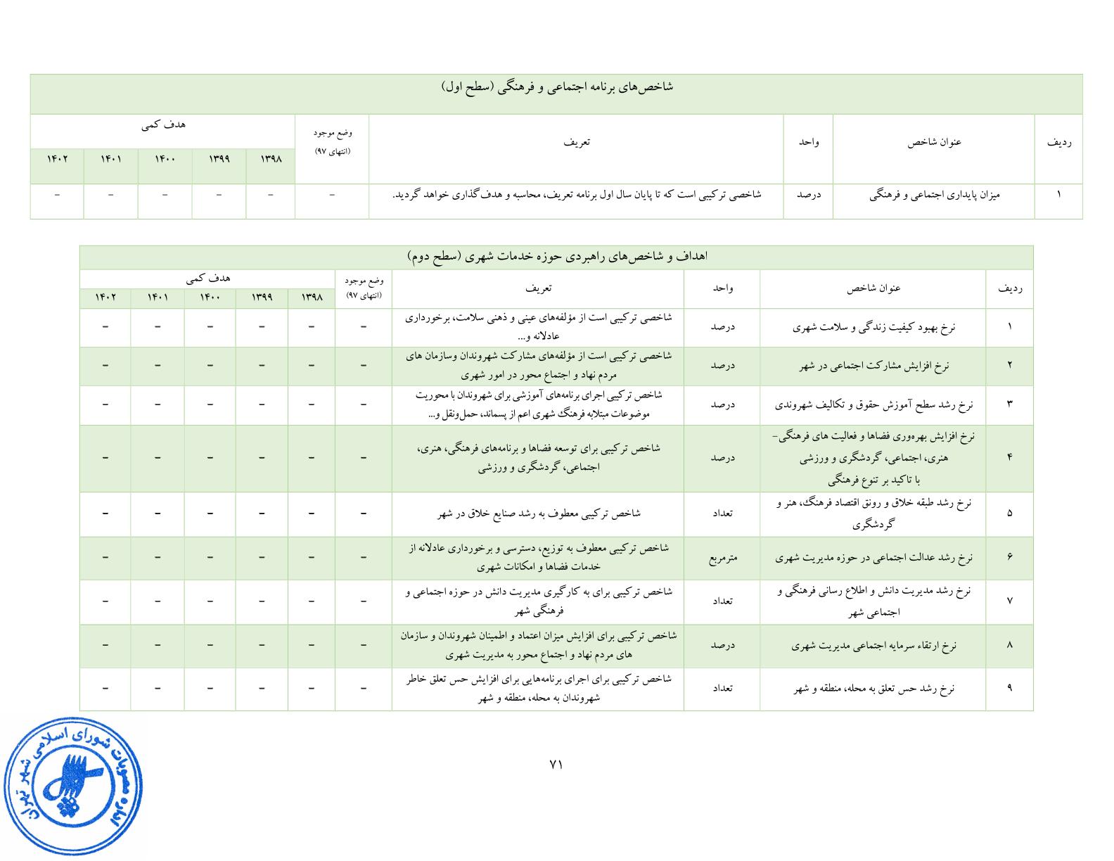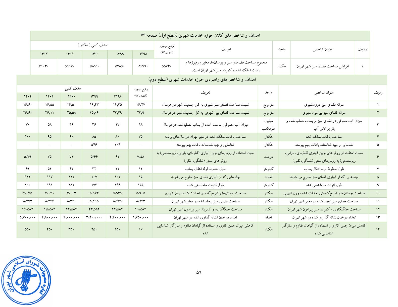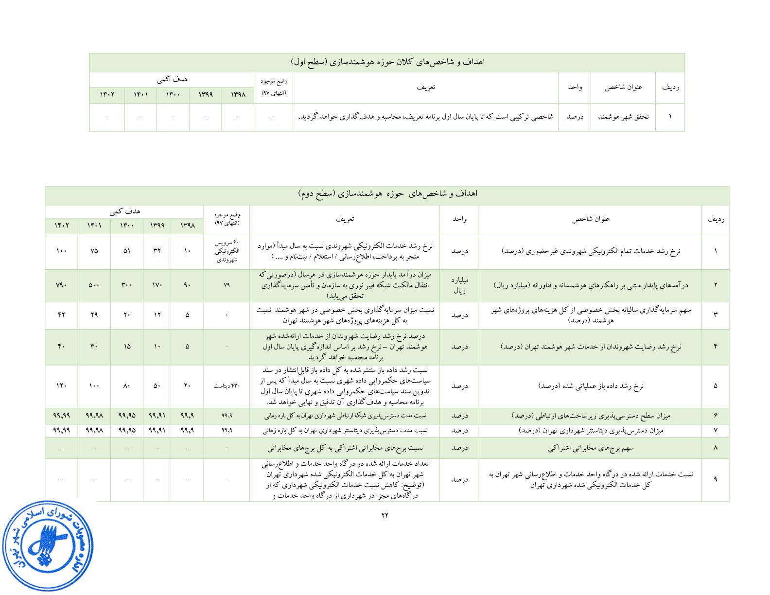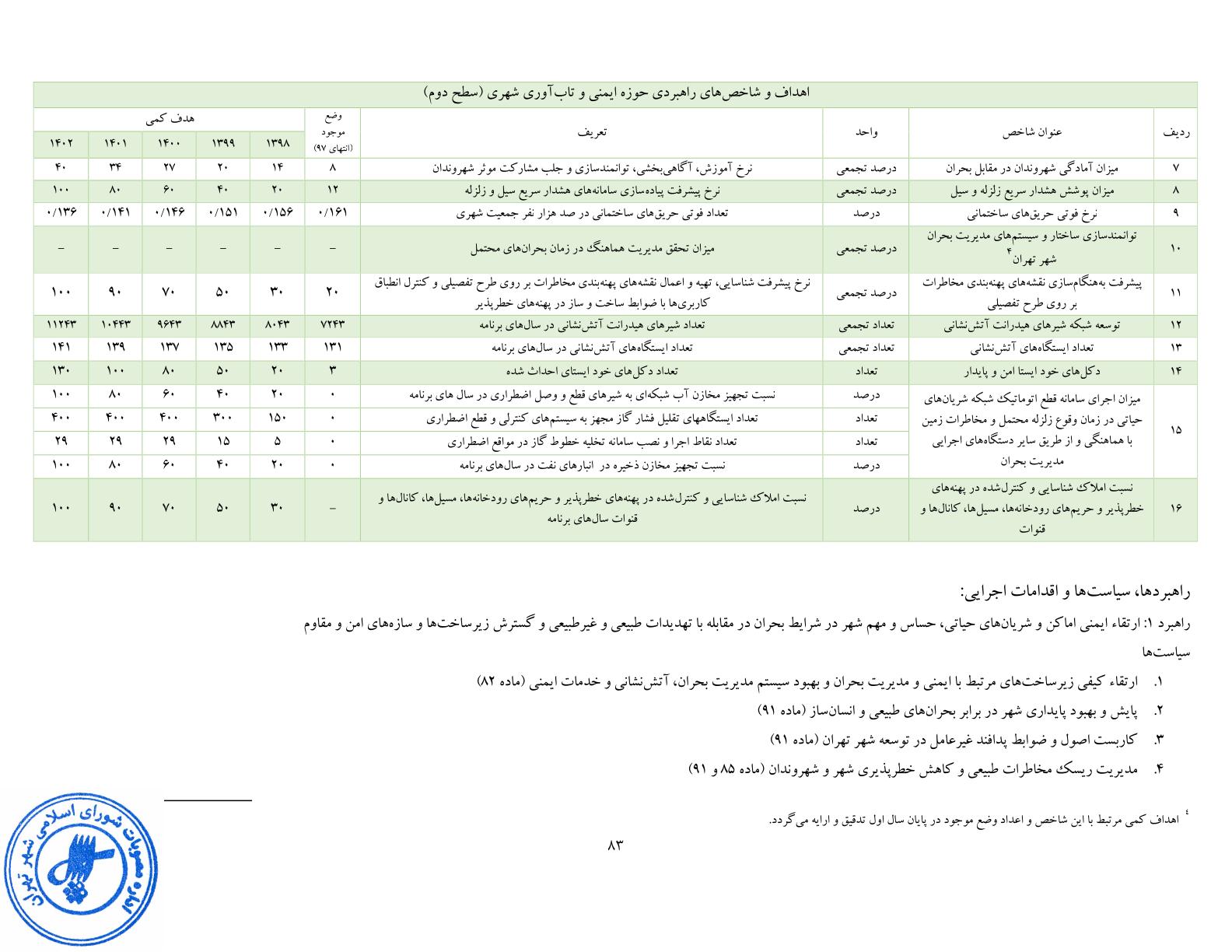 اسناد پيوست سند برنامه پنج ساله سوم توسعه شهر تهران شامل جداول كمي شاخص‌ها، چارچوب منابع مالي و جداول منابع و مصارف