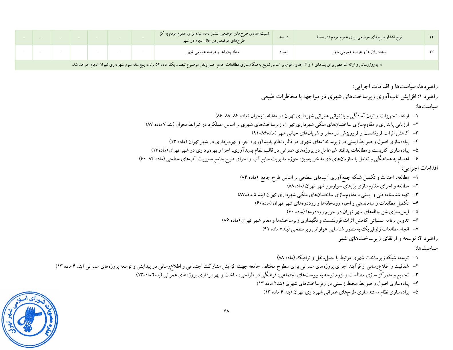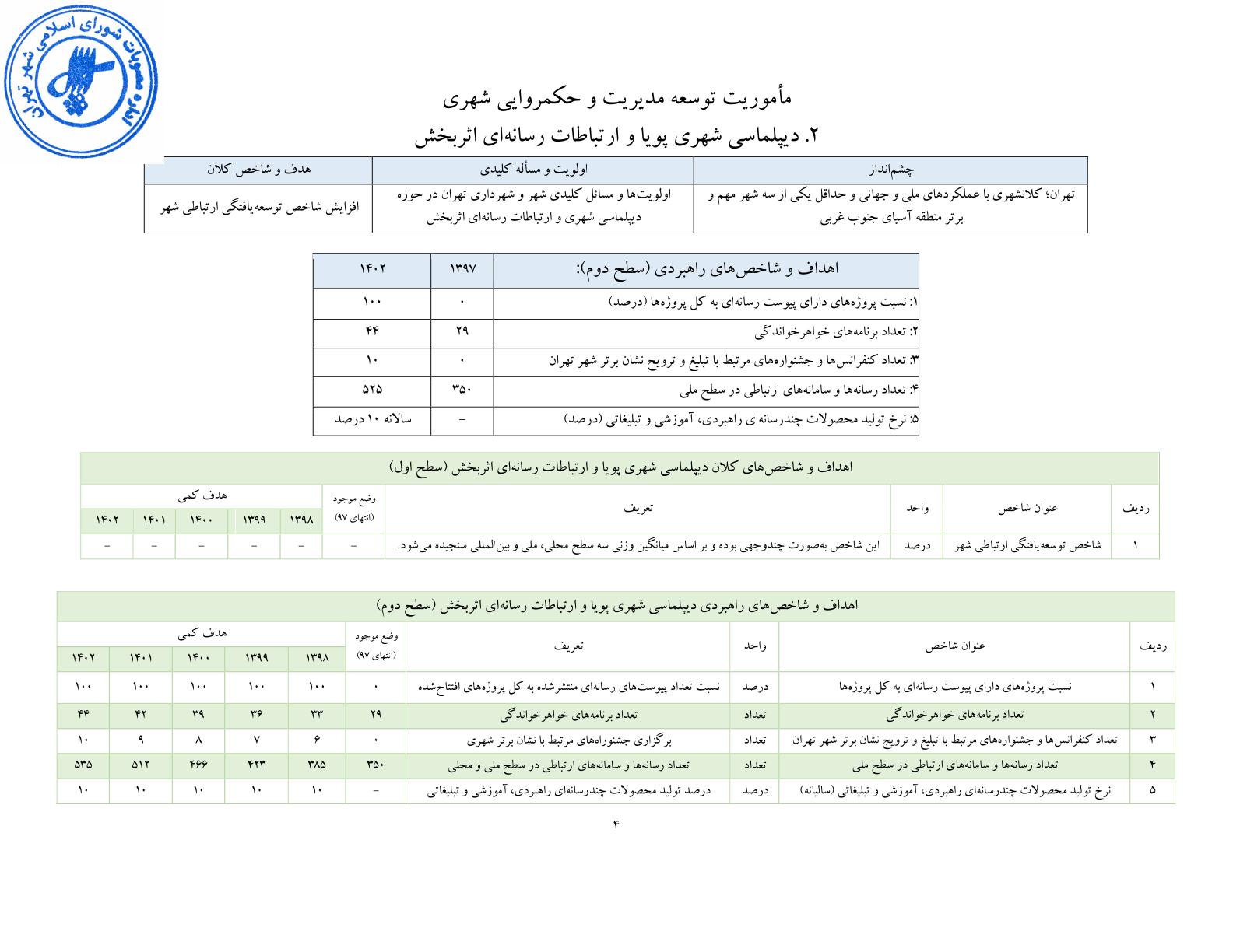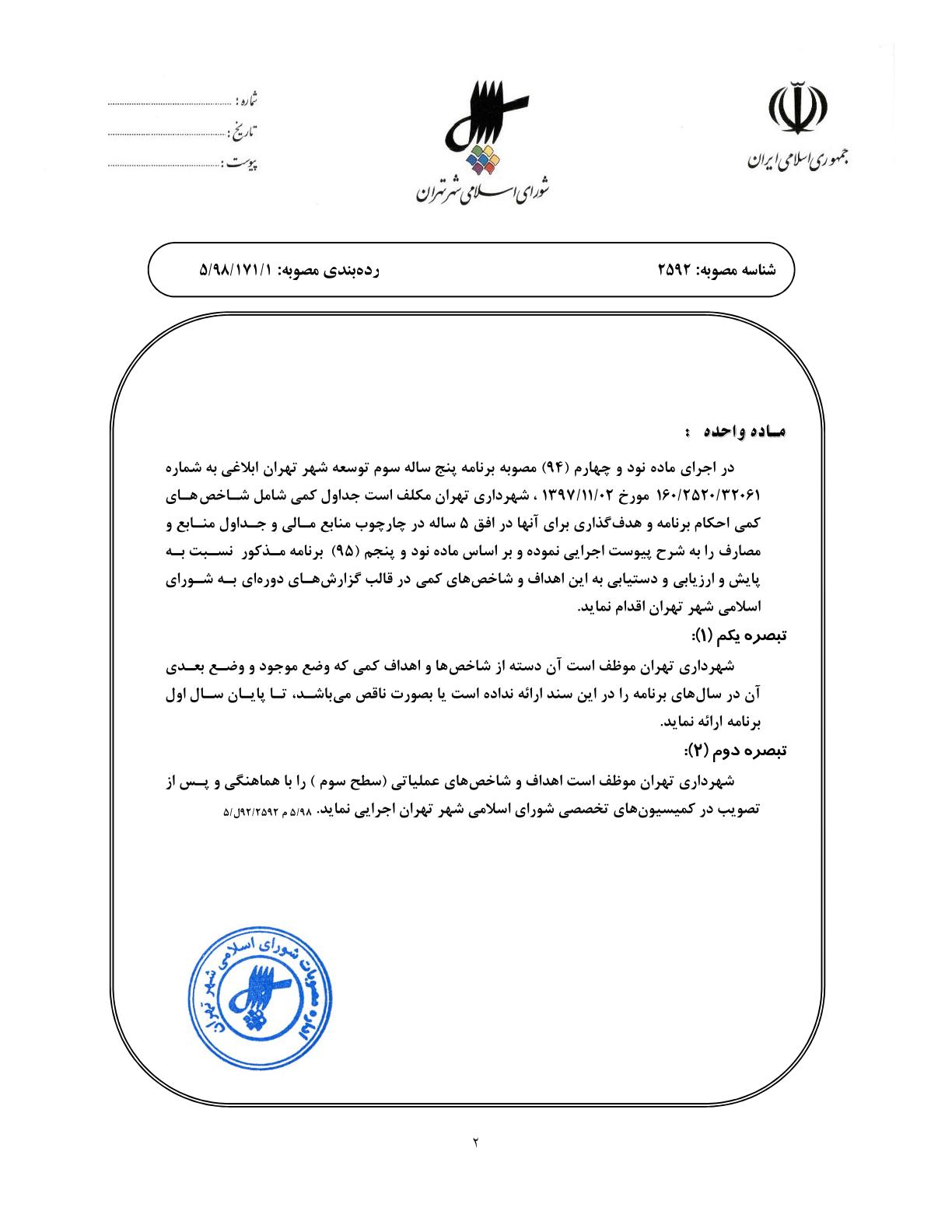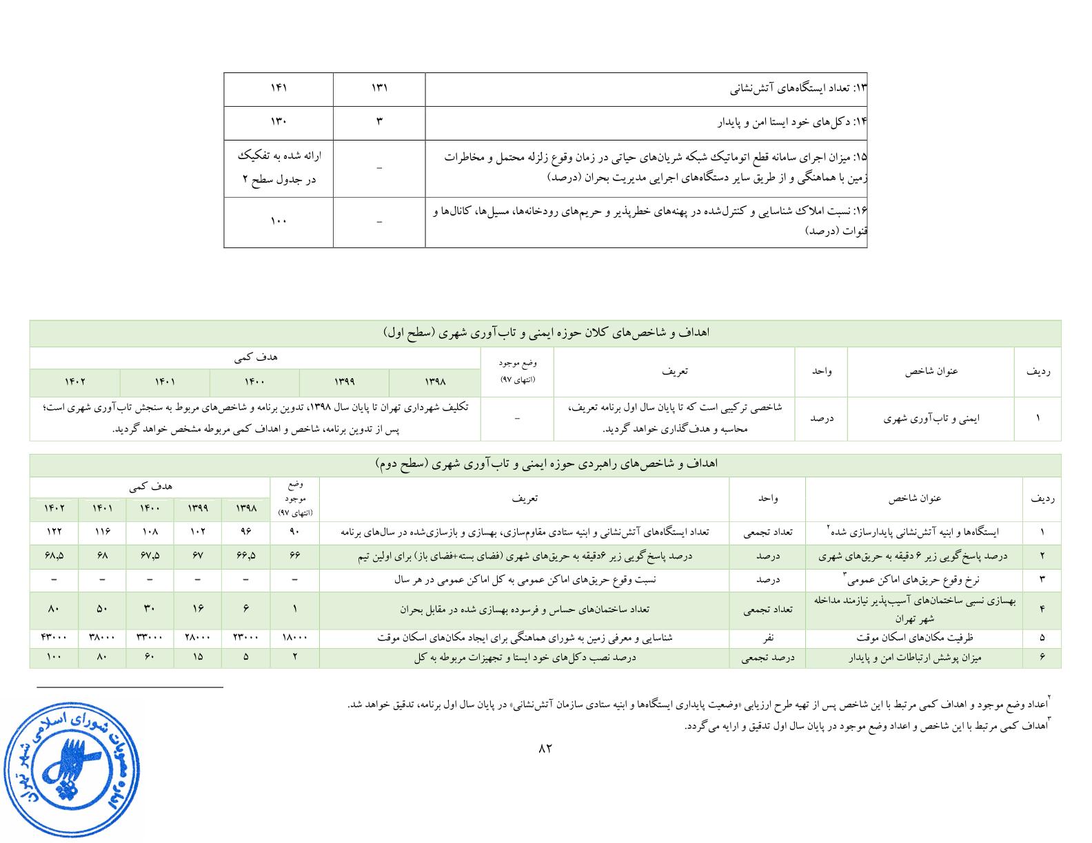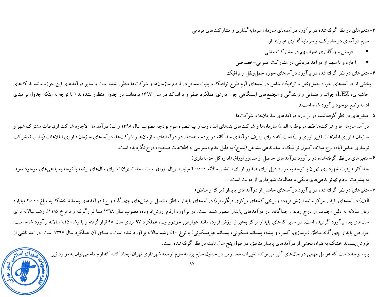اسناد پيوست سند برنامه پنج ساله سوم توسعه شهر تهران شامل جداول كمي شاخص‌ها، چارچوب منابع مالي و جداول منابع و مصارف