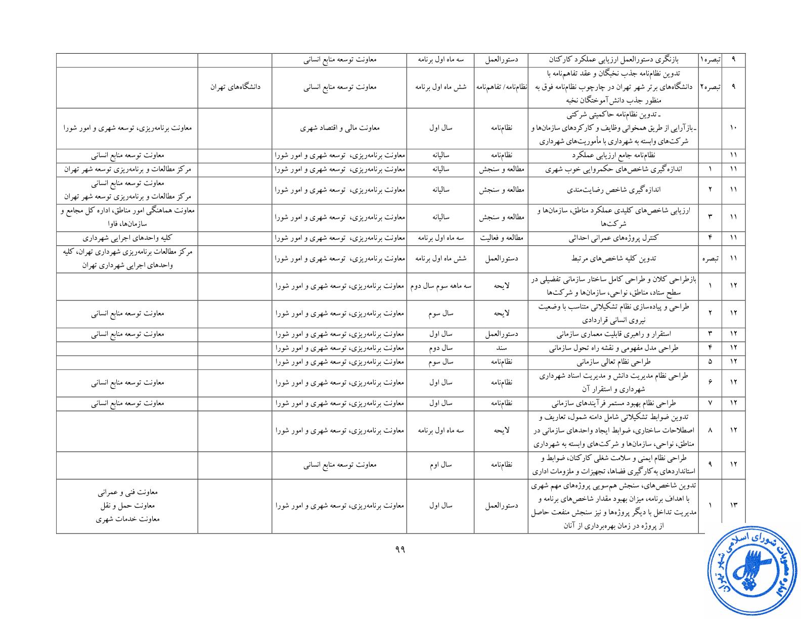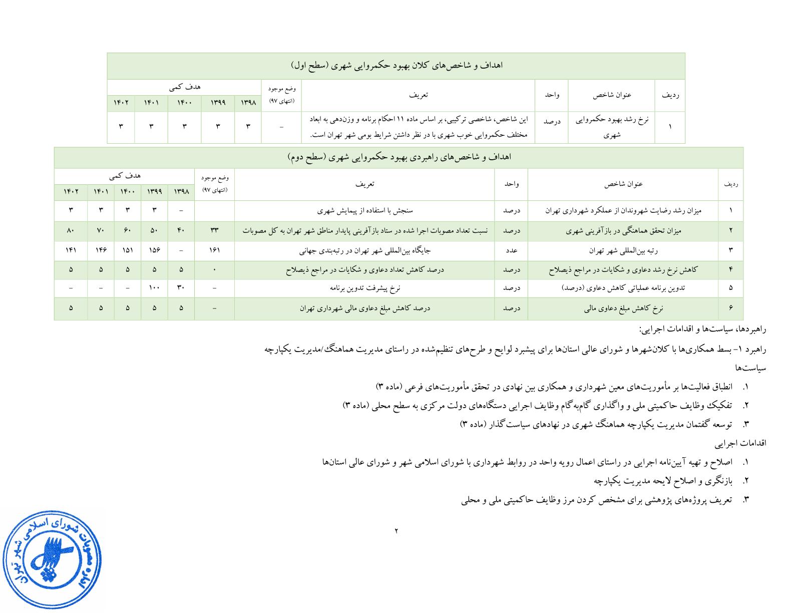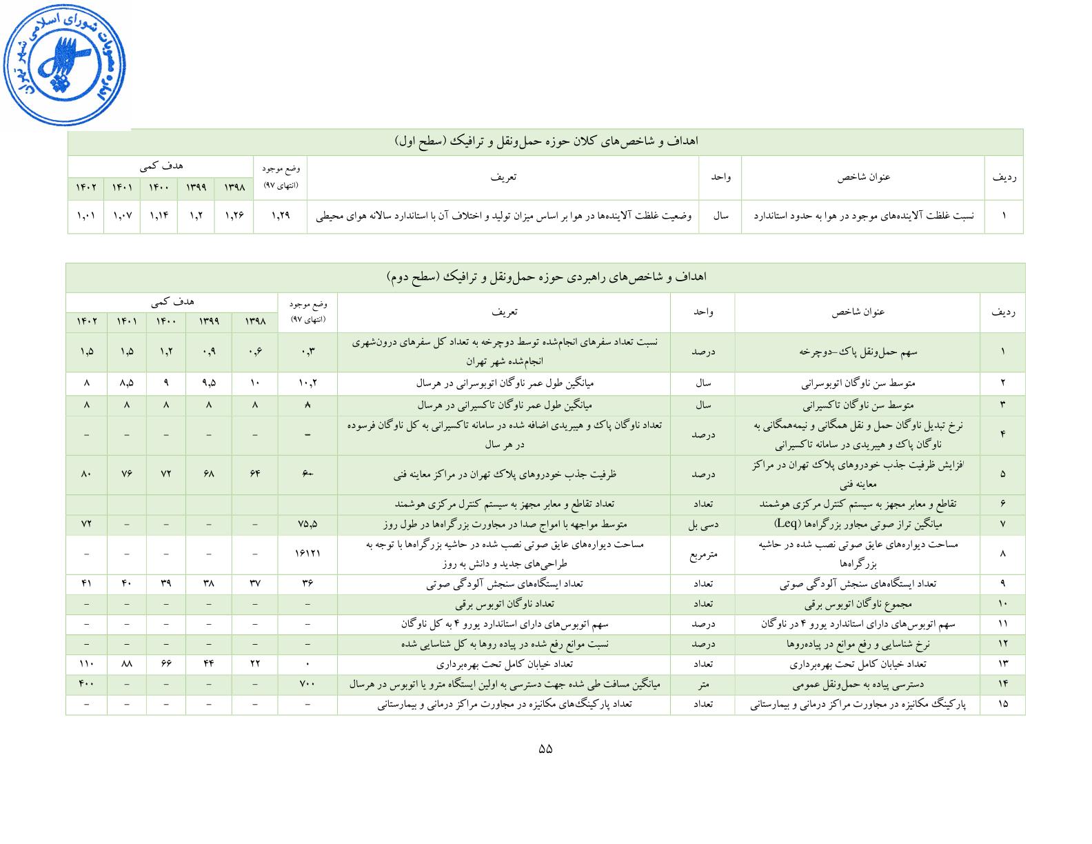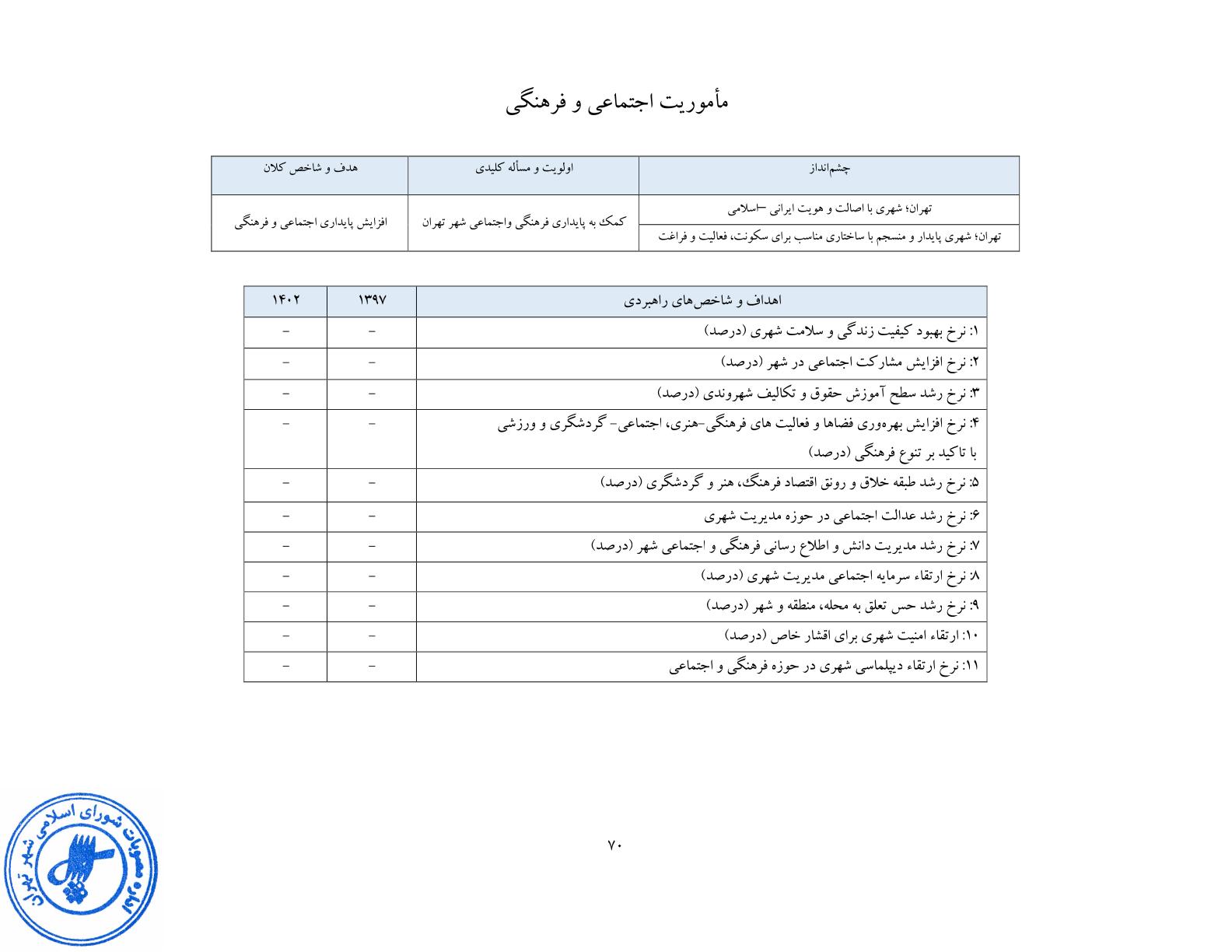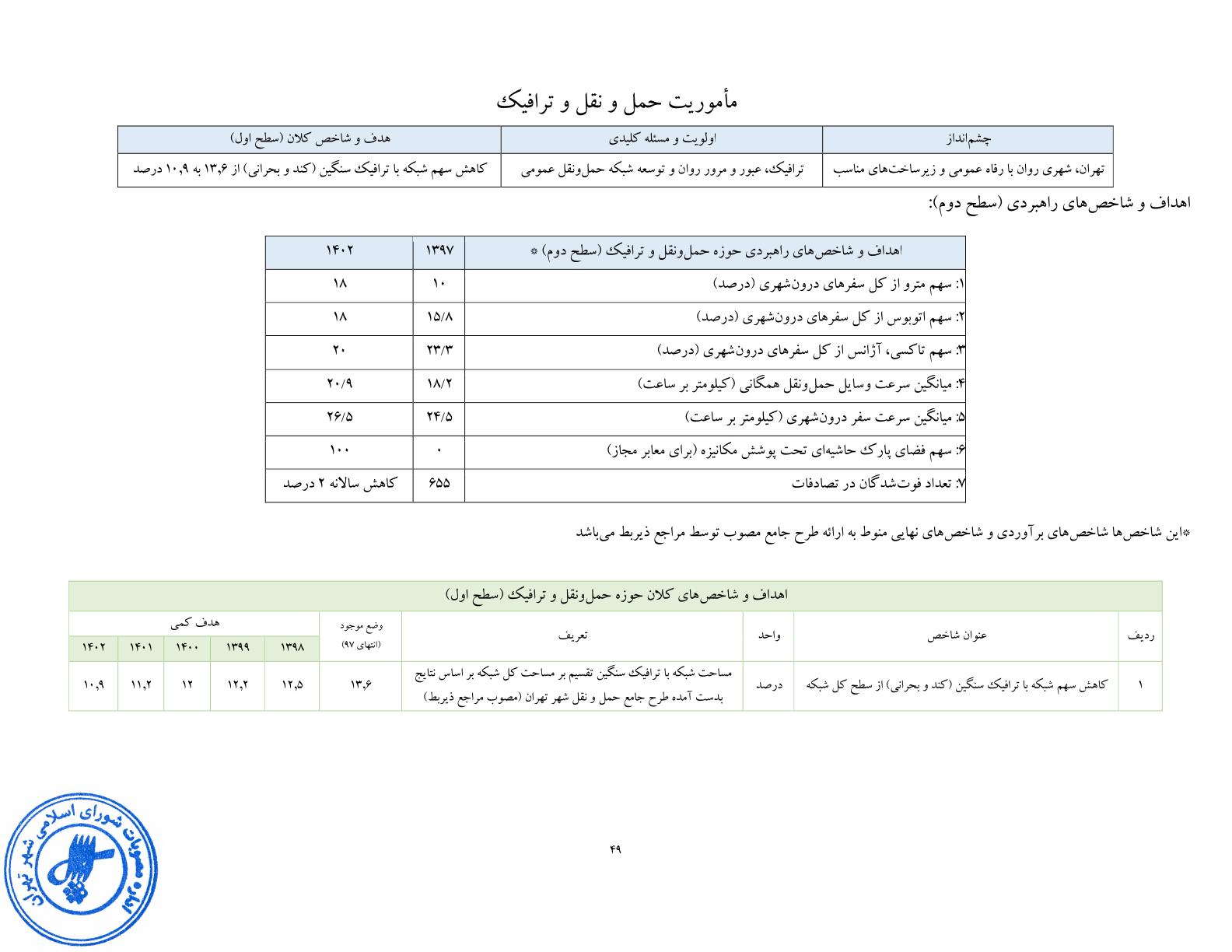 اسناد پيوست سند برنامه پنج ساله سوم توسعه شهر تهران شامل جداول كمي شاخص‌ها، چارچوب منابع مالي و جداول منابع و مصارف