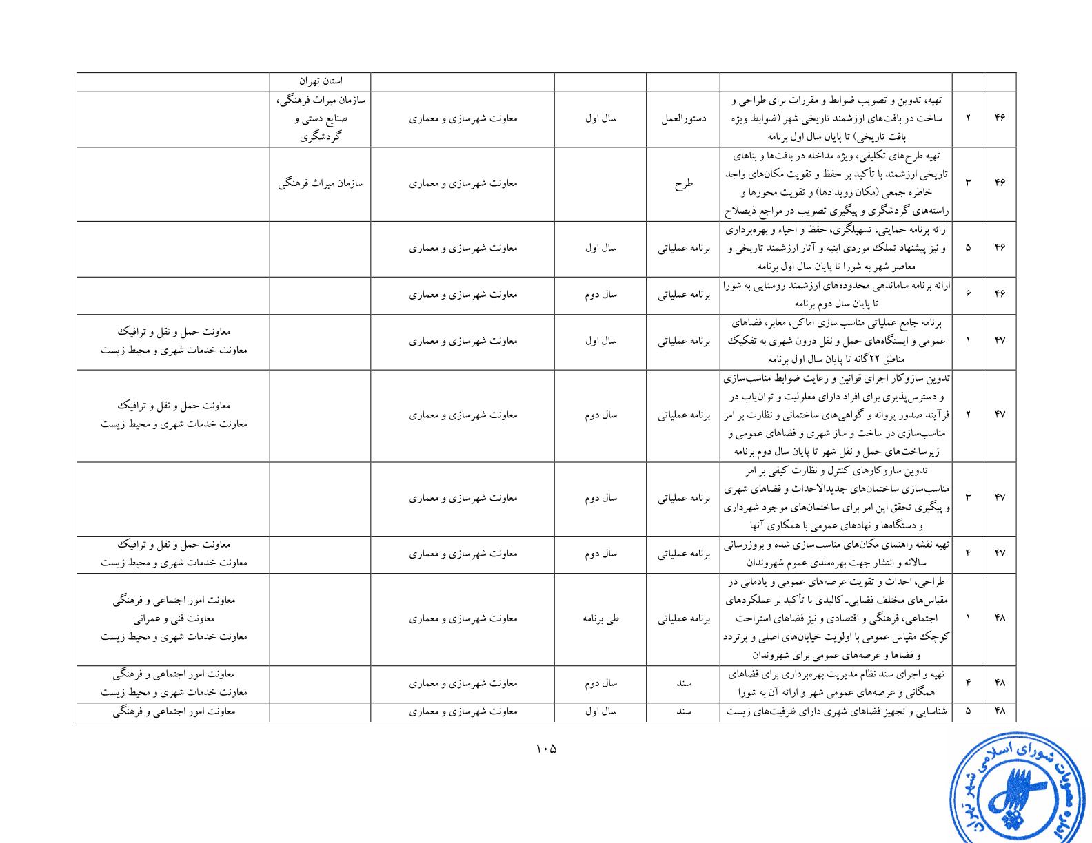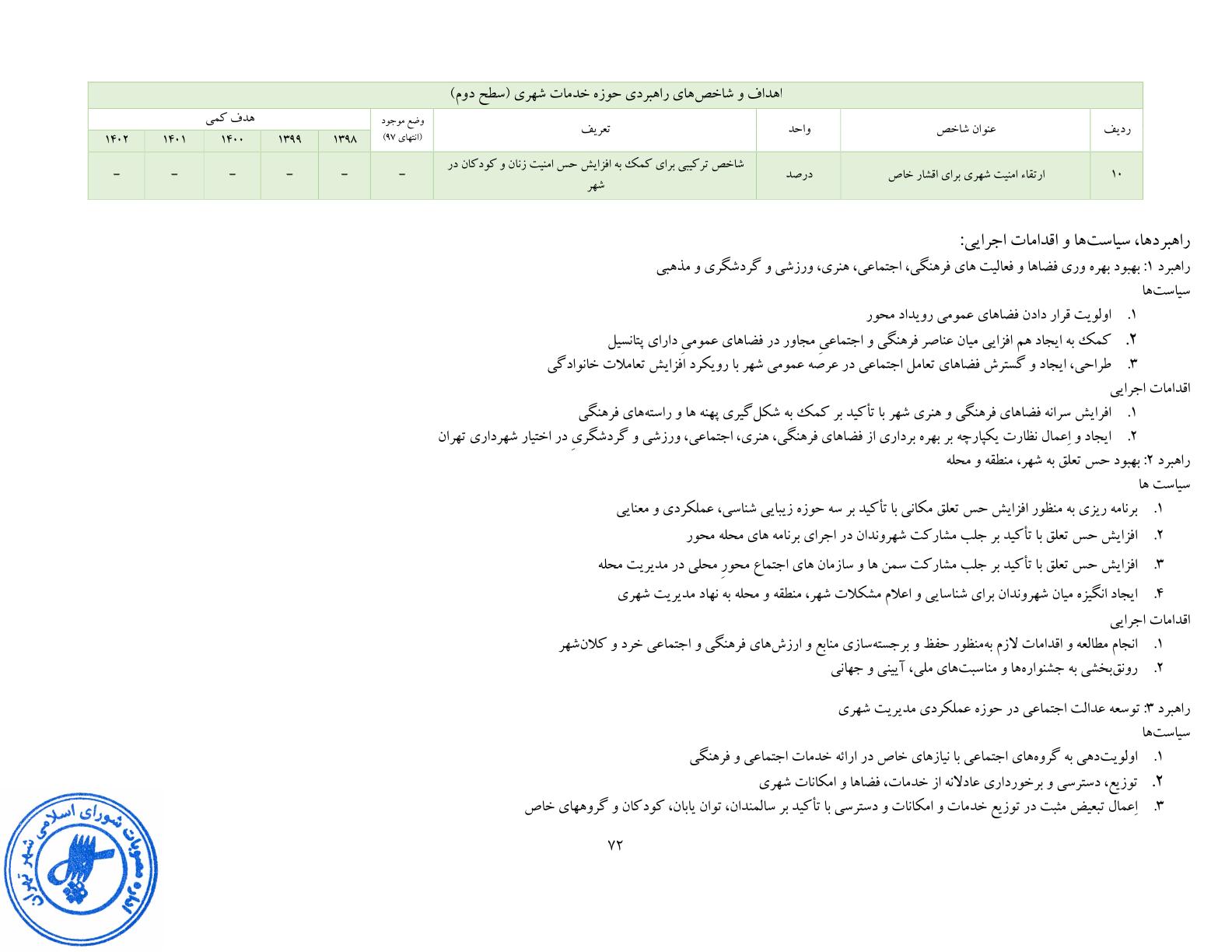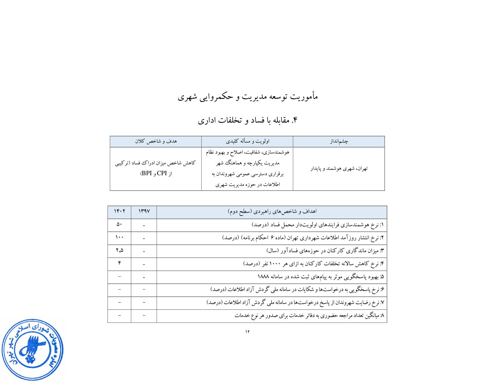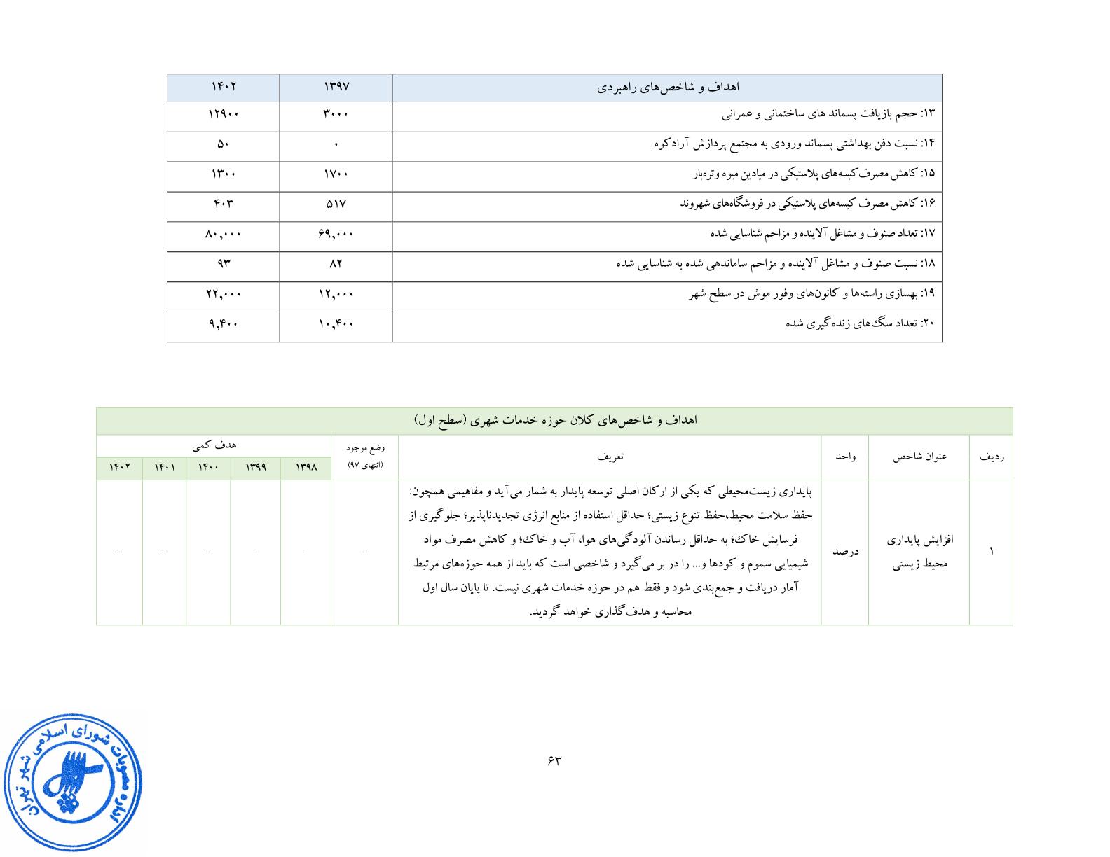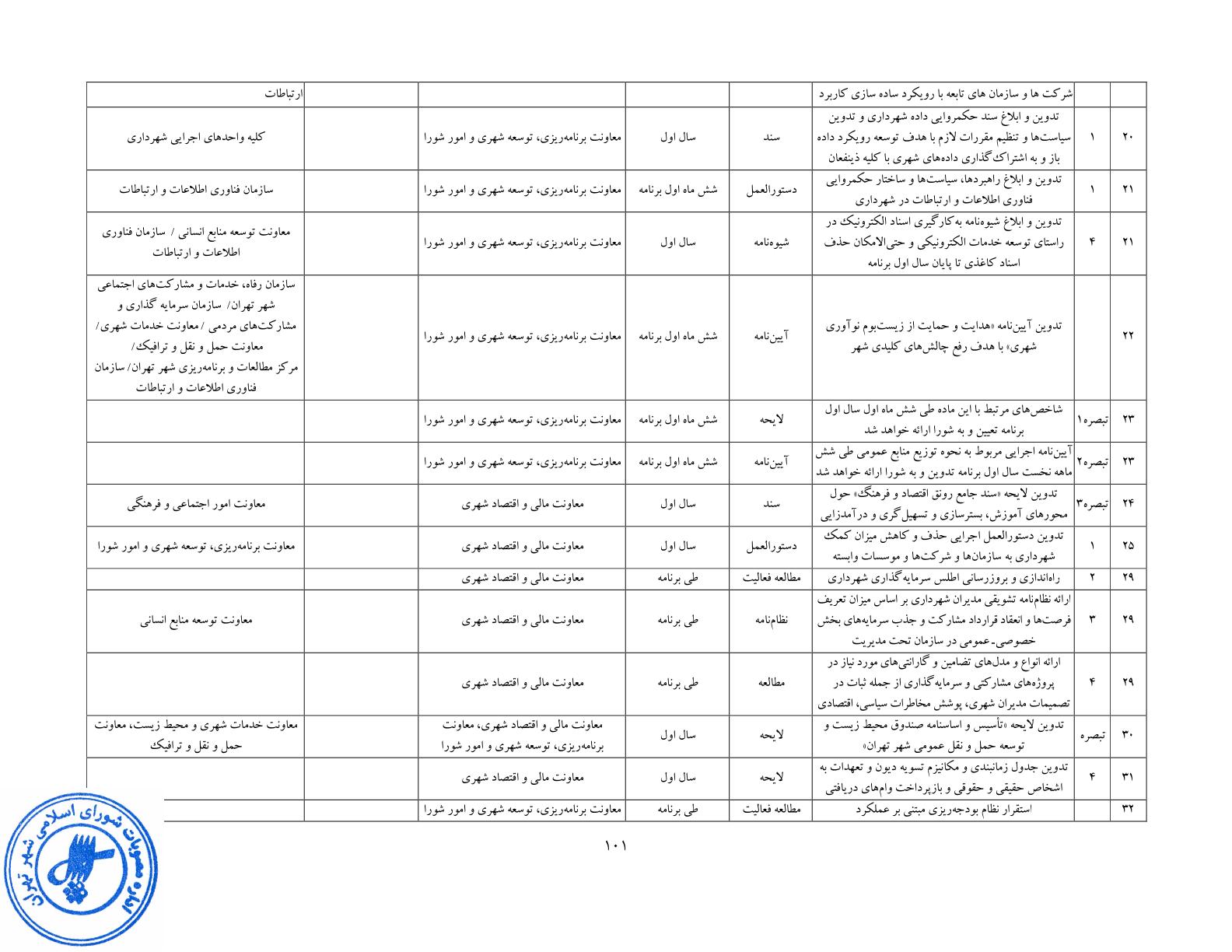 اسناد پيوست سند برنامه پنج ساله سوم توسعه شهر تهران شامل جداول كمي شاخص‌ها، چارچوب منابع مالي و جداول منابع و مصارف