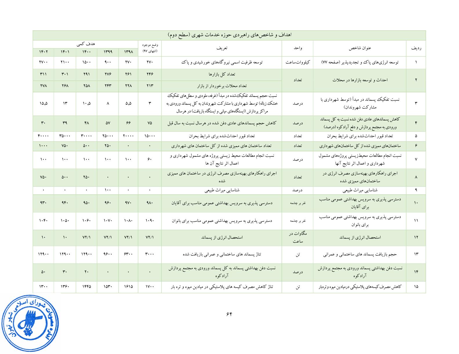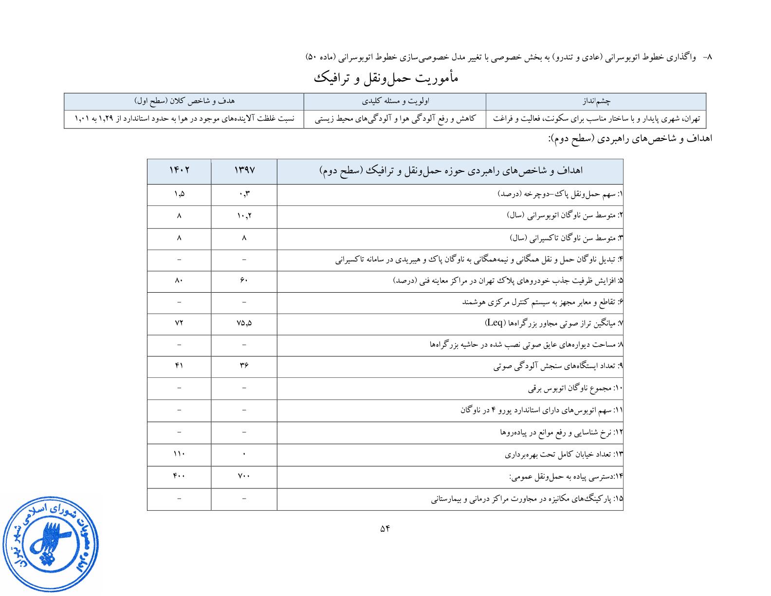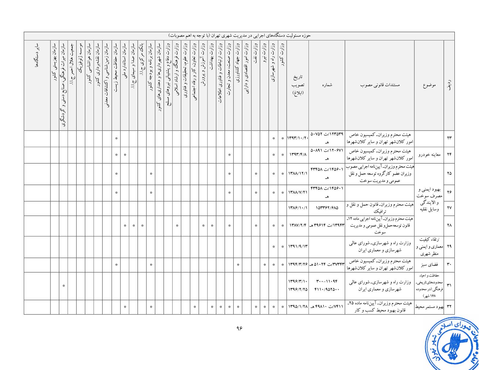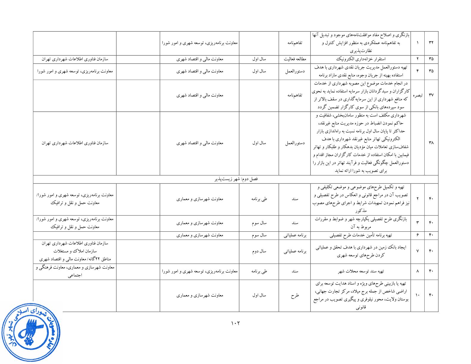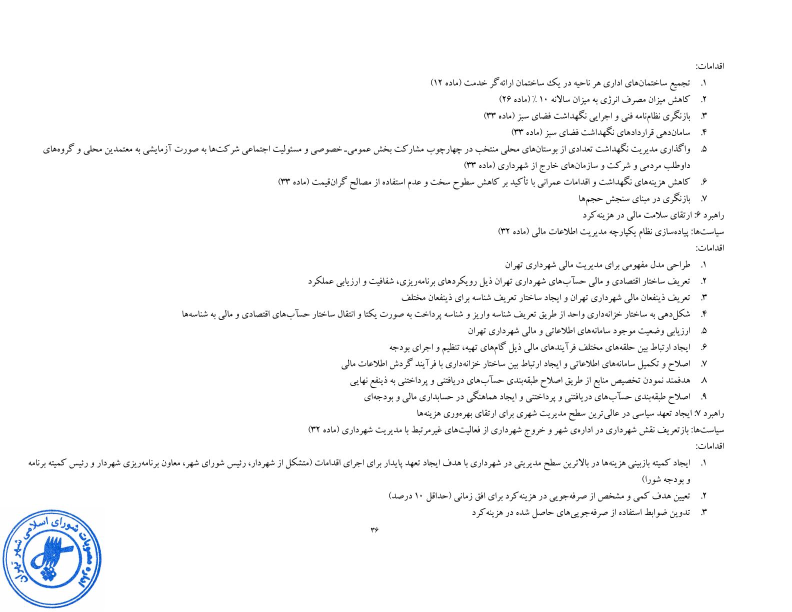 اسناد پيوست سند برنامه پنج ساله سوم توسعه شهر تهران شامل جداول كمي شاخص‌ها، چارچوب منابع مالي و جداول منابع و مصارف