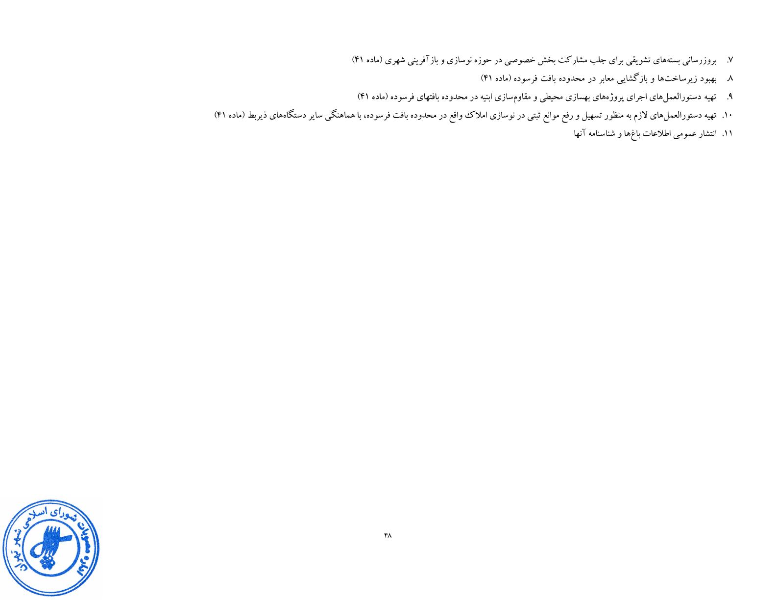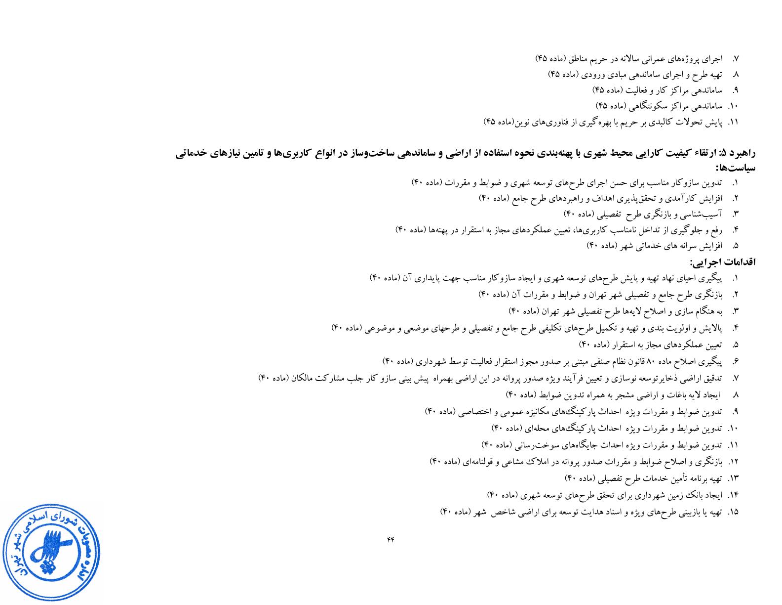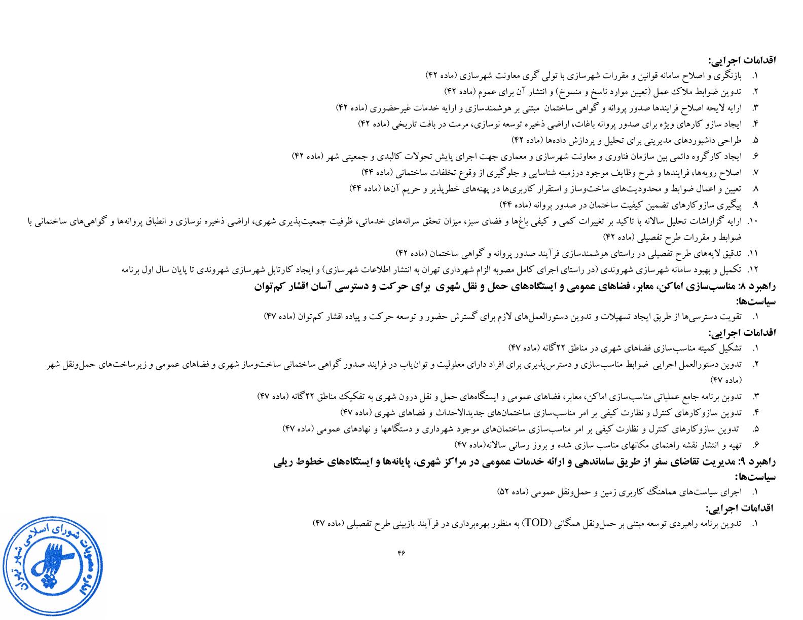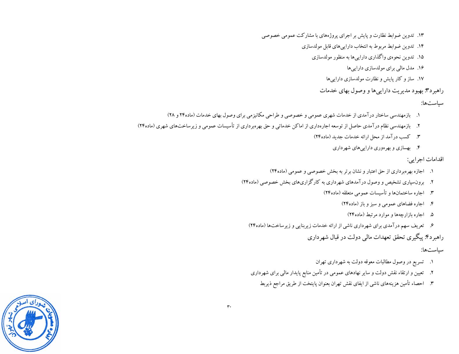 اسناد پيوست سند برنامه پنج ساله سوم توسعه شهر تهران شامل جداول كمي شاخص‌ها، چارچوب منابع مالي و جداول منابع و مصارف