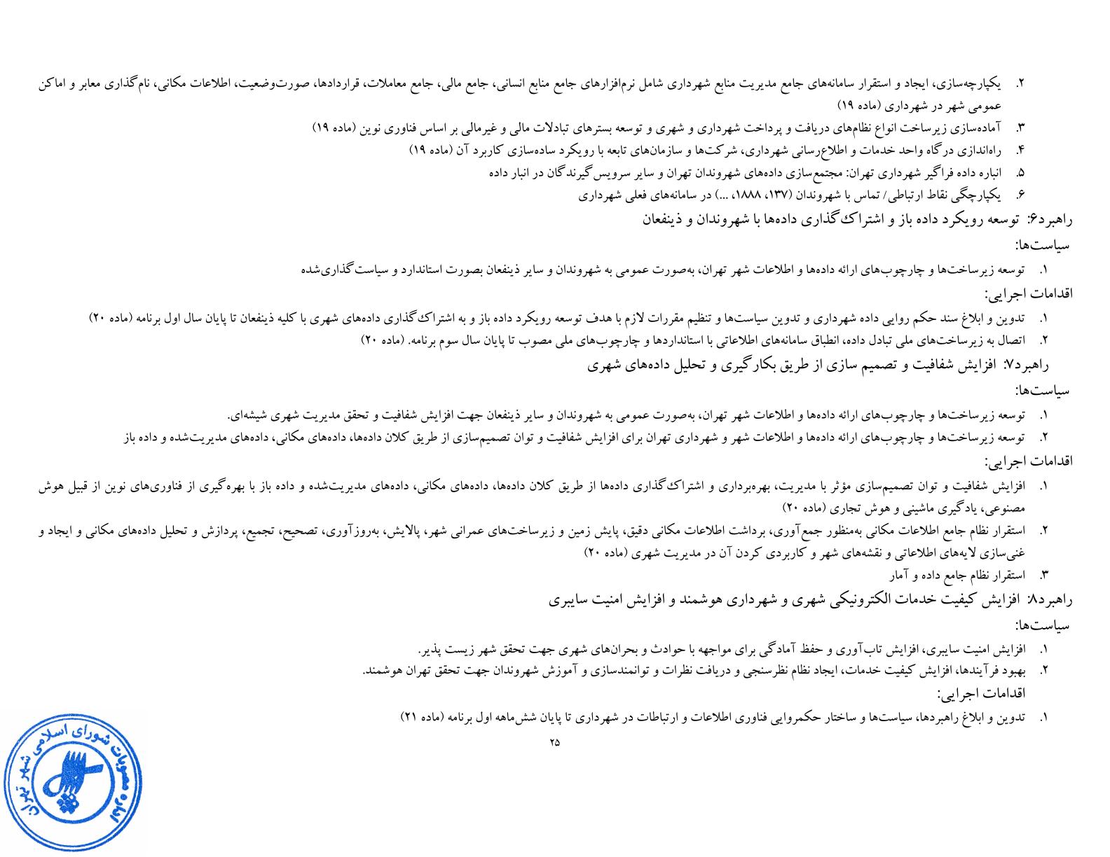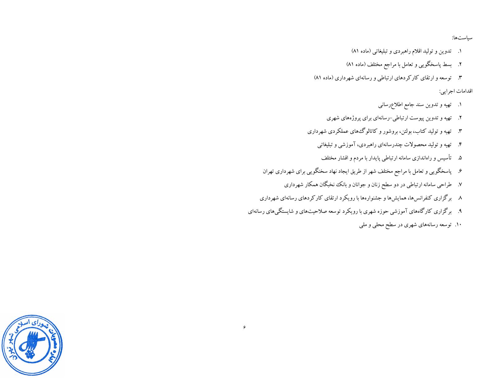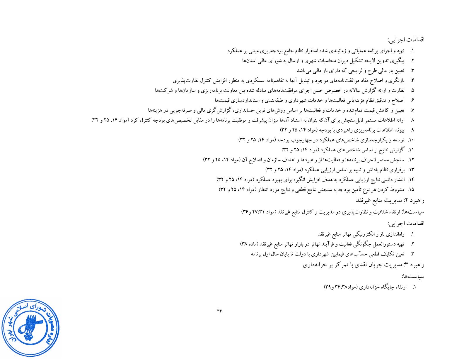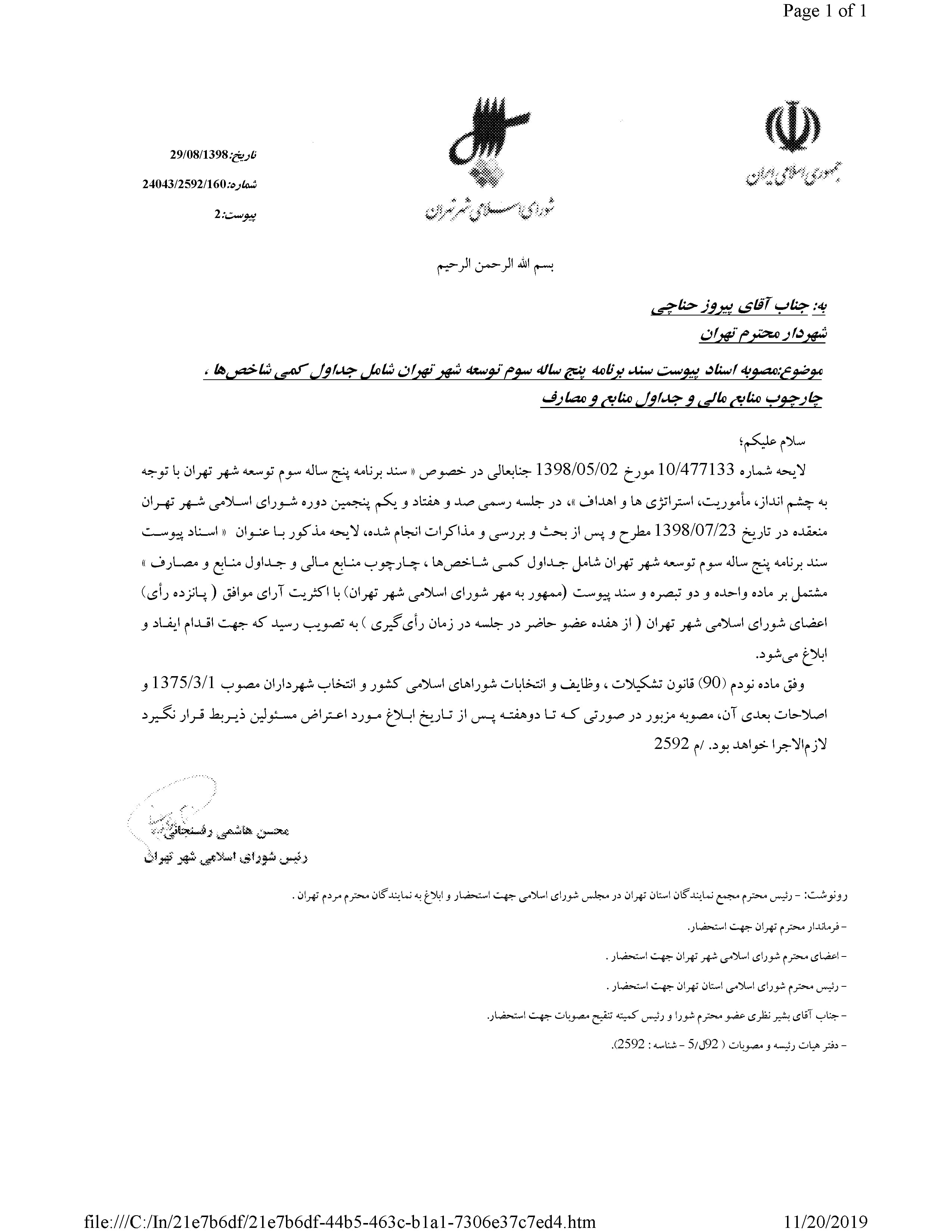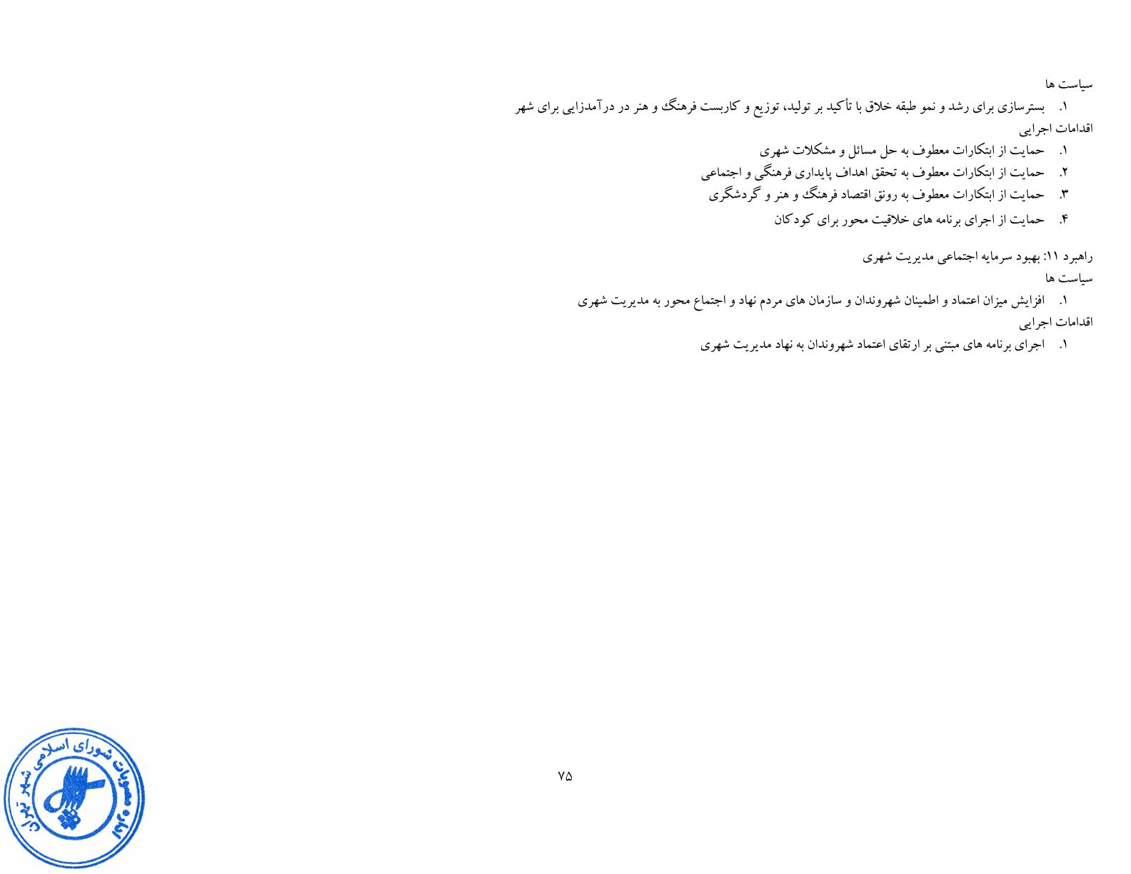 اسناد پيوست سند برنامه پنج ساله سوم توسعه شهر تهران شامل جداول كمي شاخص‌ها، چارچوب منابع مالي و جداول منابع و مصارف