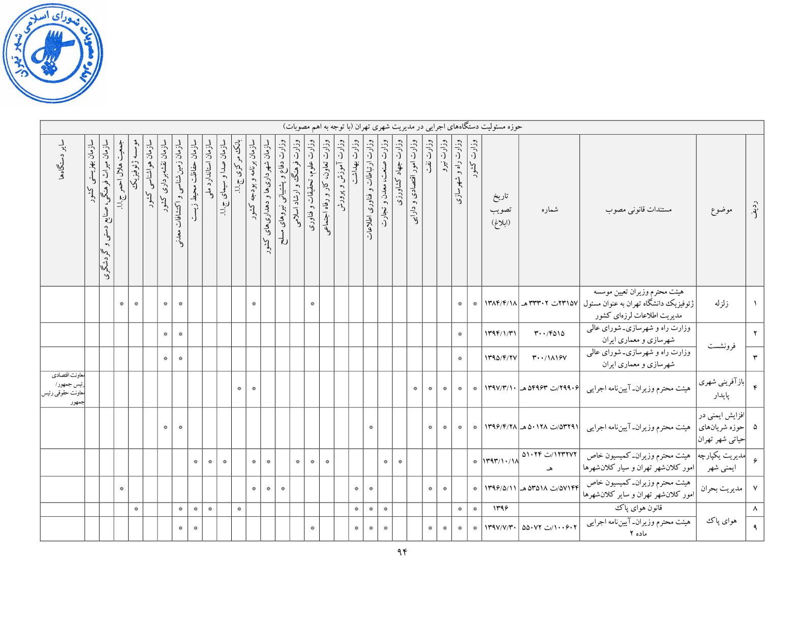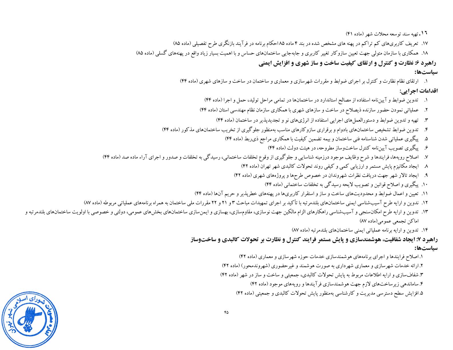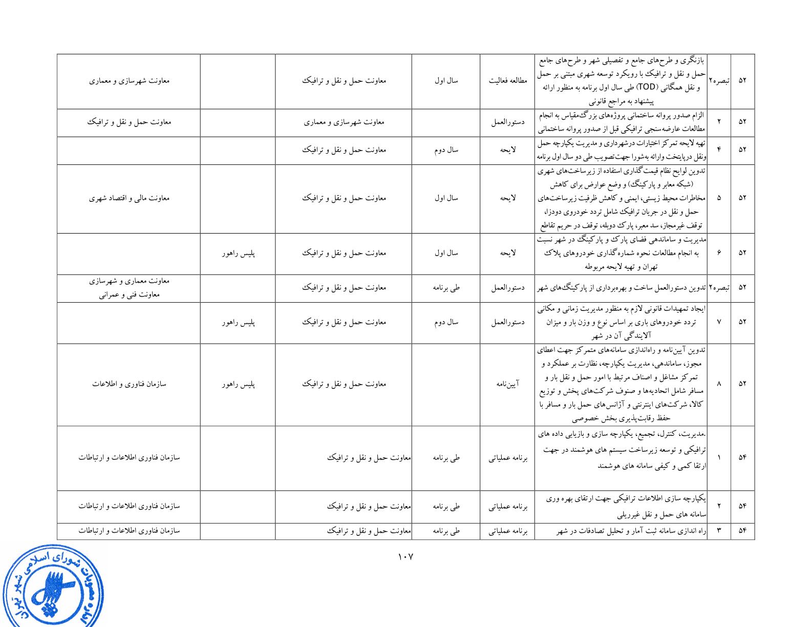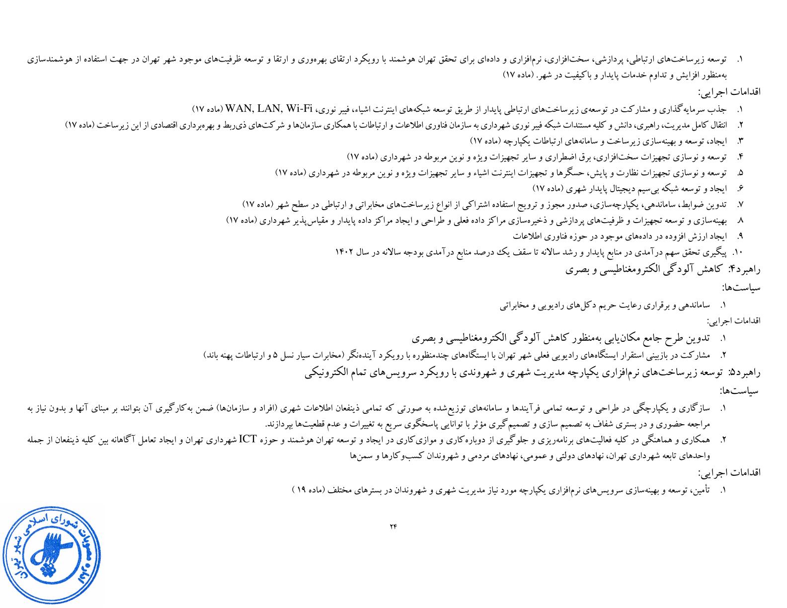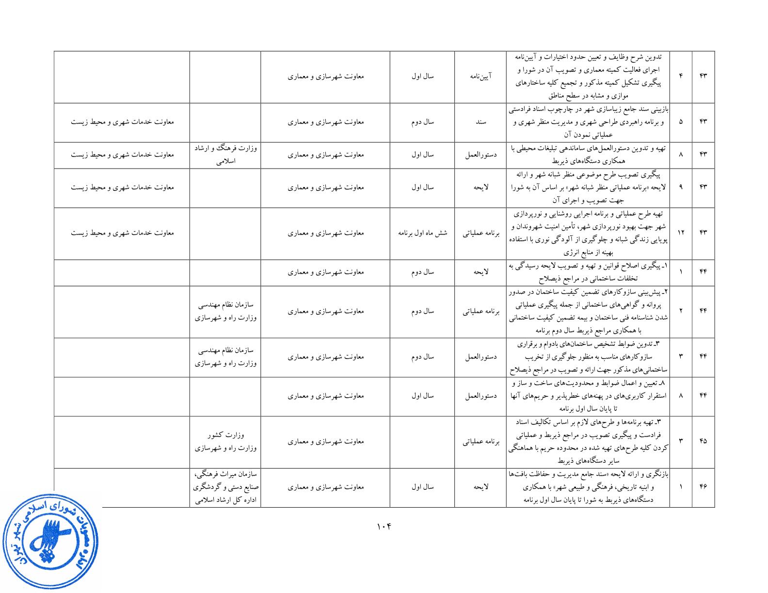 اسناد پيوست سند برنامه پنج ساله سوم توسعه شهر تهران شامل جداول كمي شاخص‌ها، چارچوب منابع مالي و جداول منابع و مصارف
