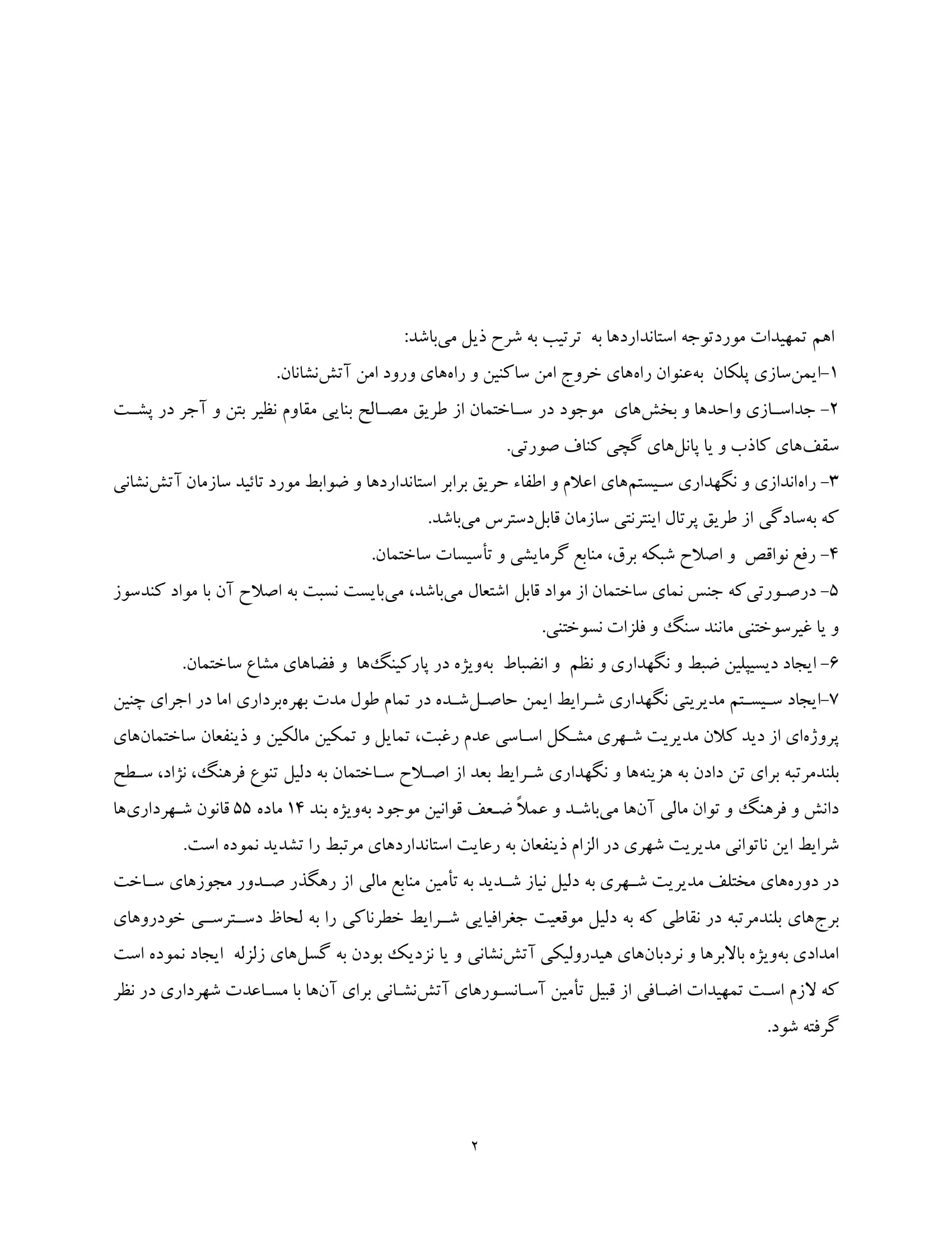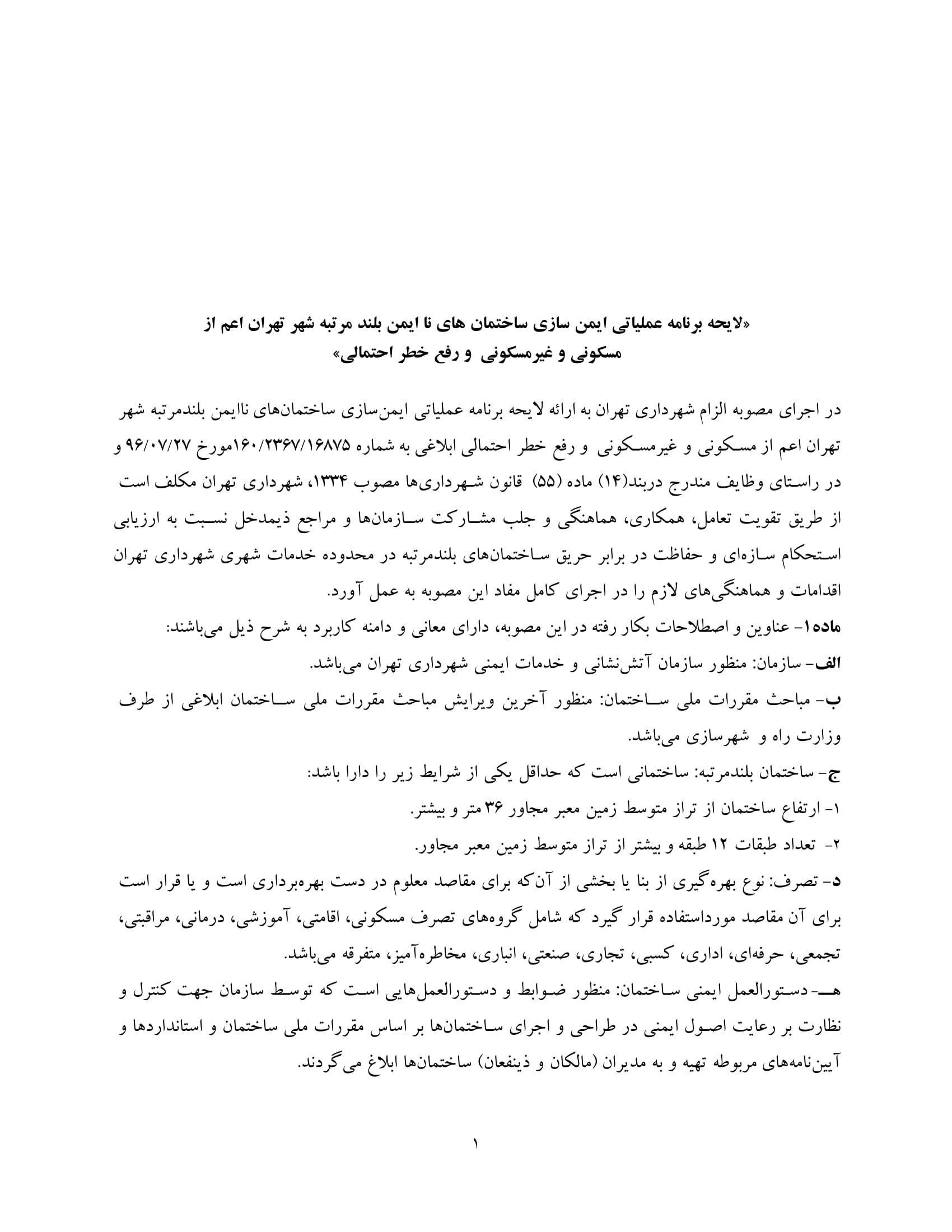 برنامه عملياتي ايمنسازي ساختمانهاي نا ايمن بلند مرتبه شهر تهران اعم از مسكوني و غير مسكوني و رفع خطر احتمالي