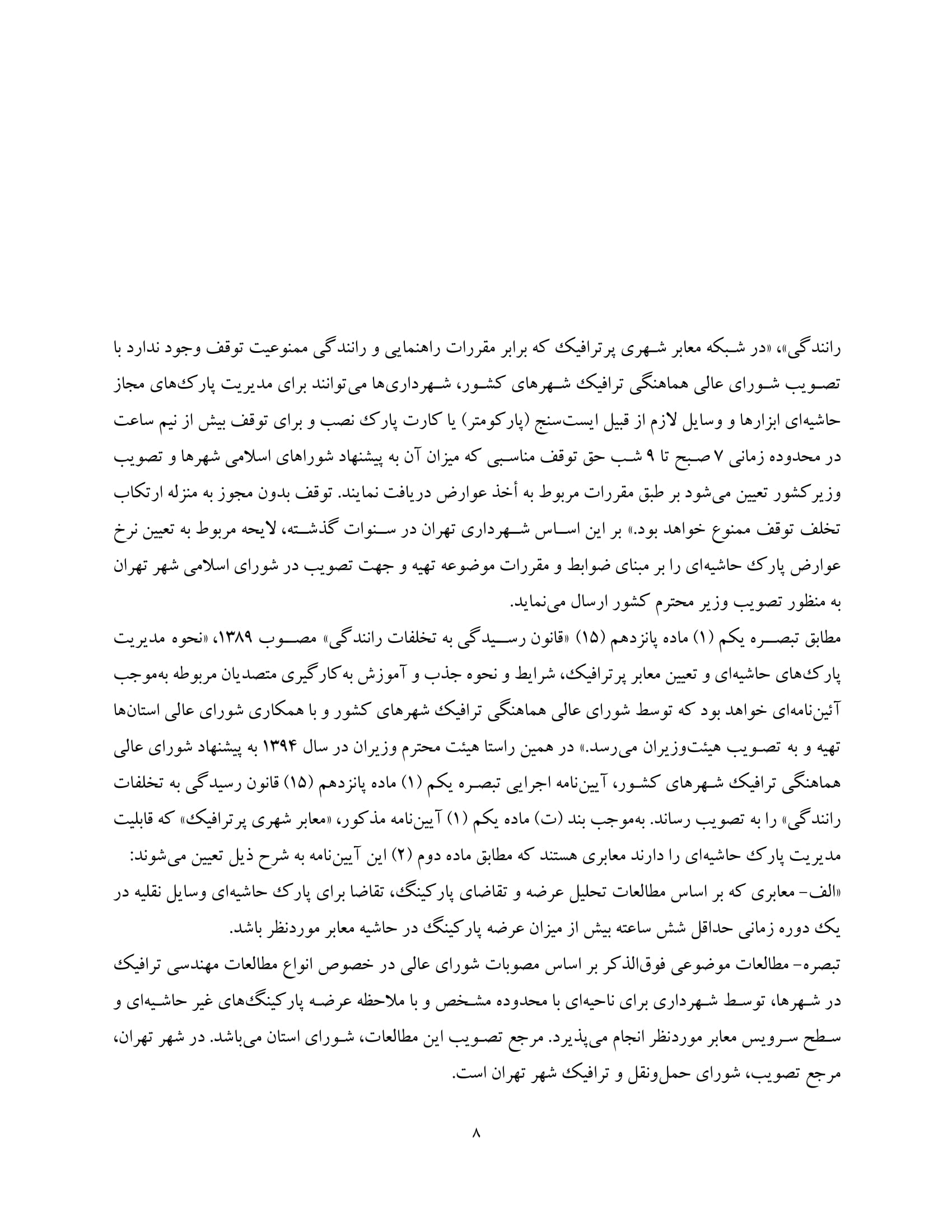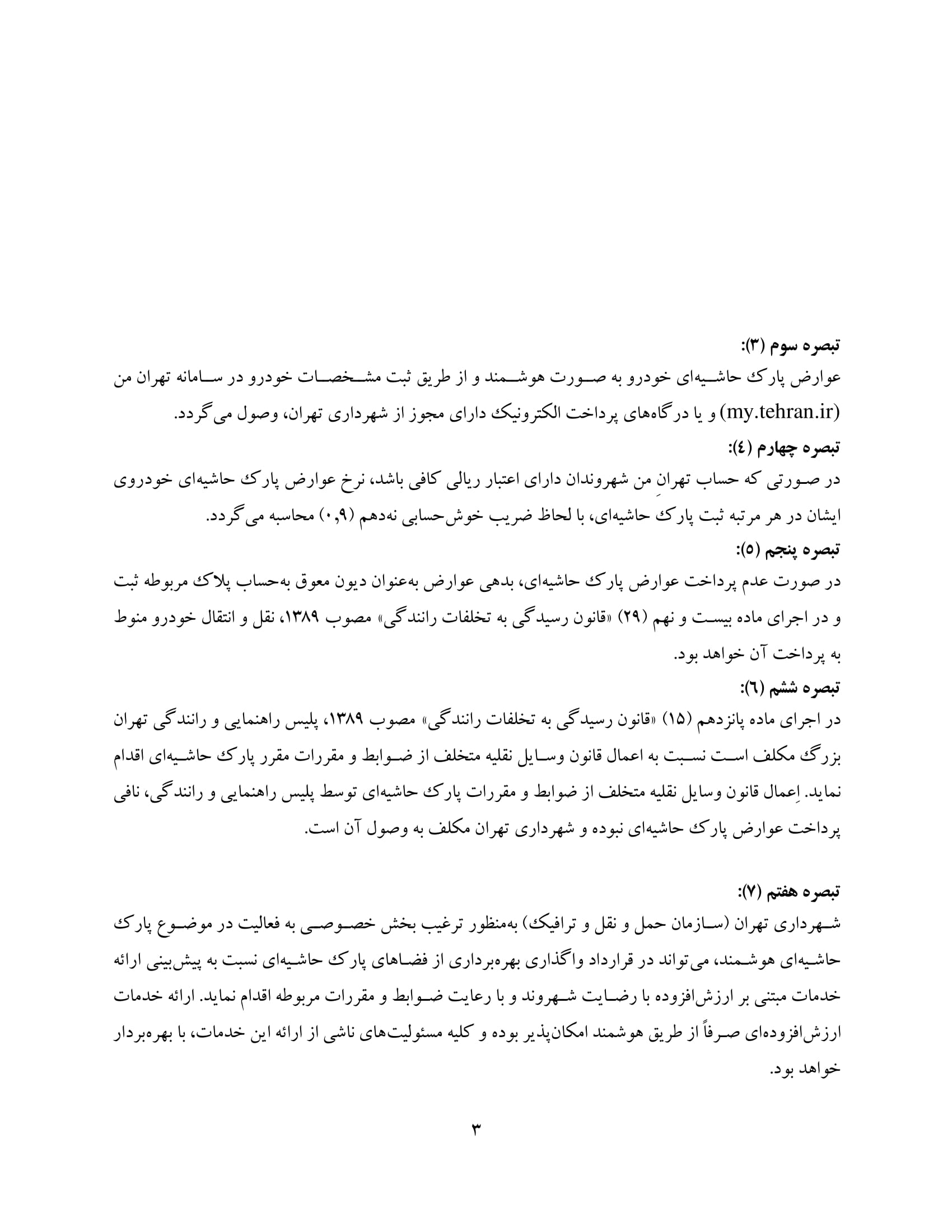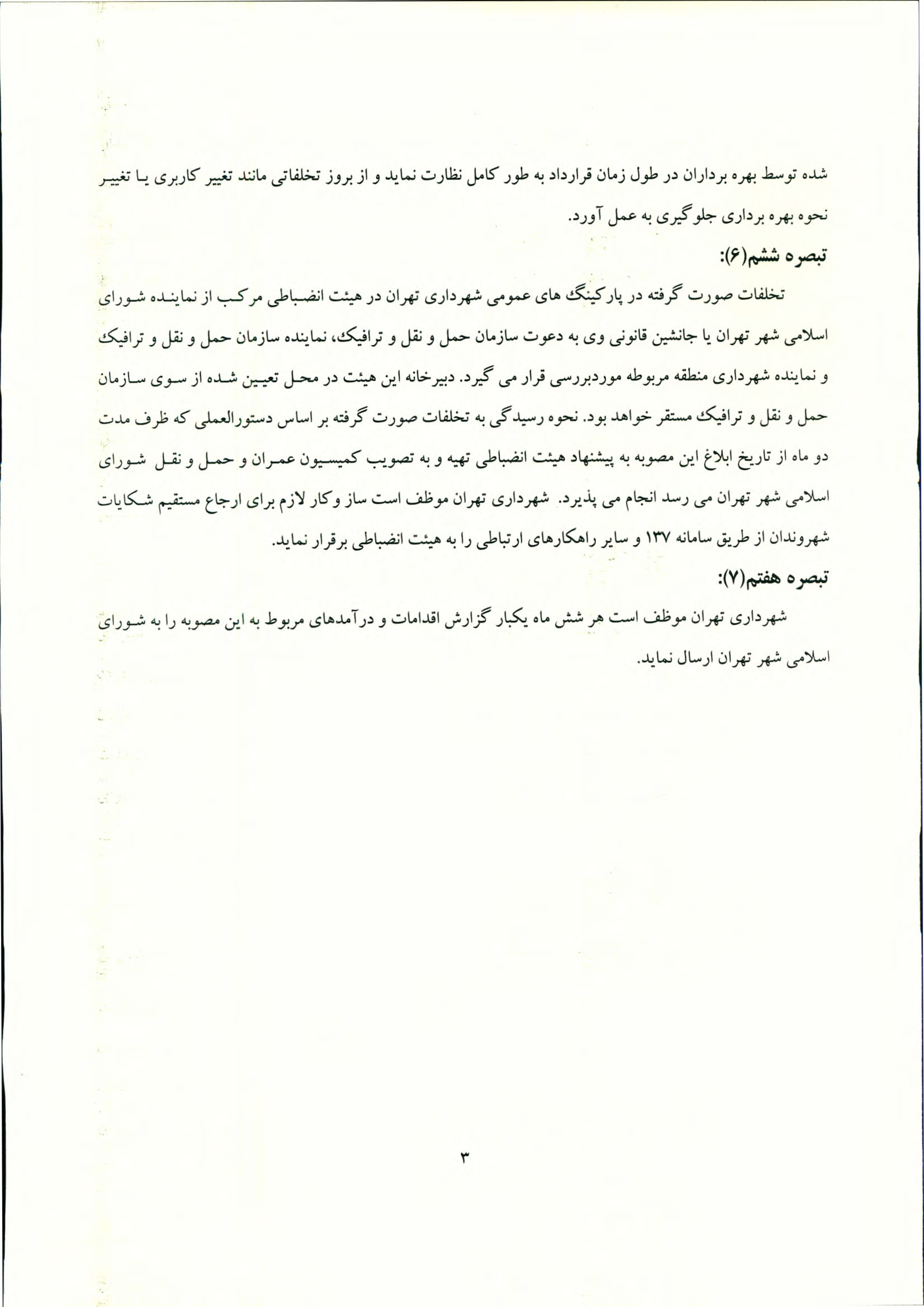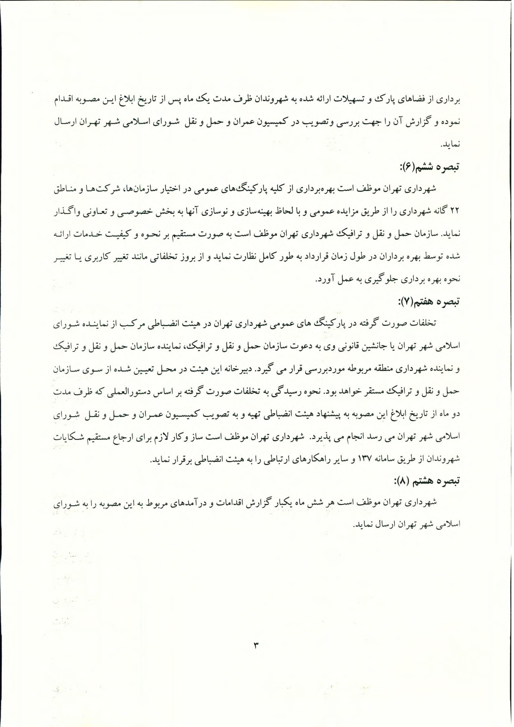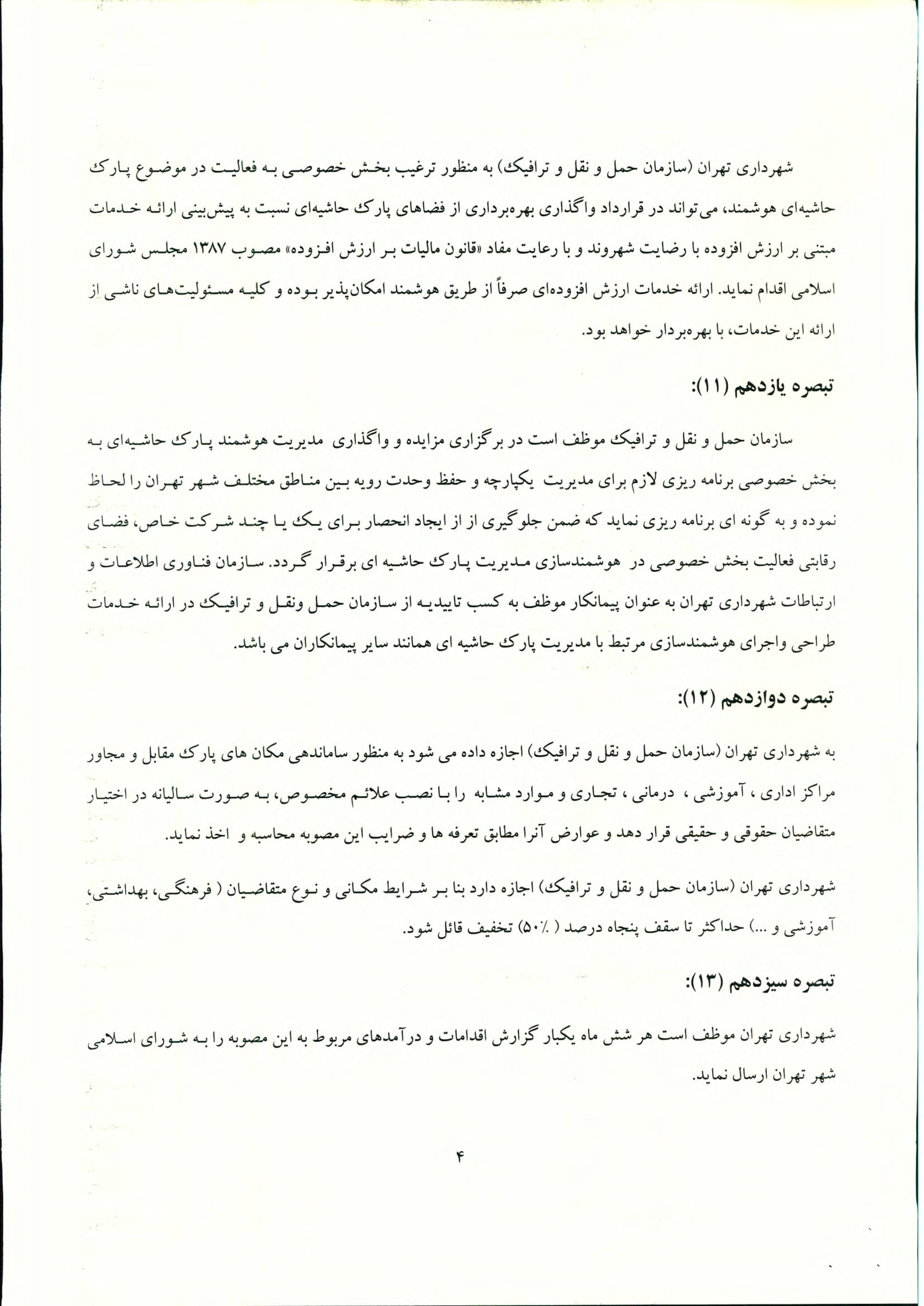 تعيين نرخ عوارض پارك حاشيهاي در سال 1399 و تعيين ضوابط واگذاري بهرهبرداري از پاركينگهاي عمومي شهرداري تهران