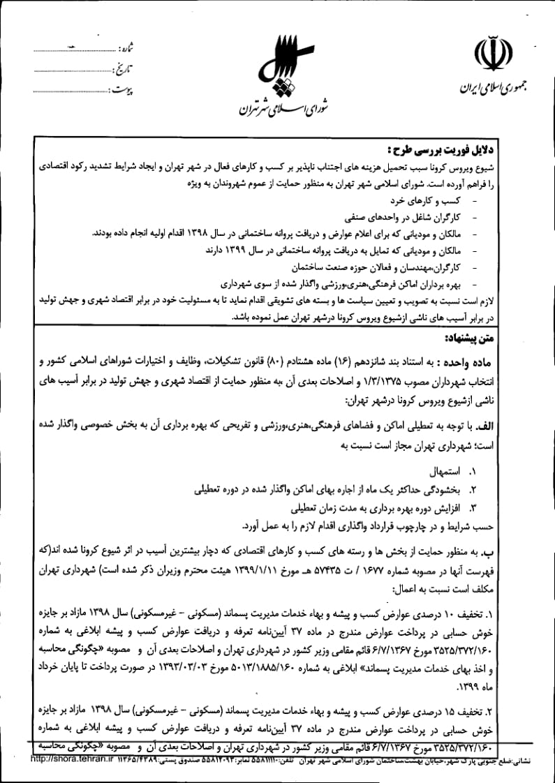 الحاق موادي به مصوبه «بسته محرك در شرايط سخت اقتصادي و نيز در شرايط بحراني ناشي از گسترش ويروس كرونا»-ابلاغي به شماره 160/2650/2069 مورخ 1399/02/15 و اصلاحيه بعدي آن
