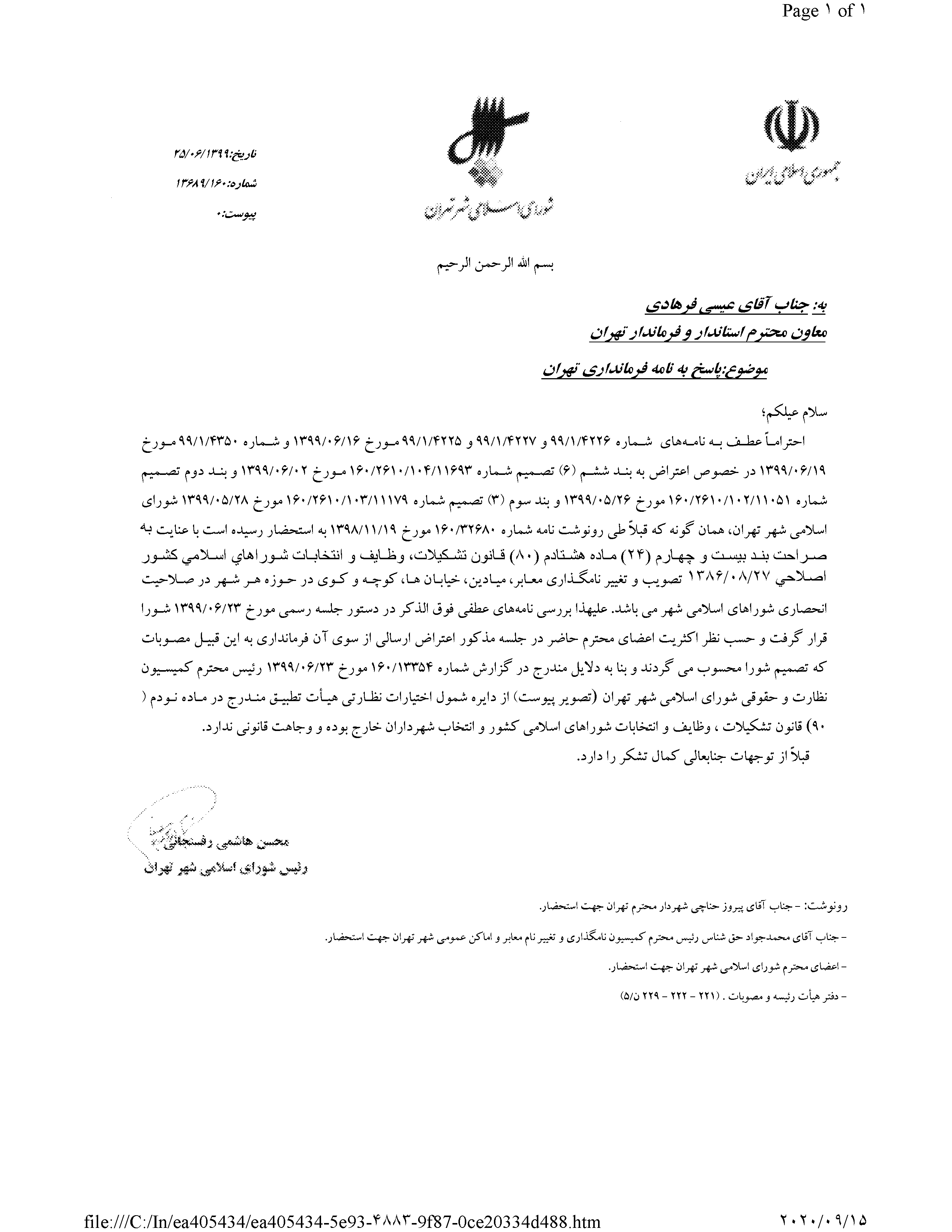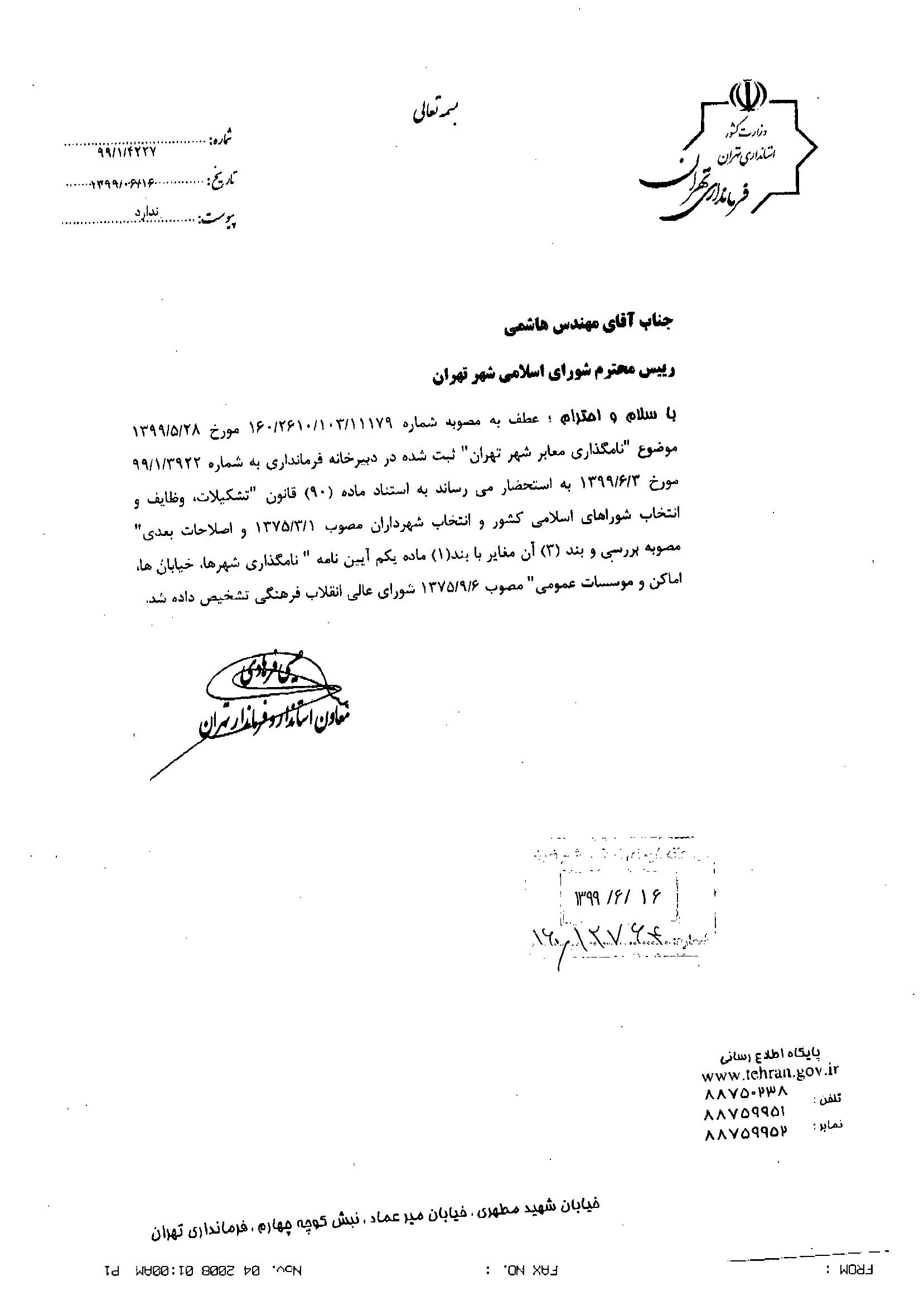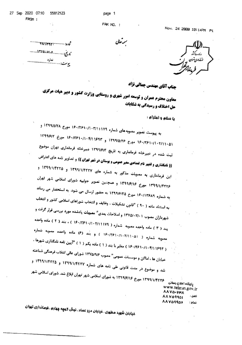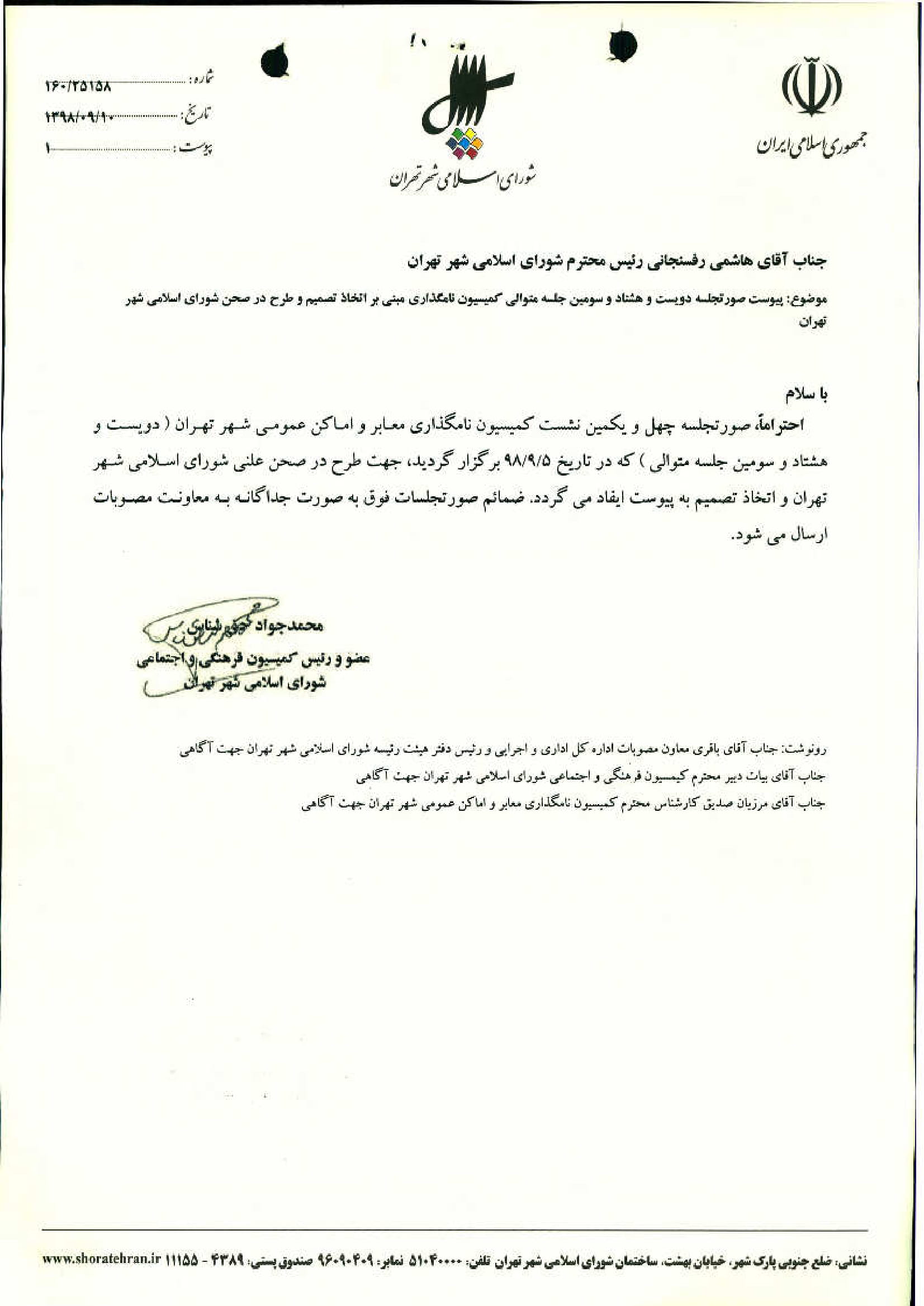 نامگذاري و تغيير نام ده (10) معبر عمومي شهر تهران