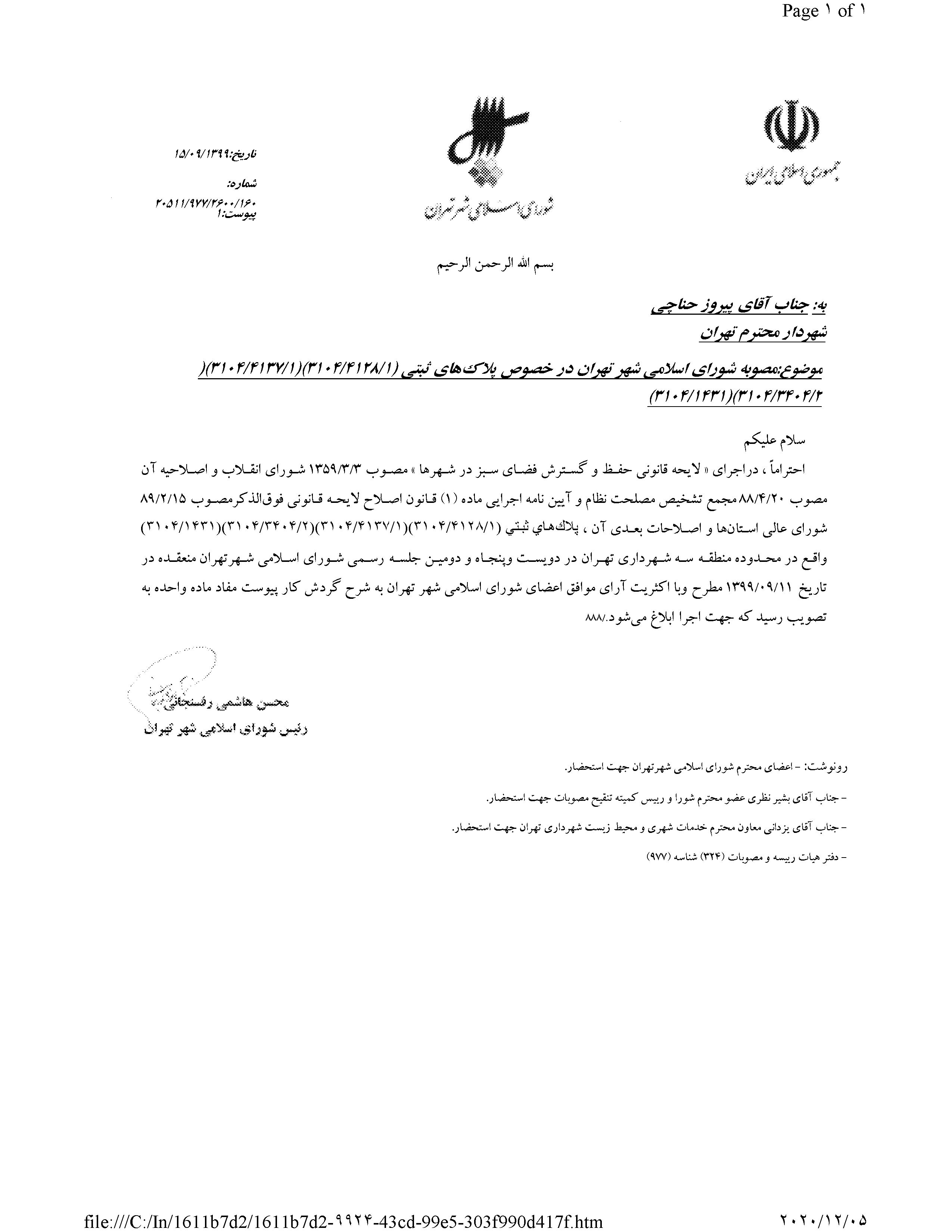 مصوبه شوراي اسلامي شهر تهران در خصوص پلاكهاي ثبتي به شماره چهار هزار و صد و بيست و هشت فرعي از سه هزار و صد و چهار اصلي قطعه اول تفكيكي (3104/4128/1) و چهار هزار و صد و سي و هفت فرعي از سه هزار و صد و چهار اصلي قطعه اول تفكيكي (3104/4137/1) و سه هزار و چهارصد و چهار فرعي از سه هزار و صد و چهار اصلي قطعه دوم تفكيكي (3104/3404/2) و هزار و چهارصد و سي و يك فرعي از سه هزار و صد و چهار اصلي (3104/1431) واقع در محدوده منطقه سه (3) شهرداري تهران