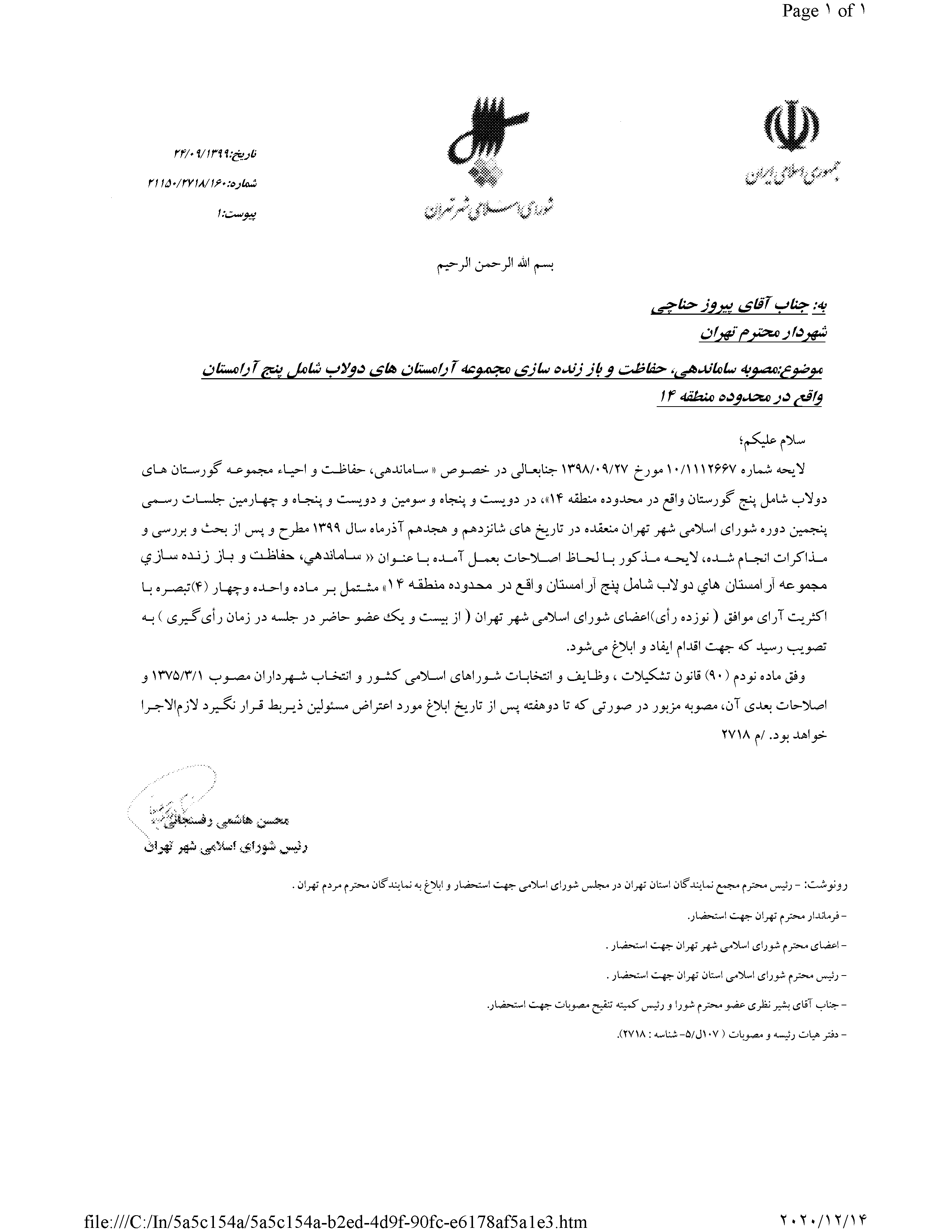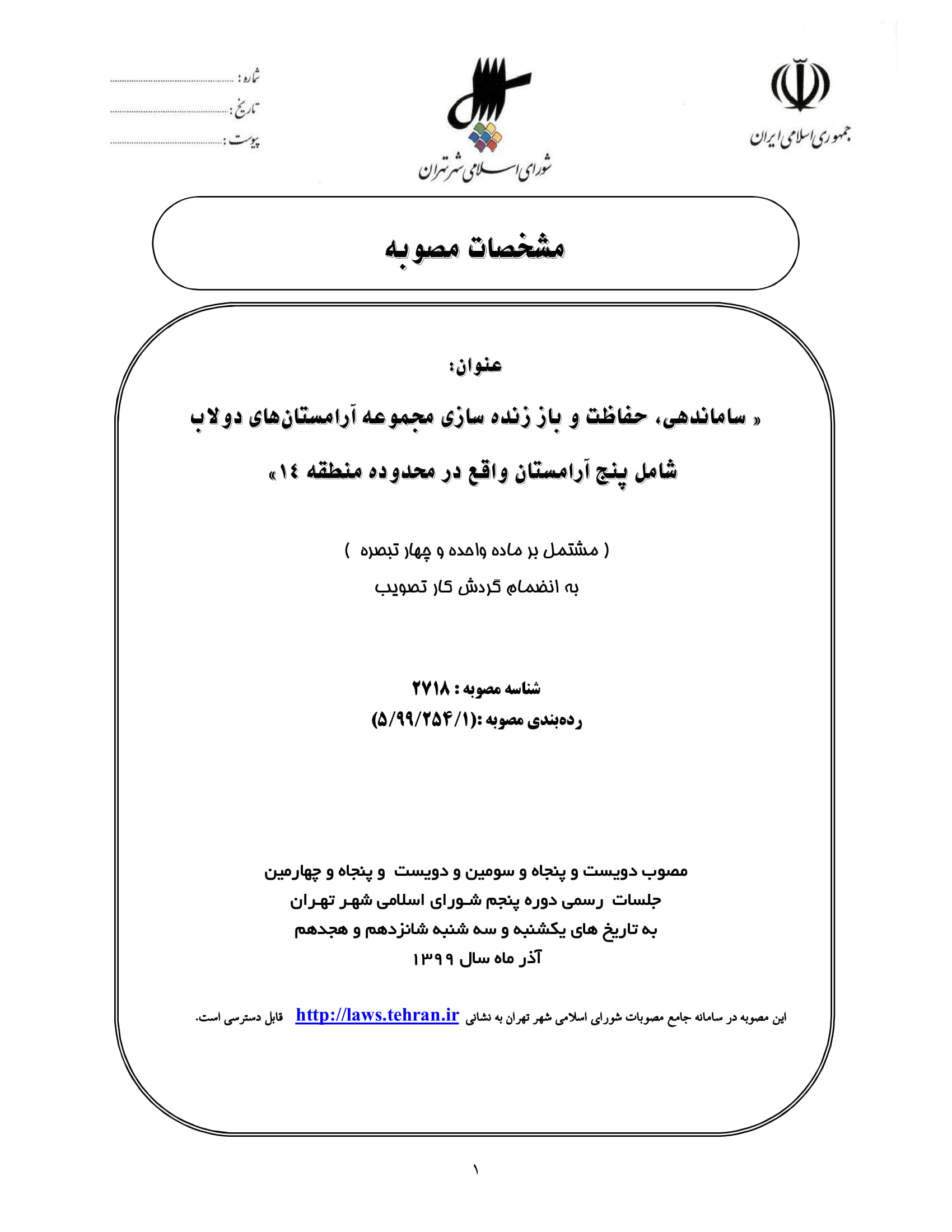 ساماندهي حفاظت و باز زنده سازي مجموعه آرامستانهاي دولاب شامل پنج آرامستان واقع در محدوده منطقه 14