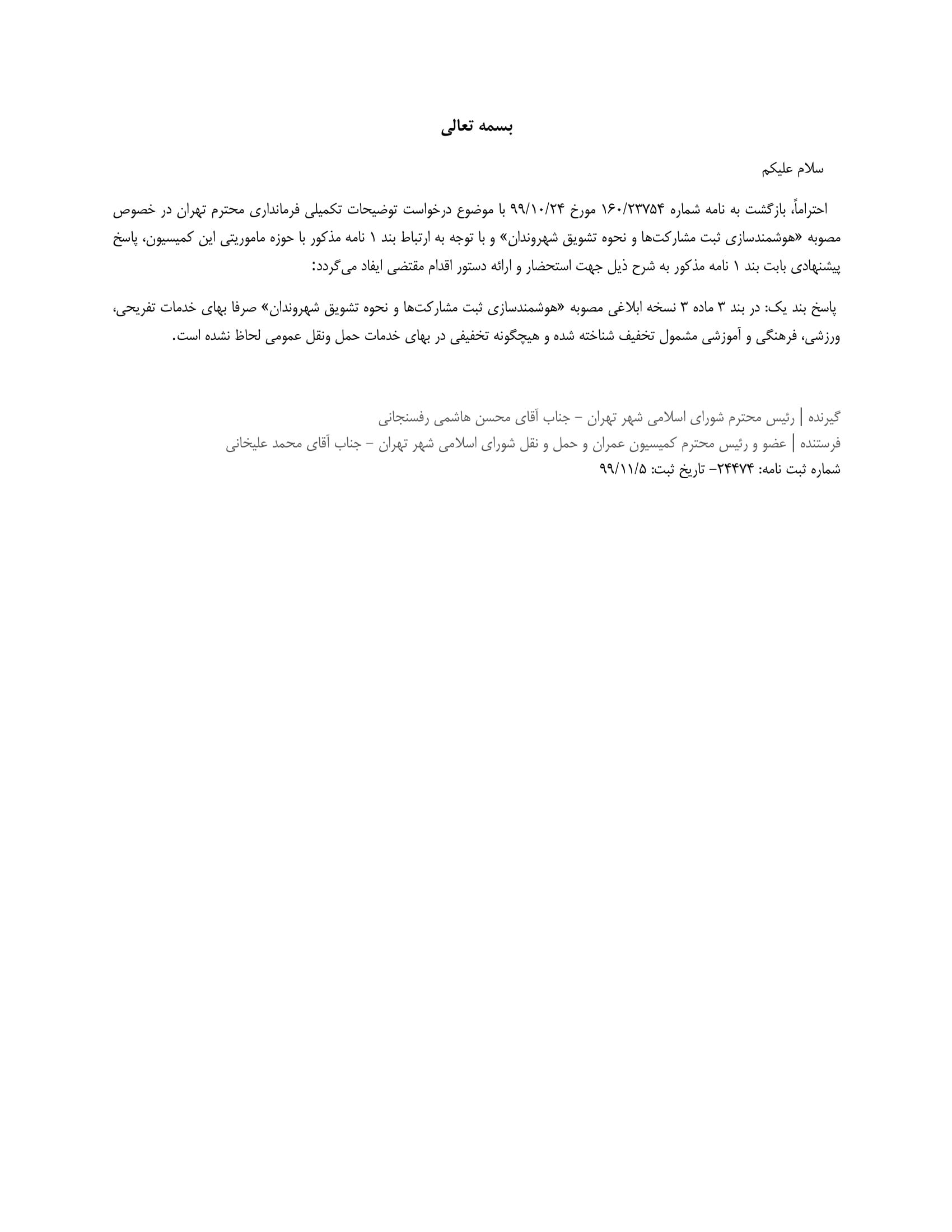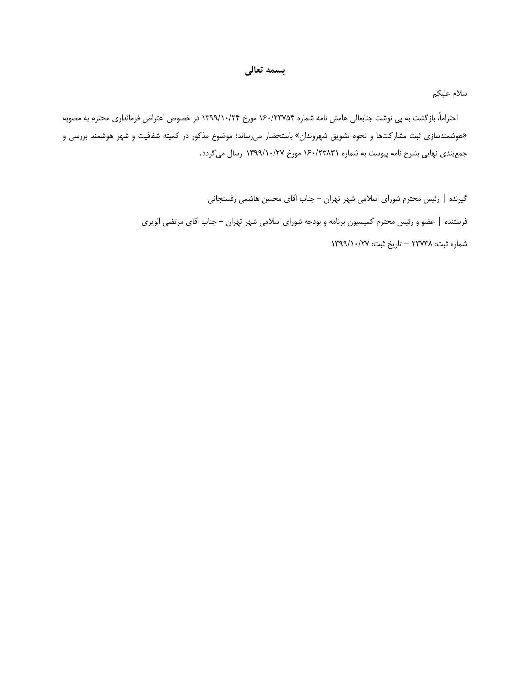 هوشمندسازي ثبت مشاركتها و نحوه تشويق شهروندان