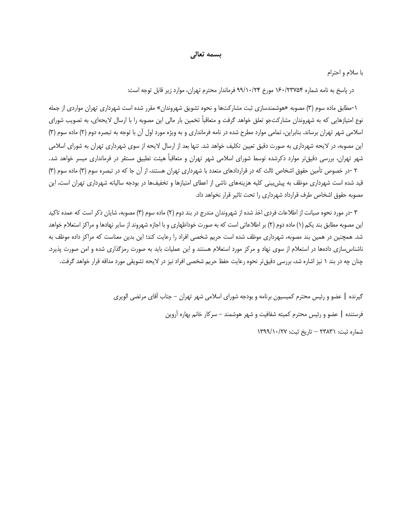 معرفی سامانه جامع مصوبات شورای اسلامی شهر تهران