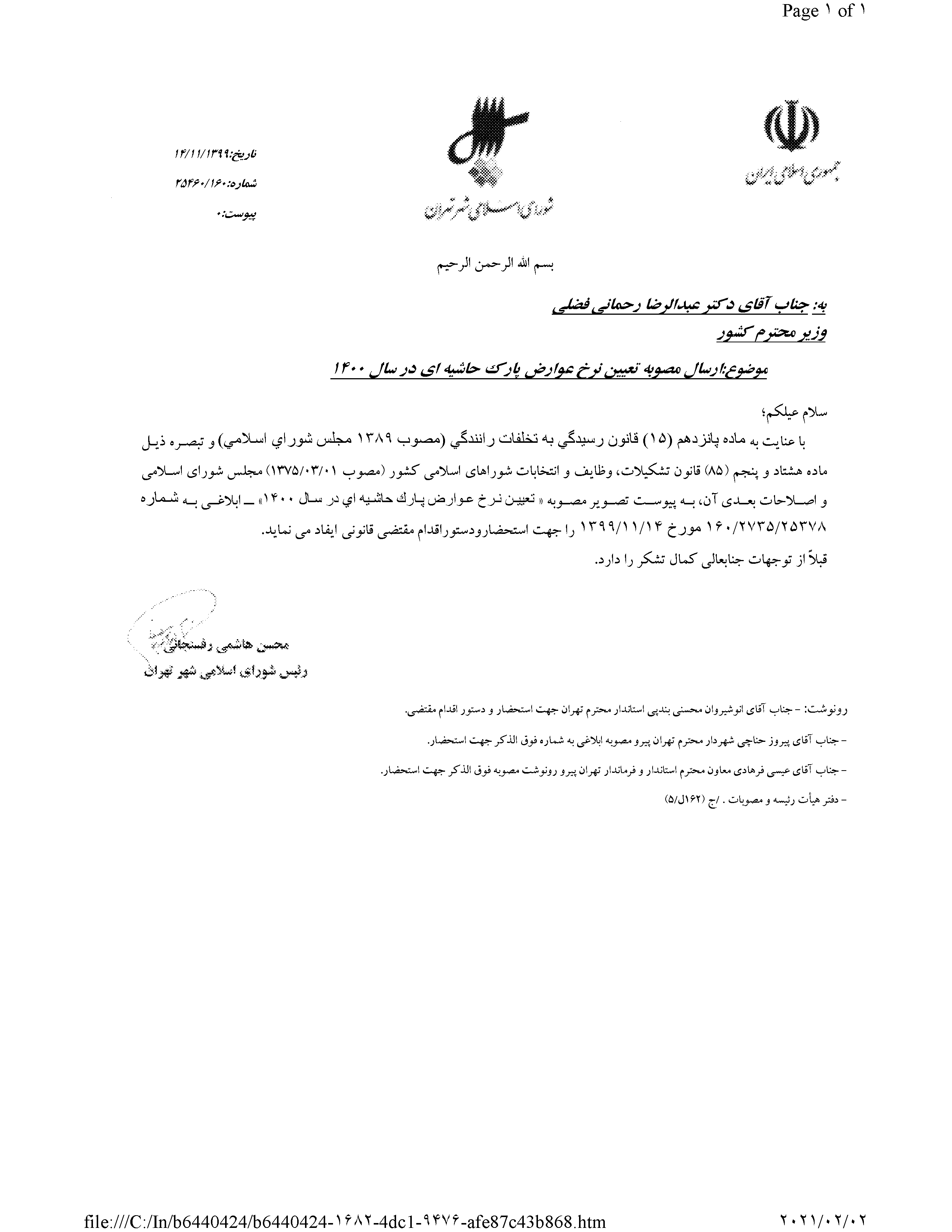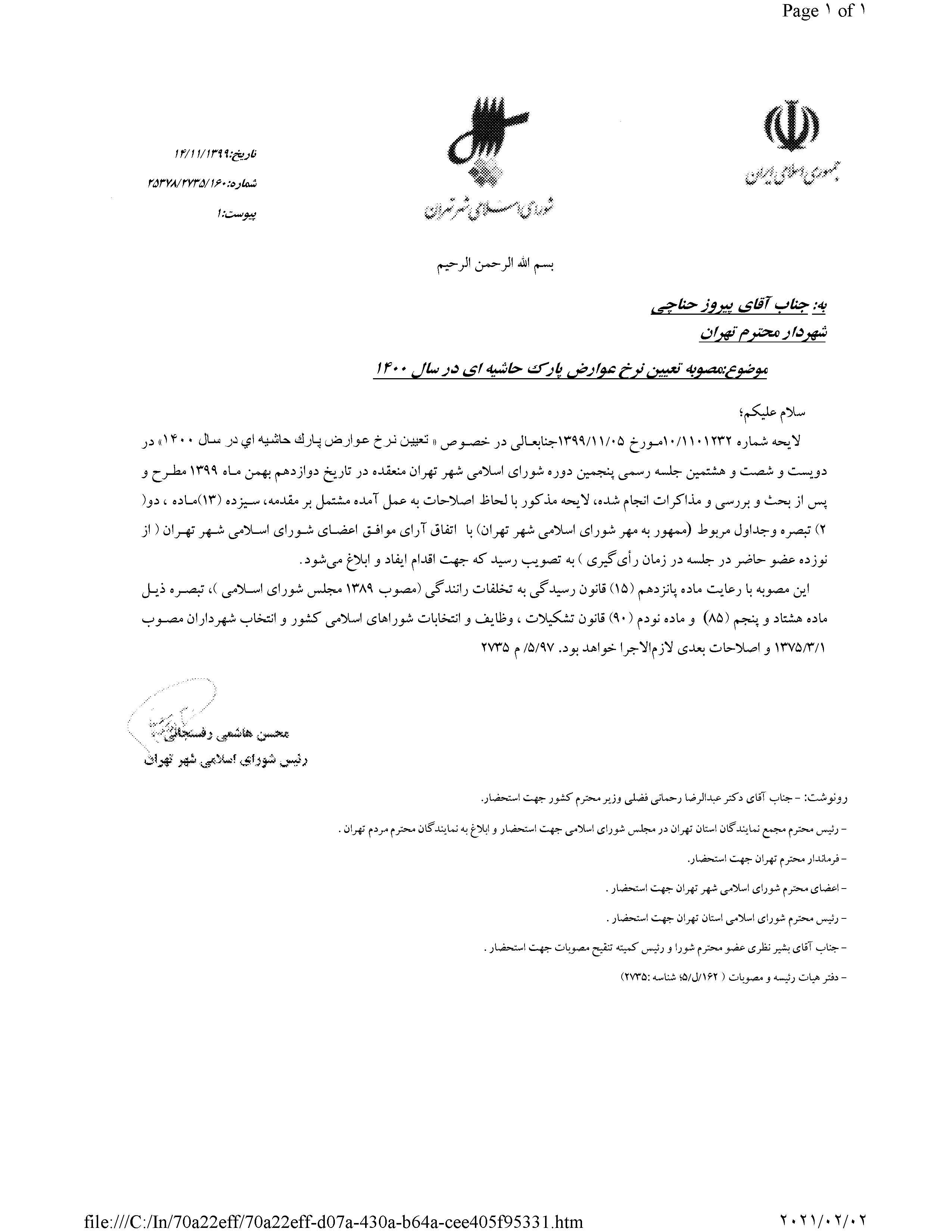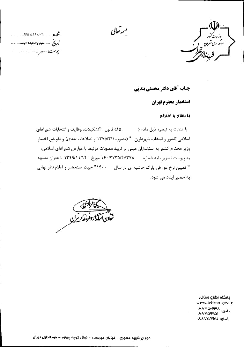 تعيين نرخ عوارض پارك حاشيهاي در سال 1400