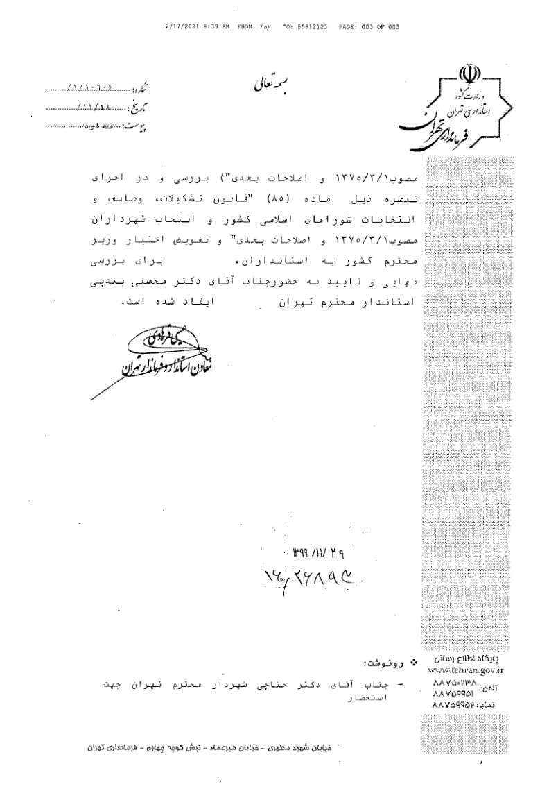 استعلام از وزارت کشور