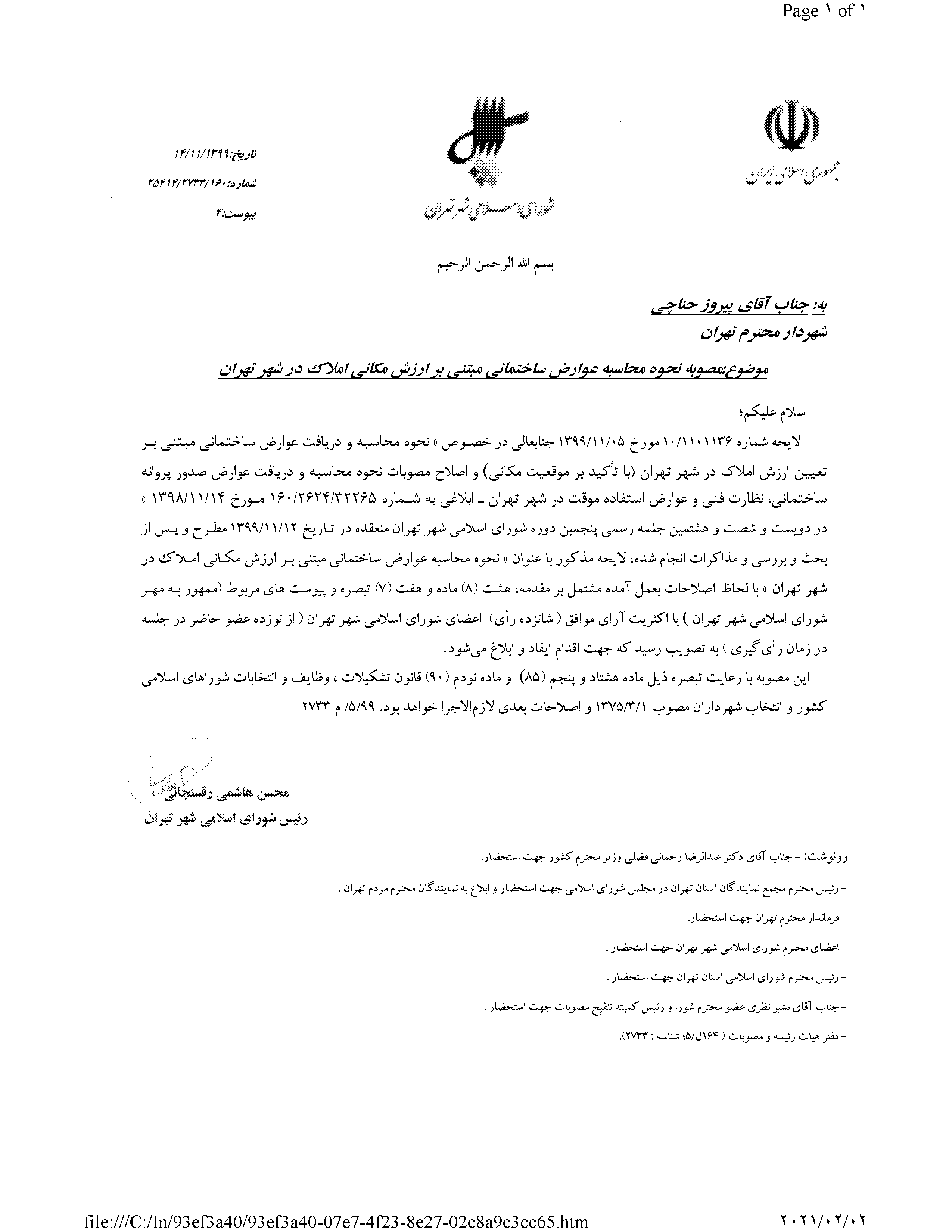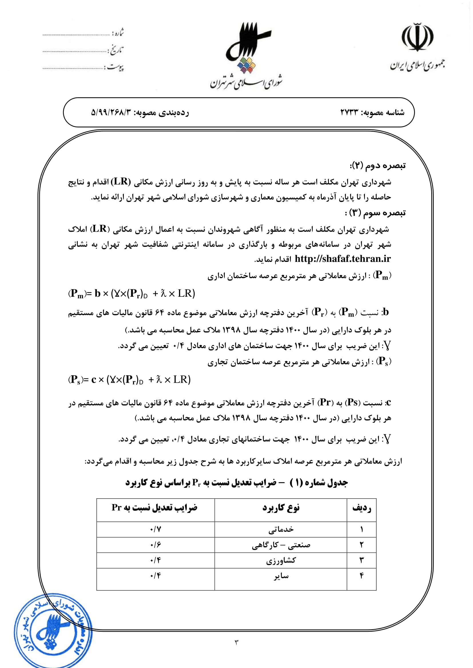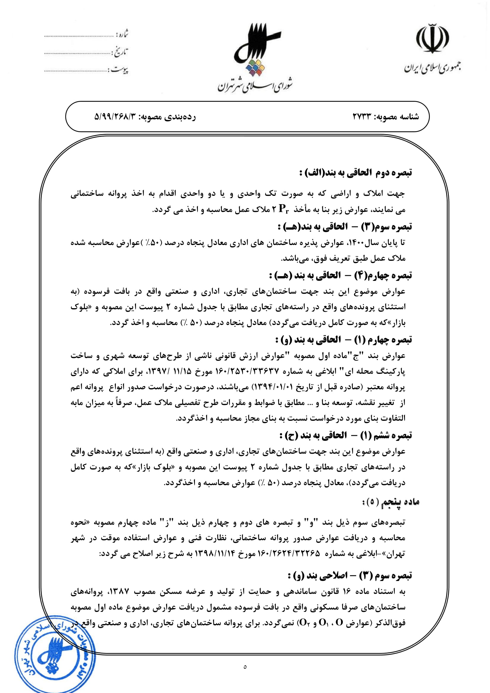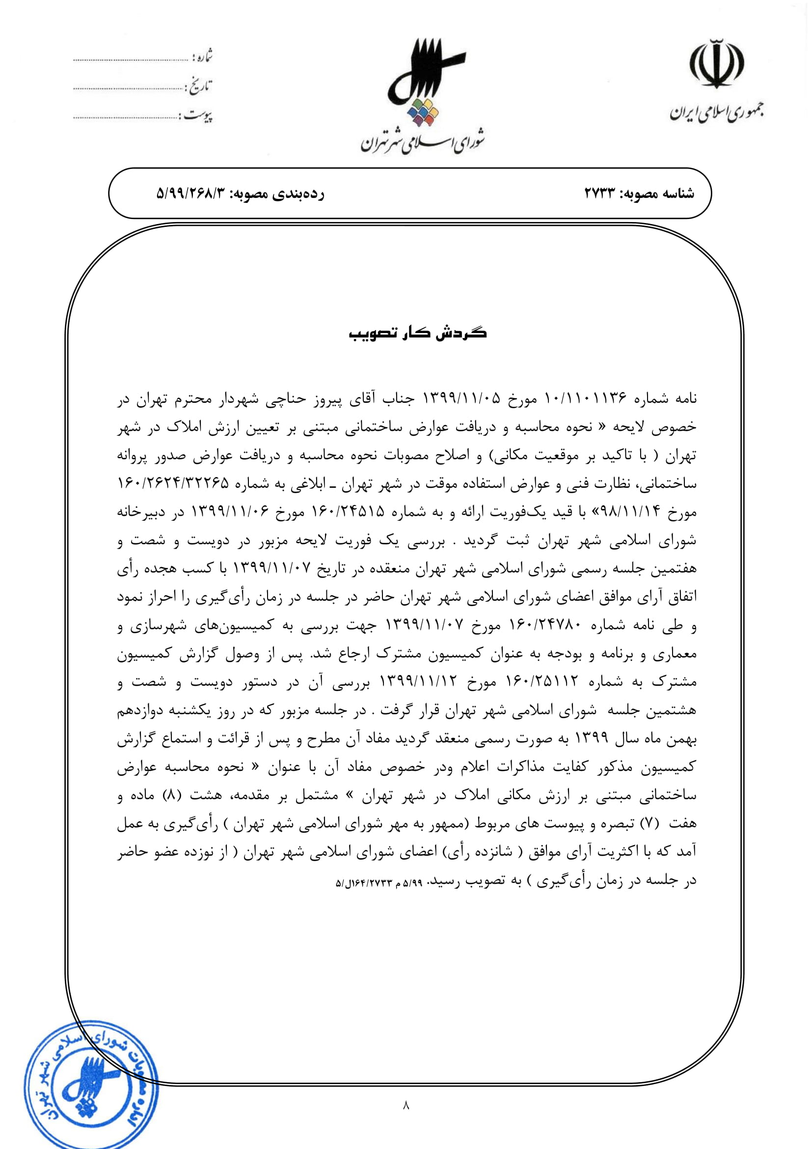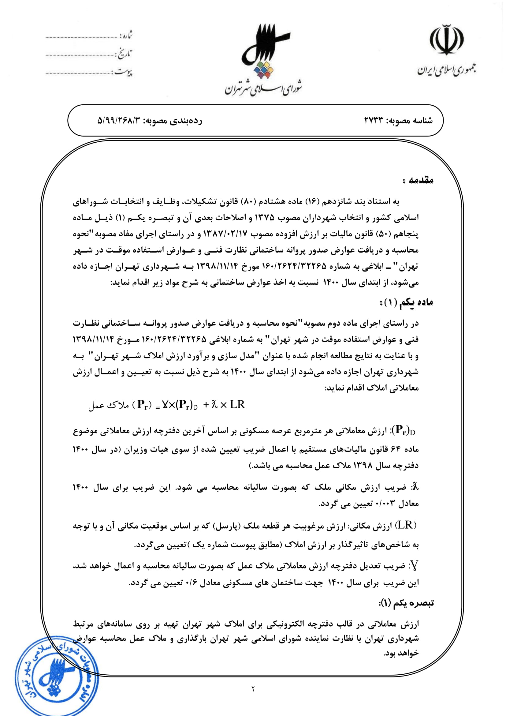 نحوه محاسبه عوارض ساختماني مبتني بر ارزش مكاني املاك در شهر تهران