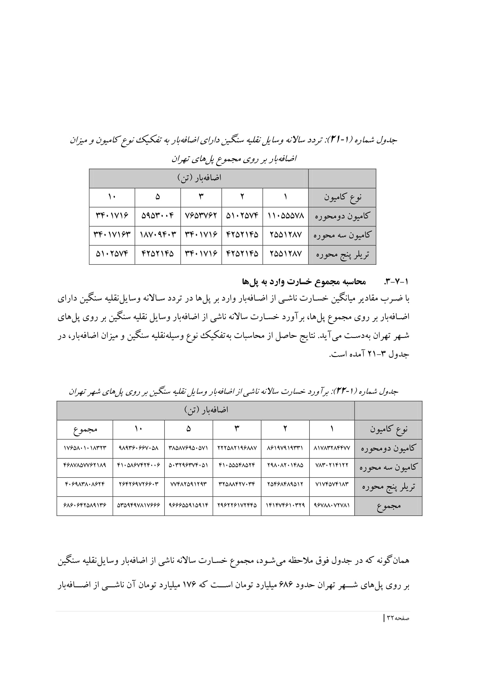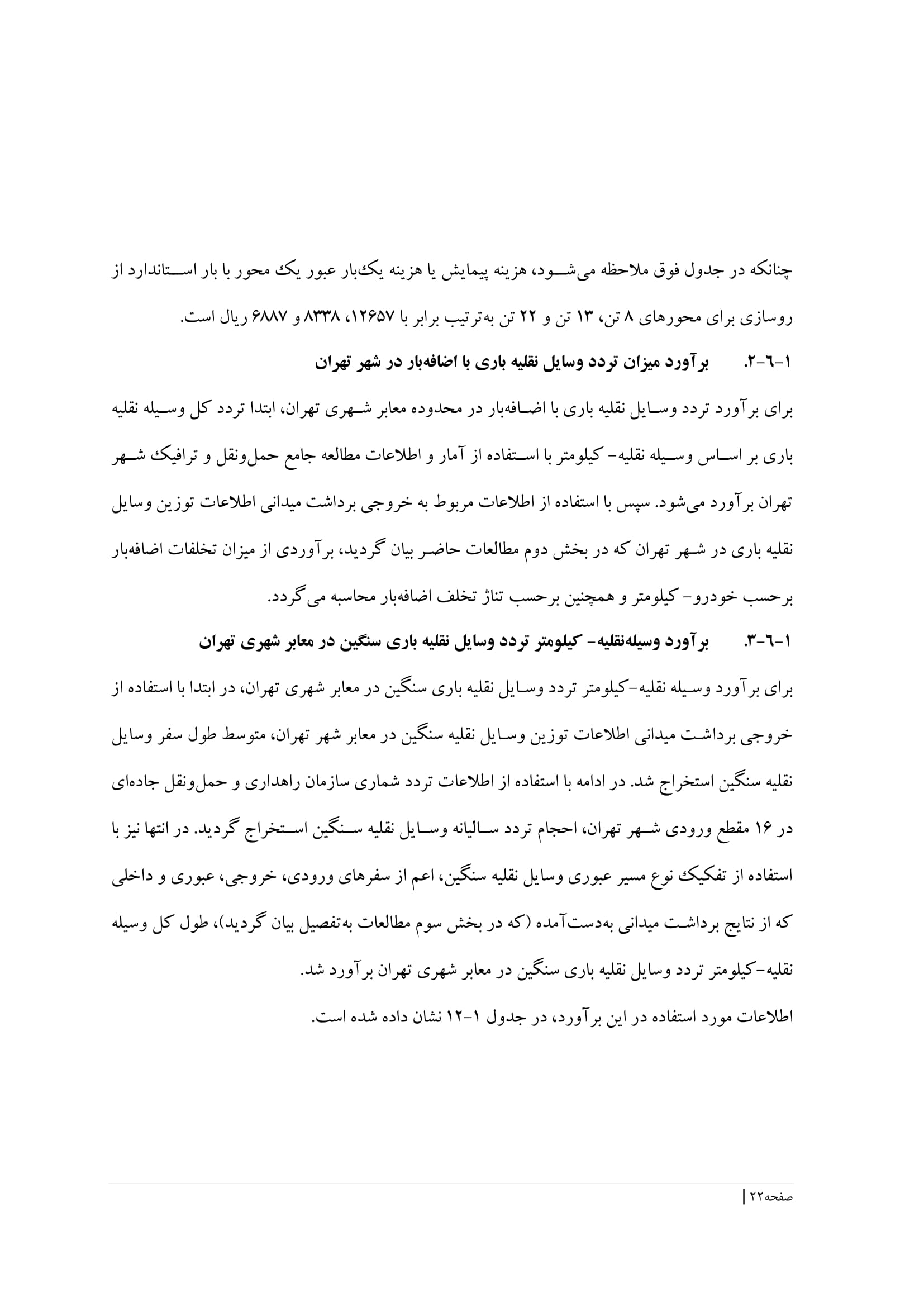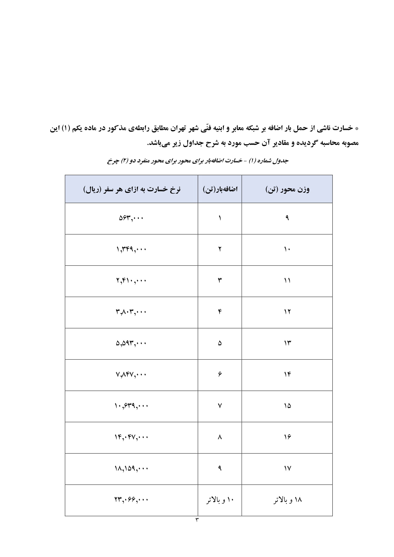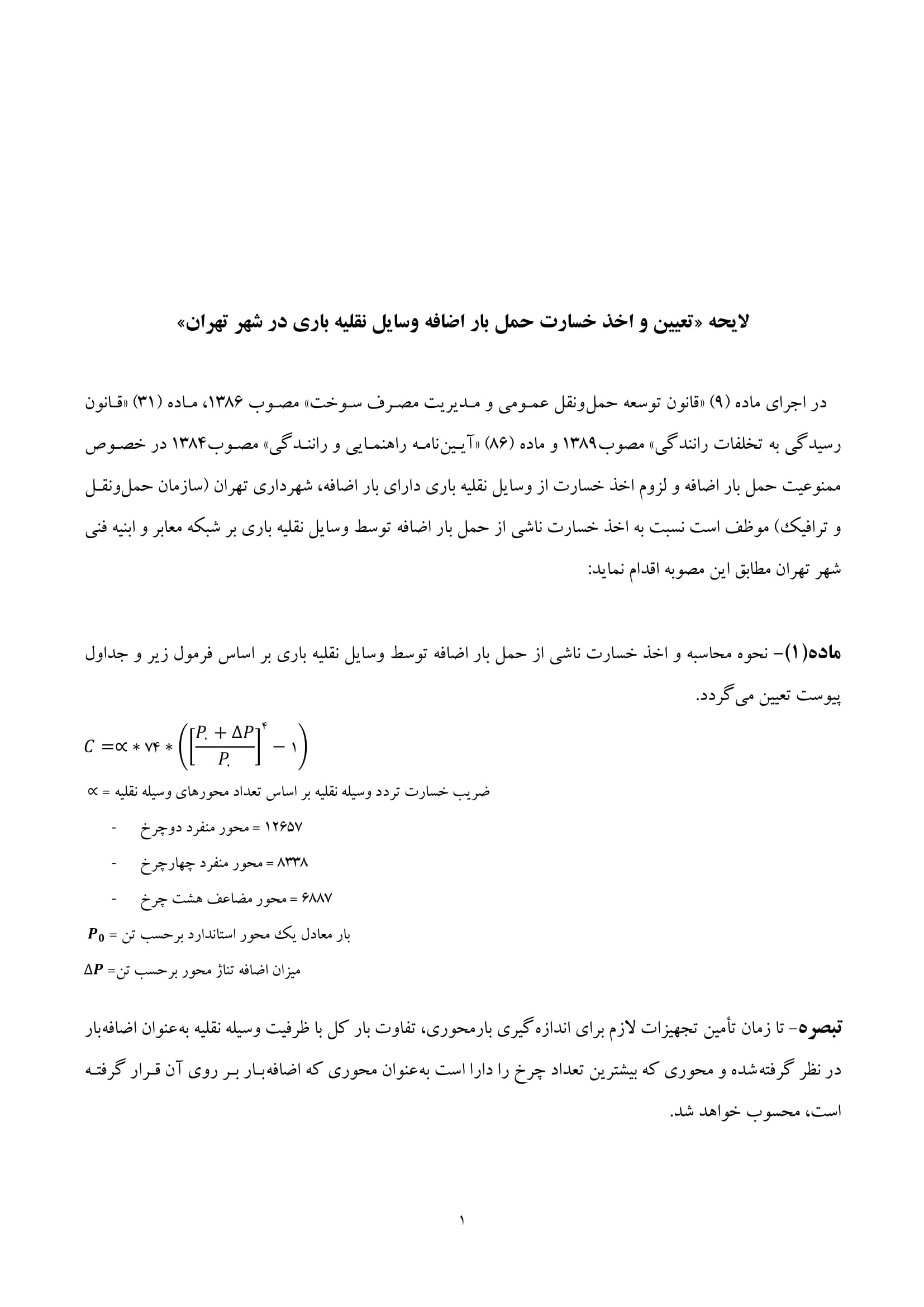 تعيين و اخذ خسارت حمل بار اضافه وسايل نقليه باري در شهر تهران
