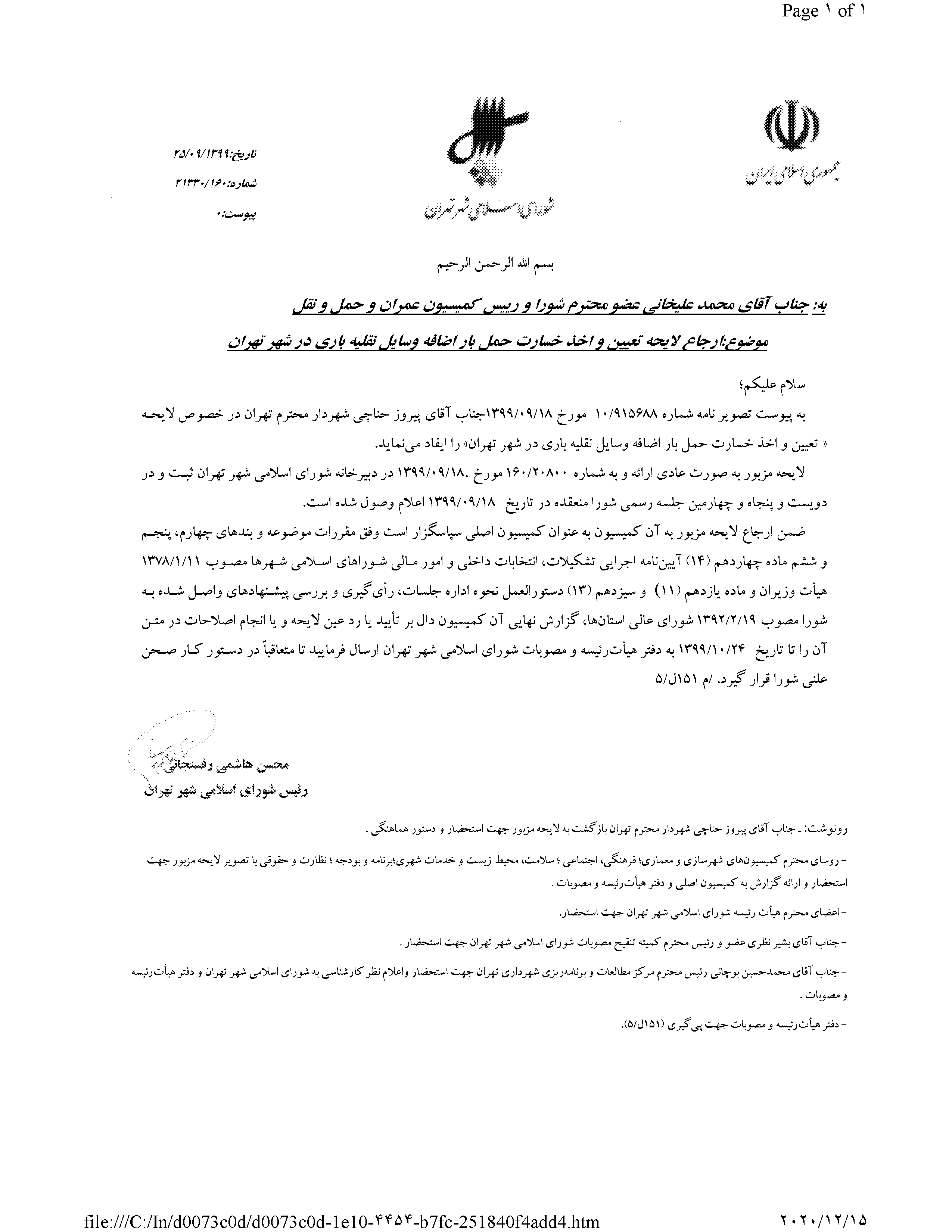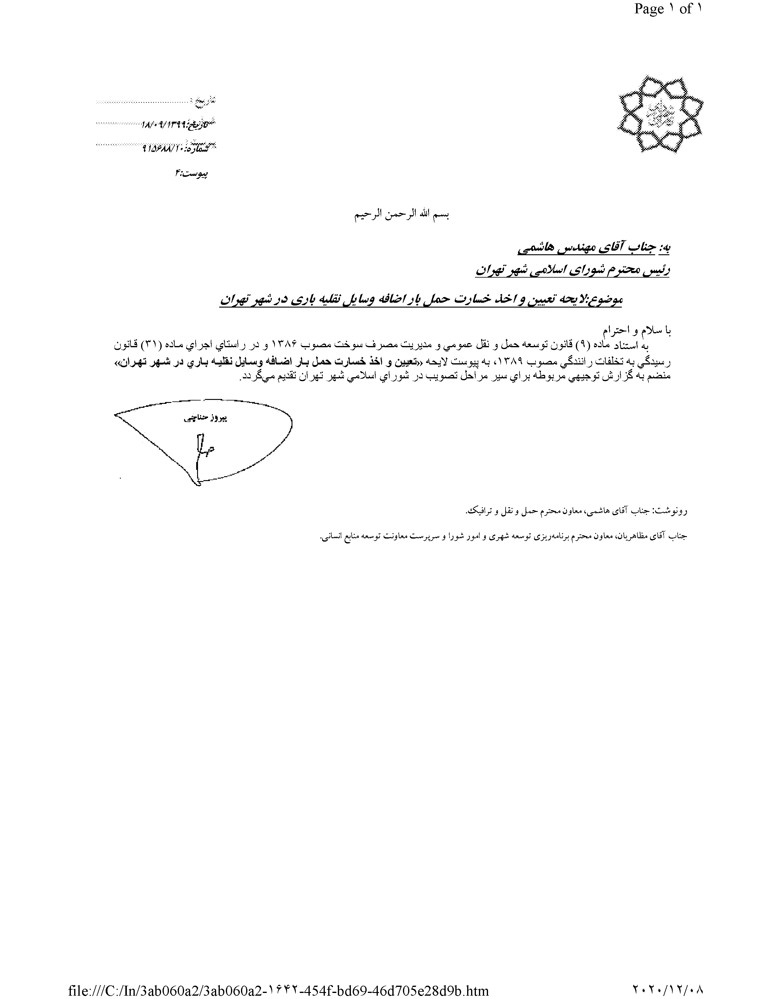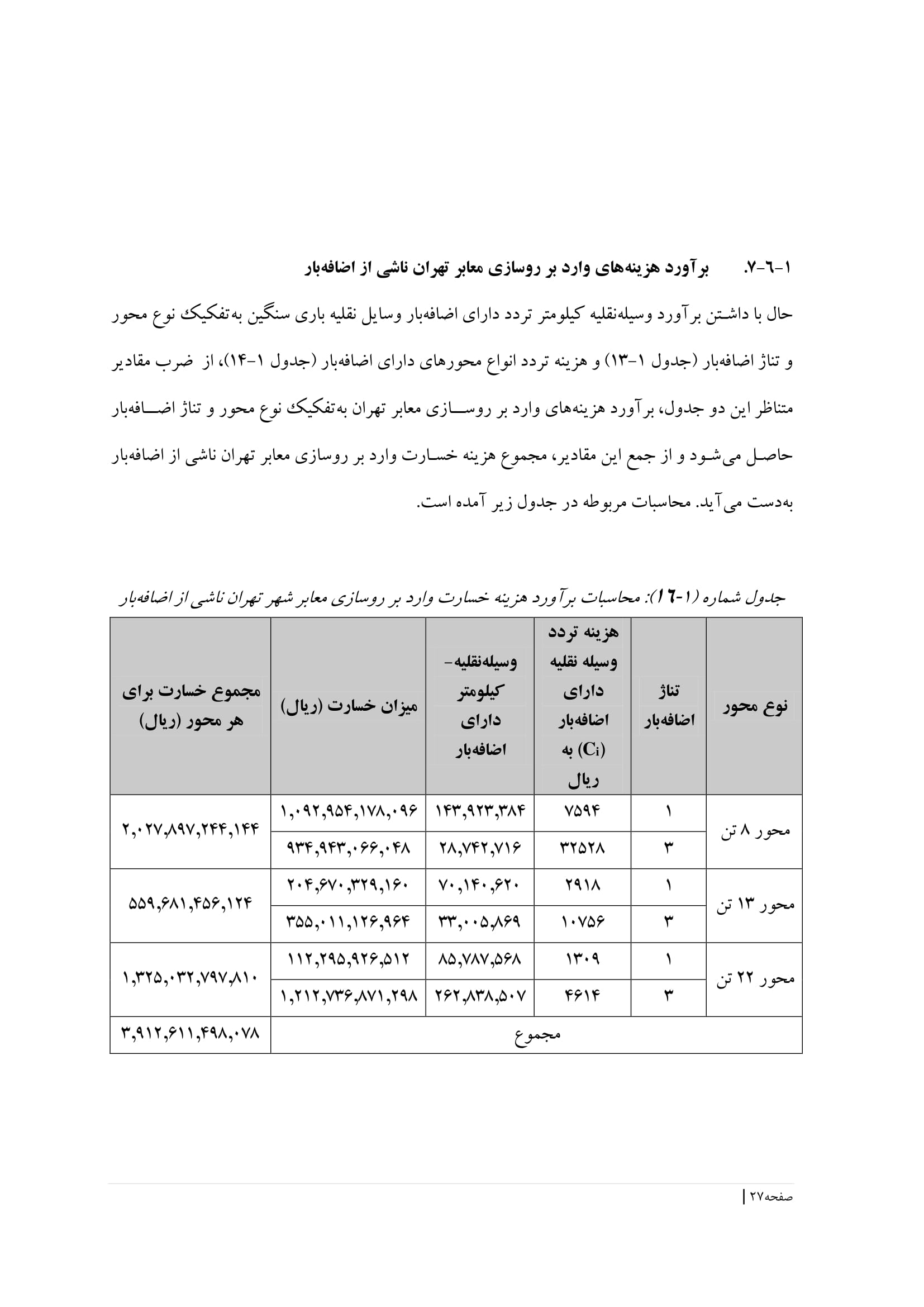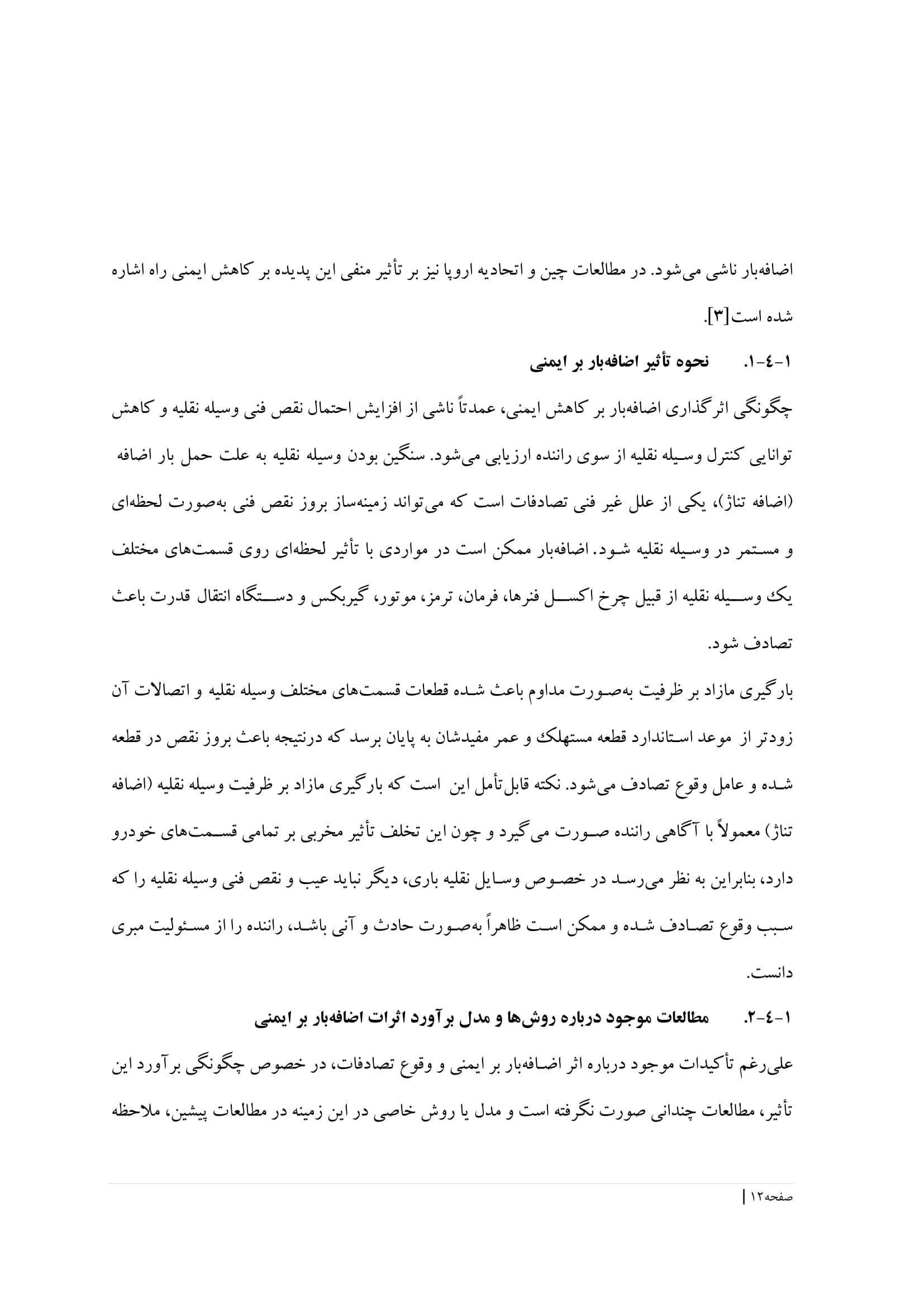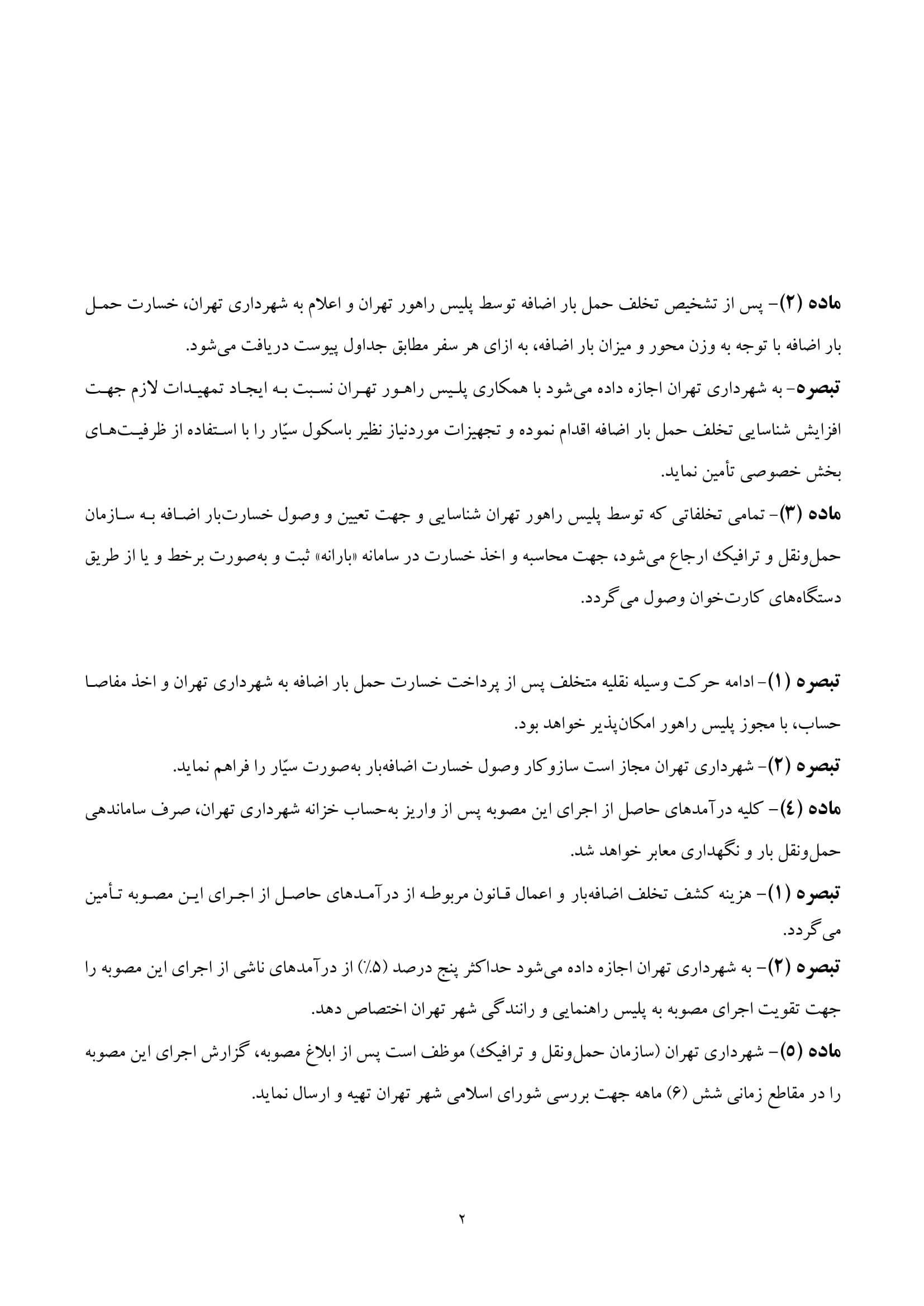 تعيين و اخذ خسارت حمل بار اضافه وسايل نقليه باري در شهر تهران