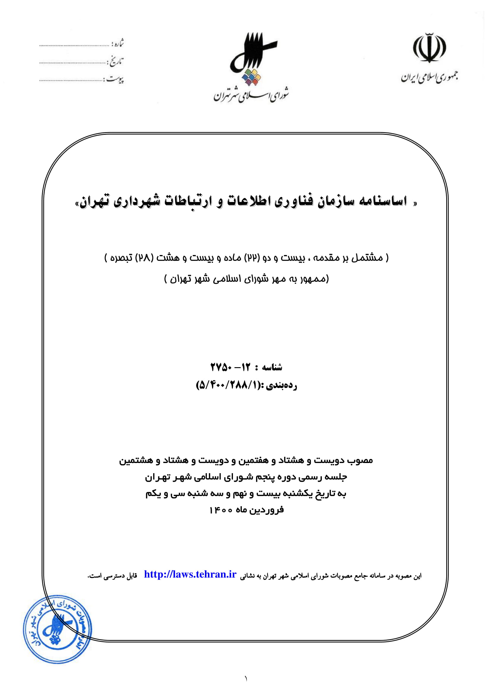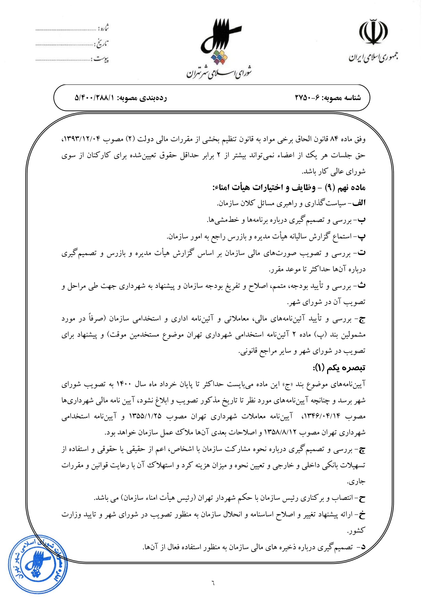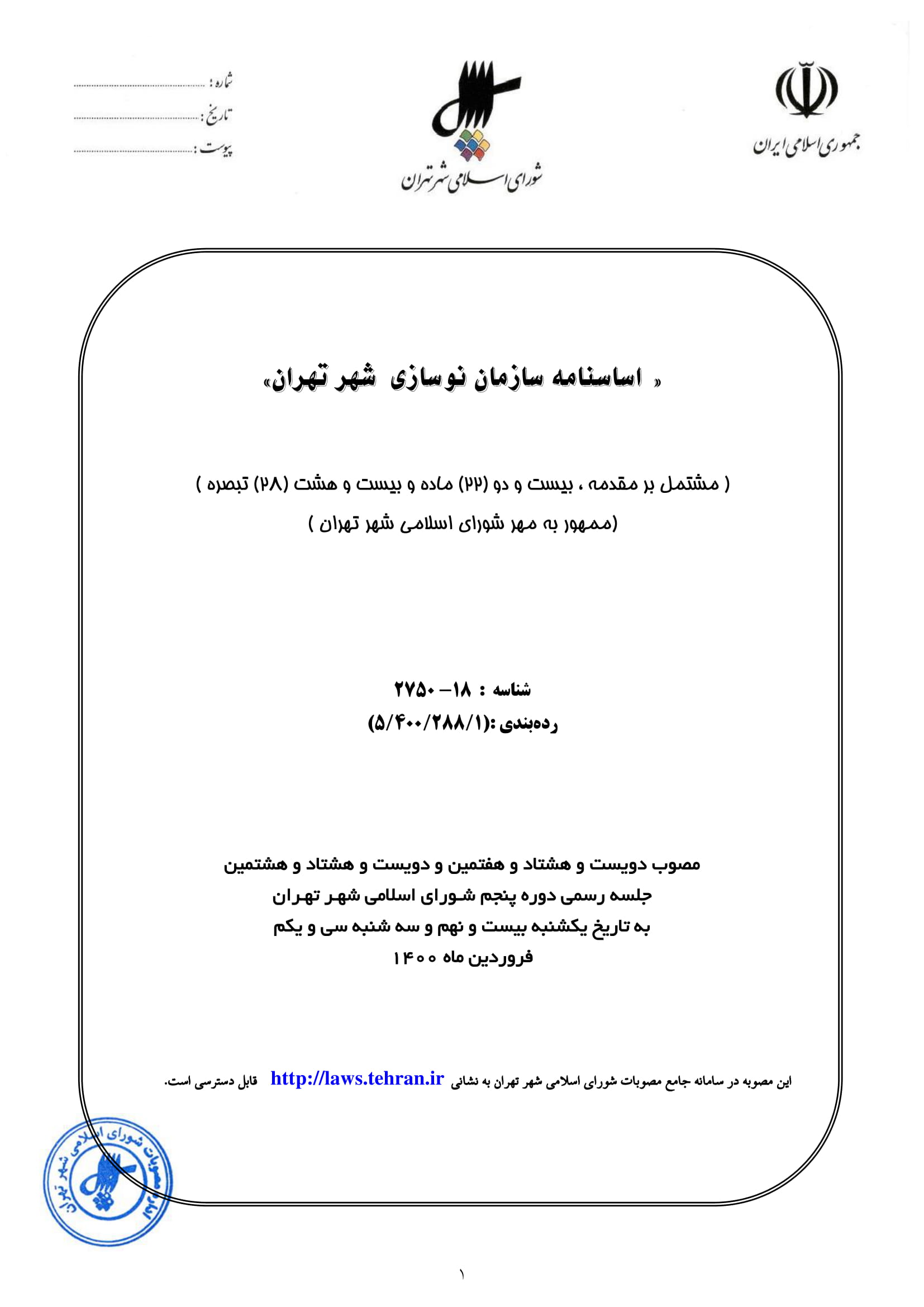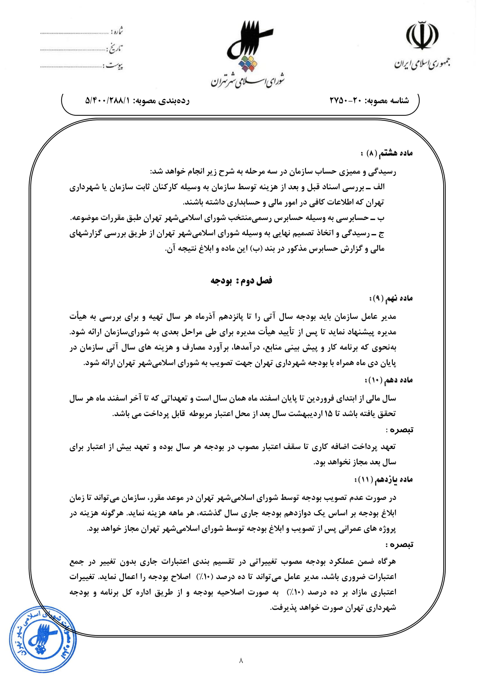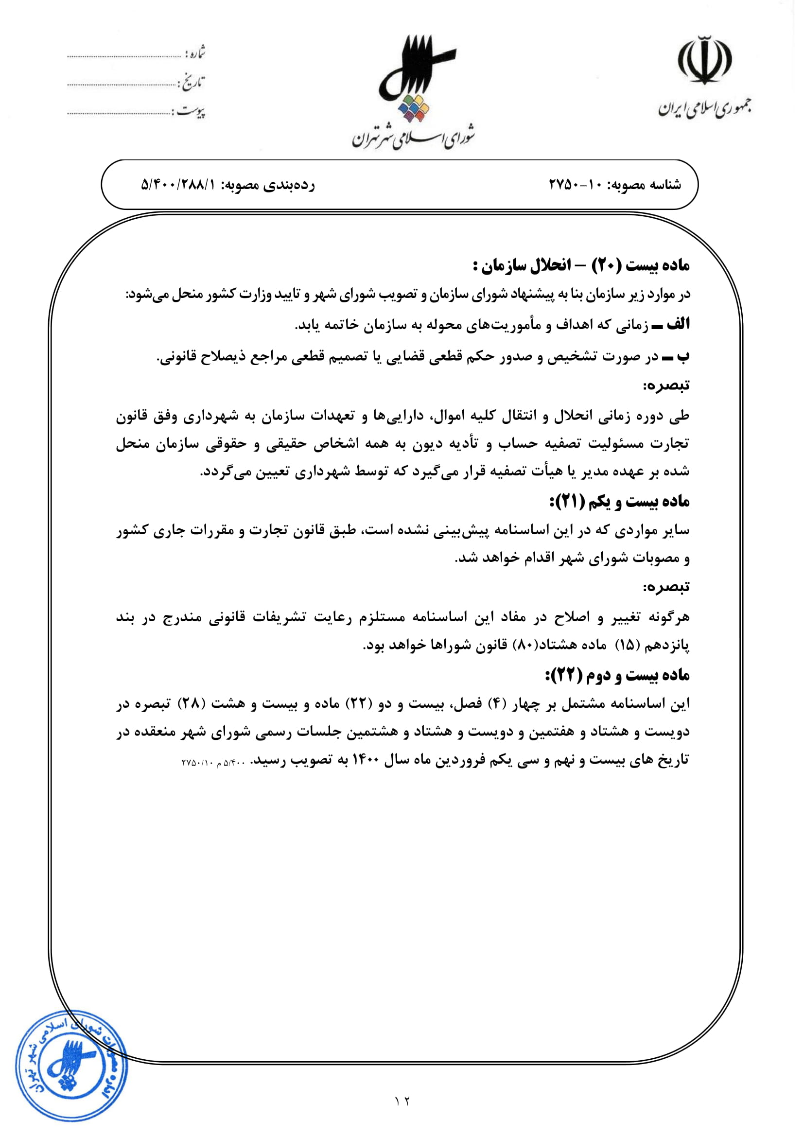اساسنامه‌هاي 19 سازمان وابسته به شهرداري تهران به انضمام آيين‌نامه مالي و معاملاتي سازمان‌هاي وابسته و مقررات استخدامي مستخدمين موقت شهرداري تهران