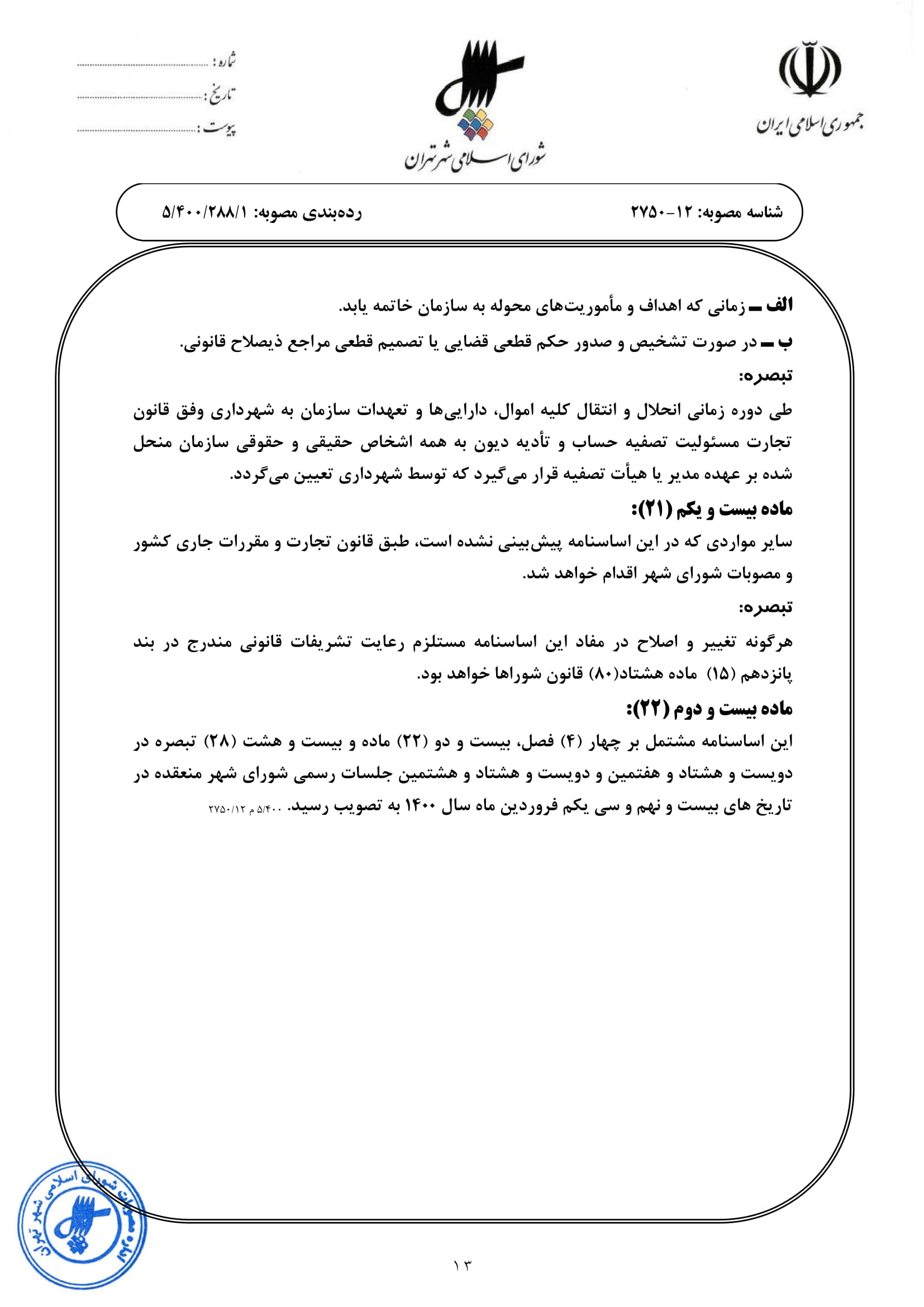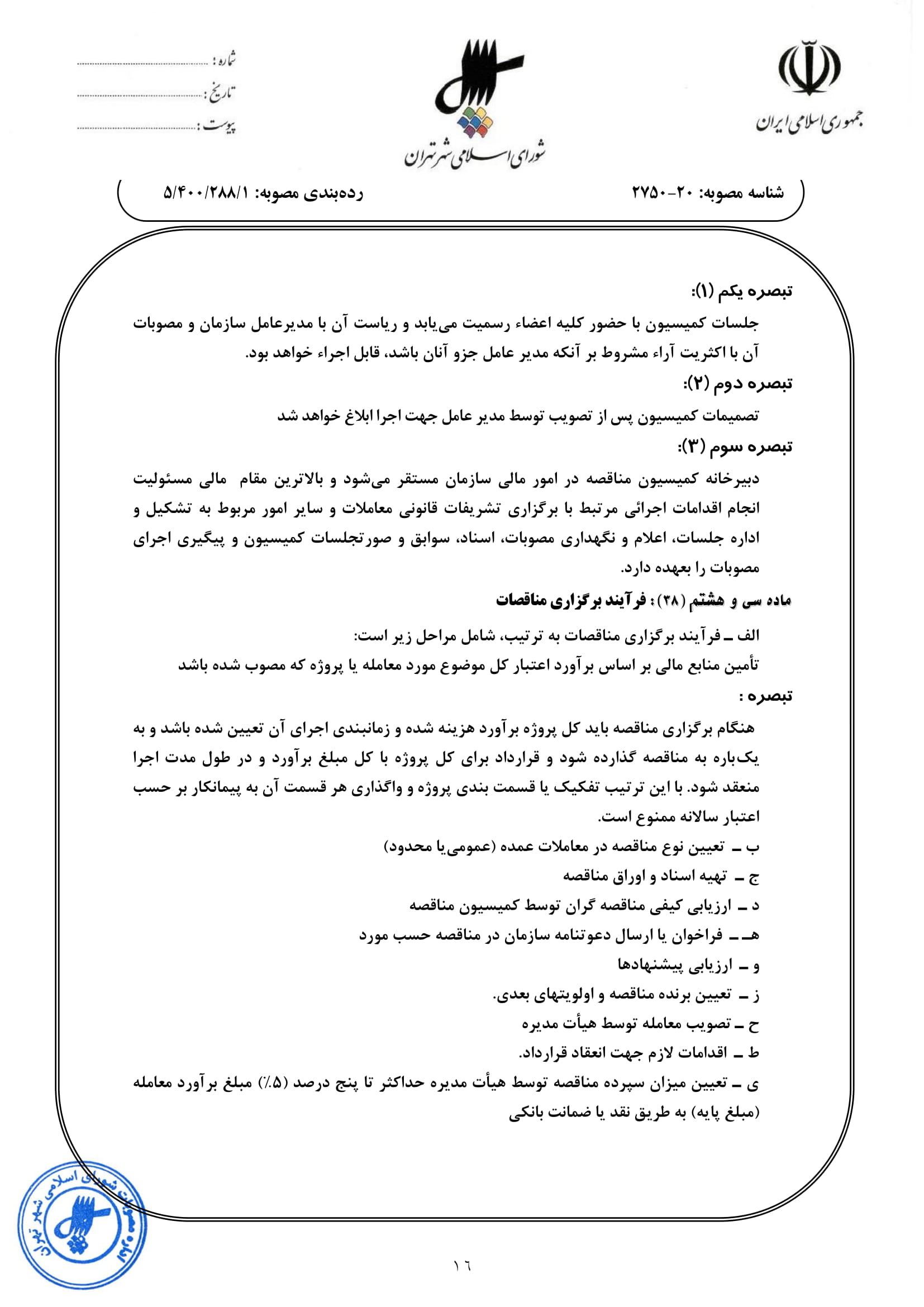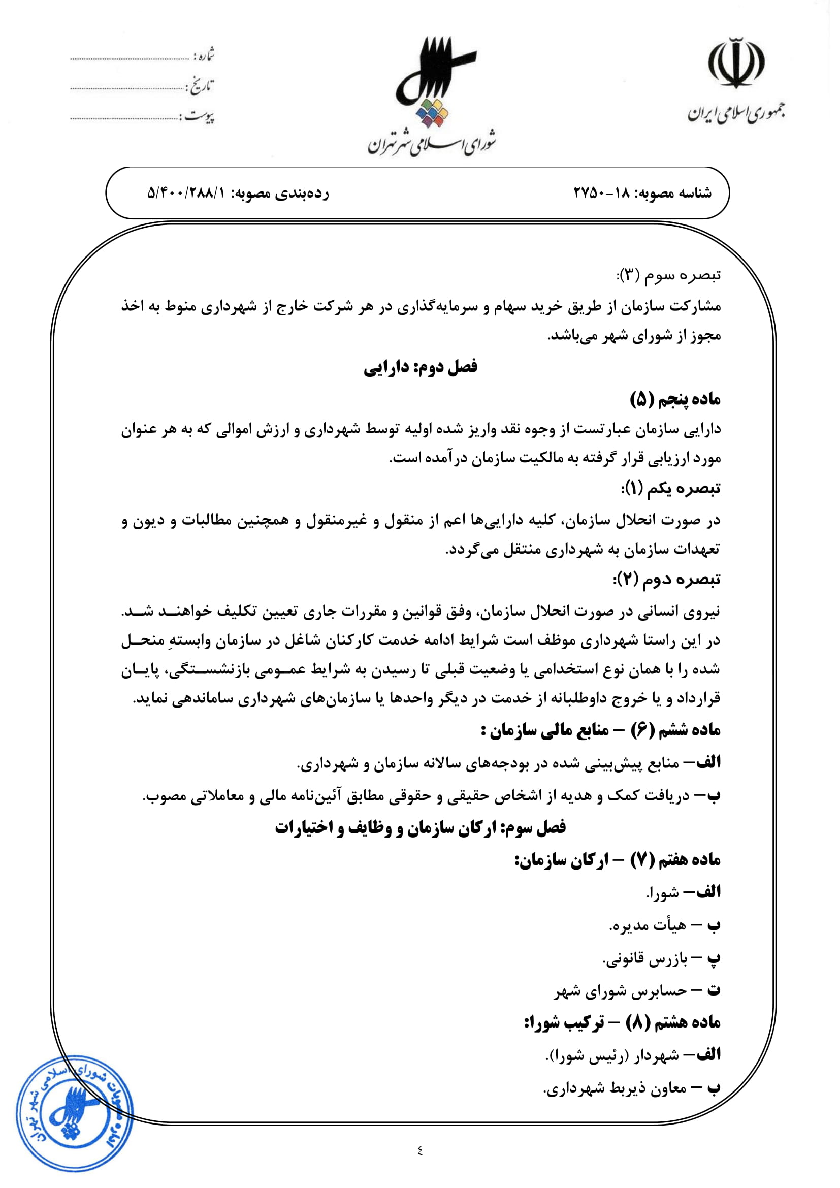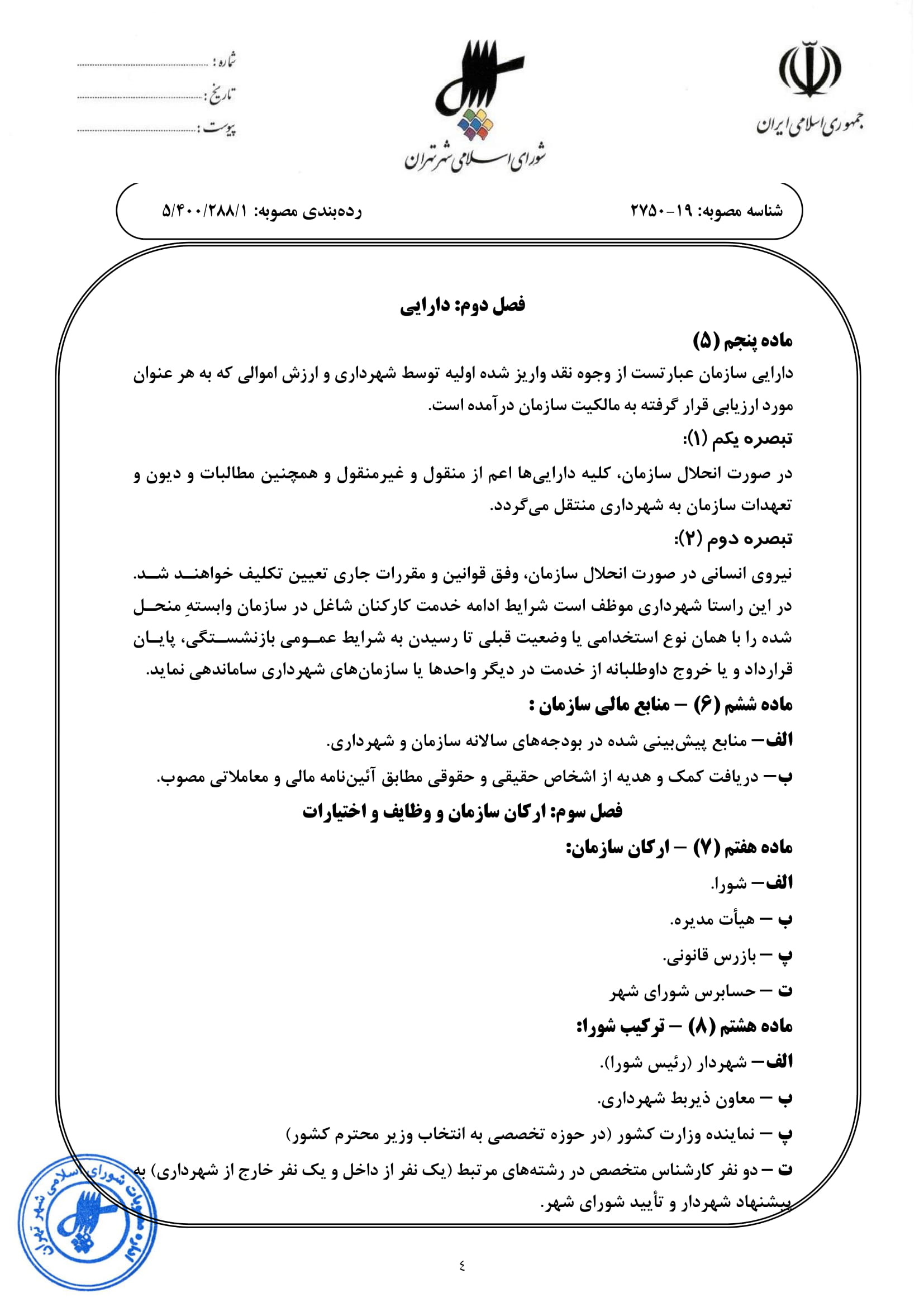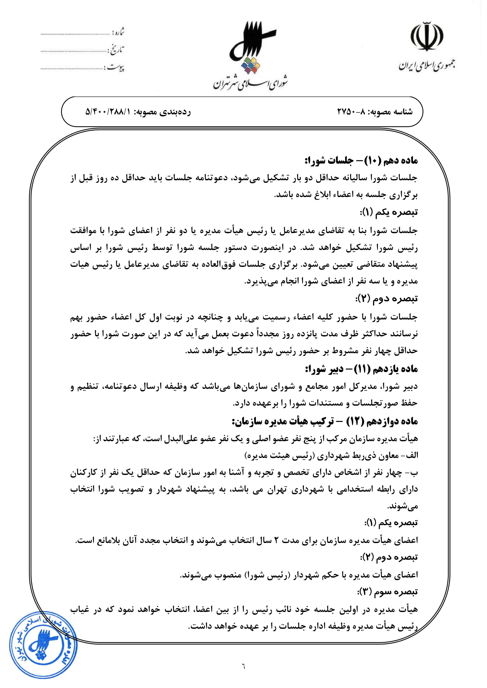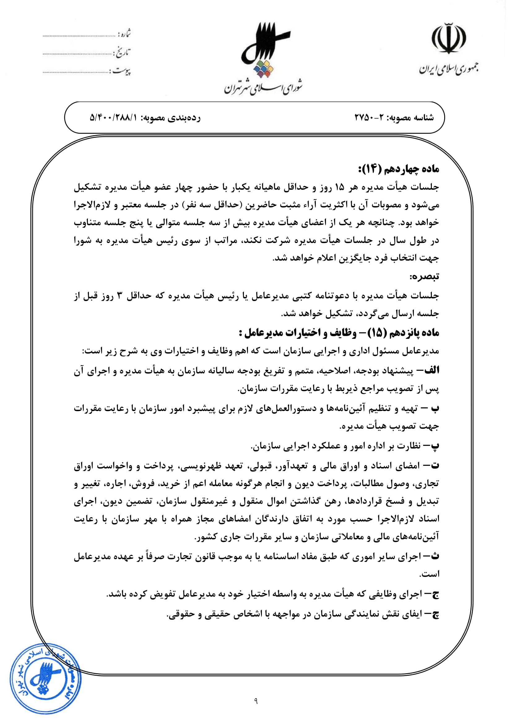 اساسنامه‌هاي 19 سازمان وابسته به شهرداري تهران به انضمام آيين‌نامه مالي و معاملاتي سازمان‌هاي وابسته و مقررات استخدامي مستخدمين موقت شهرداري تهران