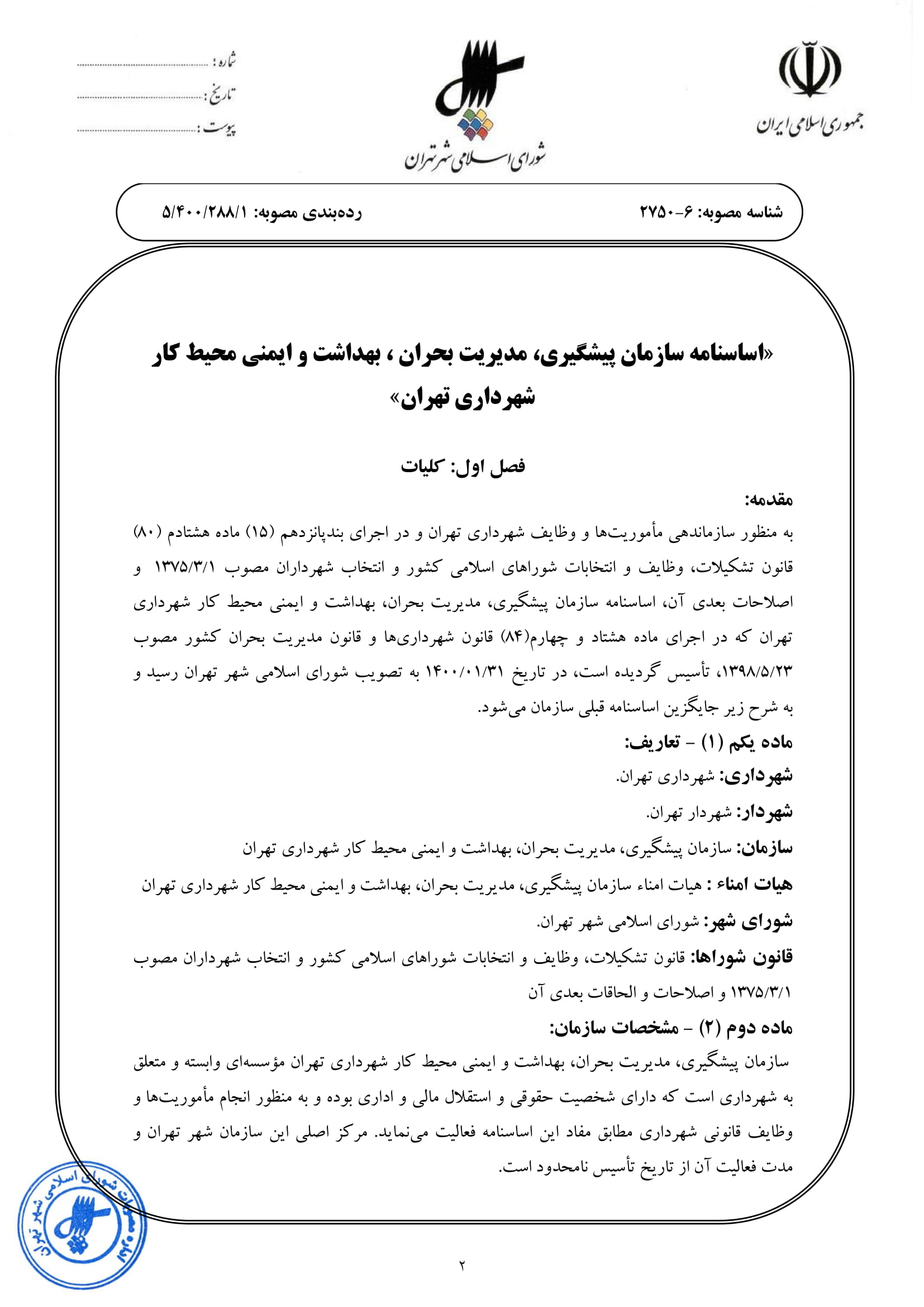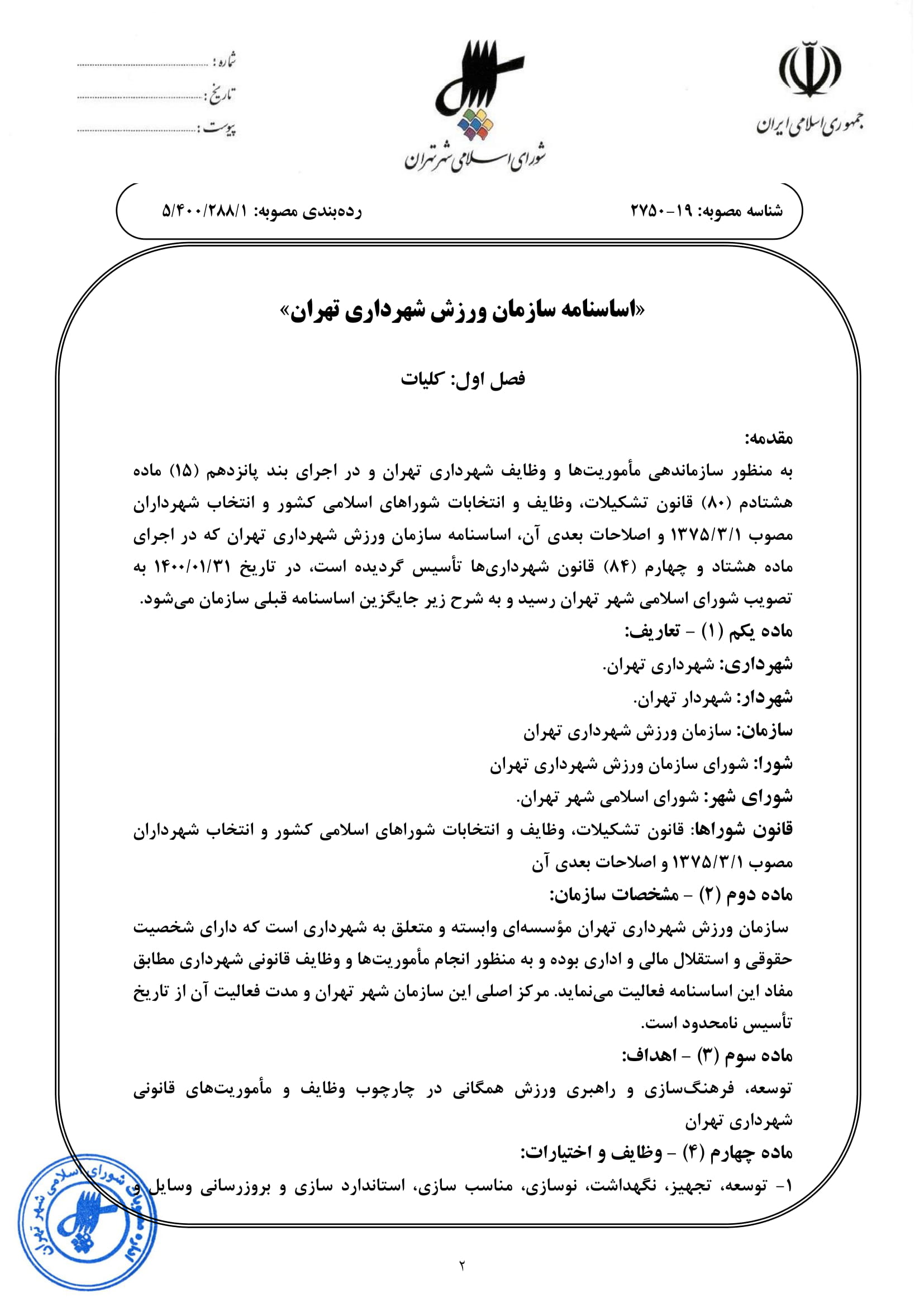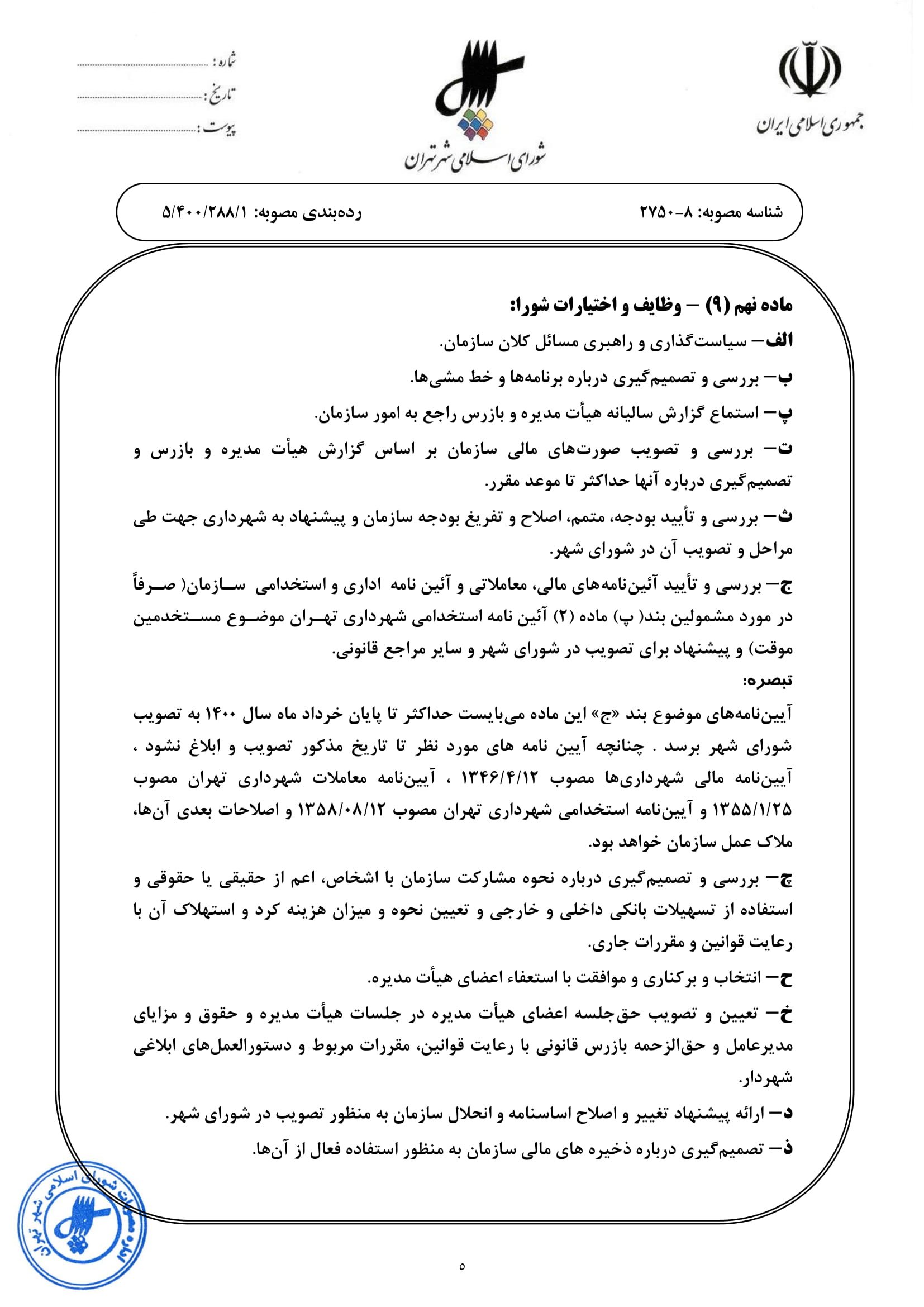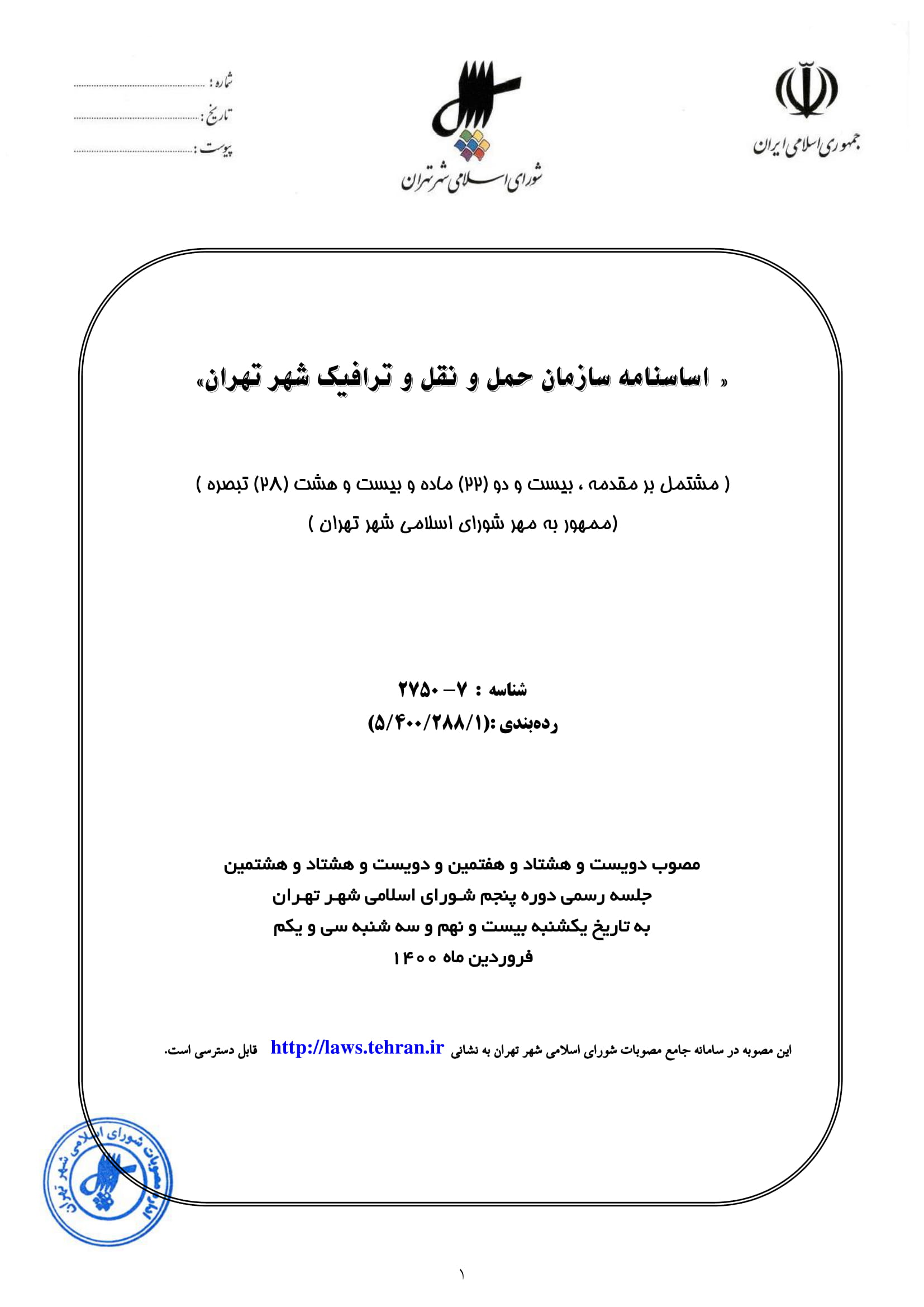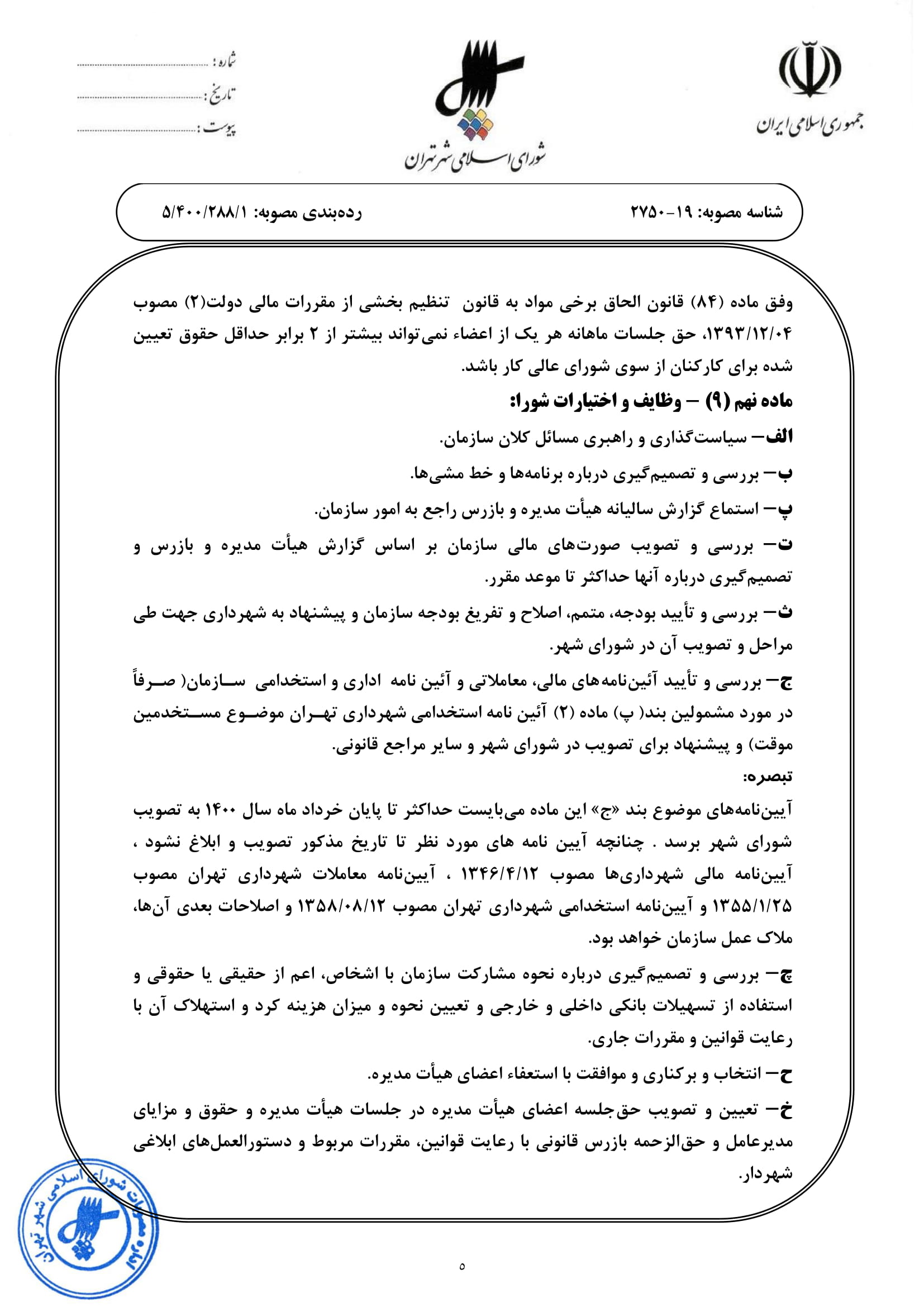اساسنامه‌هاي 19 سازمان وابسته به شهرداري تهران به انضمام آيين‌نامه مالي و معاملاتي سازمان‌هاي وابسته و مقررات استخدامي مستخدمين موقت شهرداري تهران