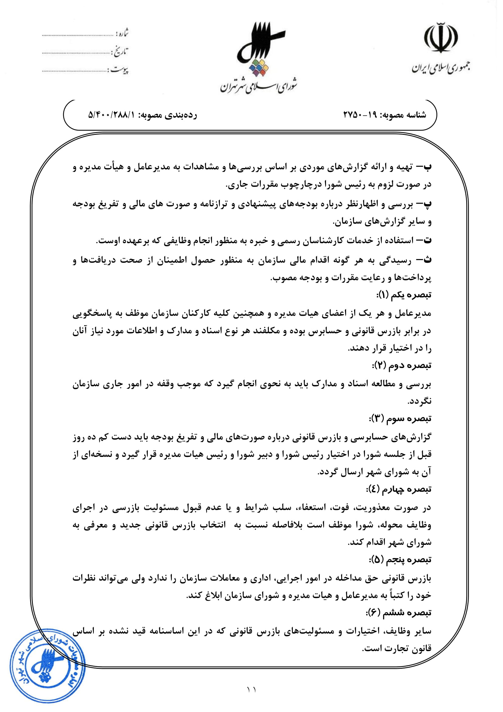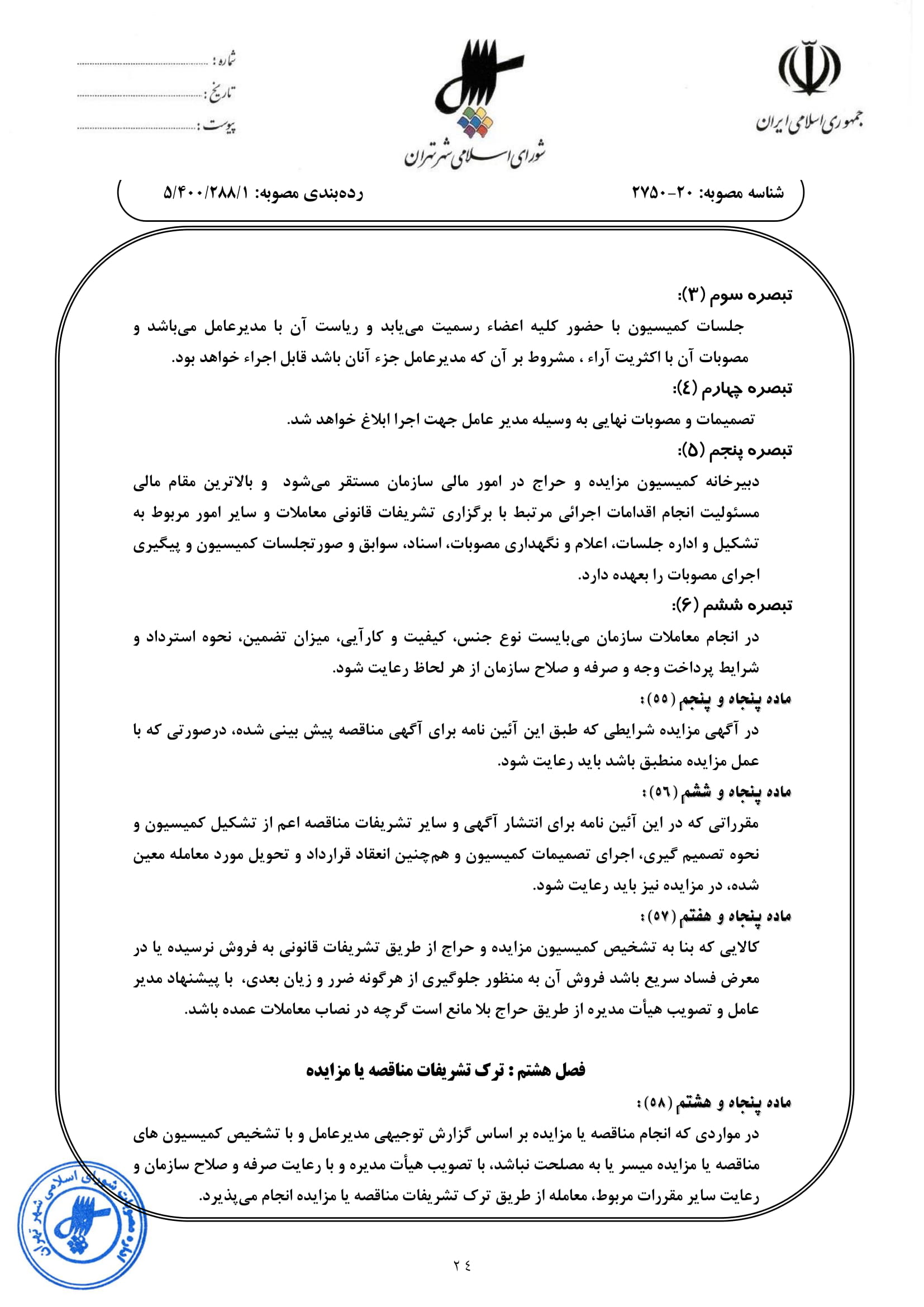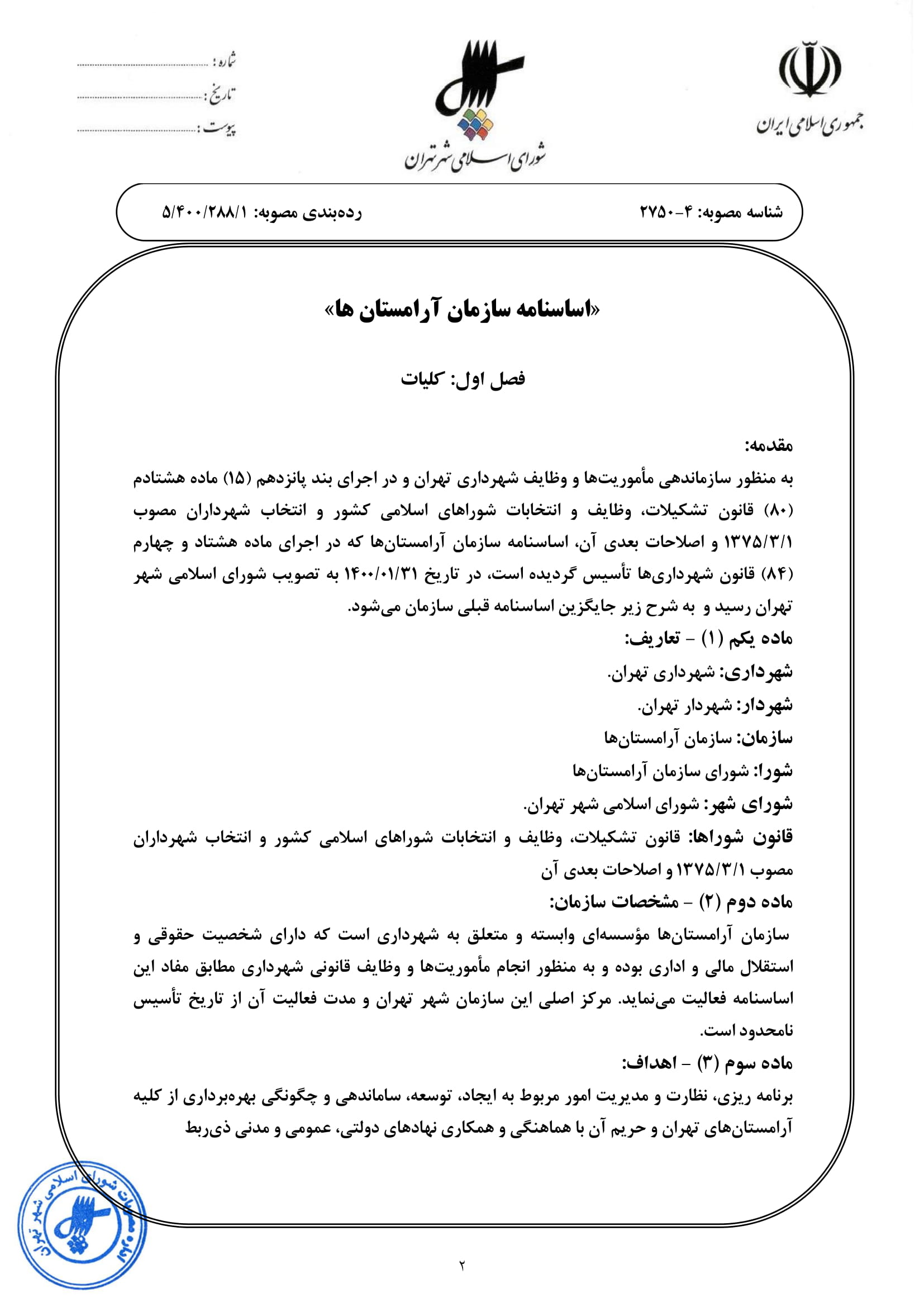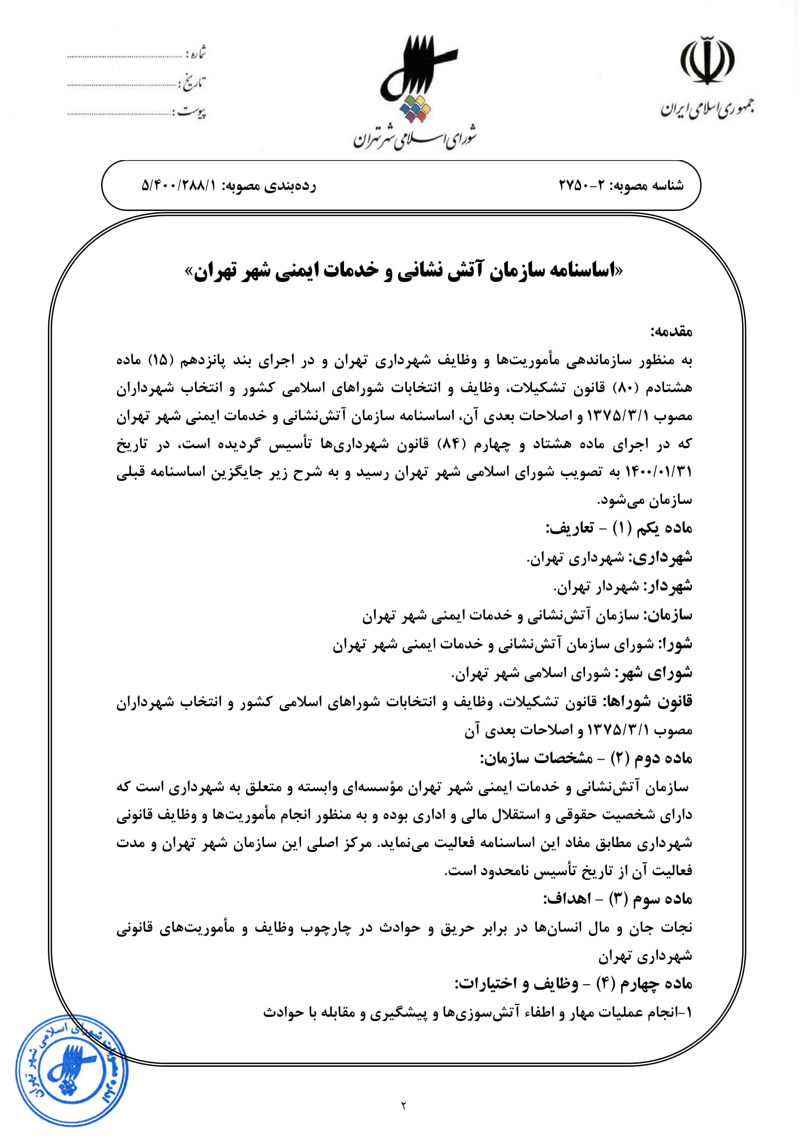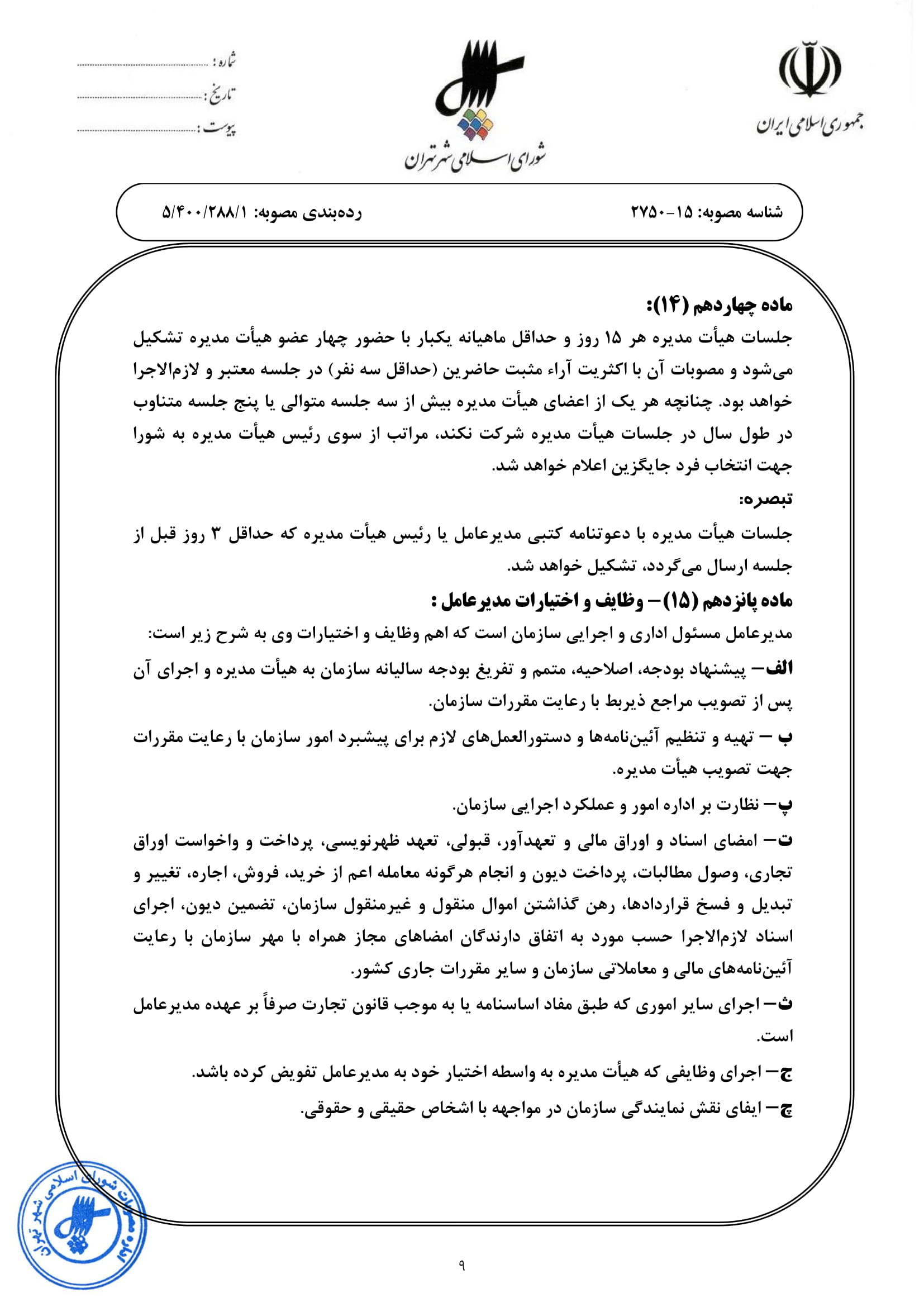 اساسنامه‌هاي 19 سازمان وابسته به شهرداري تهران به انضمام آيين‌نامه مالي و معاملاتي سازمان‌هاي وابسته و مقررات استخدامي مستخدمين موقت شهرداري تهران