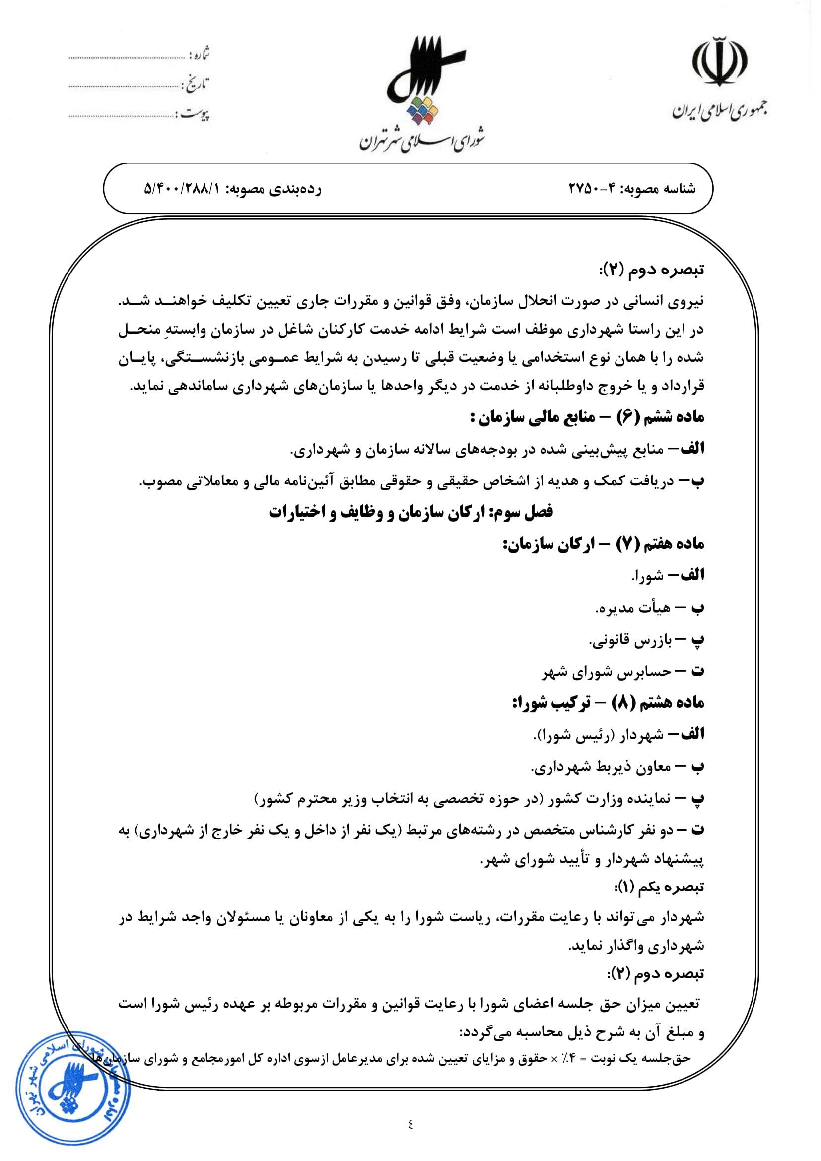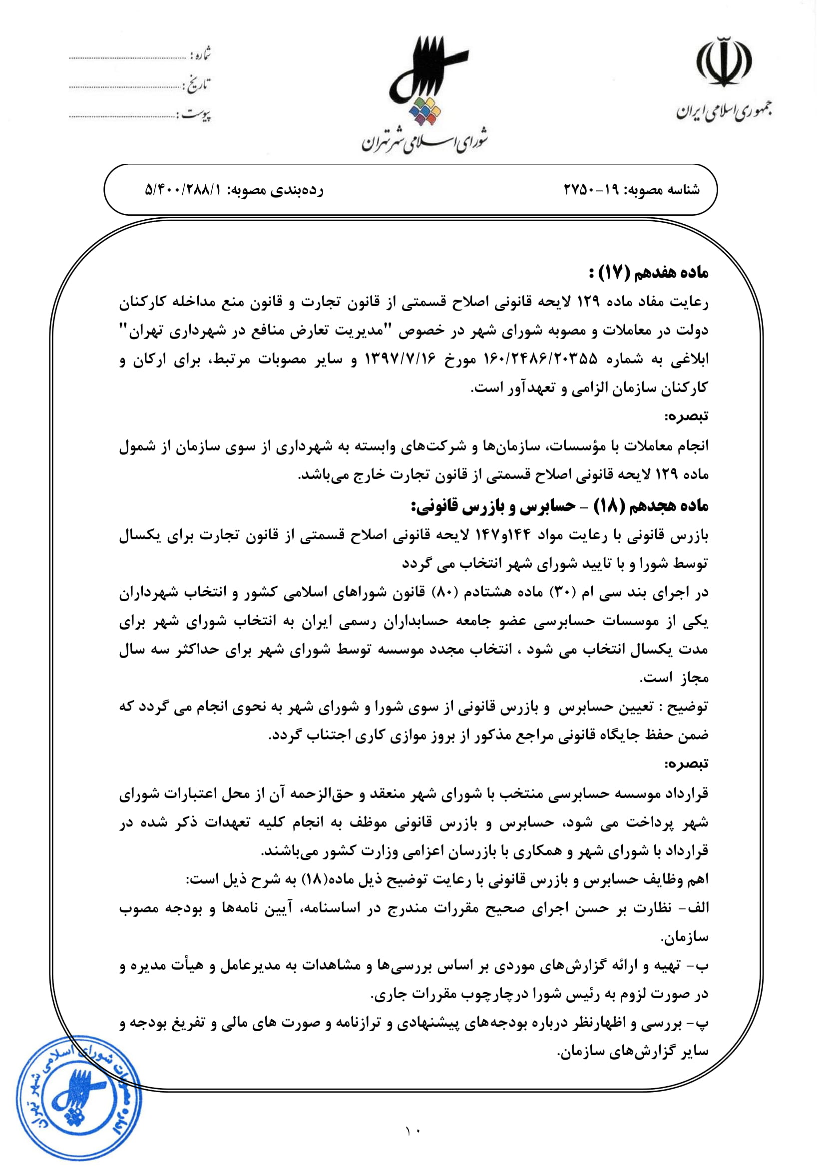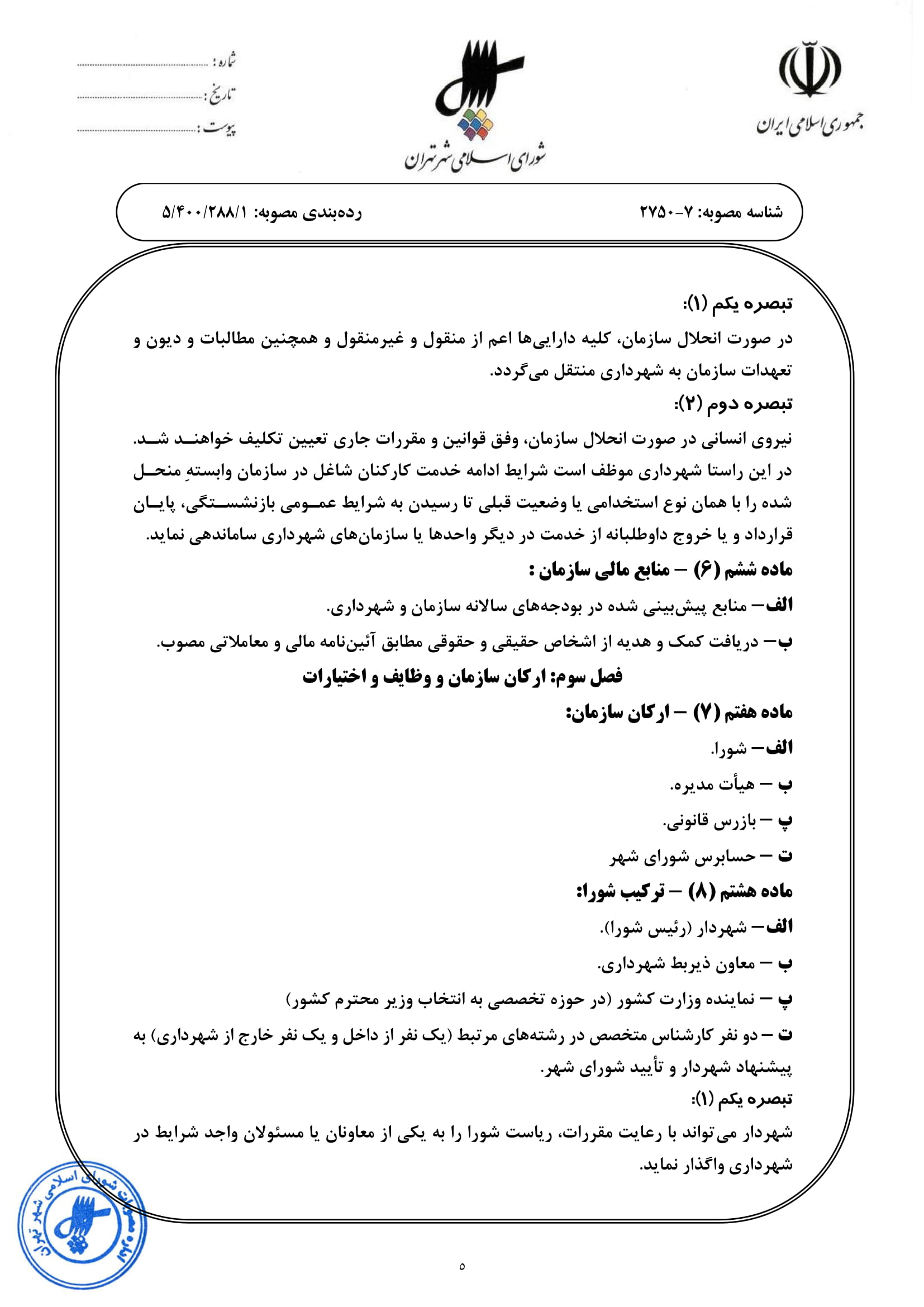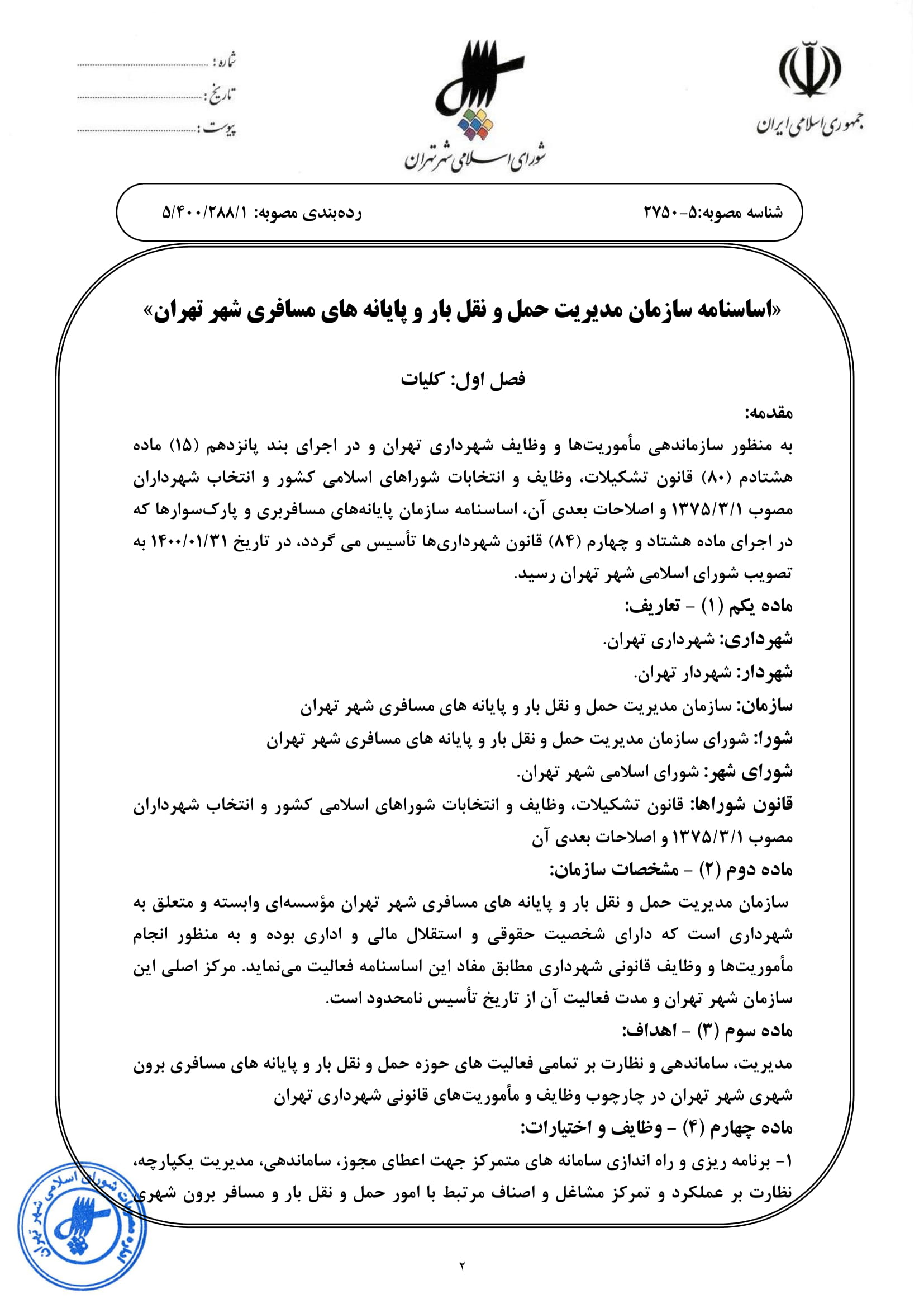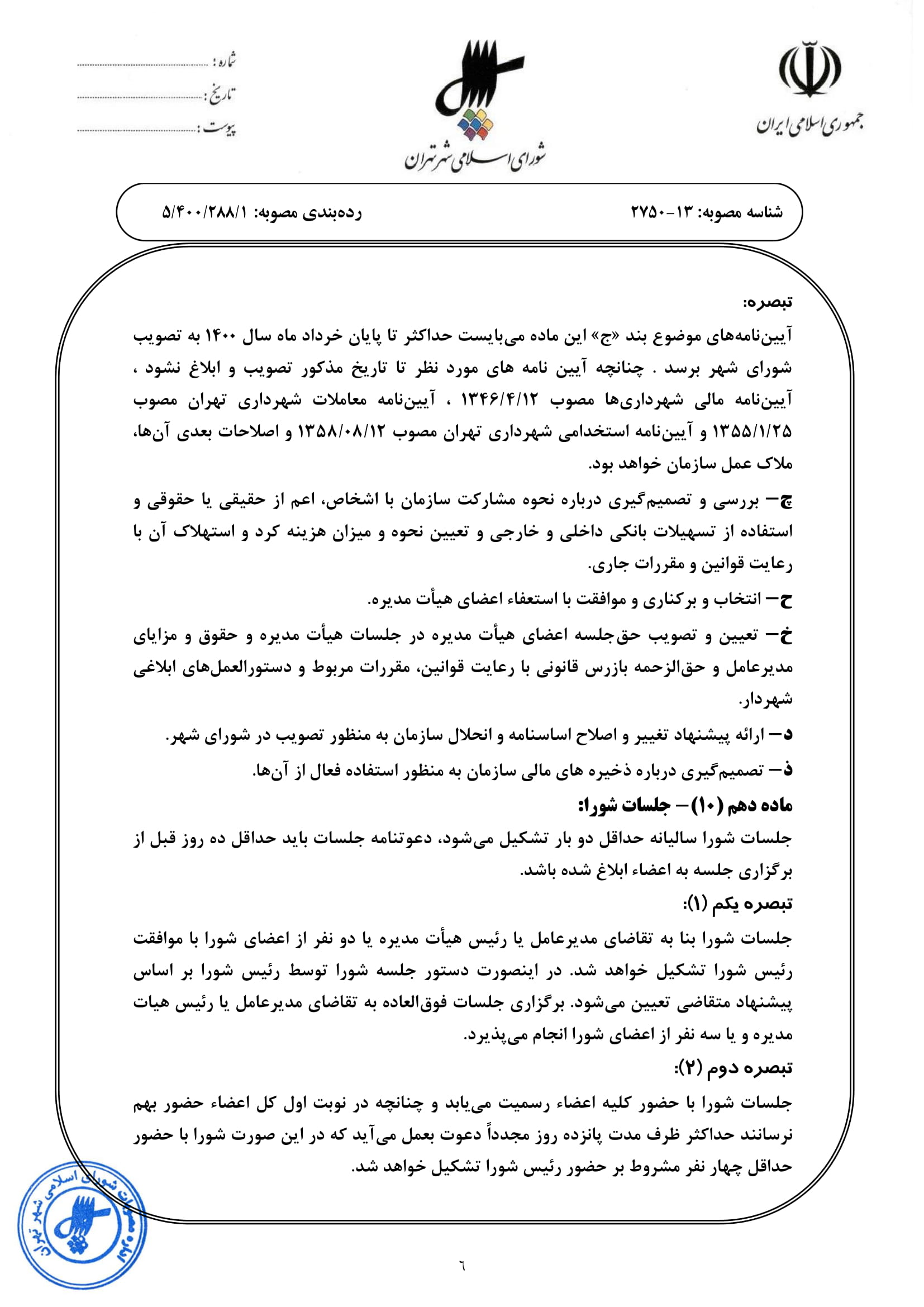 اساسنامه‌هاي 19 سازمان وابسته به شهرداري تهران به انضمام آيين‌نامه مالي و معاملاتي سازمان‌هاي وابسته و مقررات استخدامي مستخدمين موقت شهرداري تهران