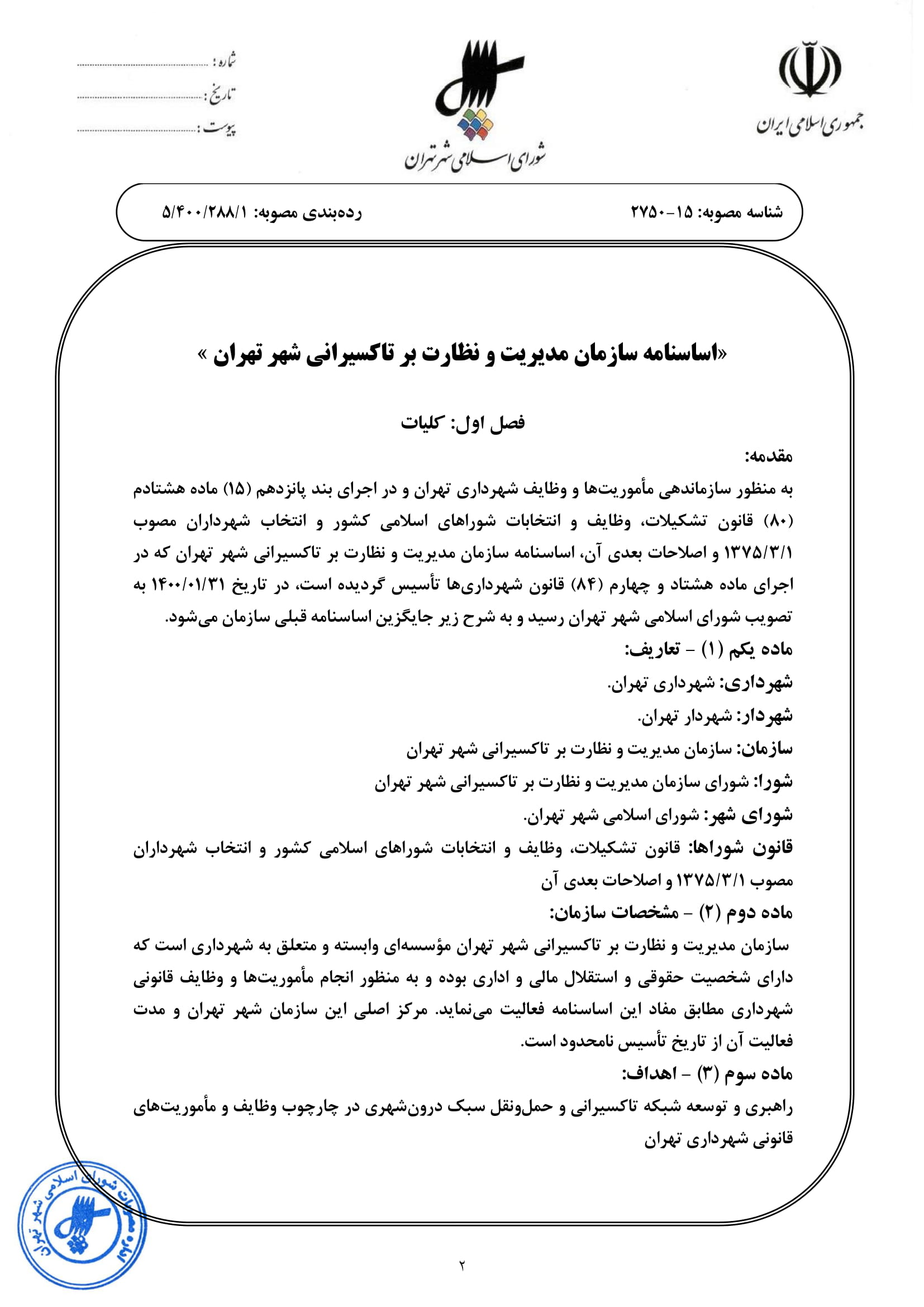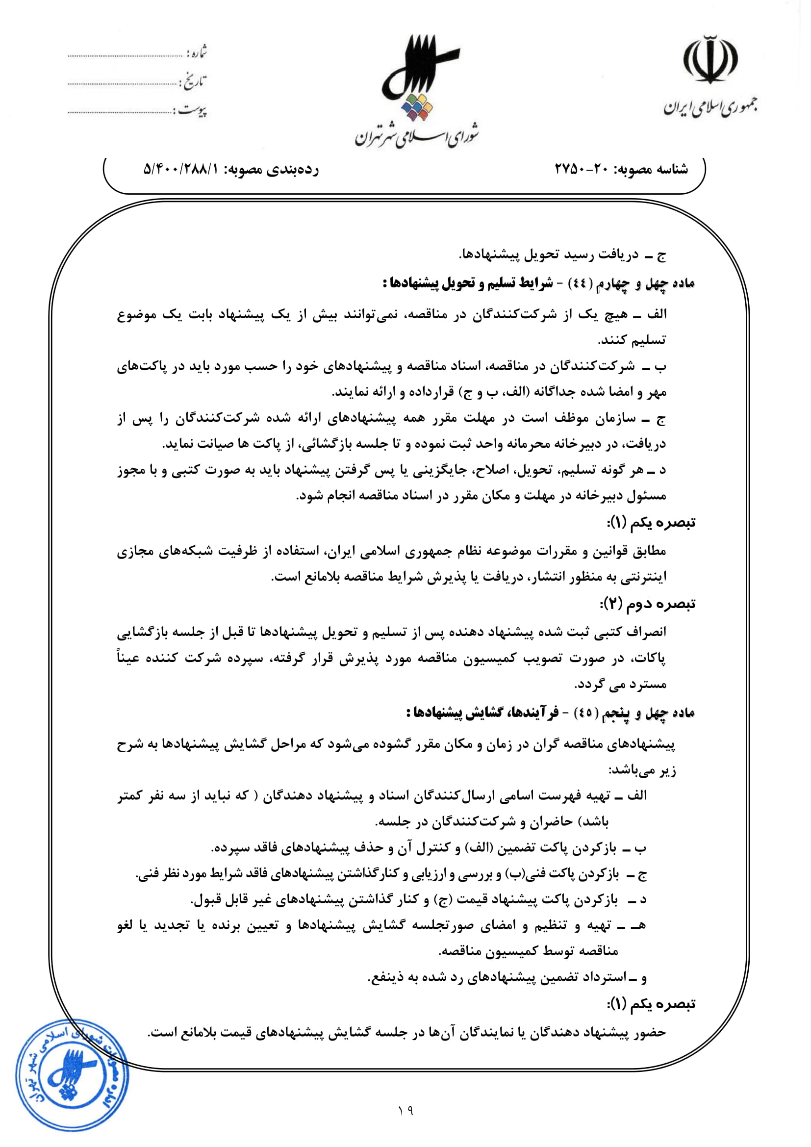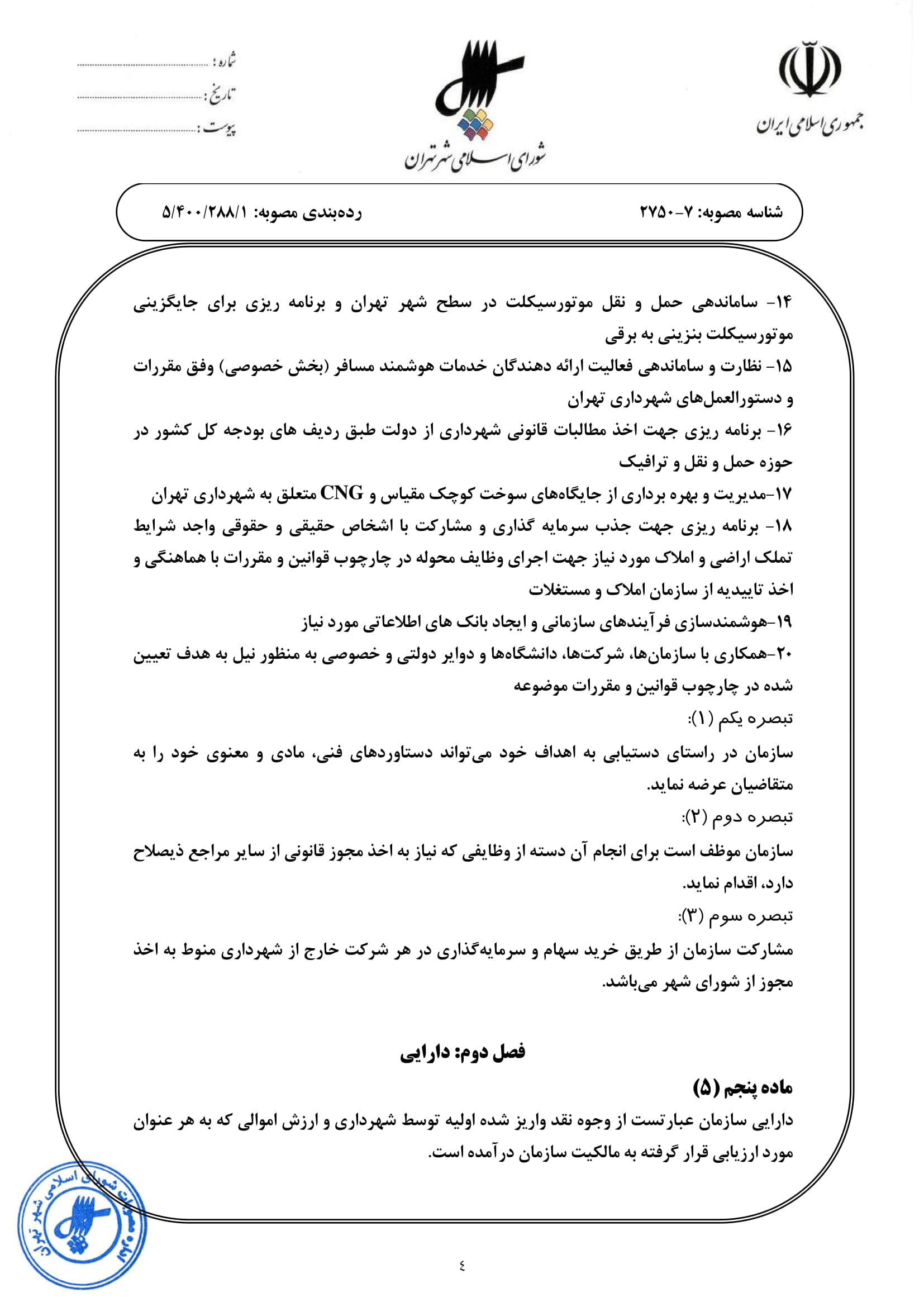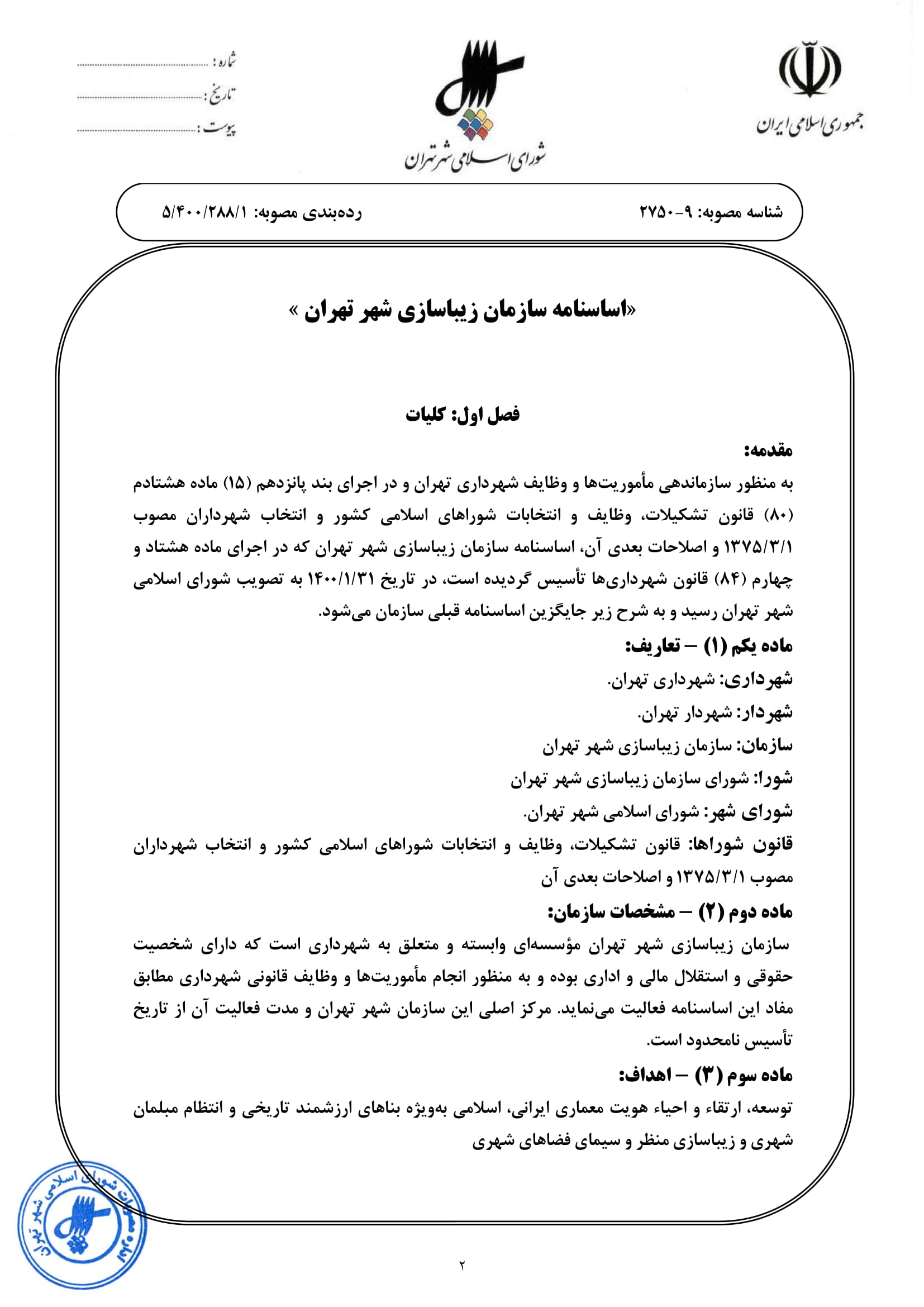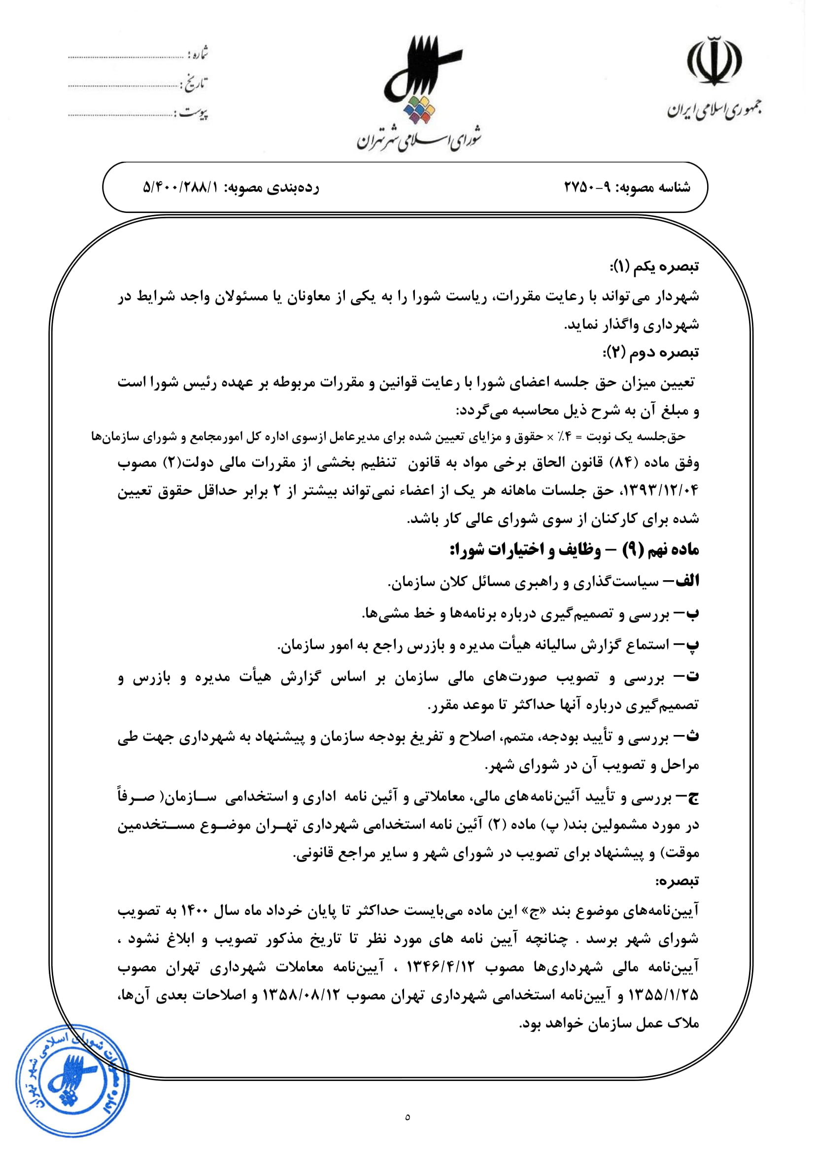 اساسنامه‌هاي 19 سازمان وابسته به شهرداري تهران به انضمام آيين‌نامه مالي و معاملاتي سازمان‌هاي وابسته و مقررات استخدامي مستخدمين موقت شهرداري تهران
