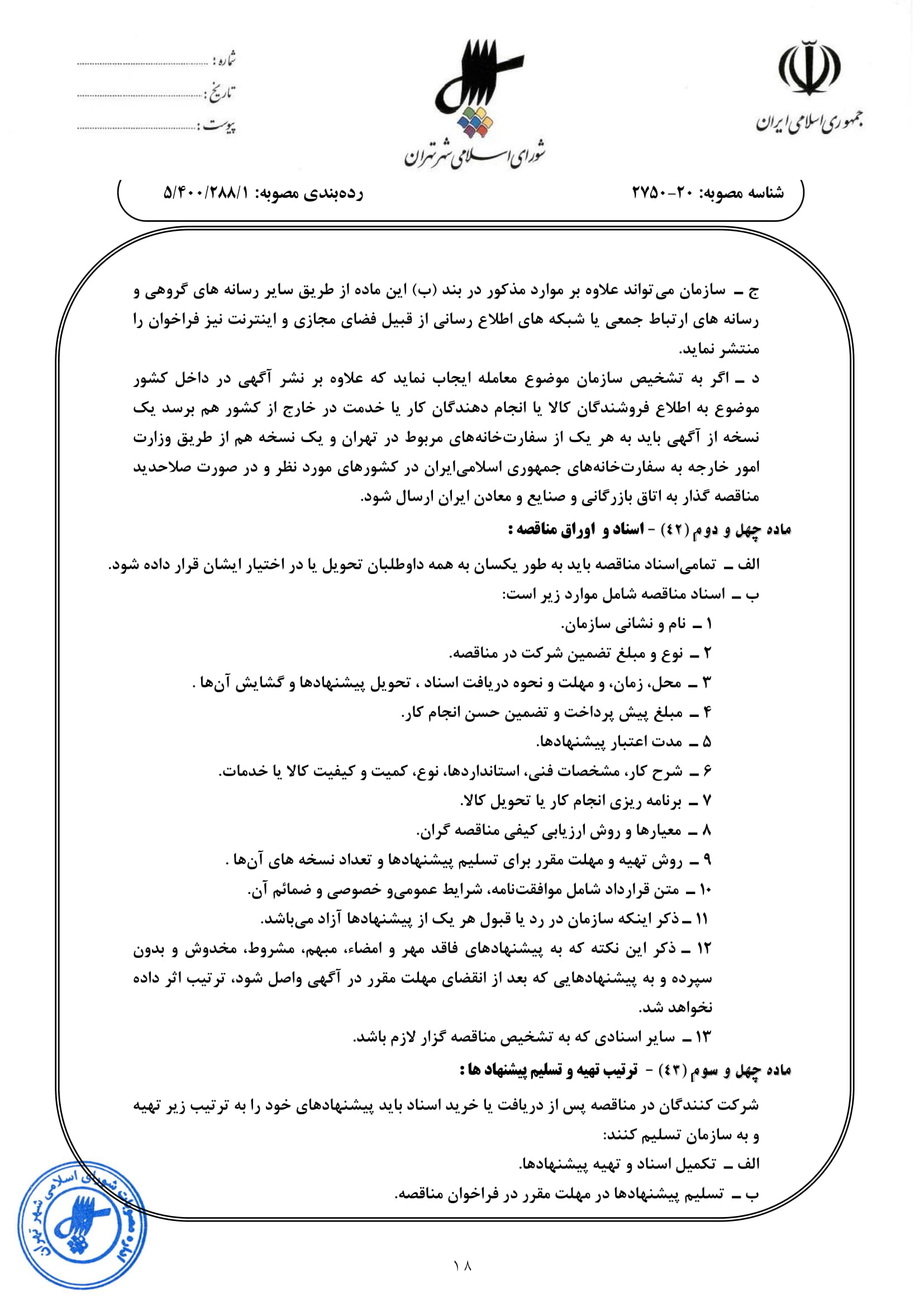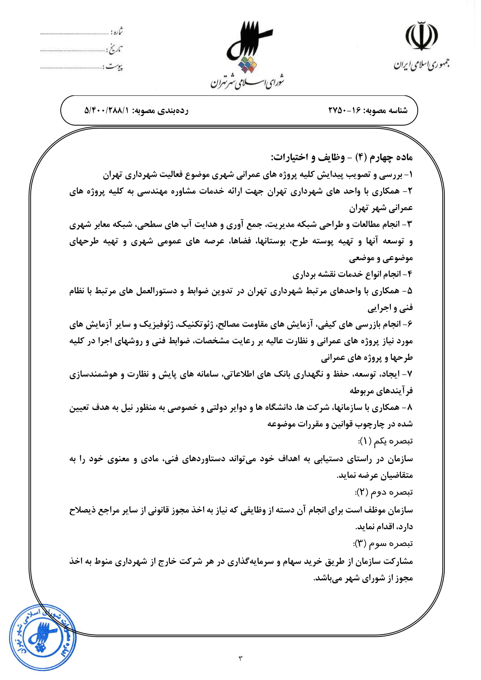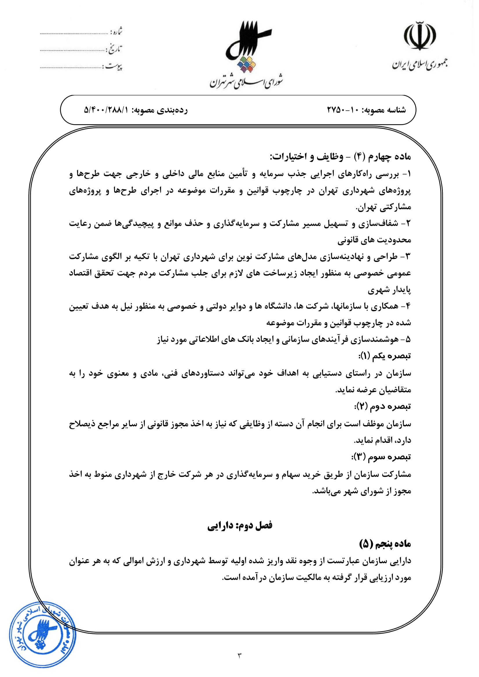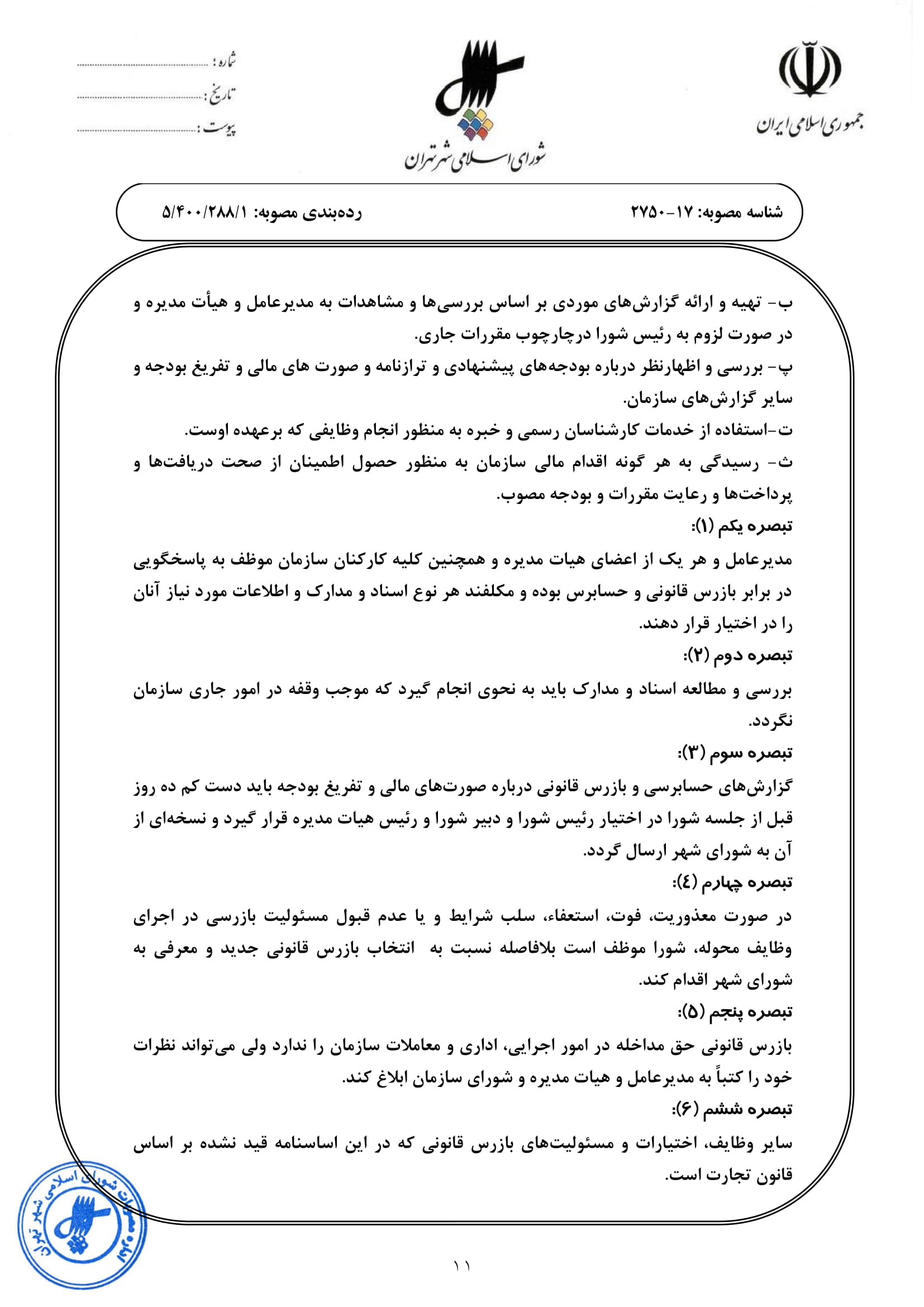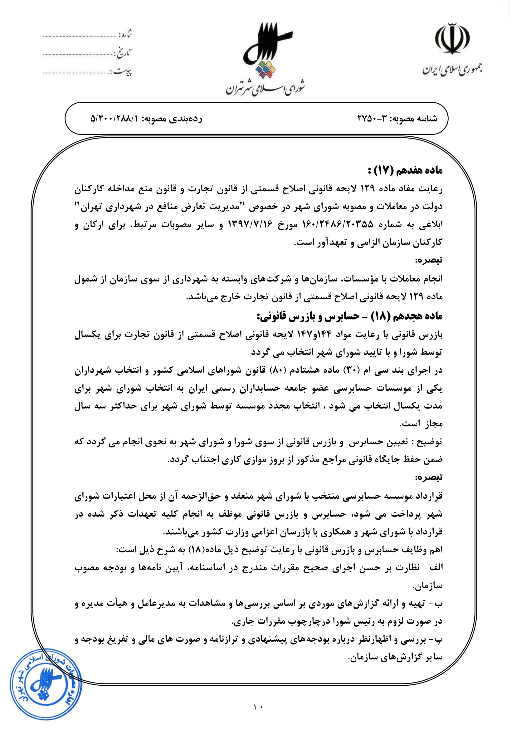اساسنامه‌هاي 19 سازمان وابسته به شهرداري تهران به انضمام آيين‌نامه مالي و معاملاتي سازمان‌هاي وابسته و مقررات استخدامي مستخدمين موقت شهرداري تهران