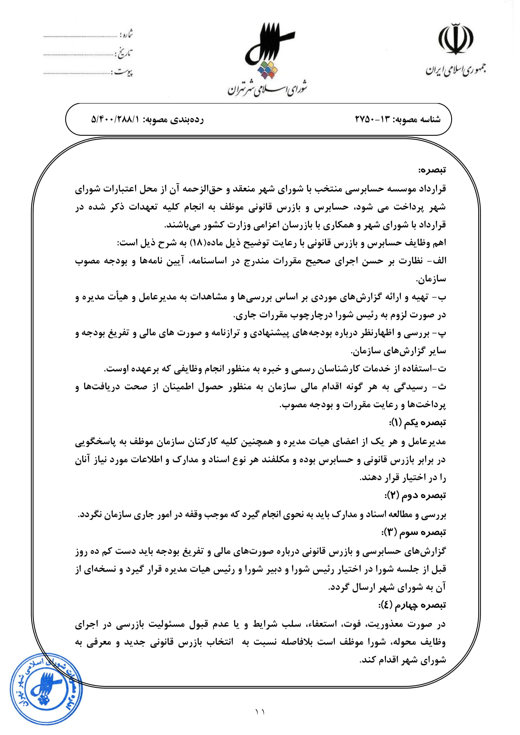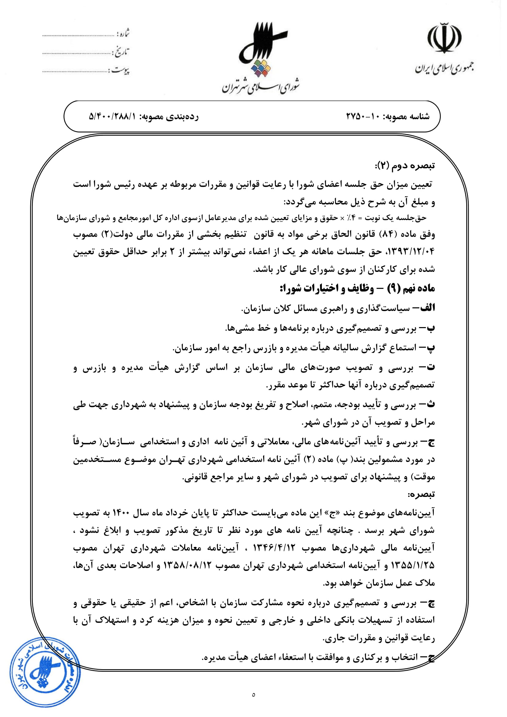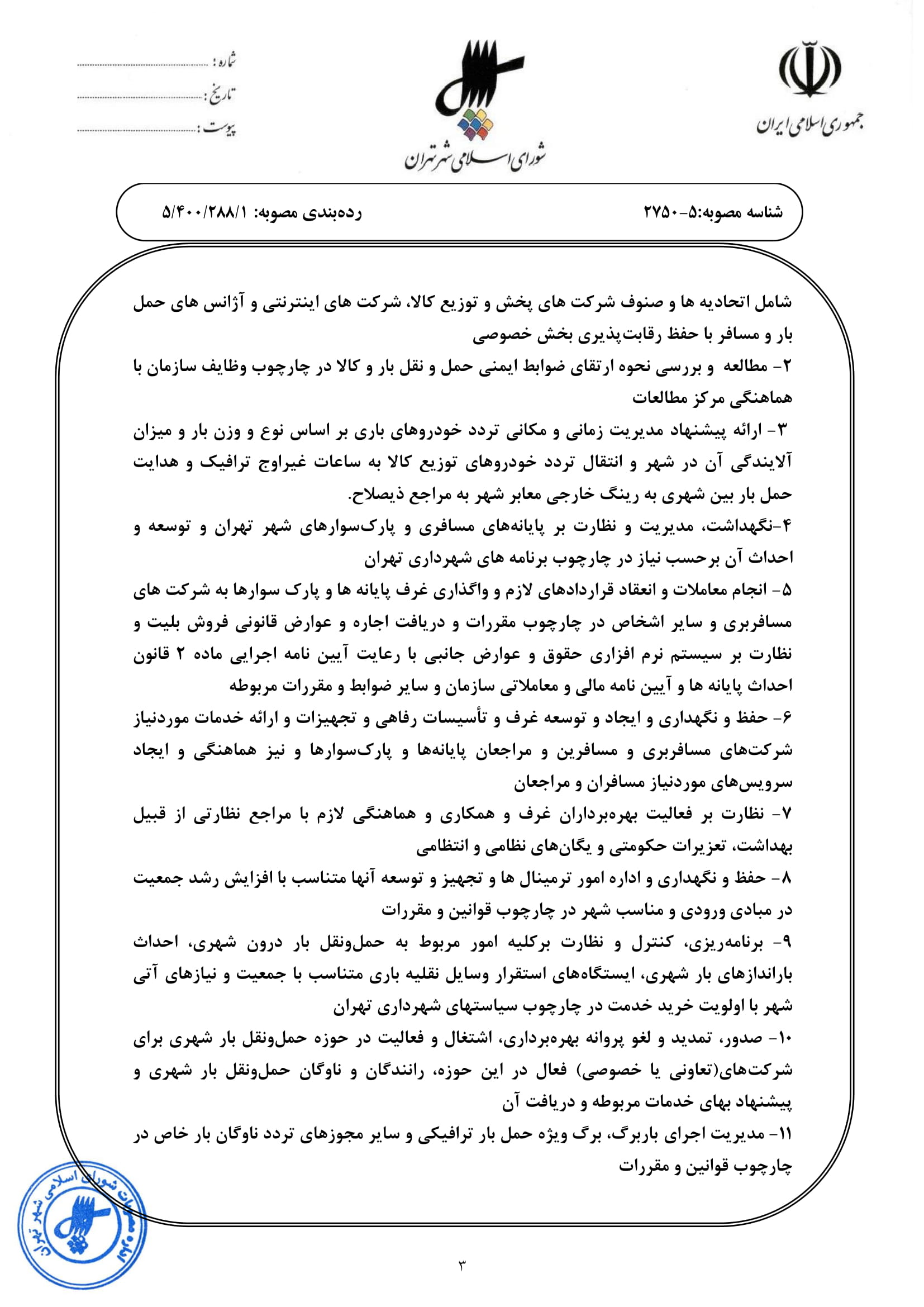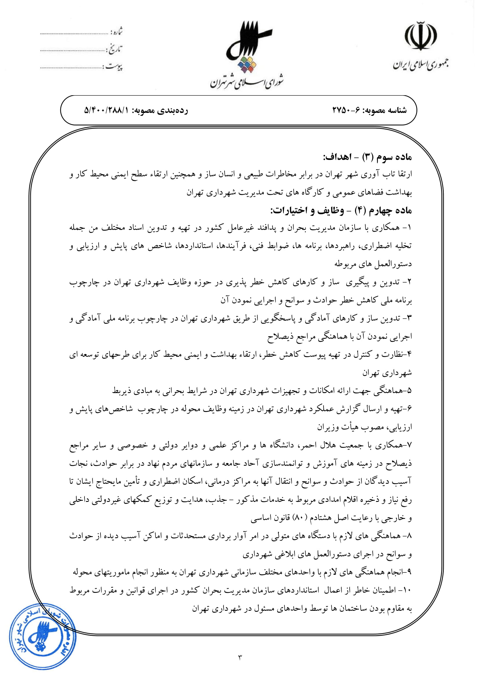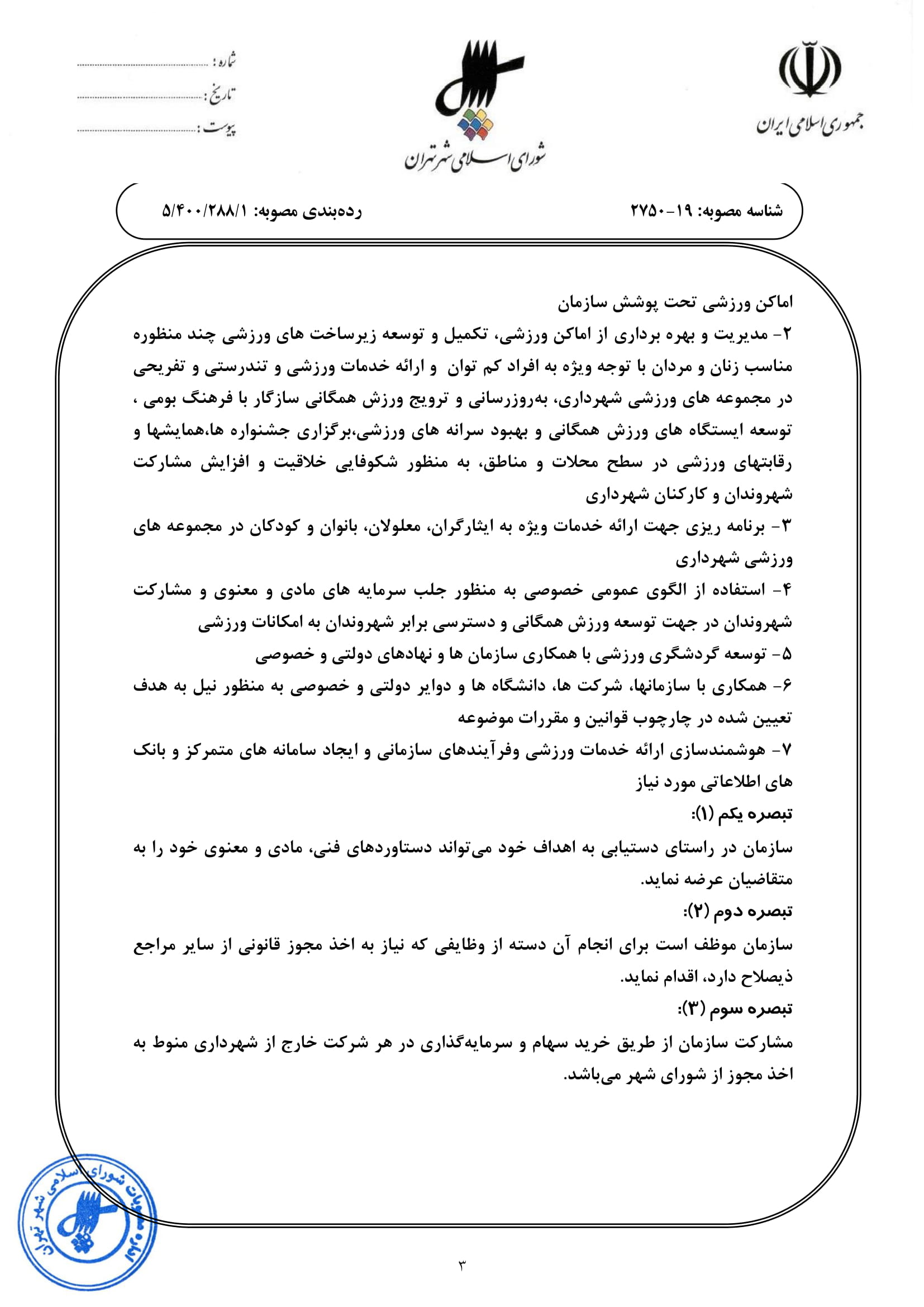 اساسنامه‌هاي 19 سازمان وابسته به شهرداري تهران به انضمام آيين‌نامه مالي و معاملاتي سازمان‌هاي وابسته و مقررات استخدامي مستخدمين موقت شهرداري تهران